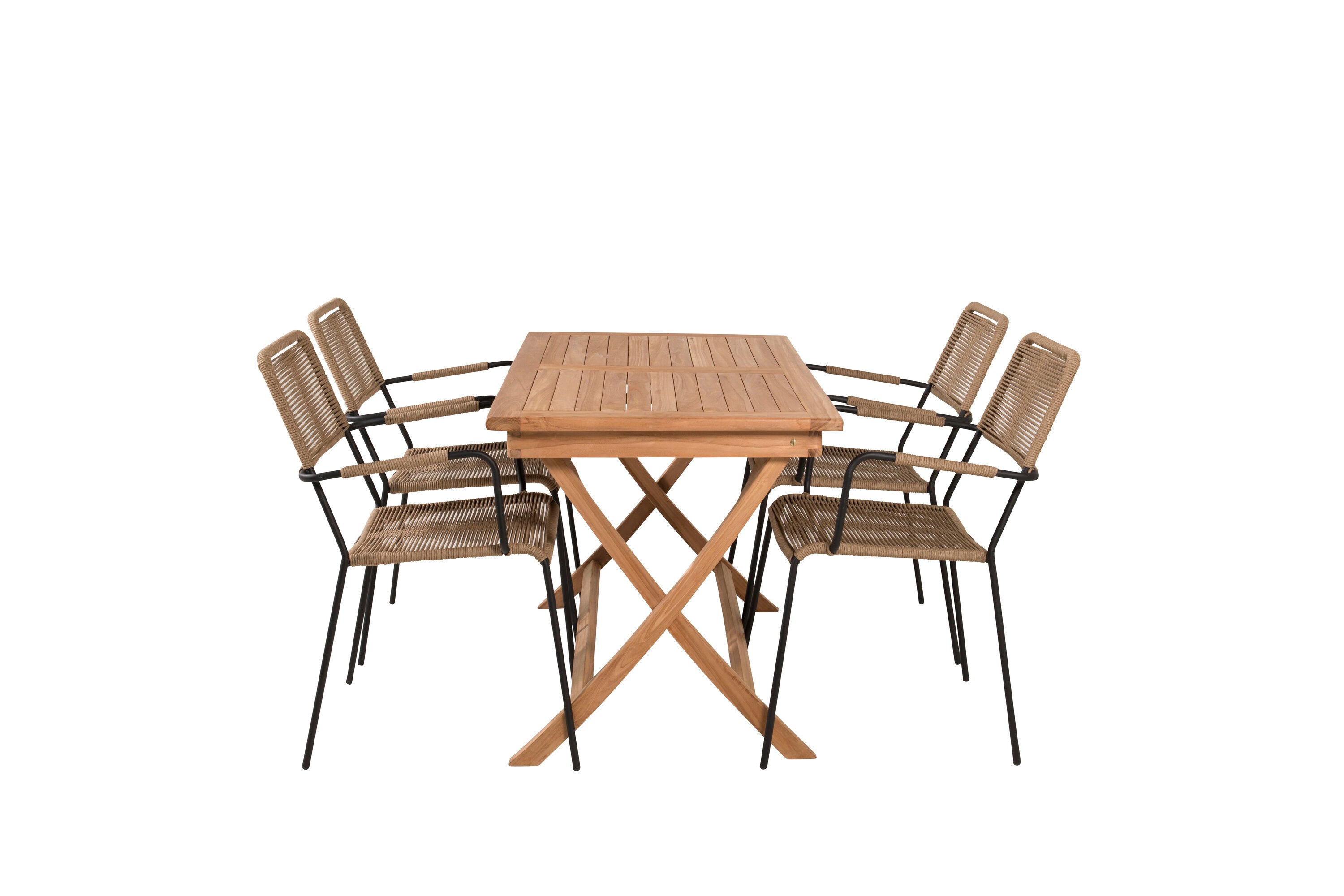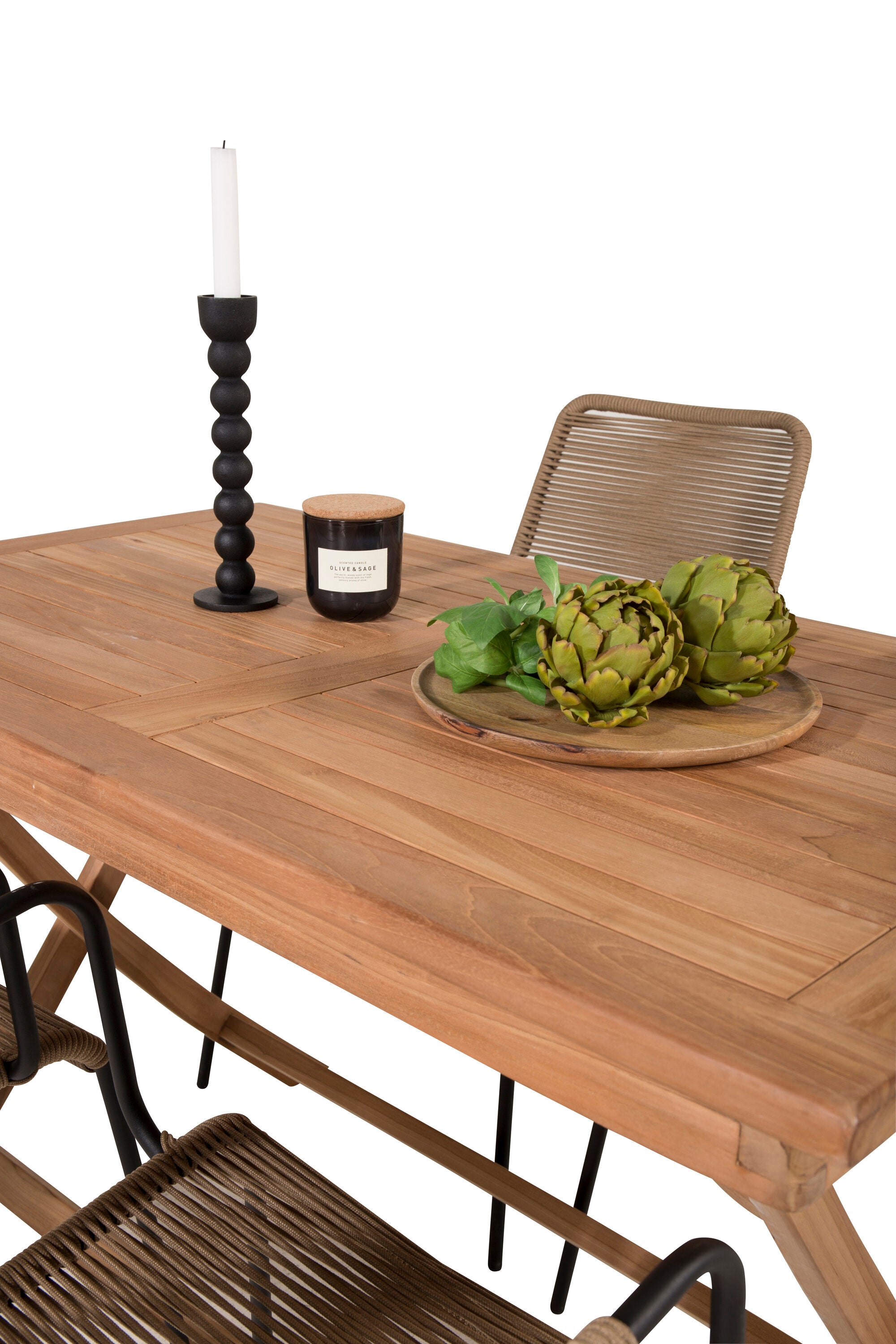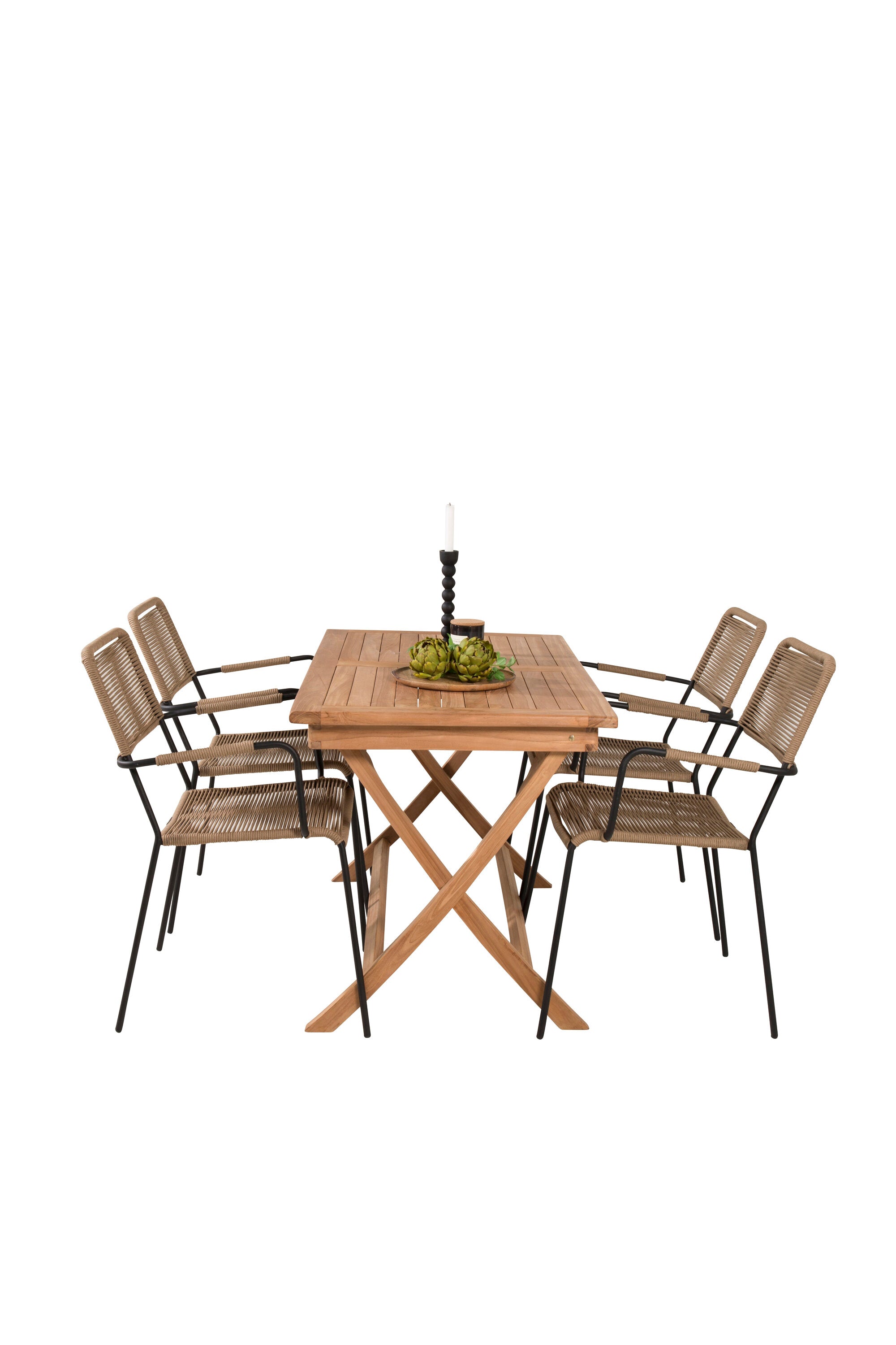 Kenya Jídelní stůl 120*70*H75 - Teak+Lindos - Křeslo - Black Alu / Latte Rope_4