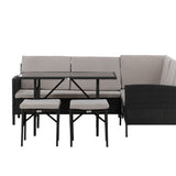 Knock - Rohová pohovka - Černá/šedá - Proutí -