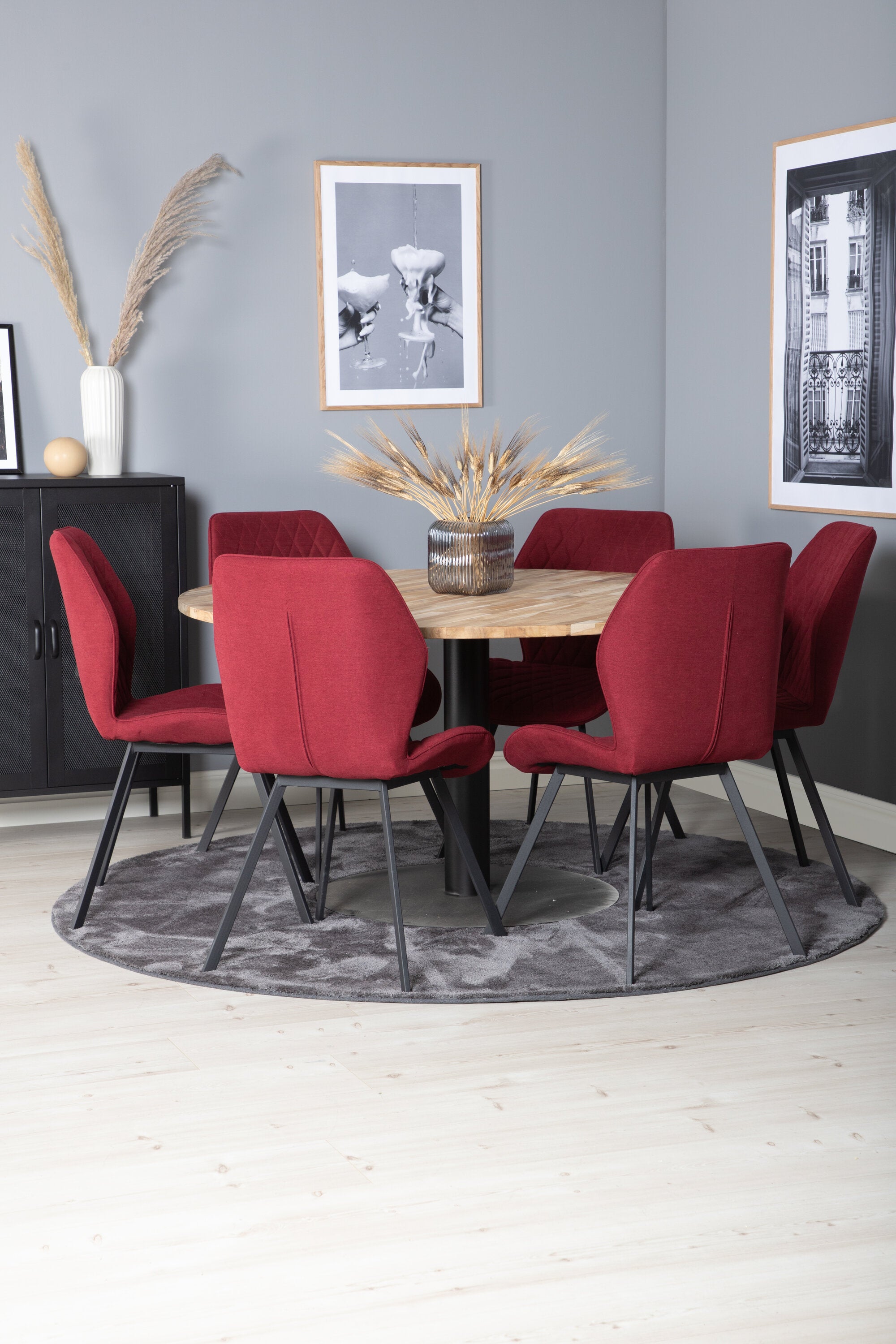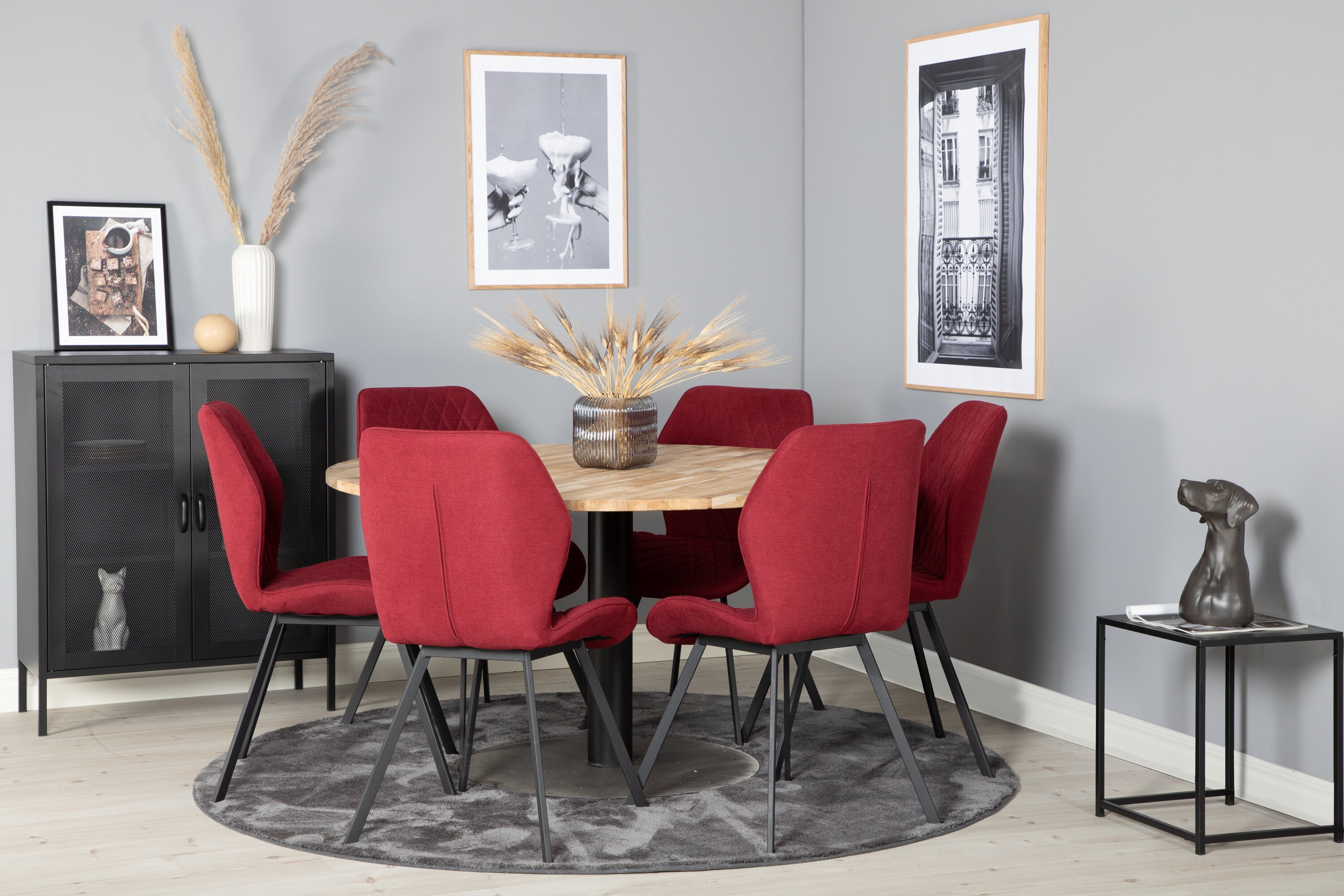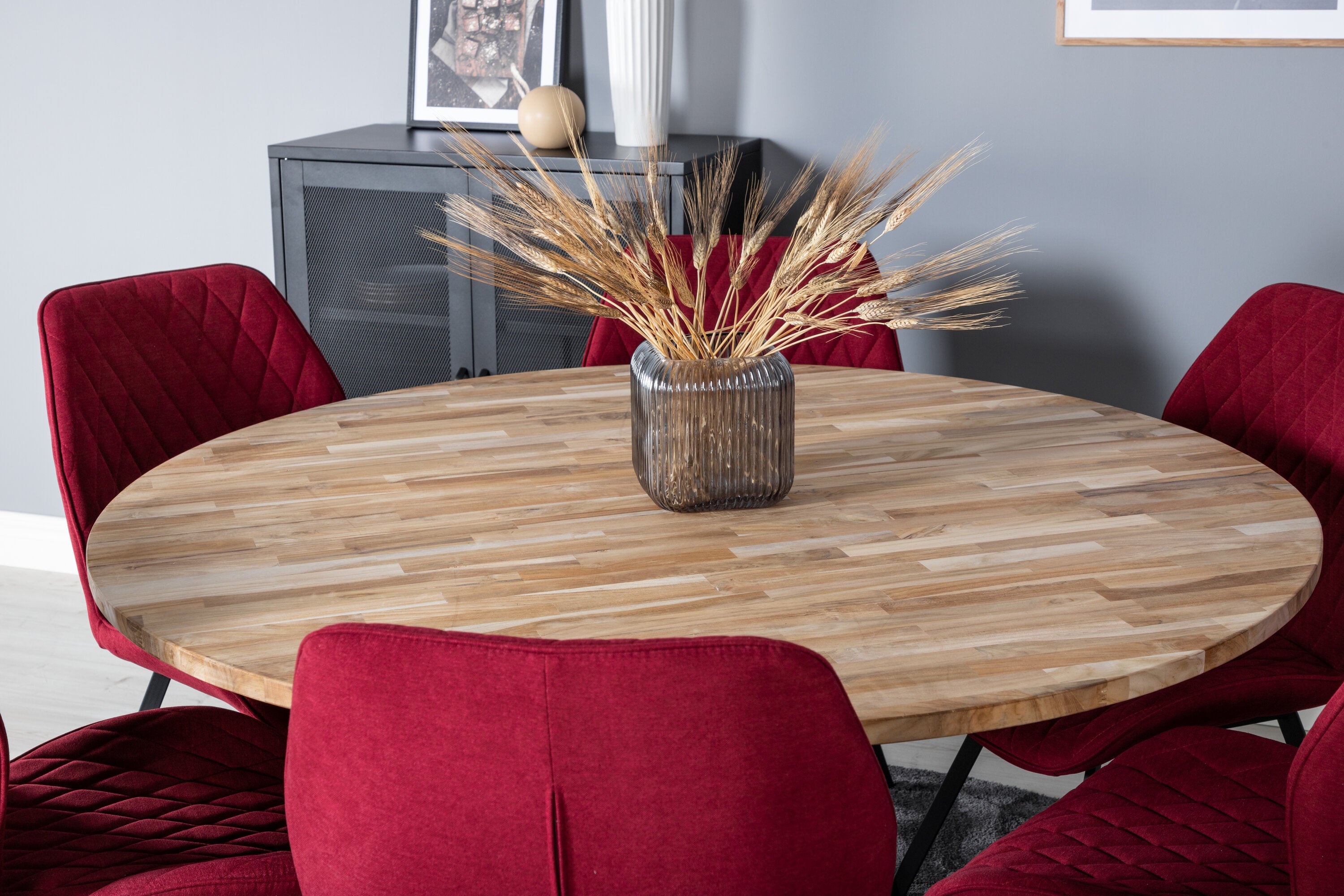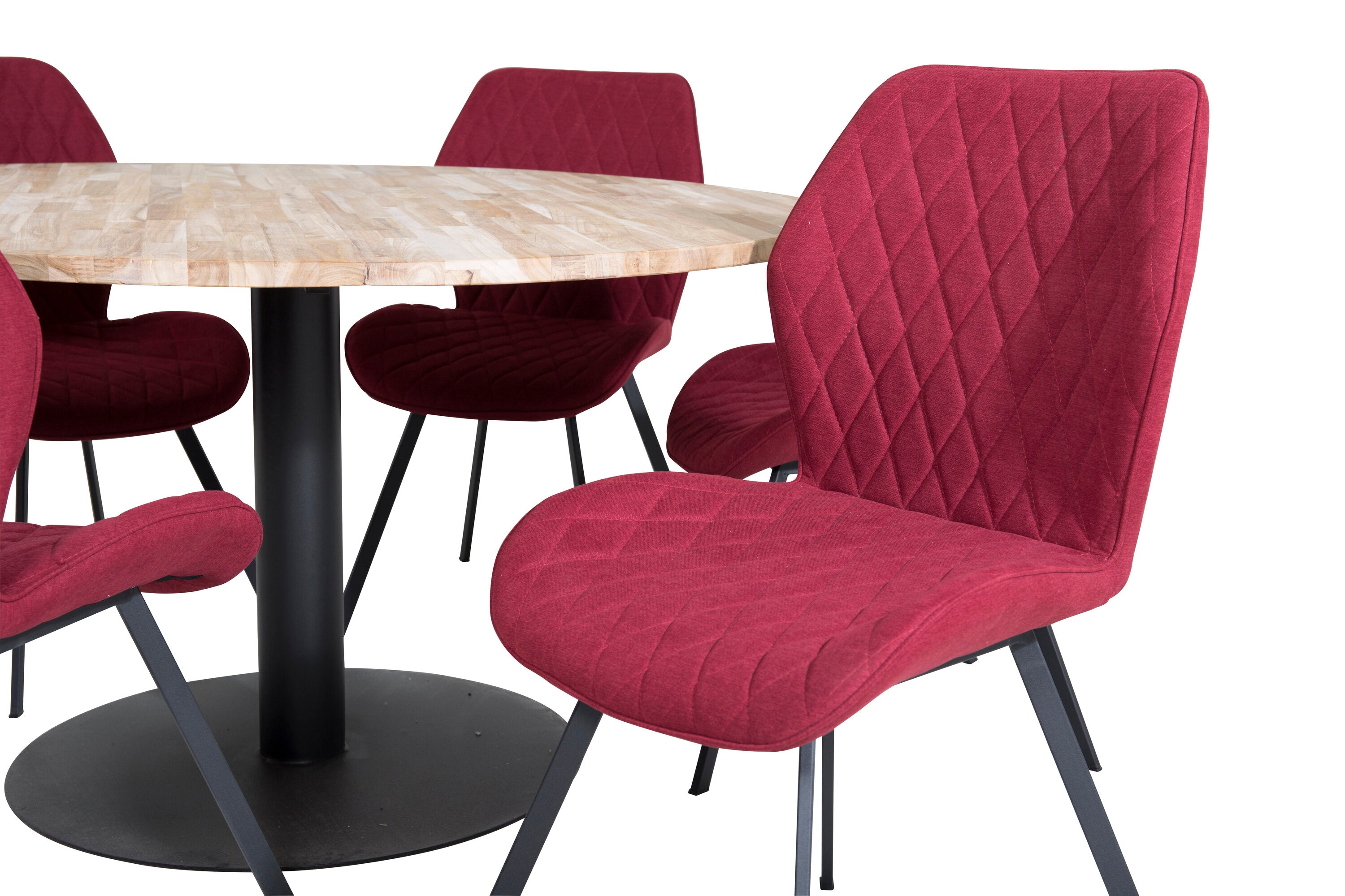 Kruhový stůl Cirebon - 140 cm - Přírodní / Černá+Gemma Jídelní židle - Černé nohy - Červená látka_6
