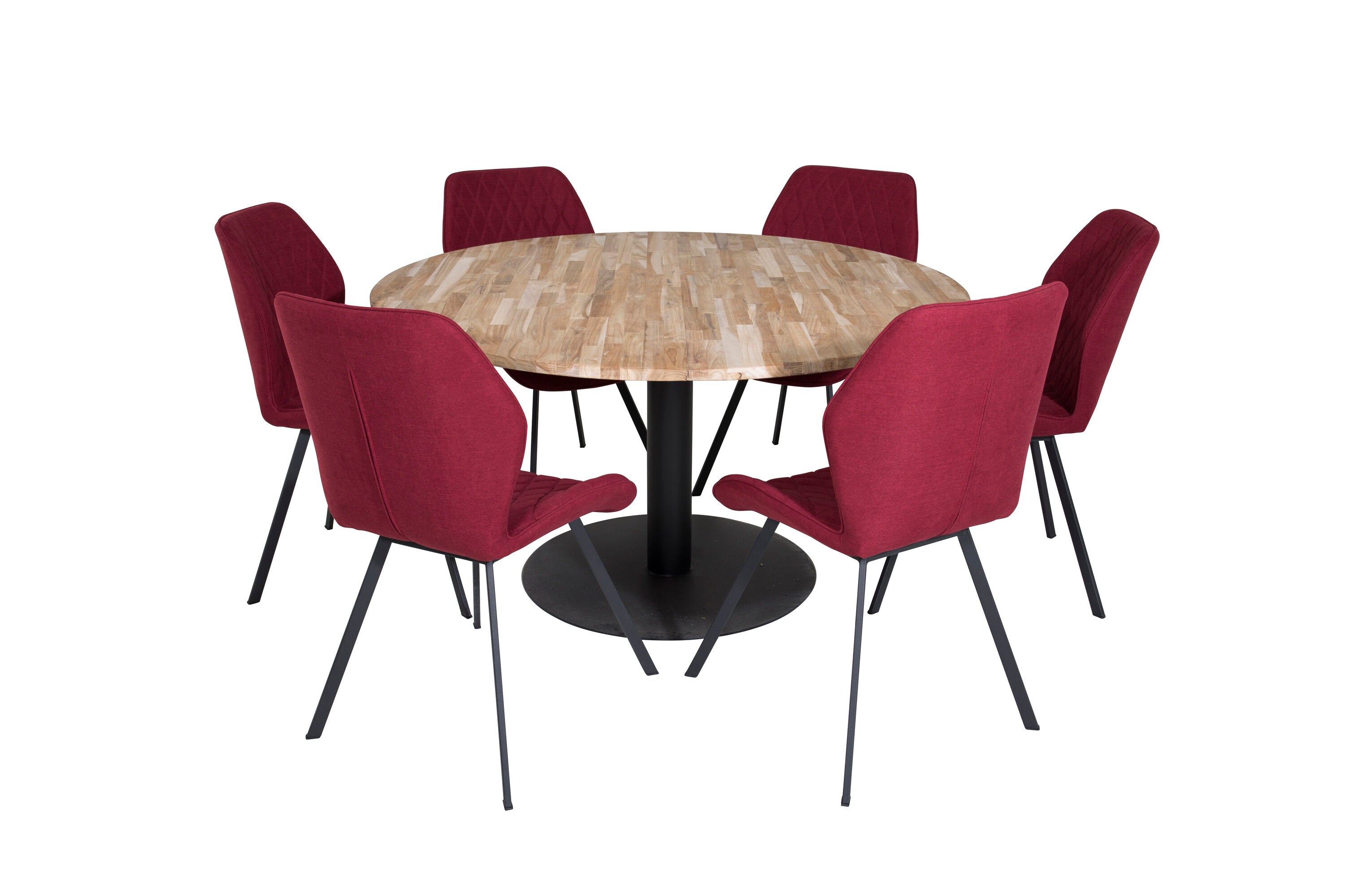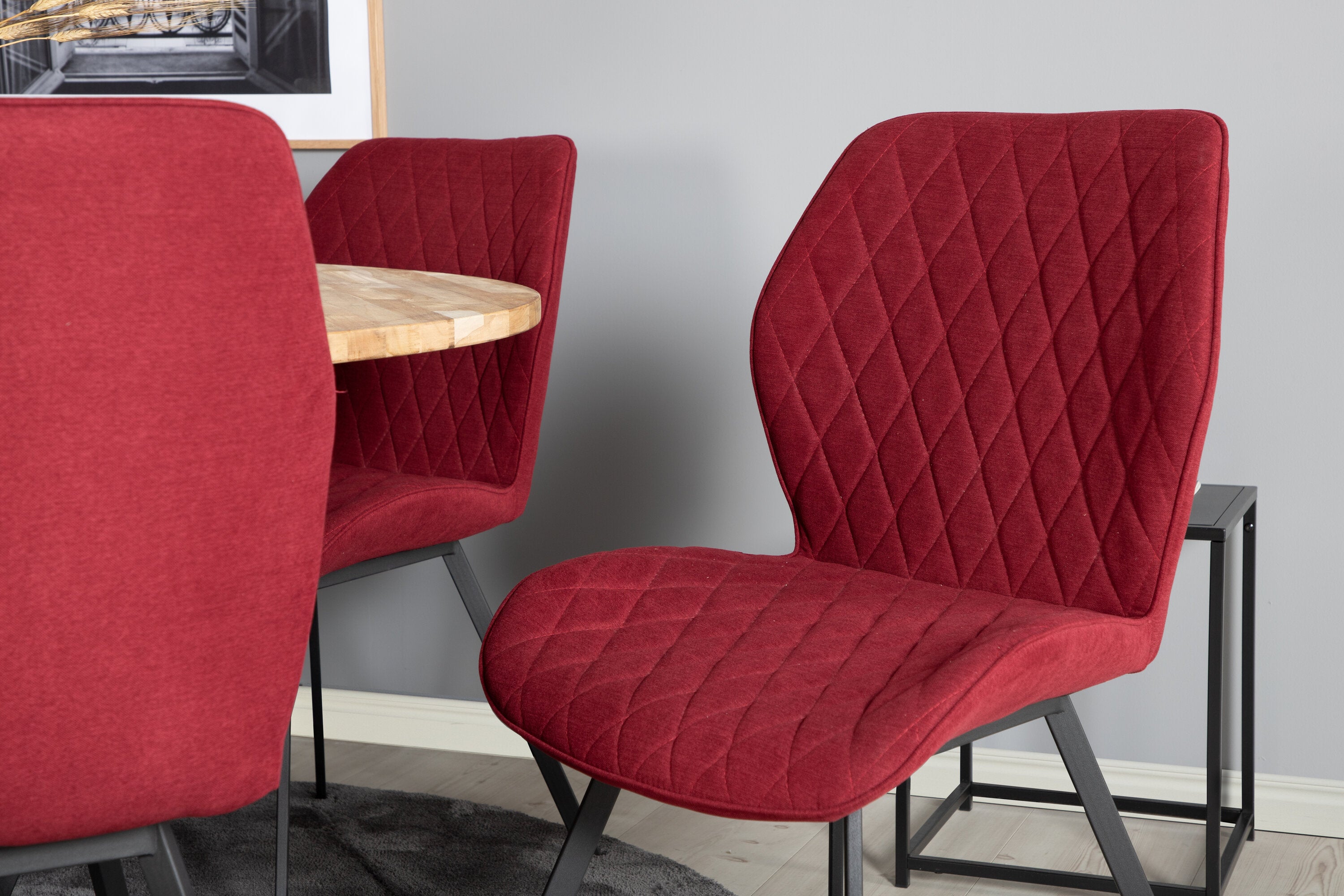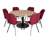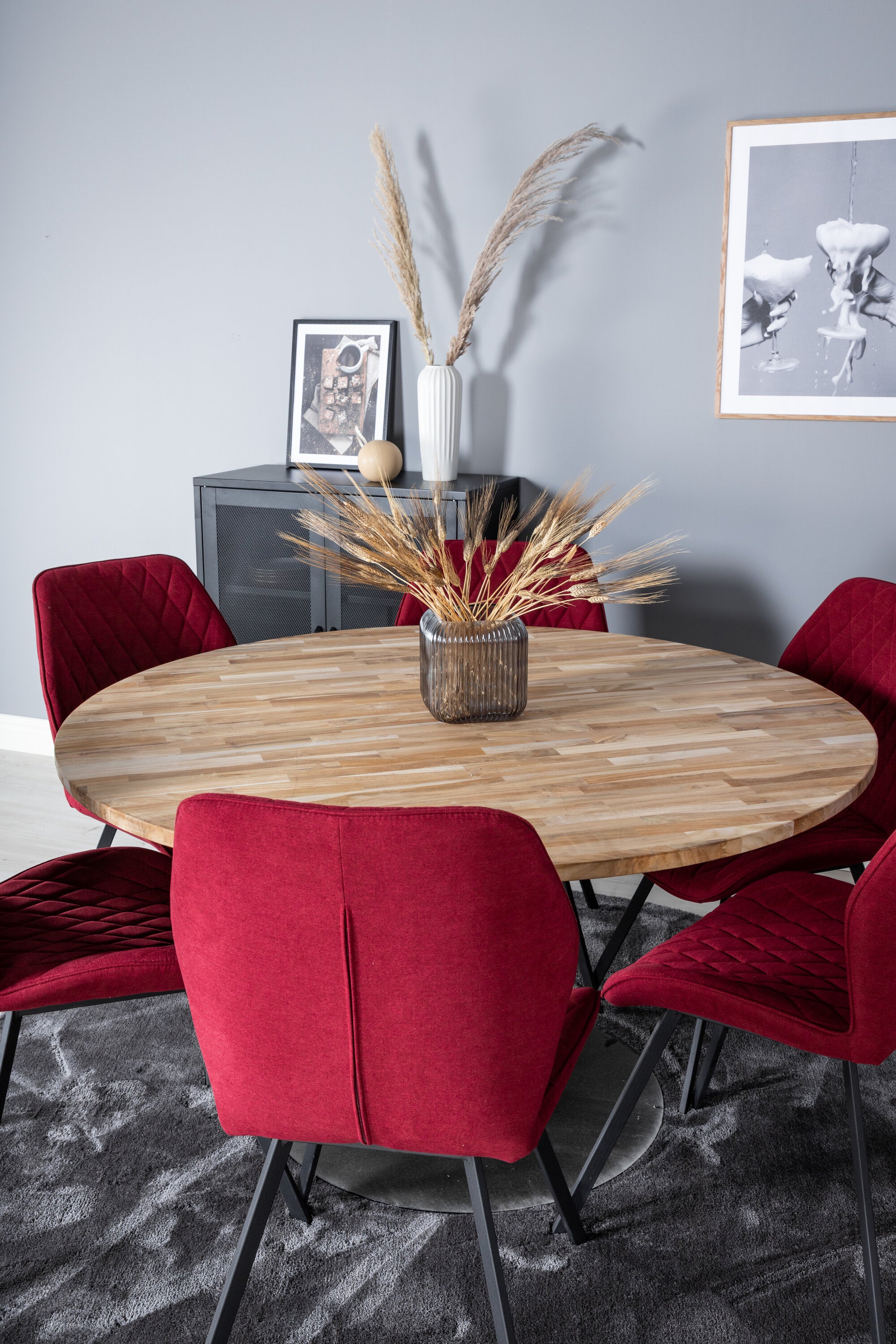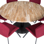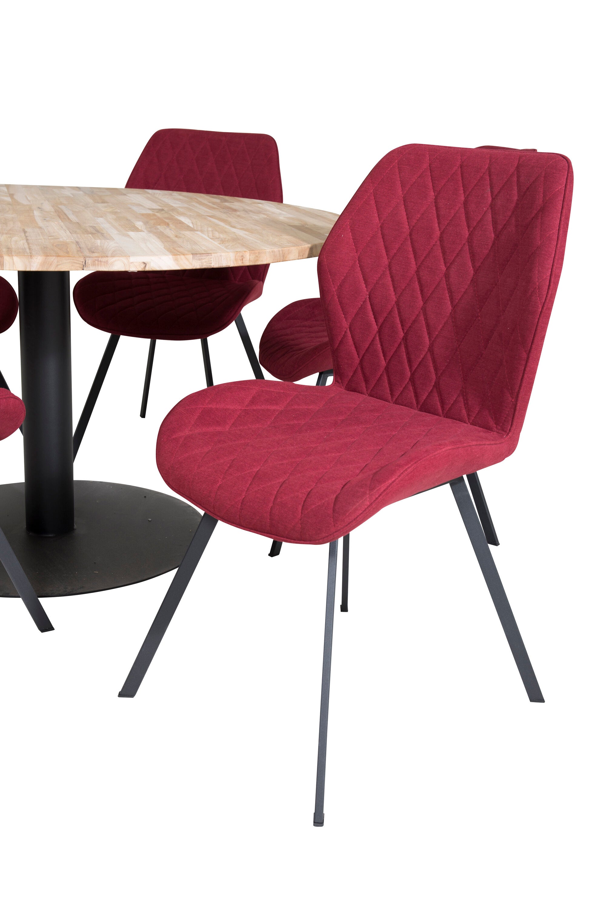 Kruhový stůl Cirebon - 140 cm - Přírodní / Černá+Gemma Jídelní židle - Černé nohy - Červená látka_6