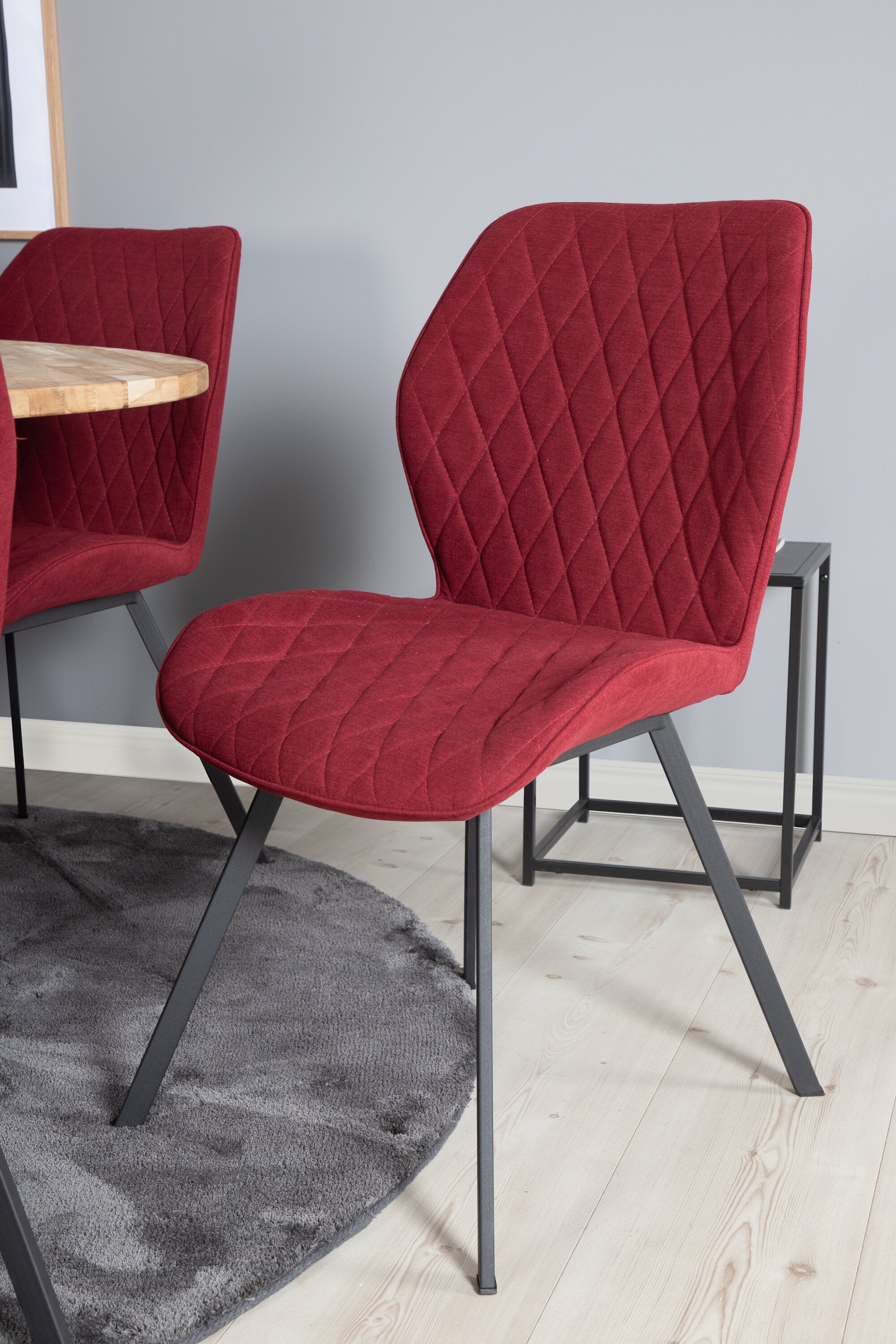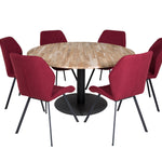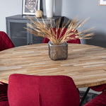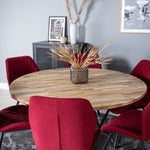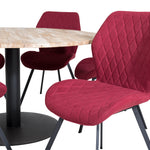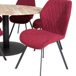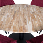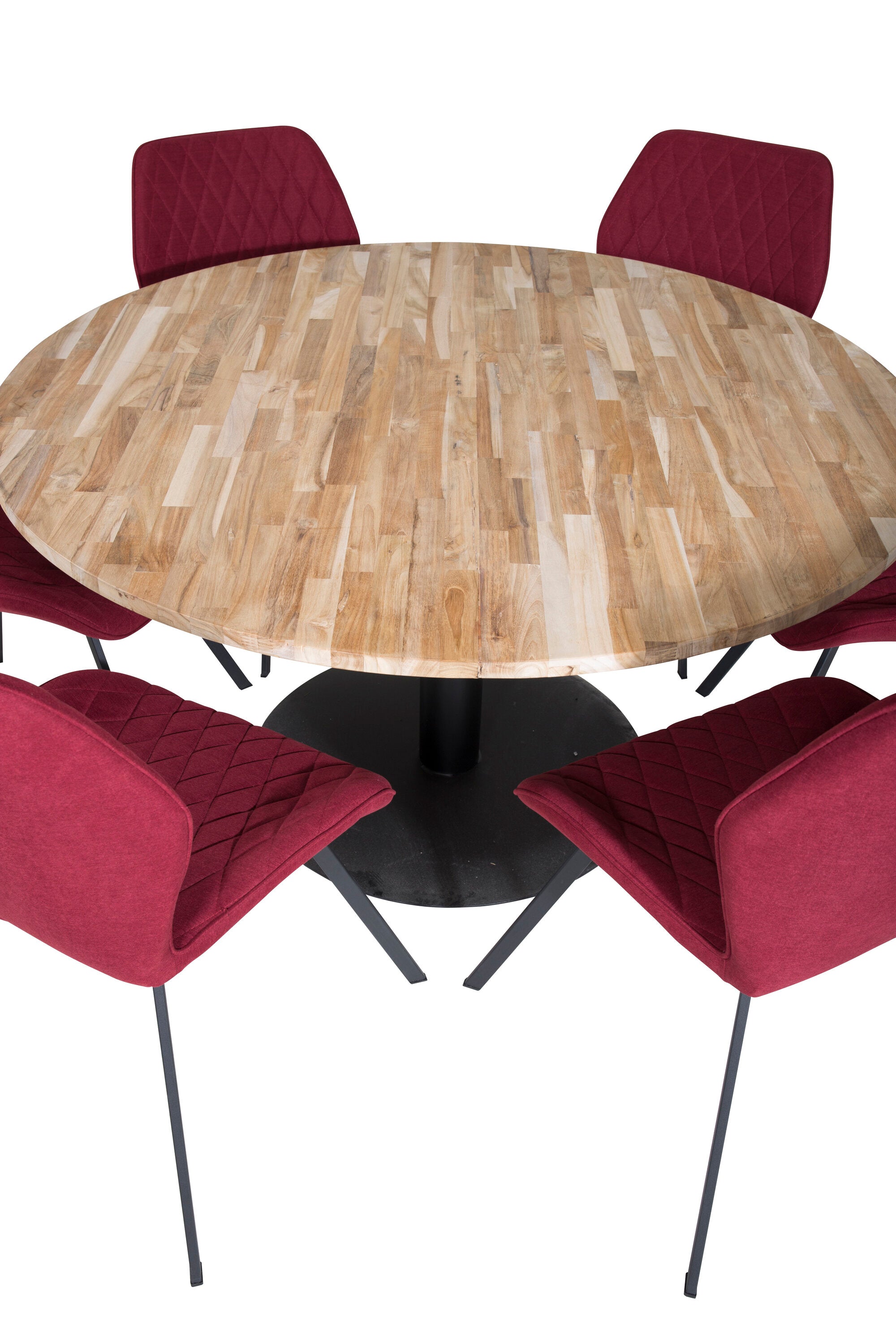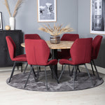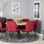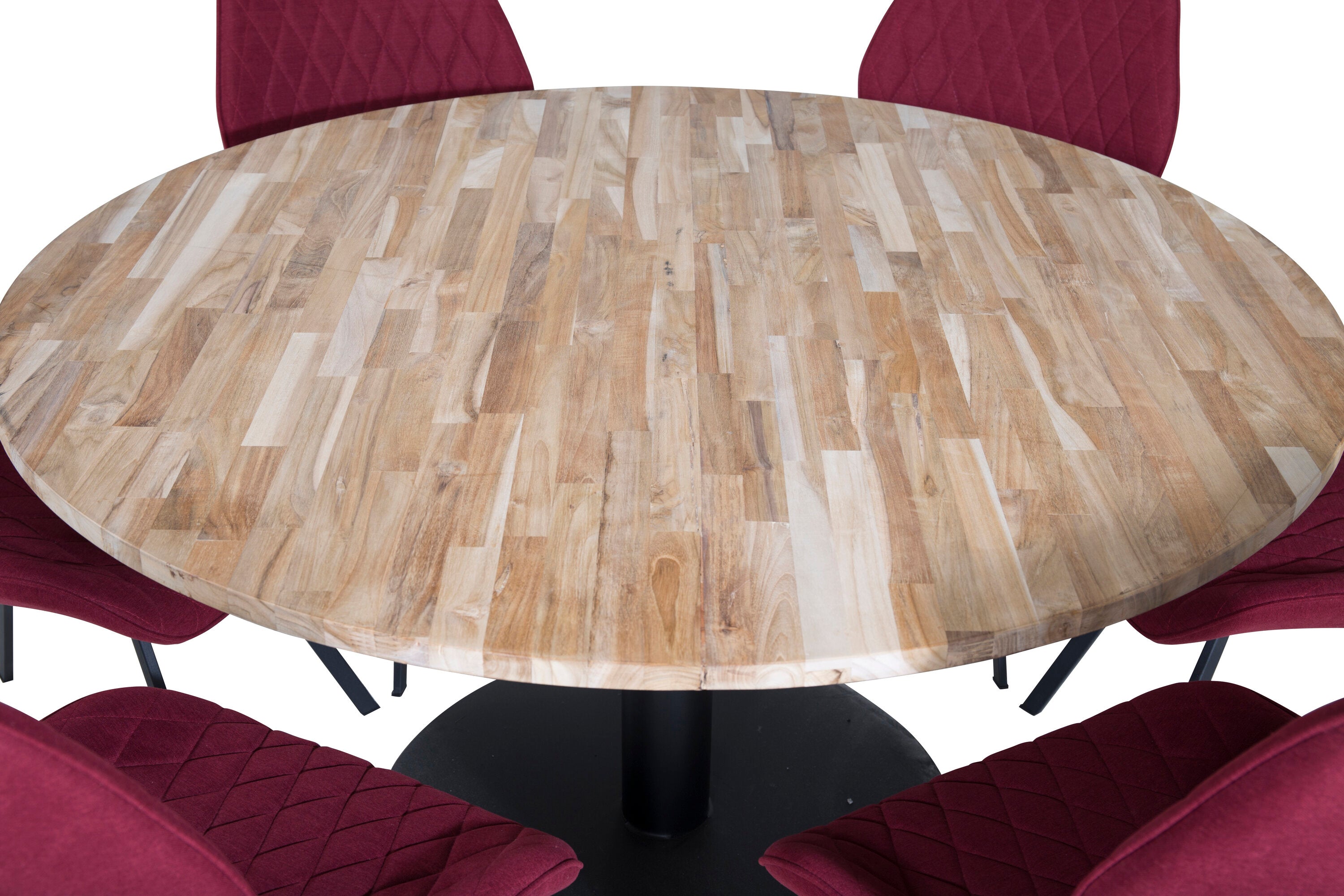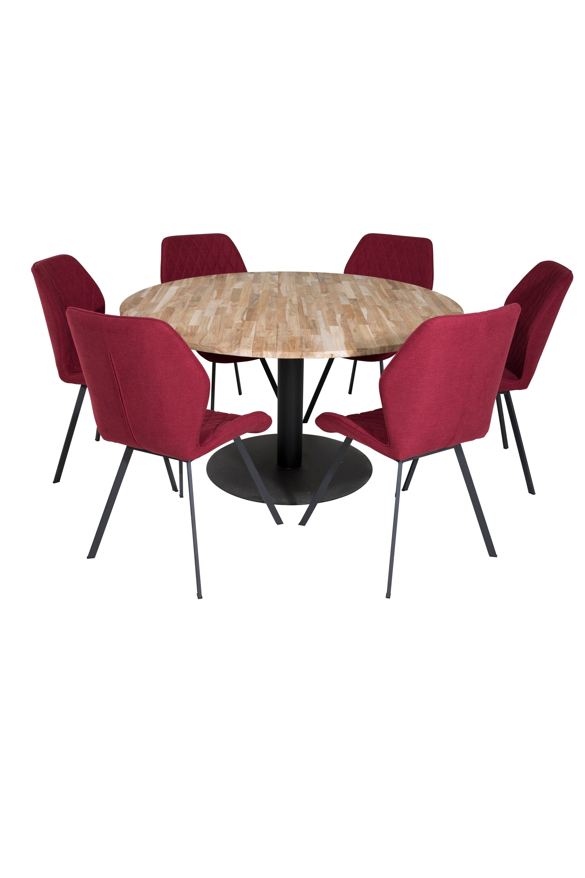 Kruhový stůl Cirebon - 140 cm - Přírodní / Černá+Gemma Jídelní židle - Černé nohy - Červená látka_6