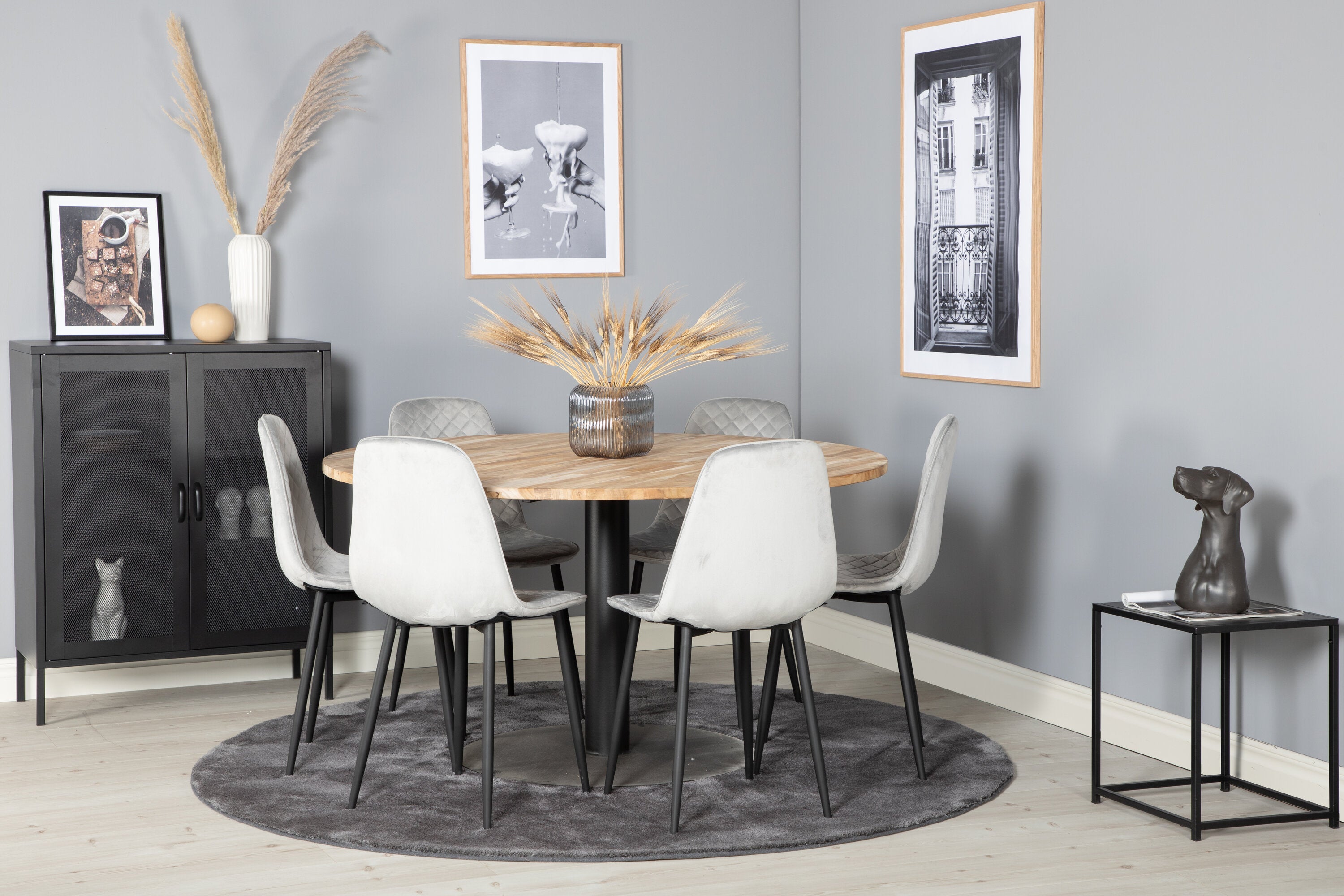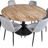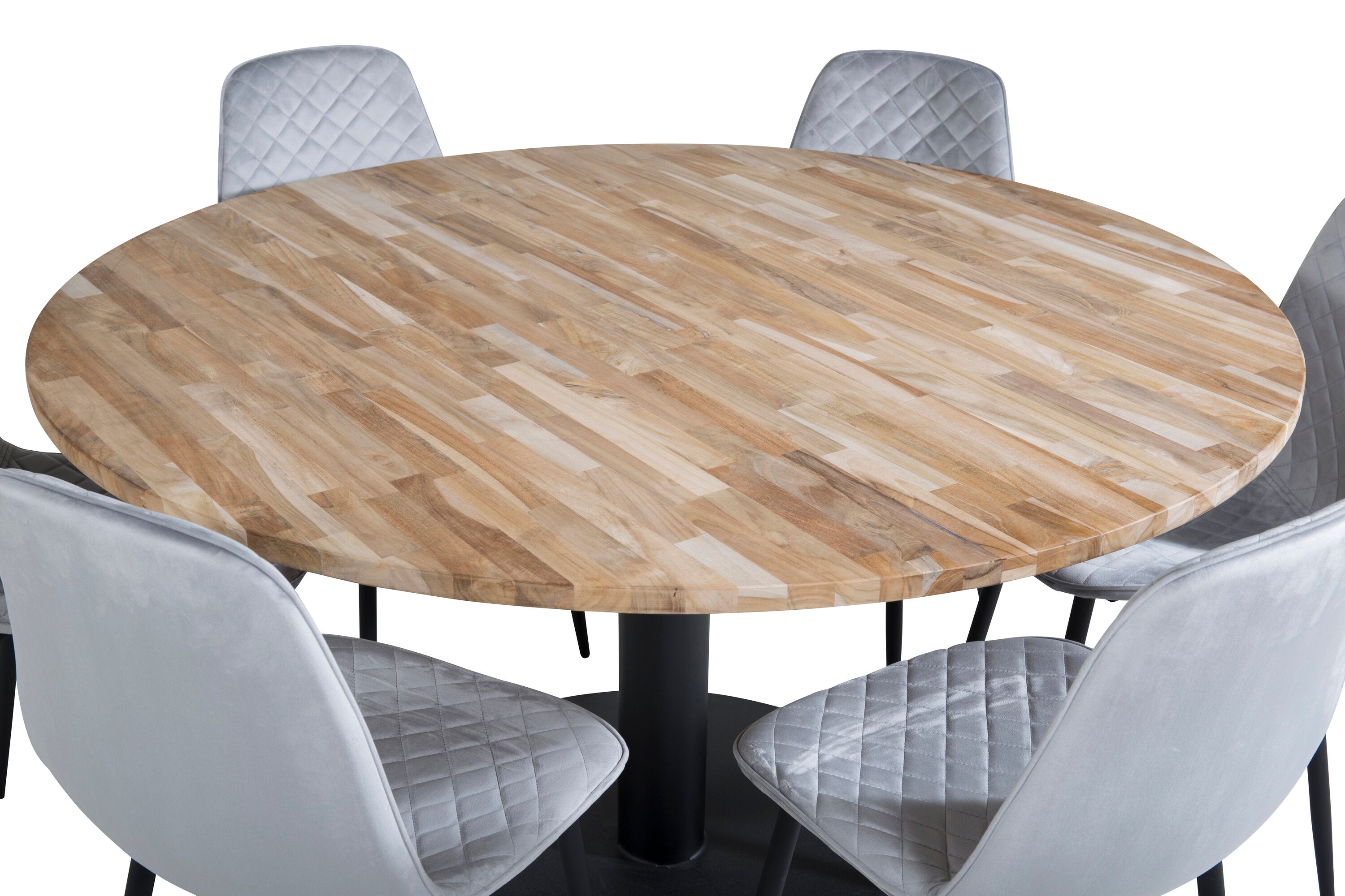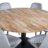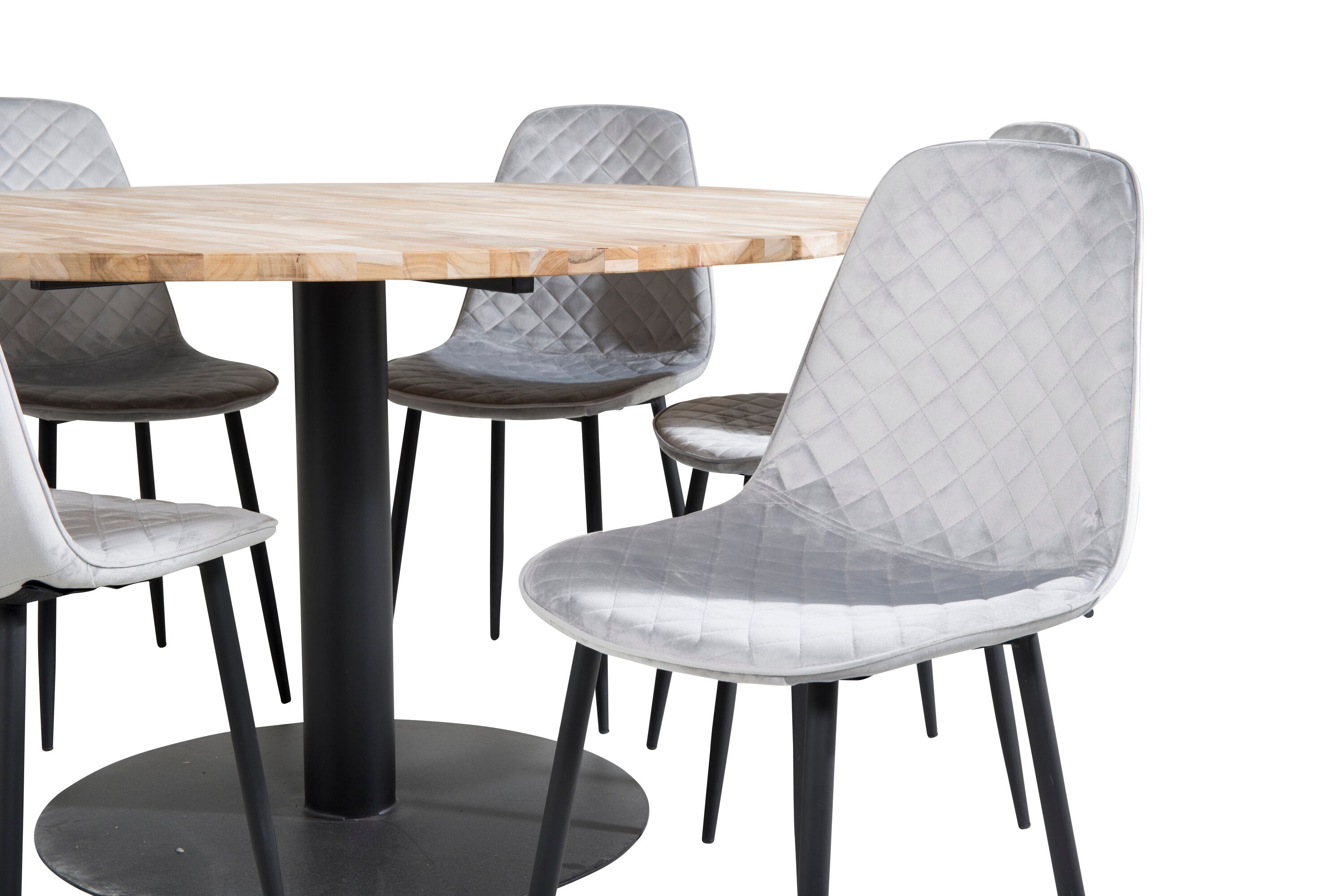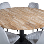 Kruhový stůl Cirebon - 140 cm - Přírodní / Černá+Polar Diamond Jídelní židle - Černé nohy - Šedá Velvet_6