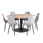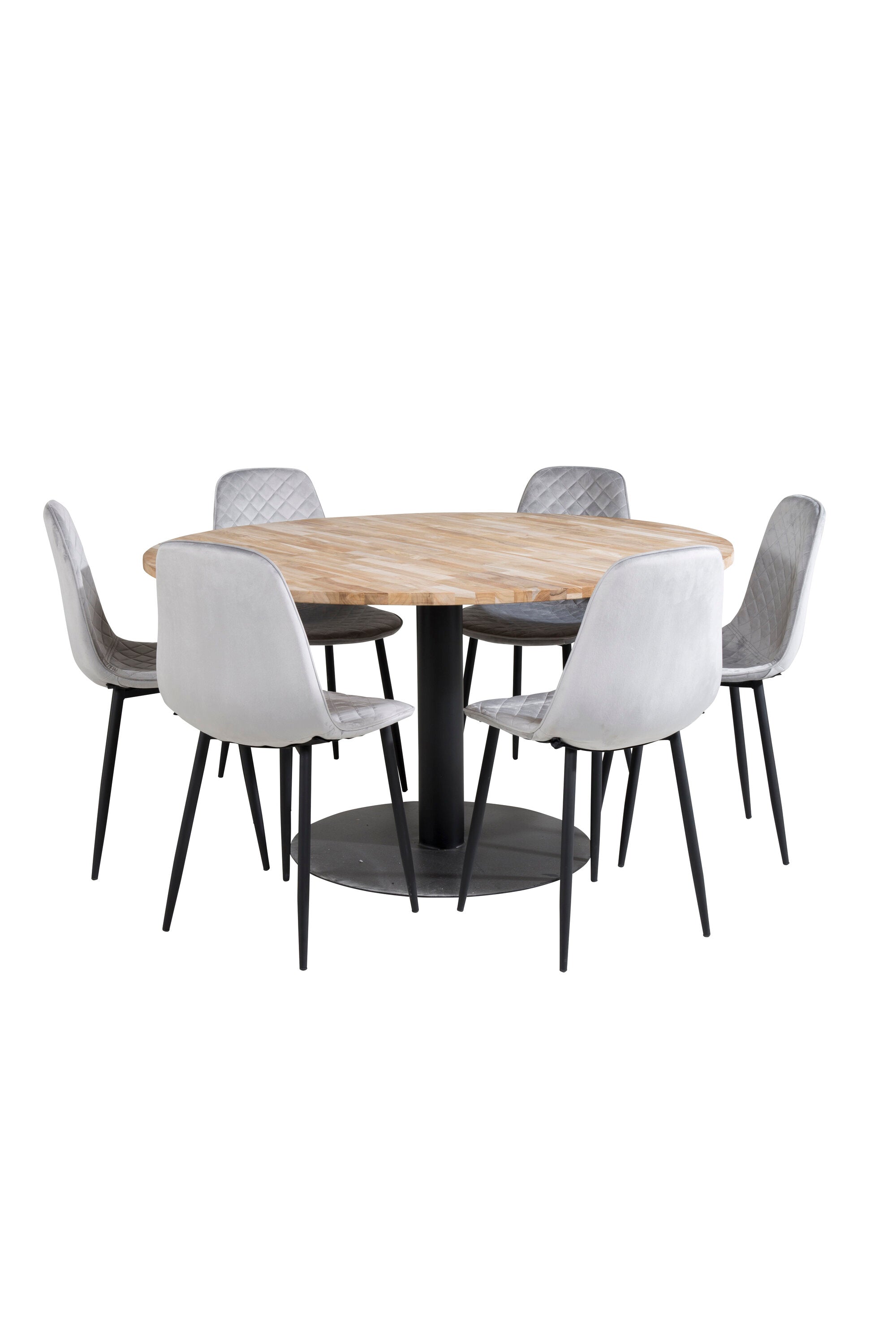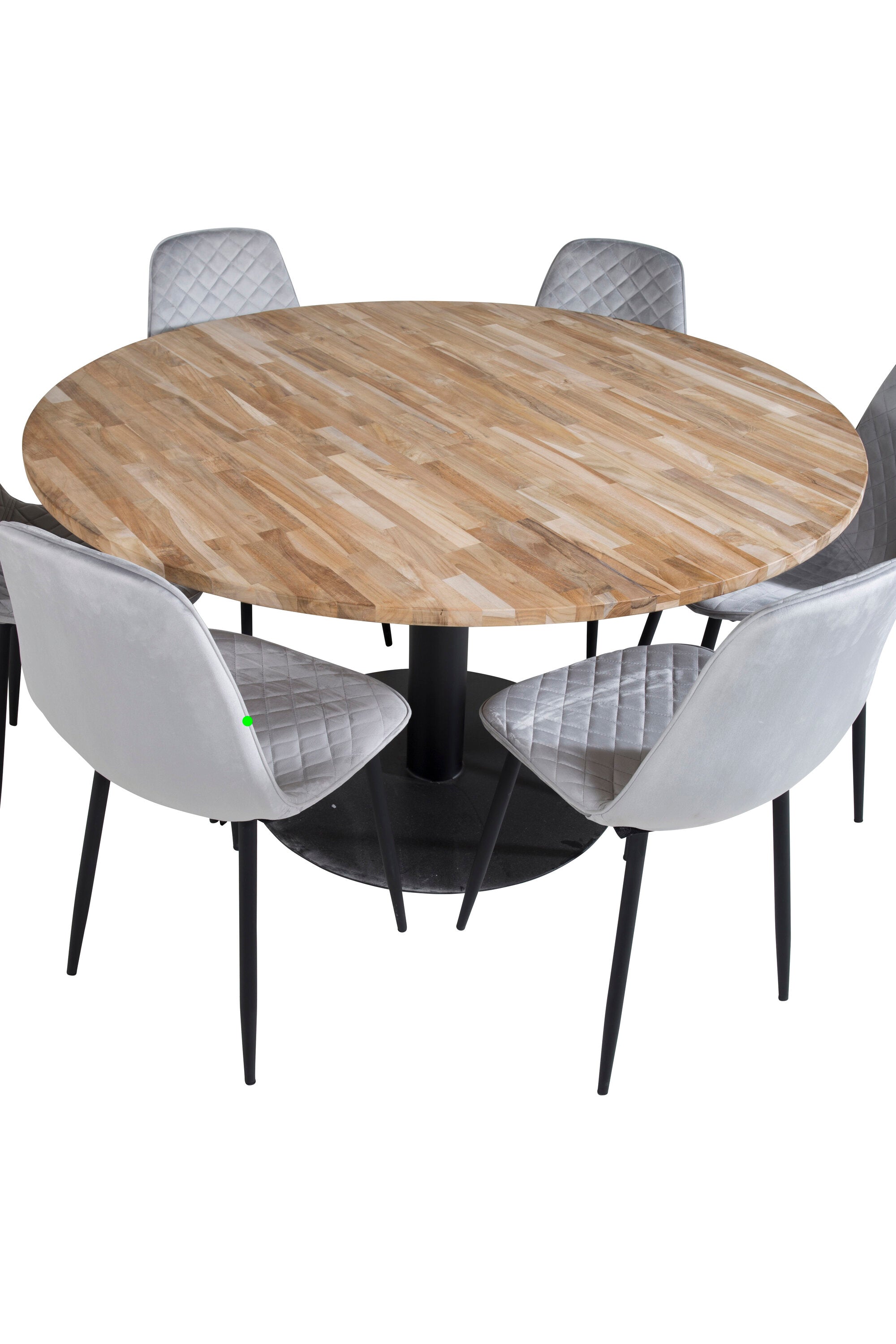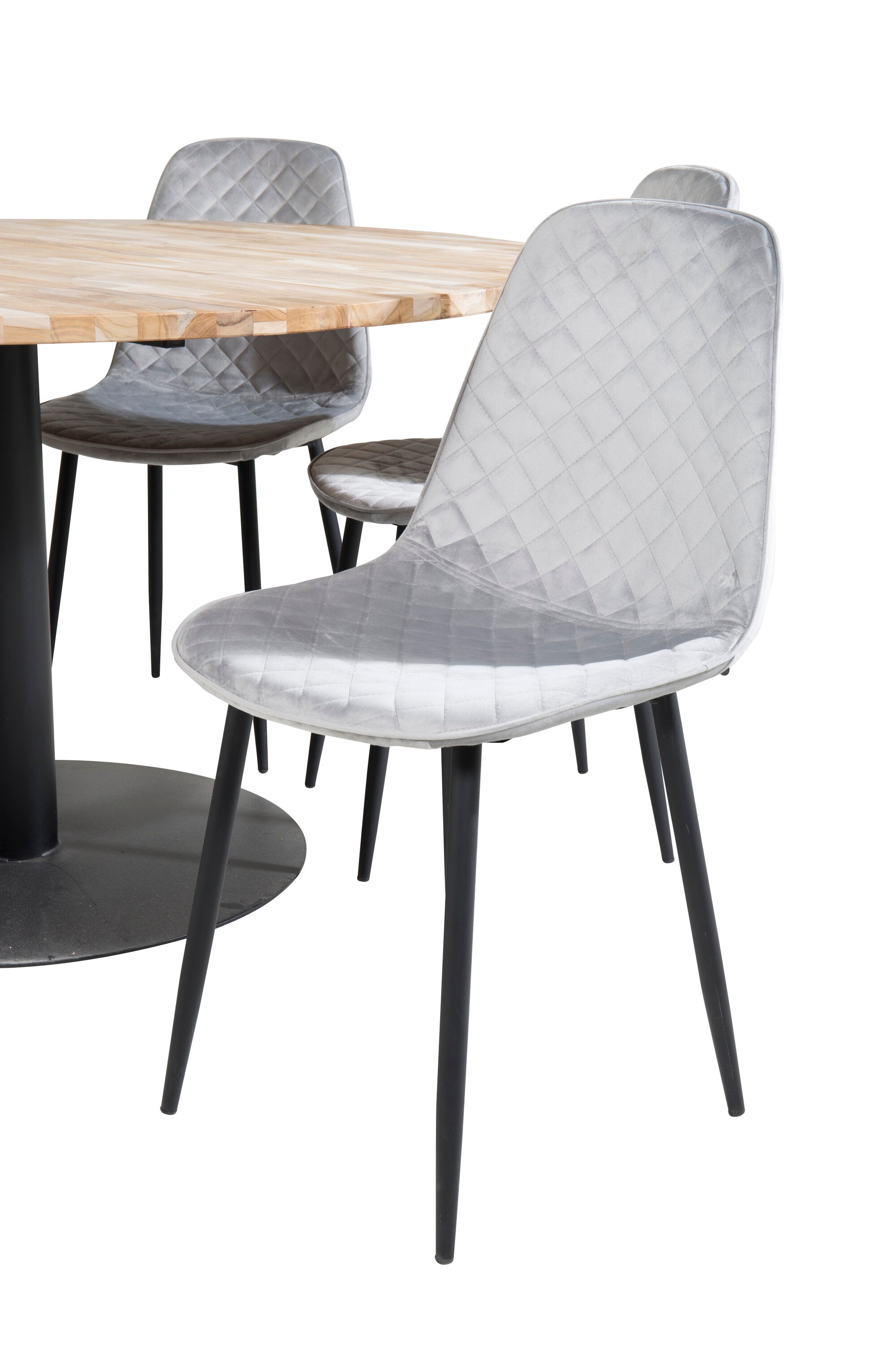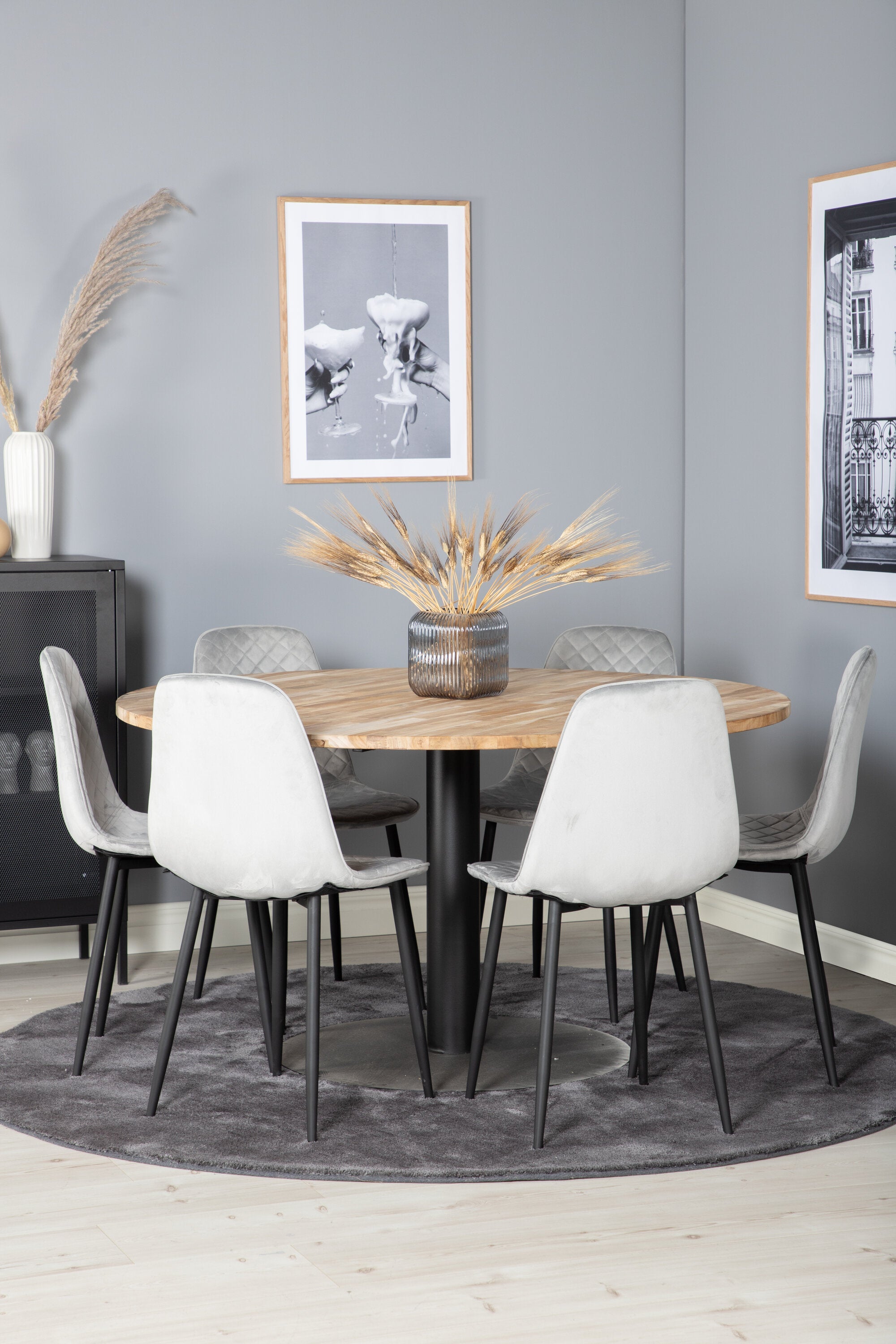 Kruhový stůl Cirebon - 140 cm - Přírodní / Černá+Polar Diamond Jídelní židle - Černé nohy - Šedá Velvet_6