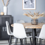 Nákup předem sestavené skupiny potravin je jak trendově bezpečný, tak praktický! Zde kombinujeme náš kulatý jídelní stůl Cirebon s našimi jídelními židlemi Polar vhodnými k sezení. Nechte srdce domova charakterizovat vaši novou, poutavou skupinu potravin.