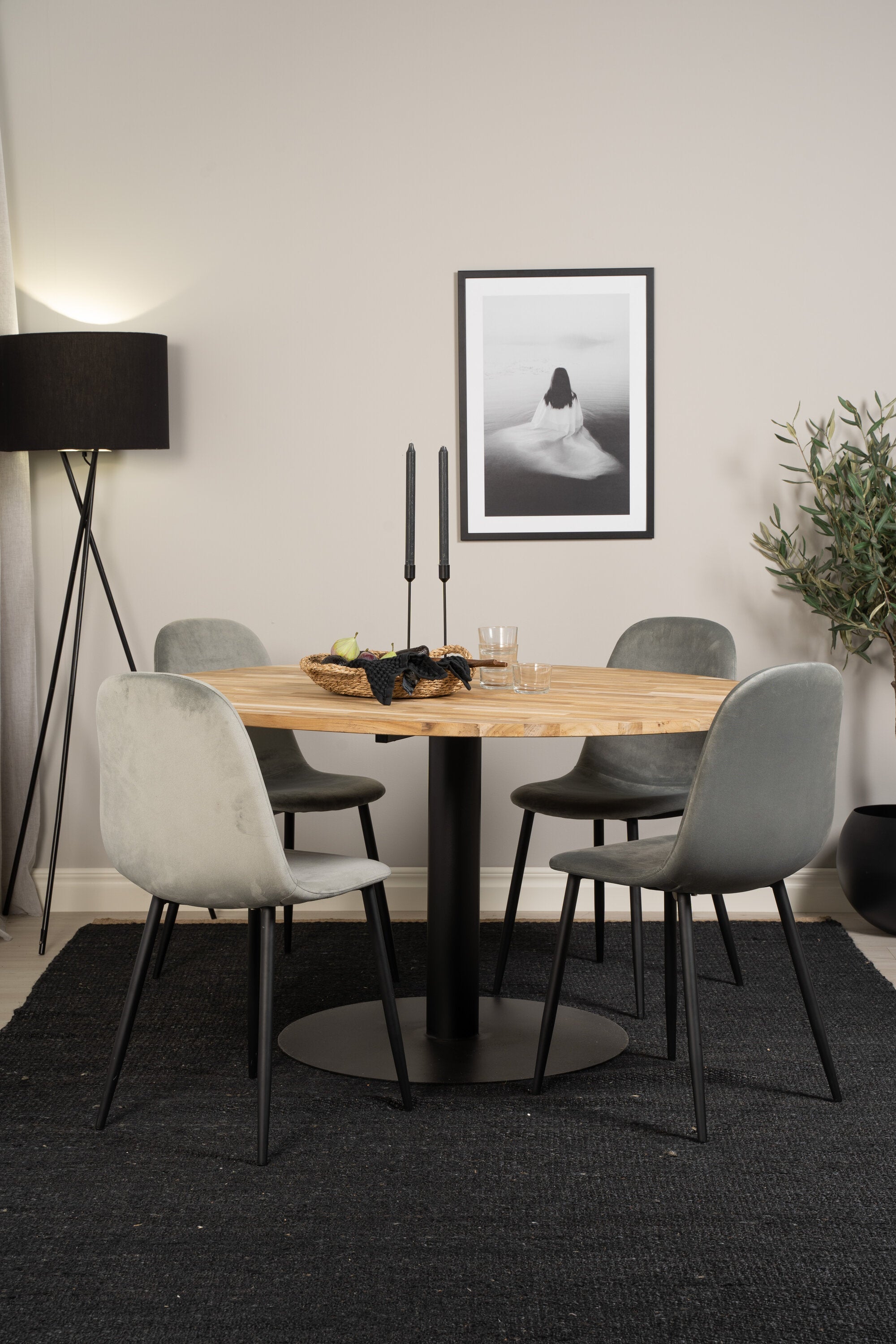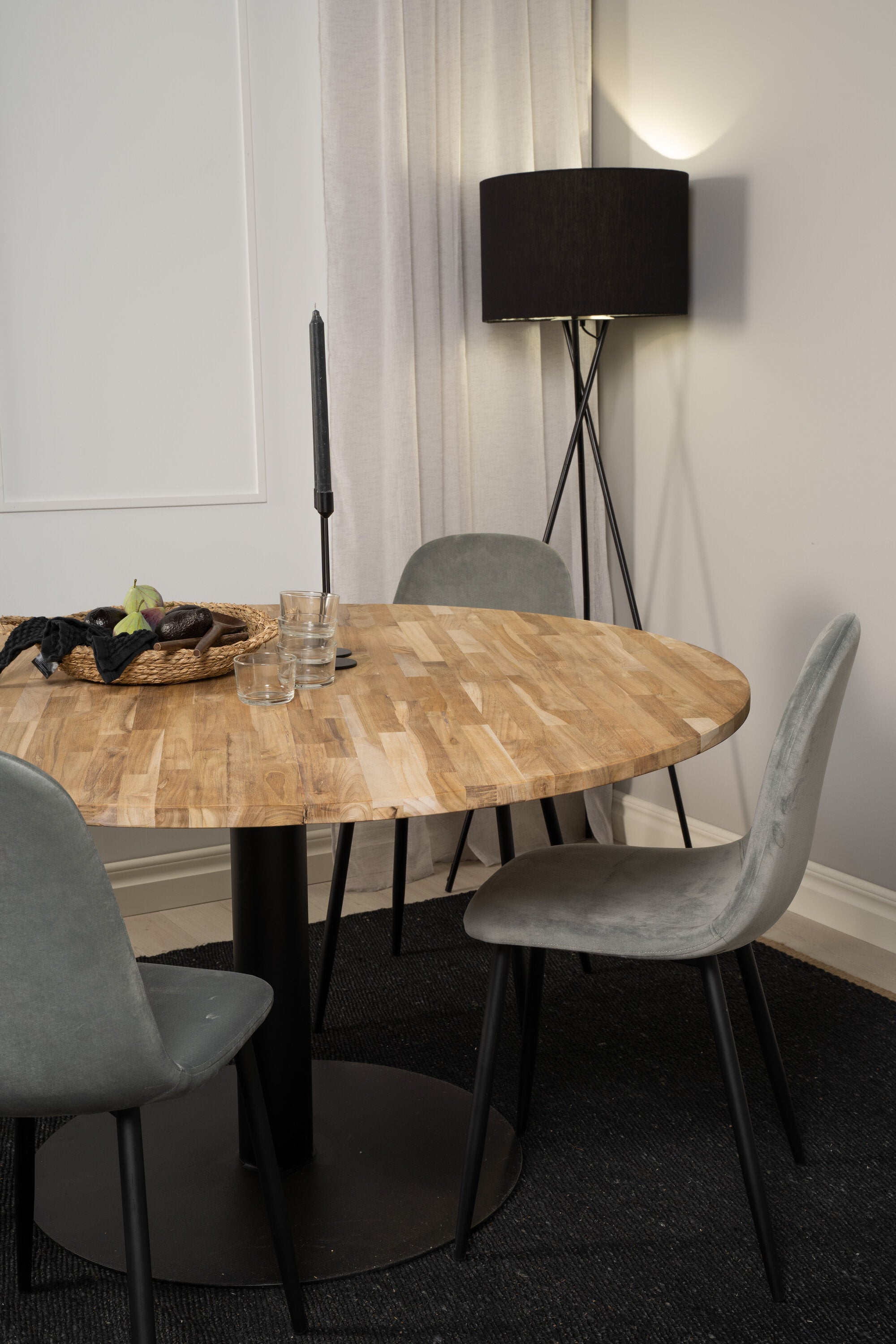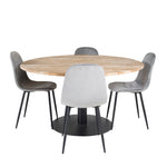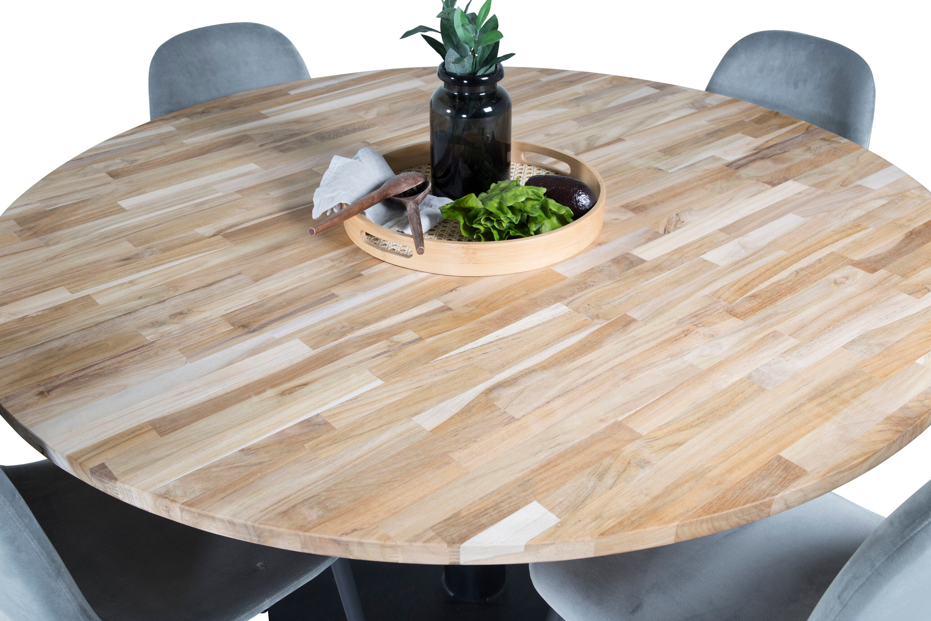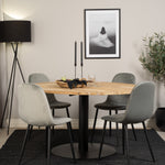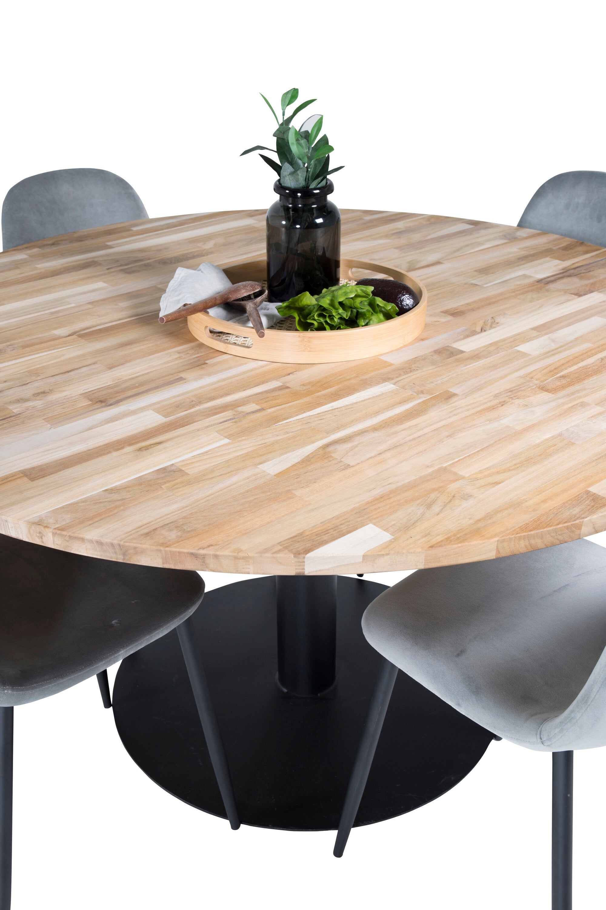 Kruhový stůl Cirebon - 140 cm - Teak / Černá + Polar Jídelní židle - Černé nohy / Světle šedá Velvet_4