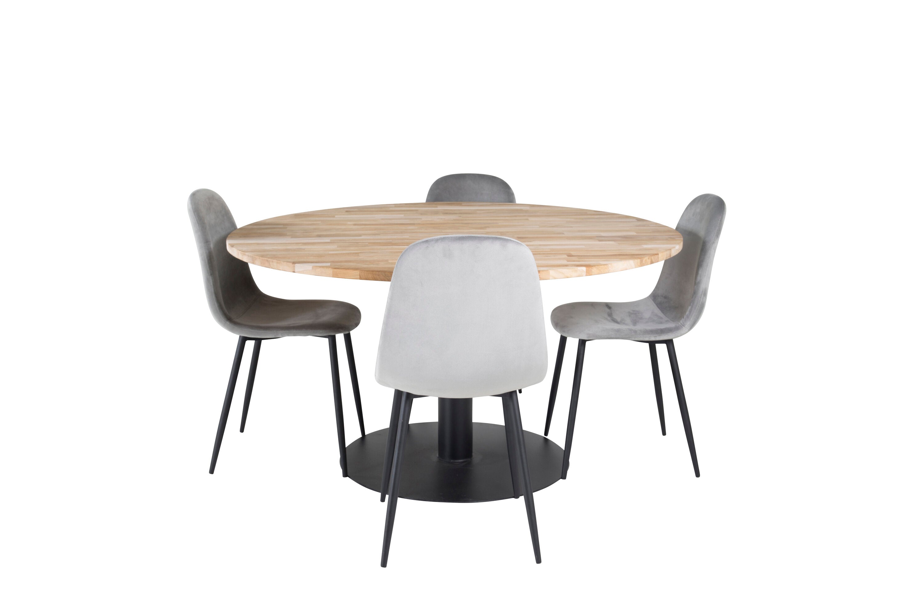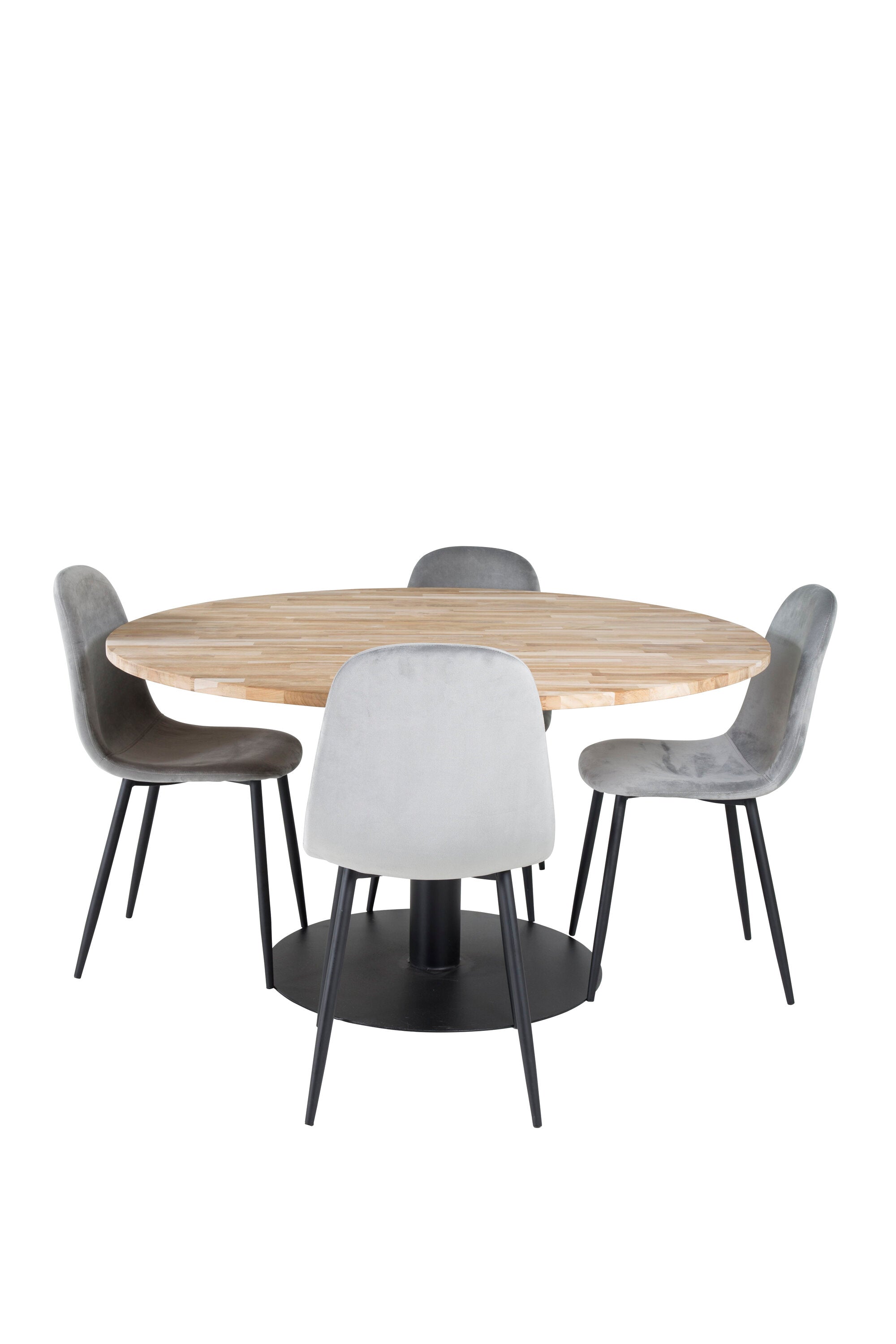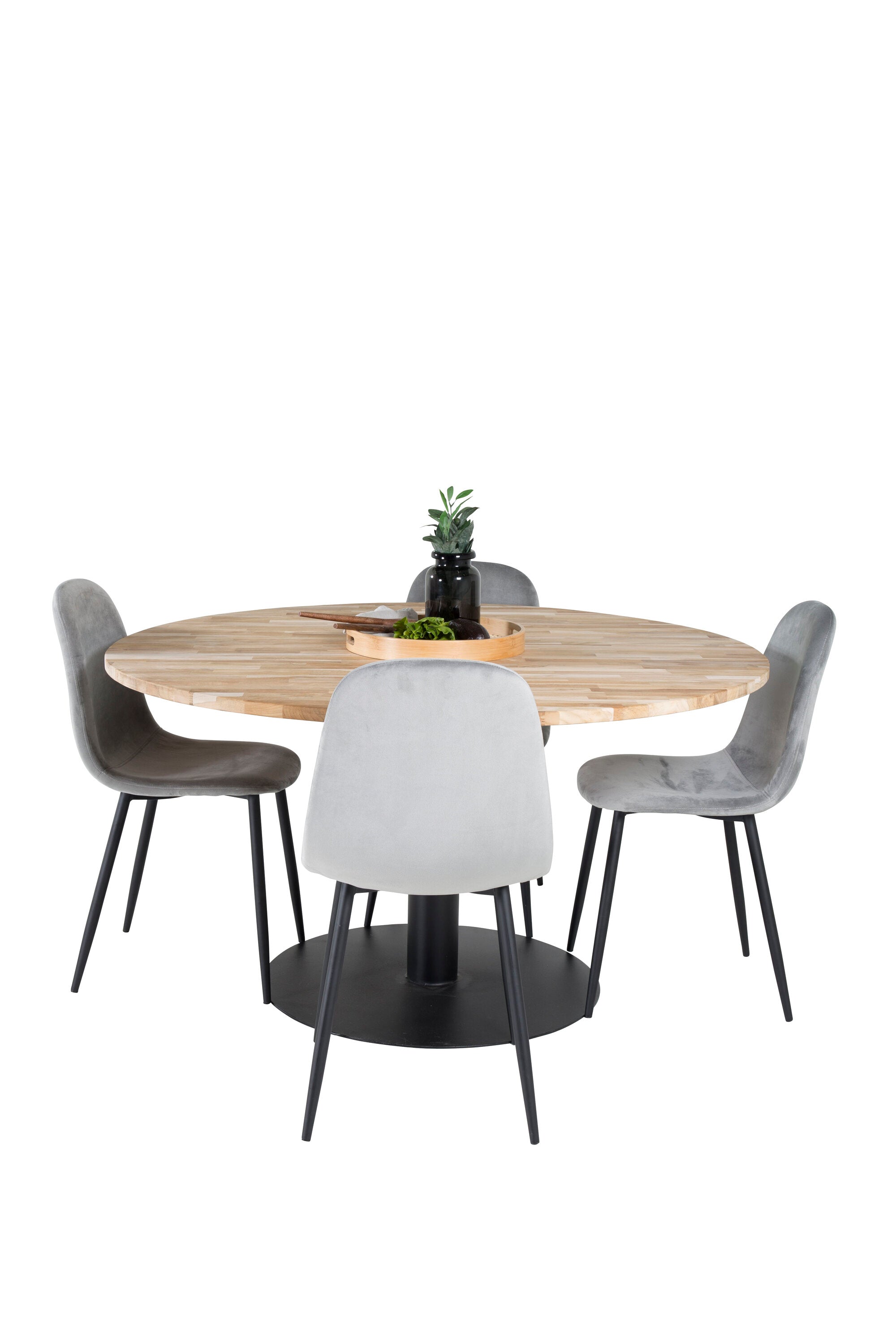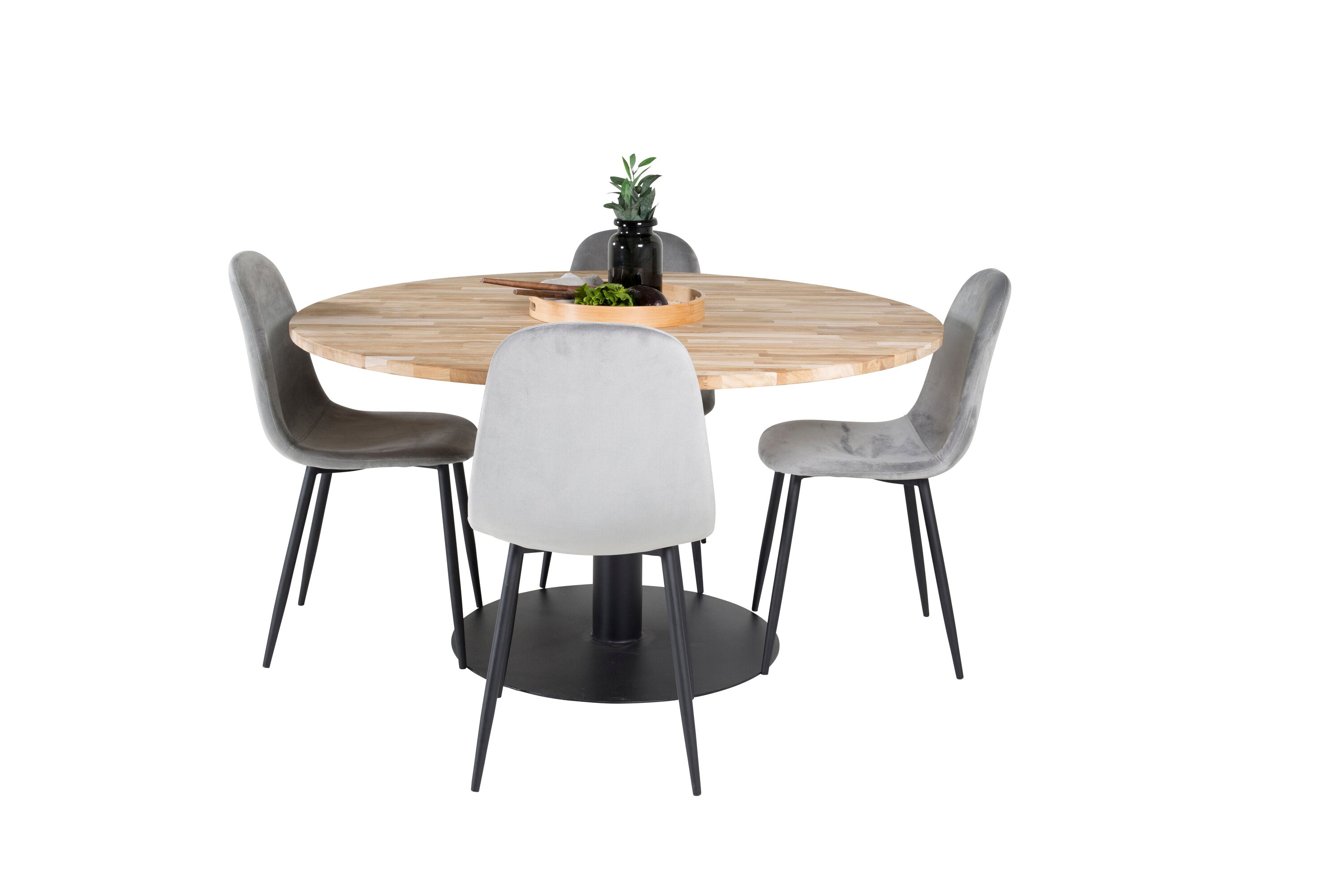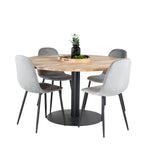 Kruhový stůl Cirebon - 140 cm - Teak / Černá + Polar Jídelní židle - Černé nohy / Světle šedá Velvet_4