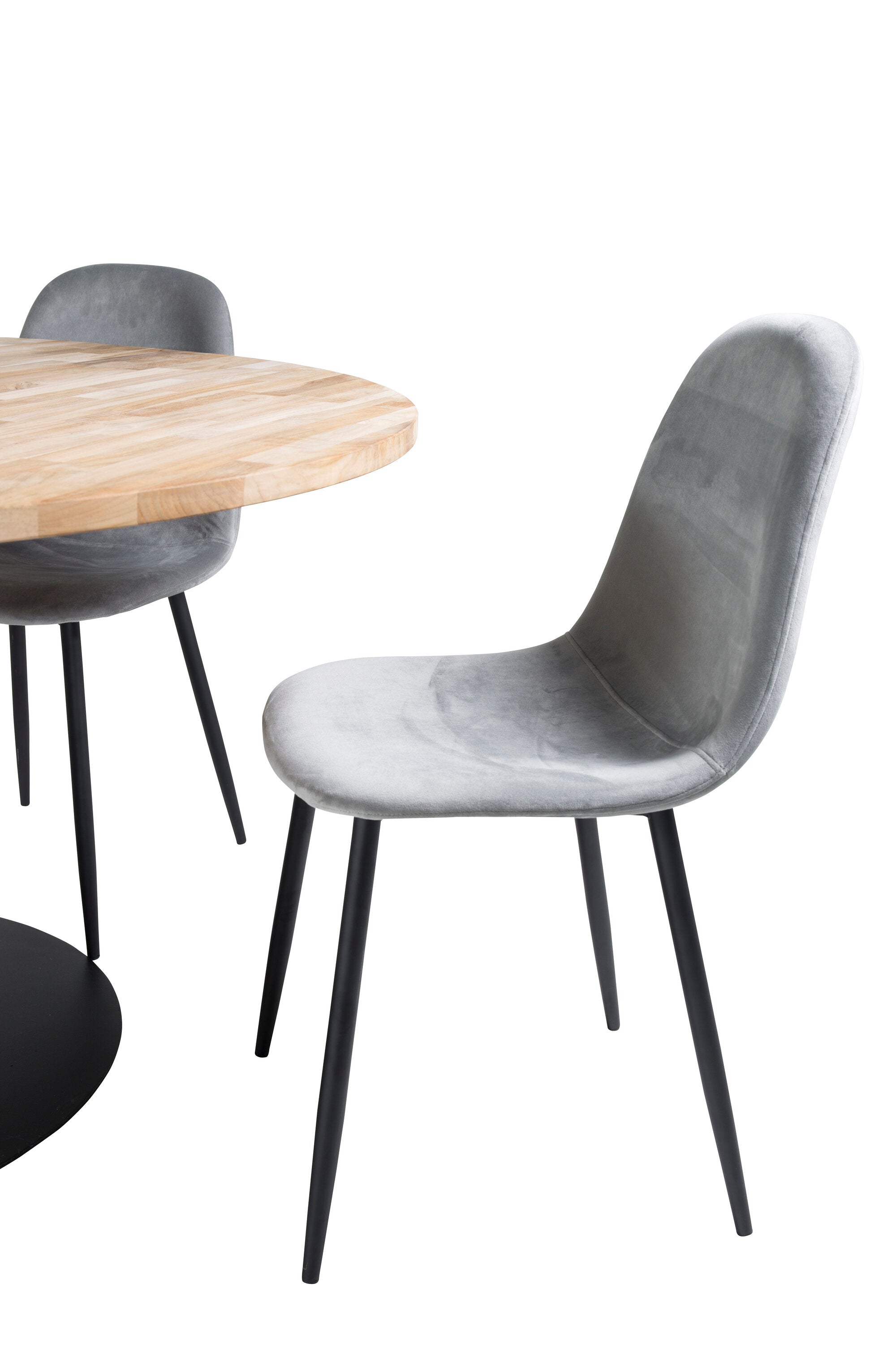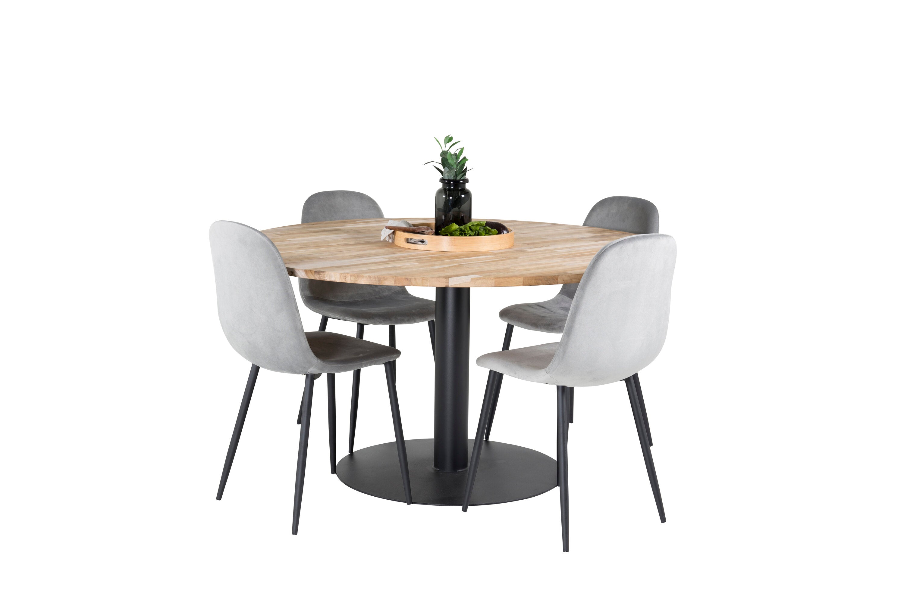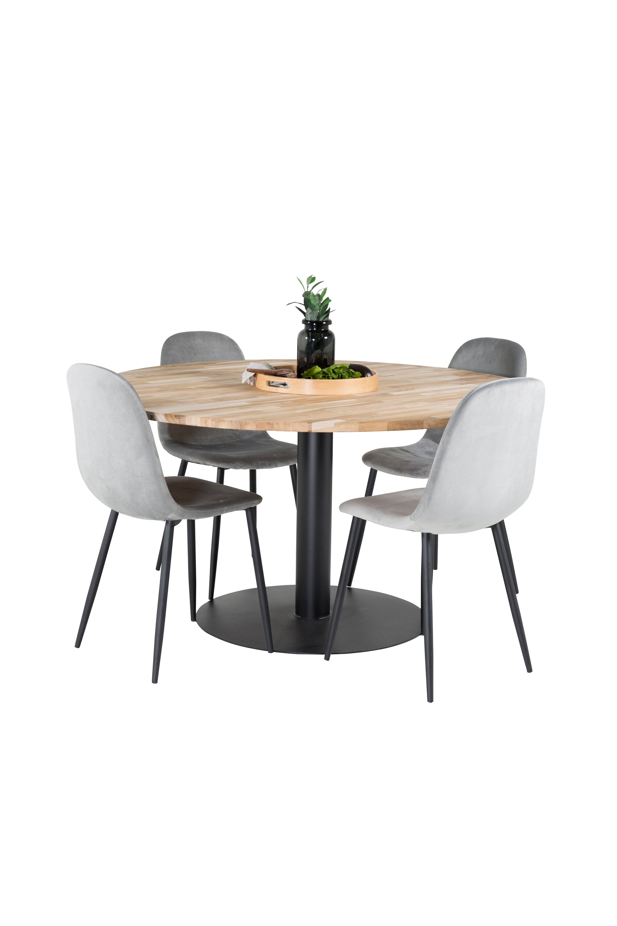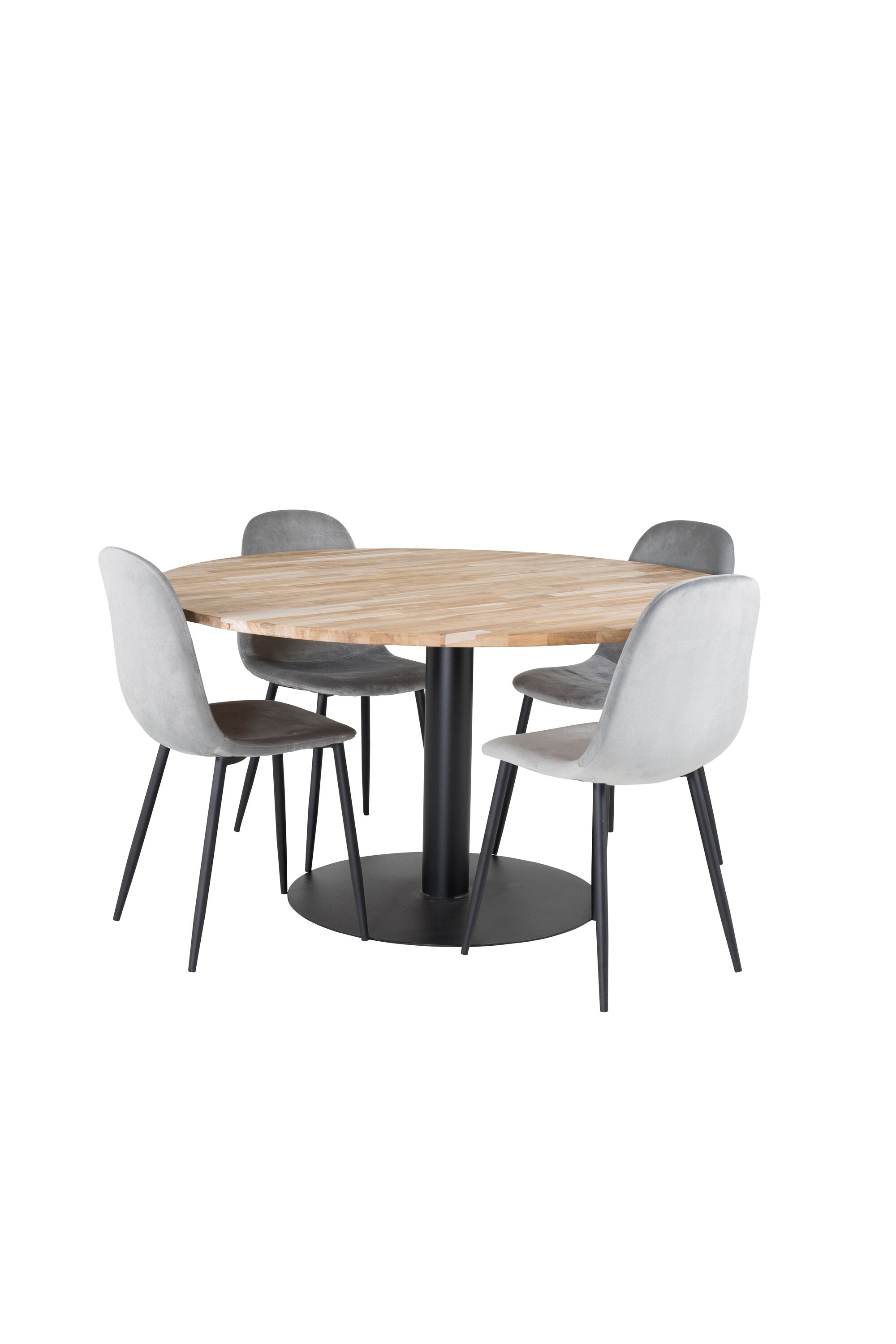 Kruhový stůl Cirebon - 140 cm - Teak / Černá + Polar Jídelní židle - Černé nohy / Světle šedá Velvet_4