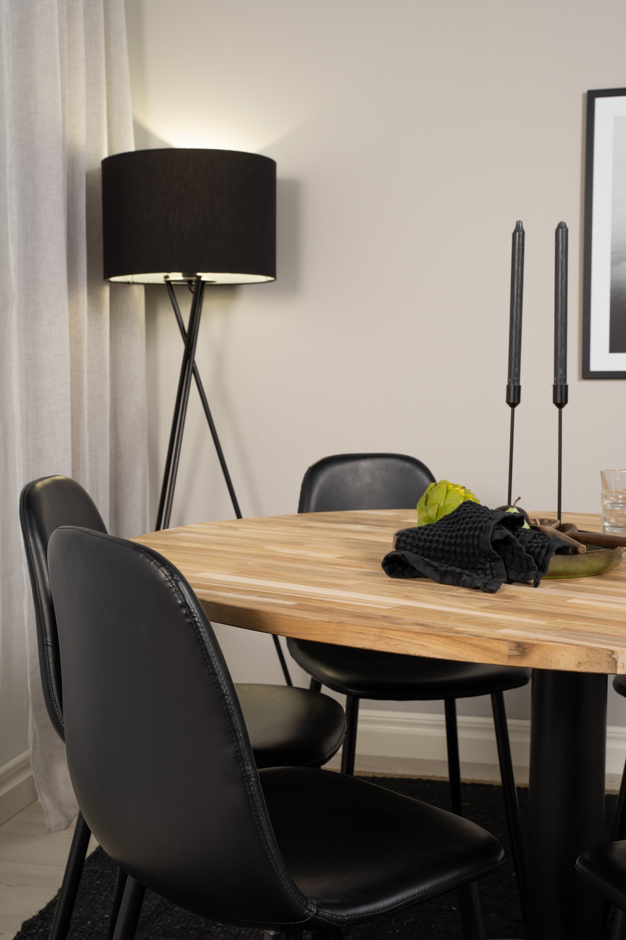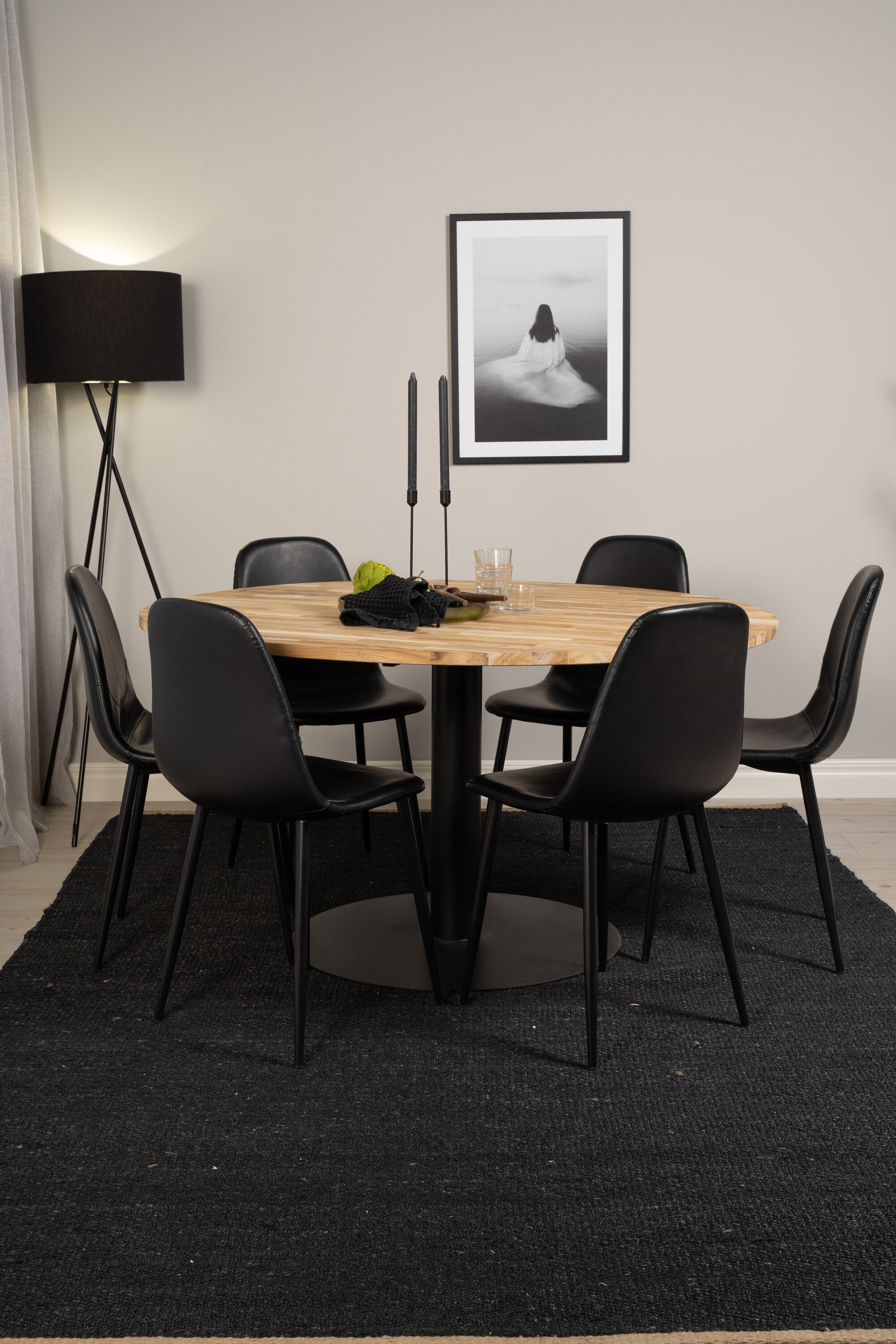 Kruhový stůl Cirebon - 140 cm - Teak / Černá + Polar Matstol - Svart / Svart PU _6