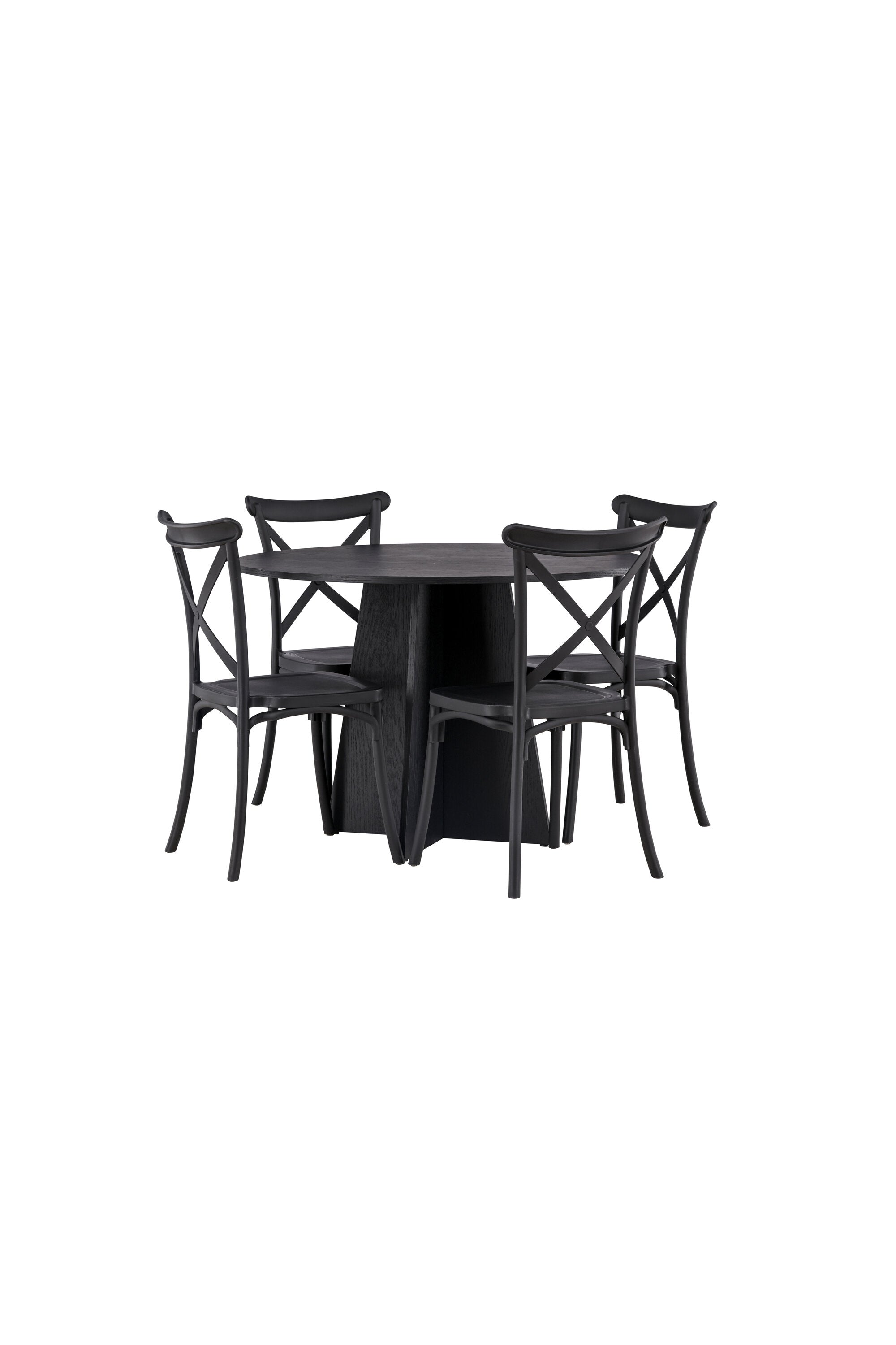 Kulatý jídelní stůl Bootcut - černá / černá Fanéer + jídelní židle Crosett - matná černá / matná černá plast _4