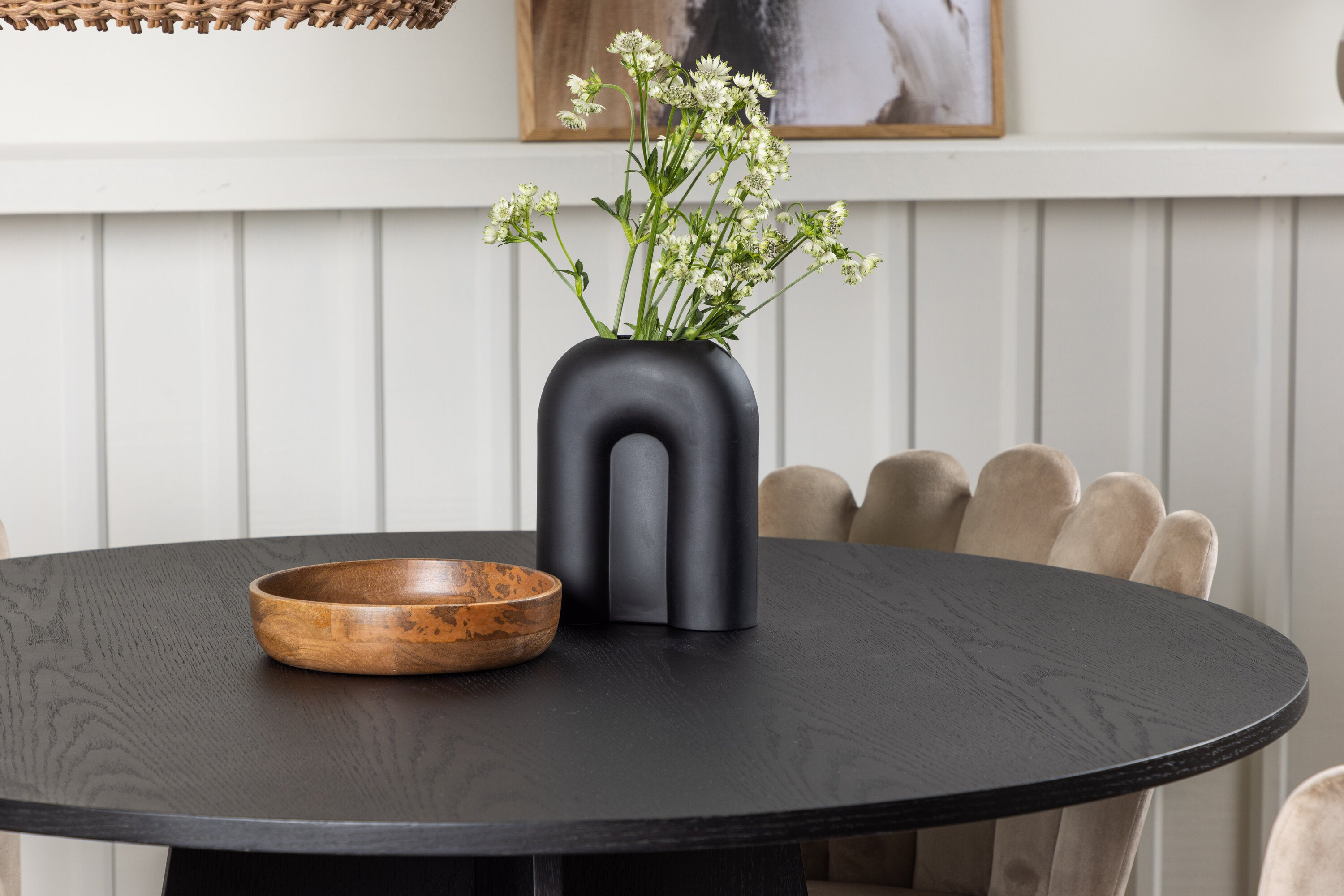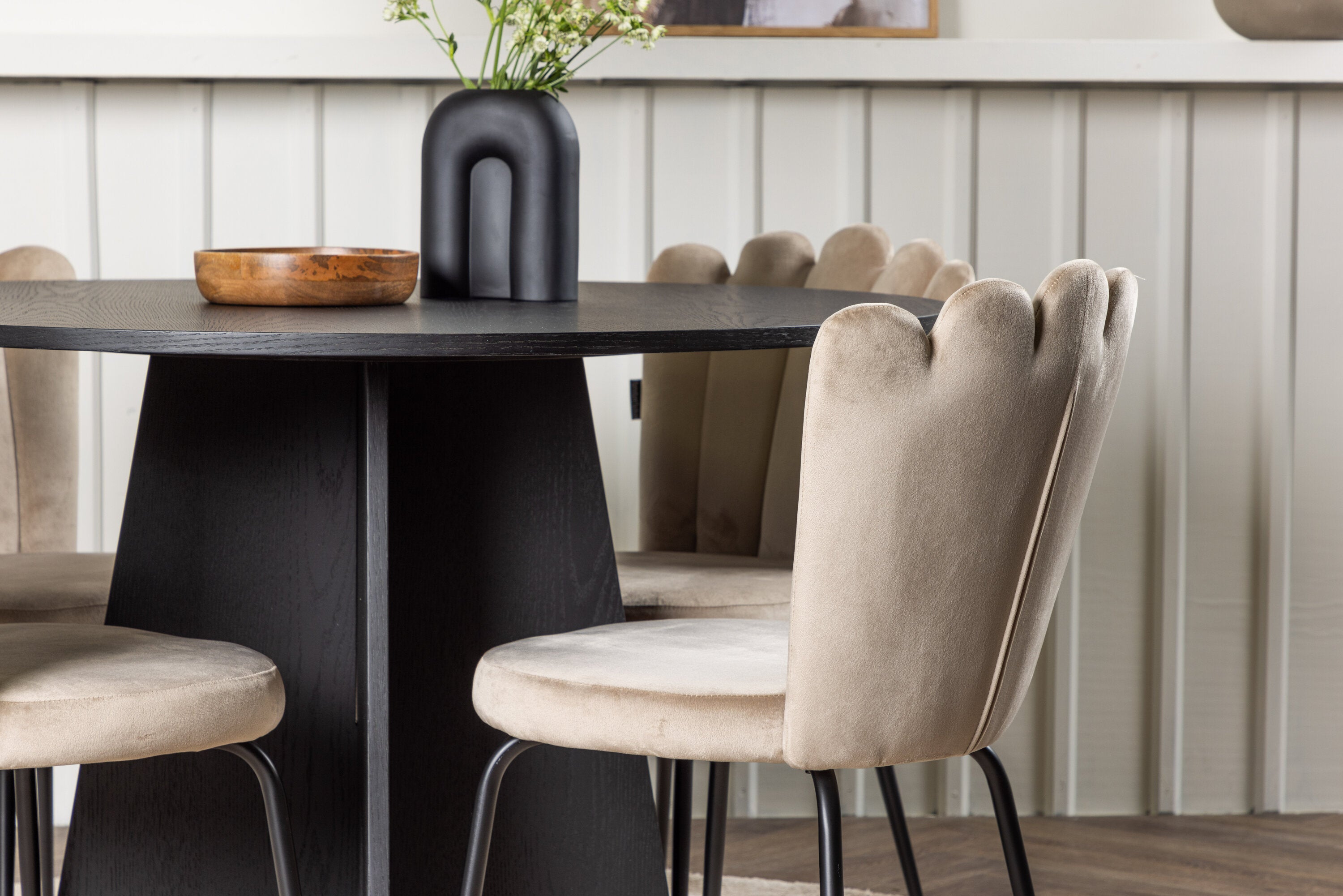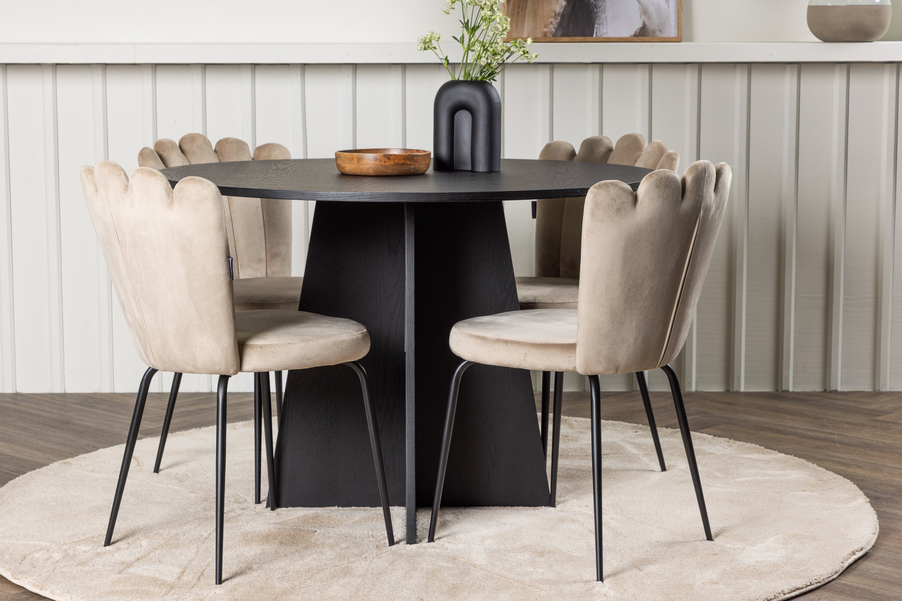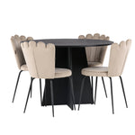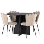Kulatý jídelní stůl Bootcut – černá / černá Fanéer + židle Limhamn Light – černá / béžová Velvet _4