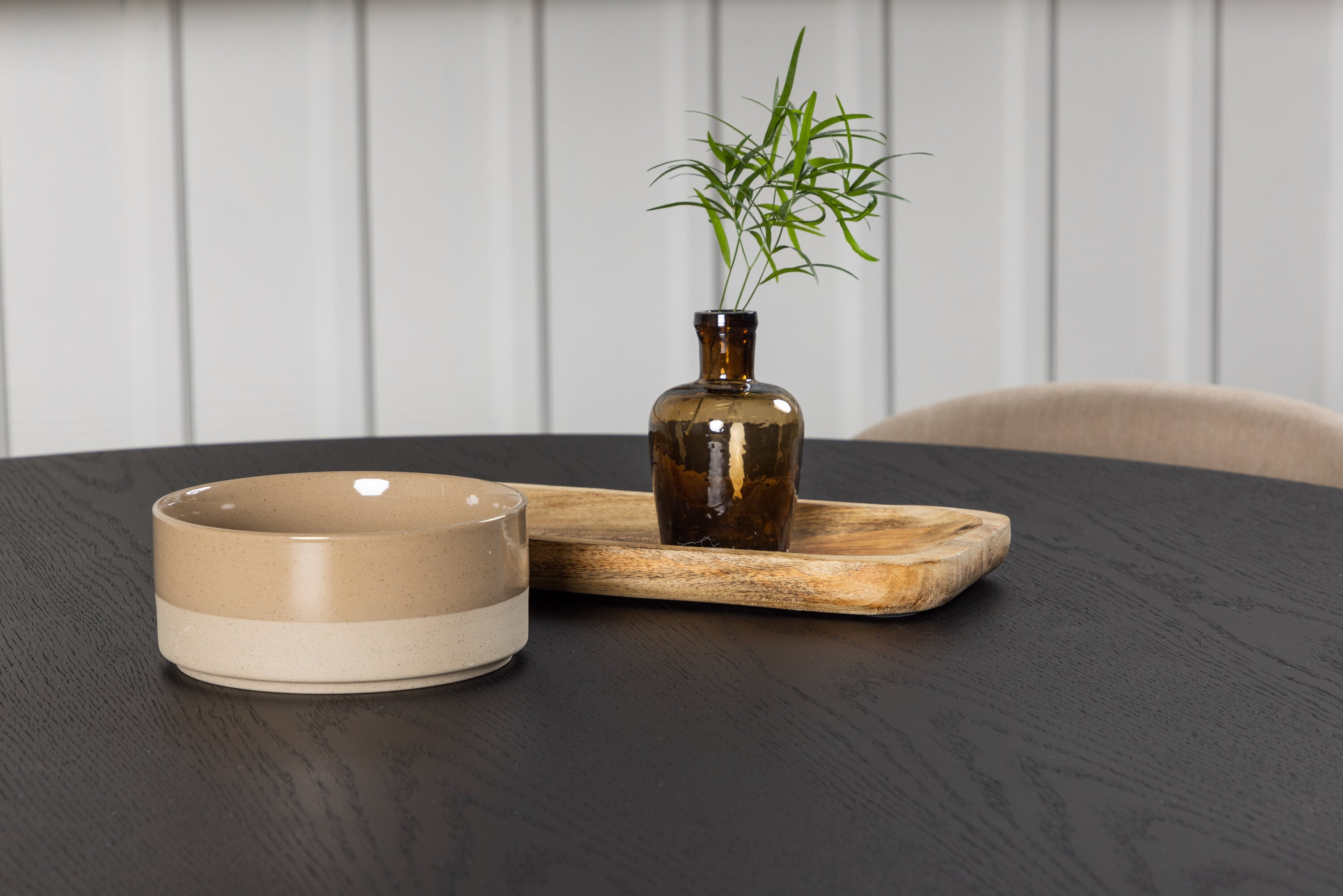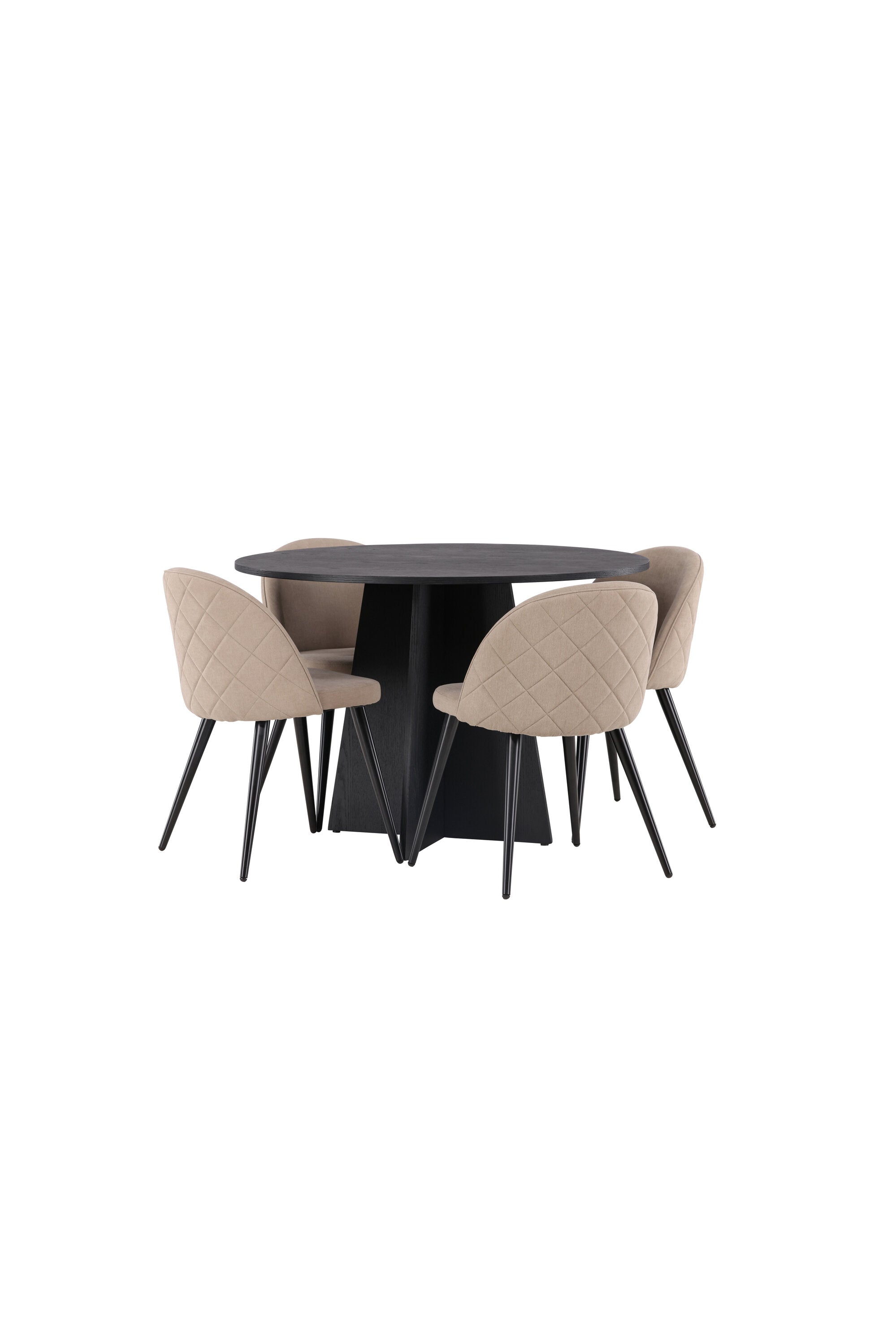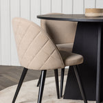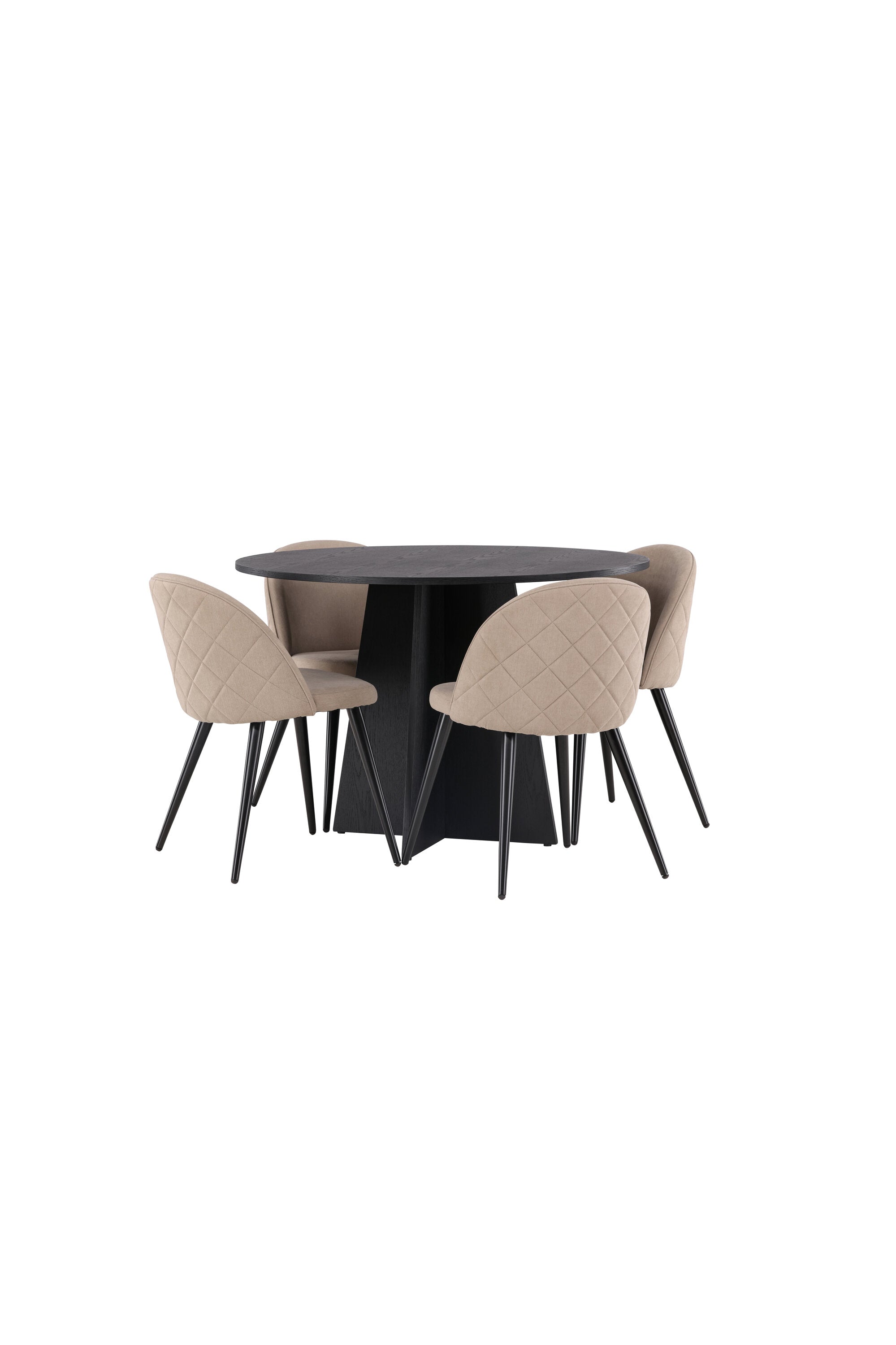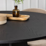 Kulatý jídelní stůl Bootcut - Černá / Černá Fanéer + Židle se sametovými stehy - Černá / Béžová látka (polyesterové prádlo) _4