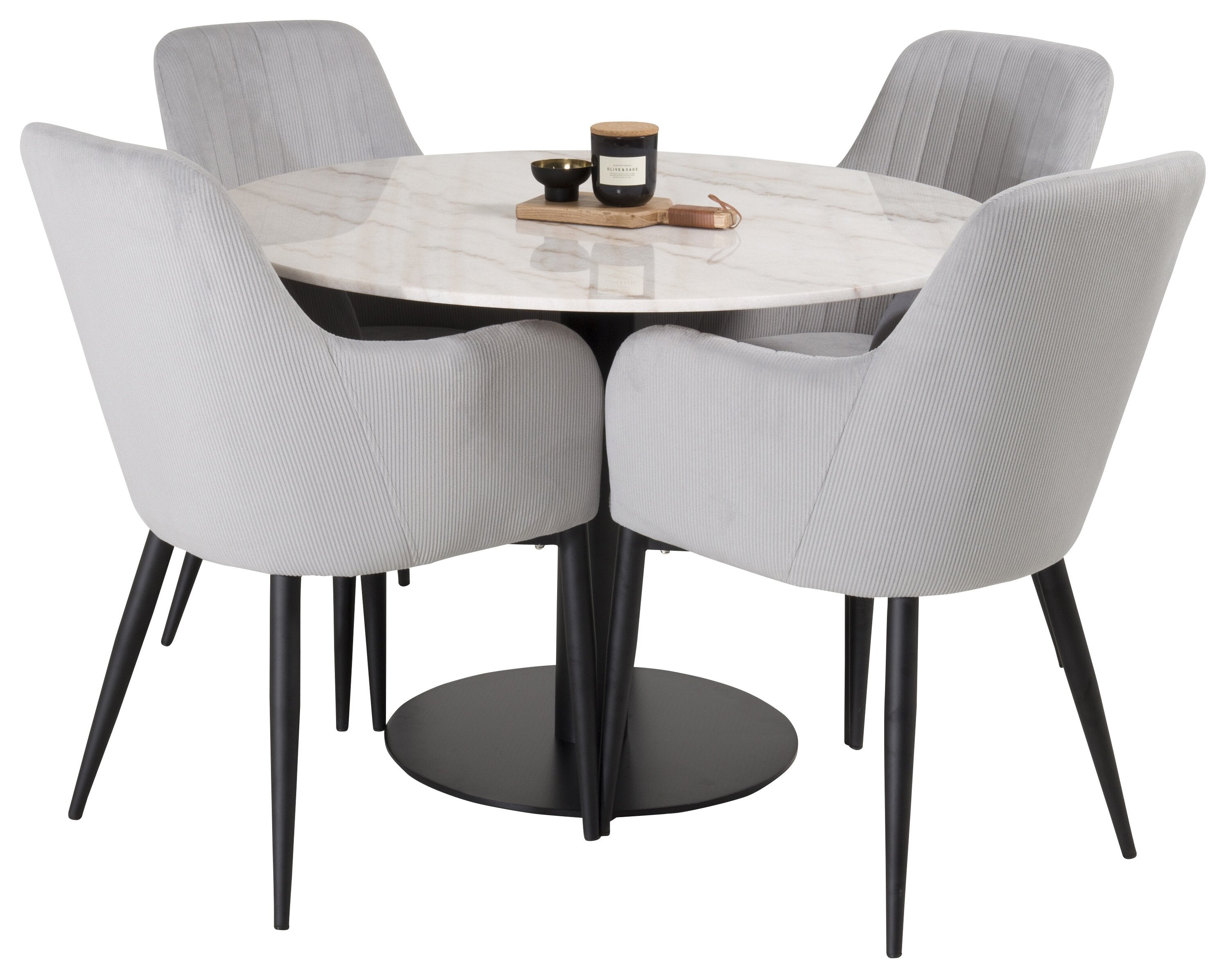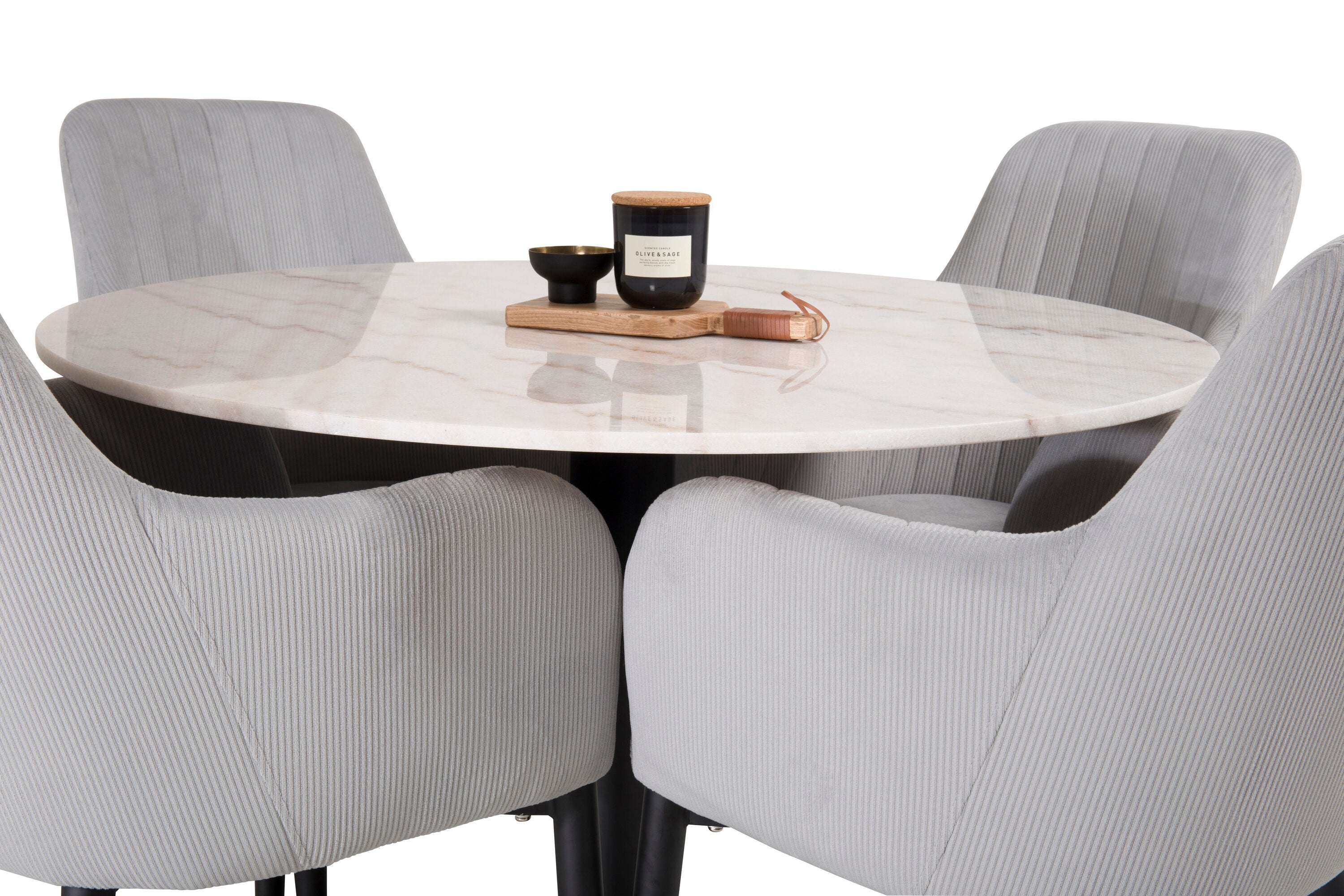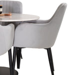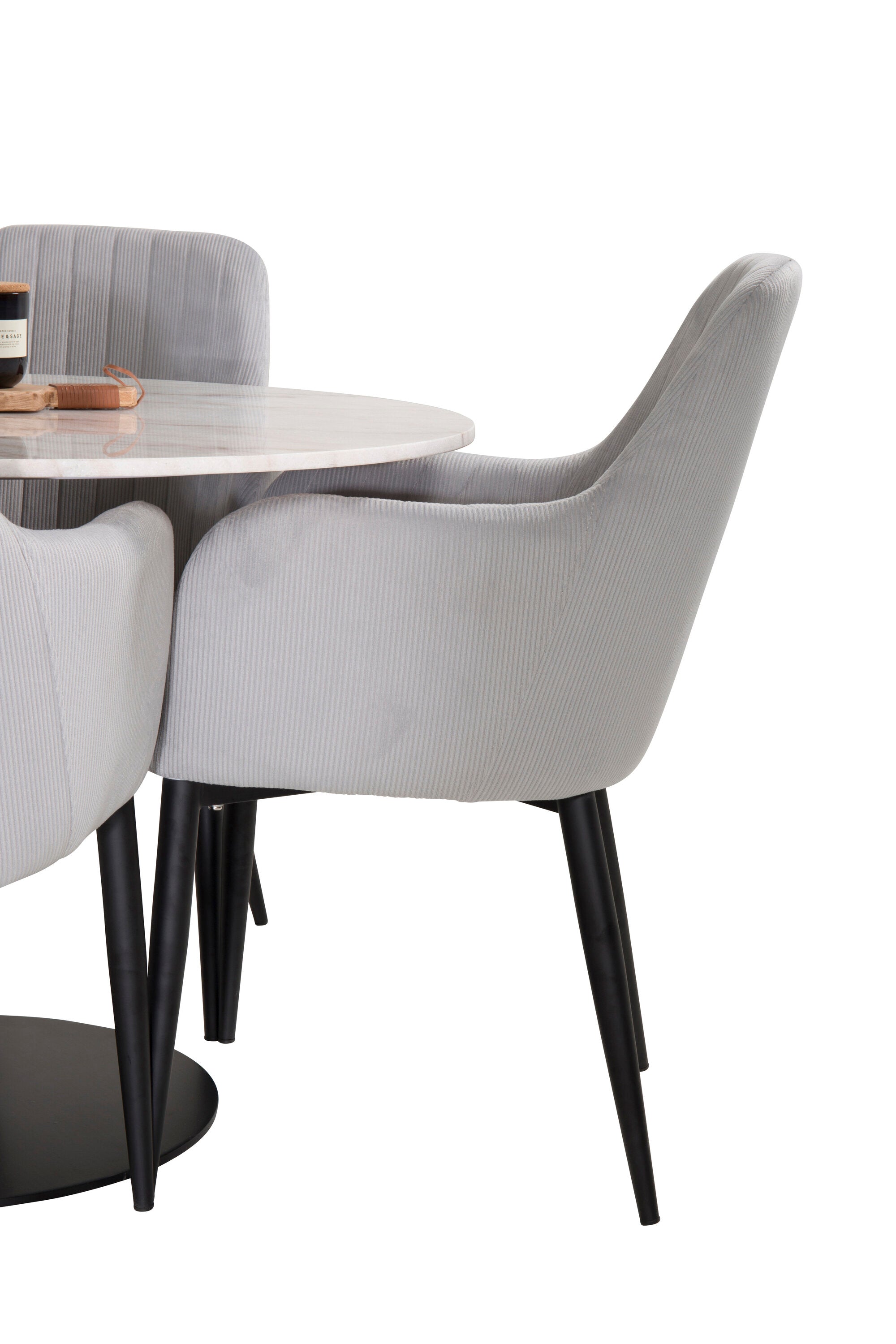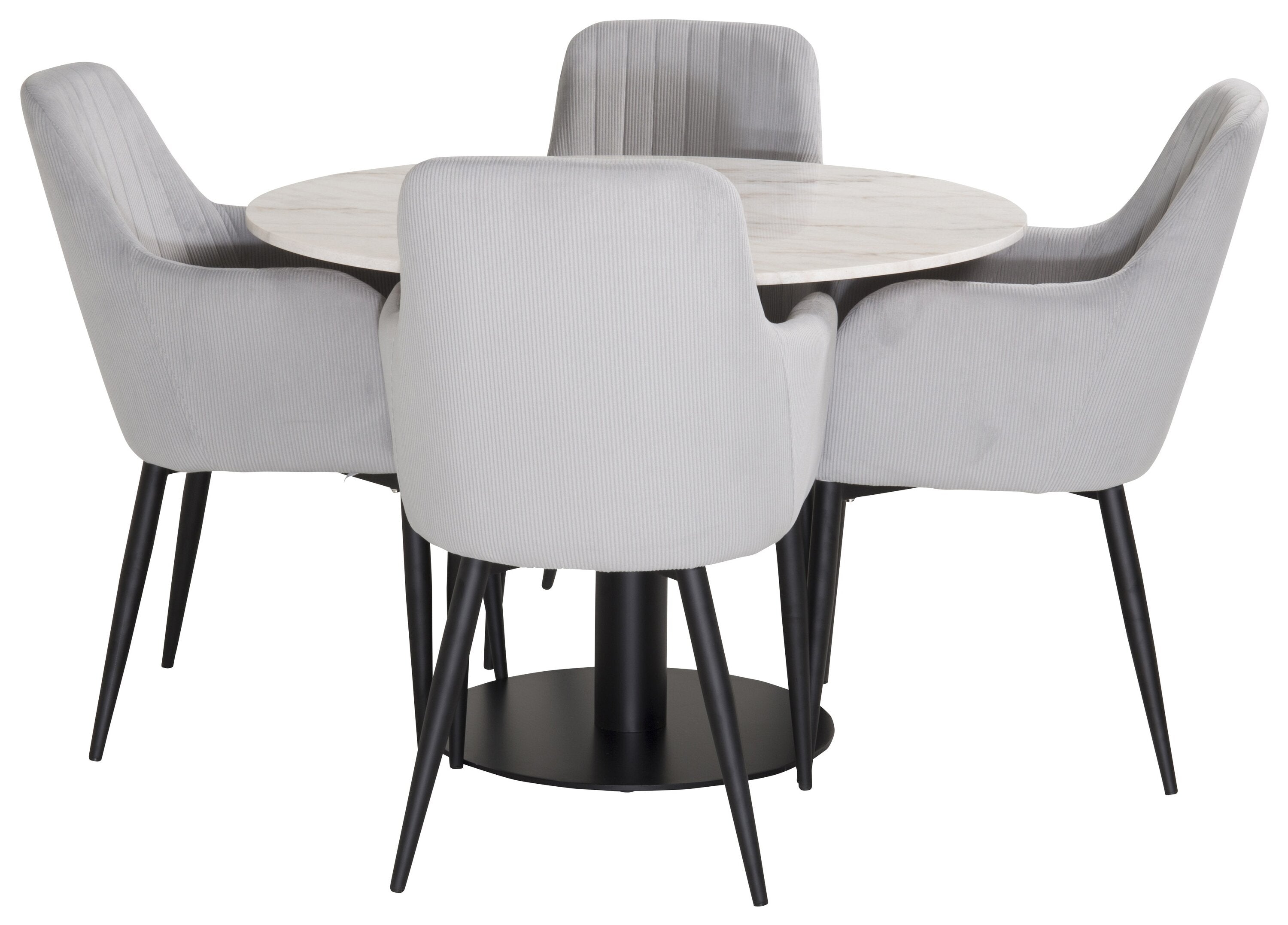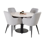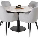 Kulatý jídelní stůl Estelle 106 cm Bílý mramor / černé nohy + komfortní jídelní židle - černé nohy / světle šedý manšestr _4