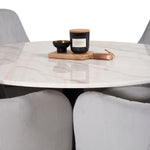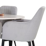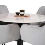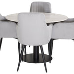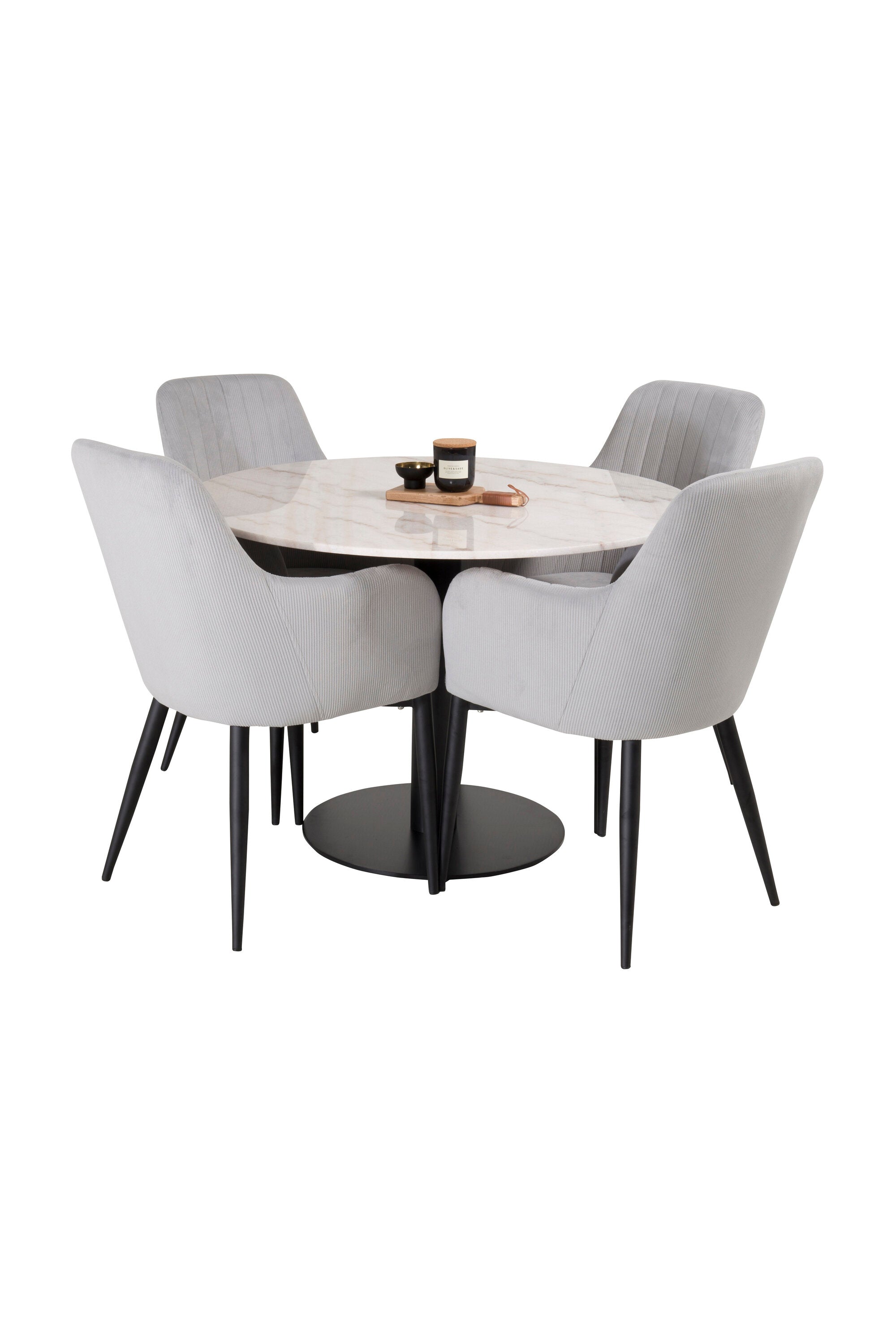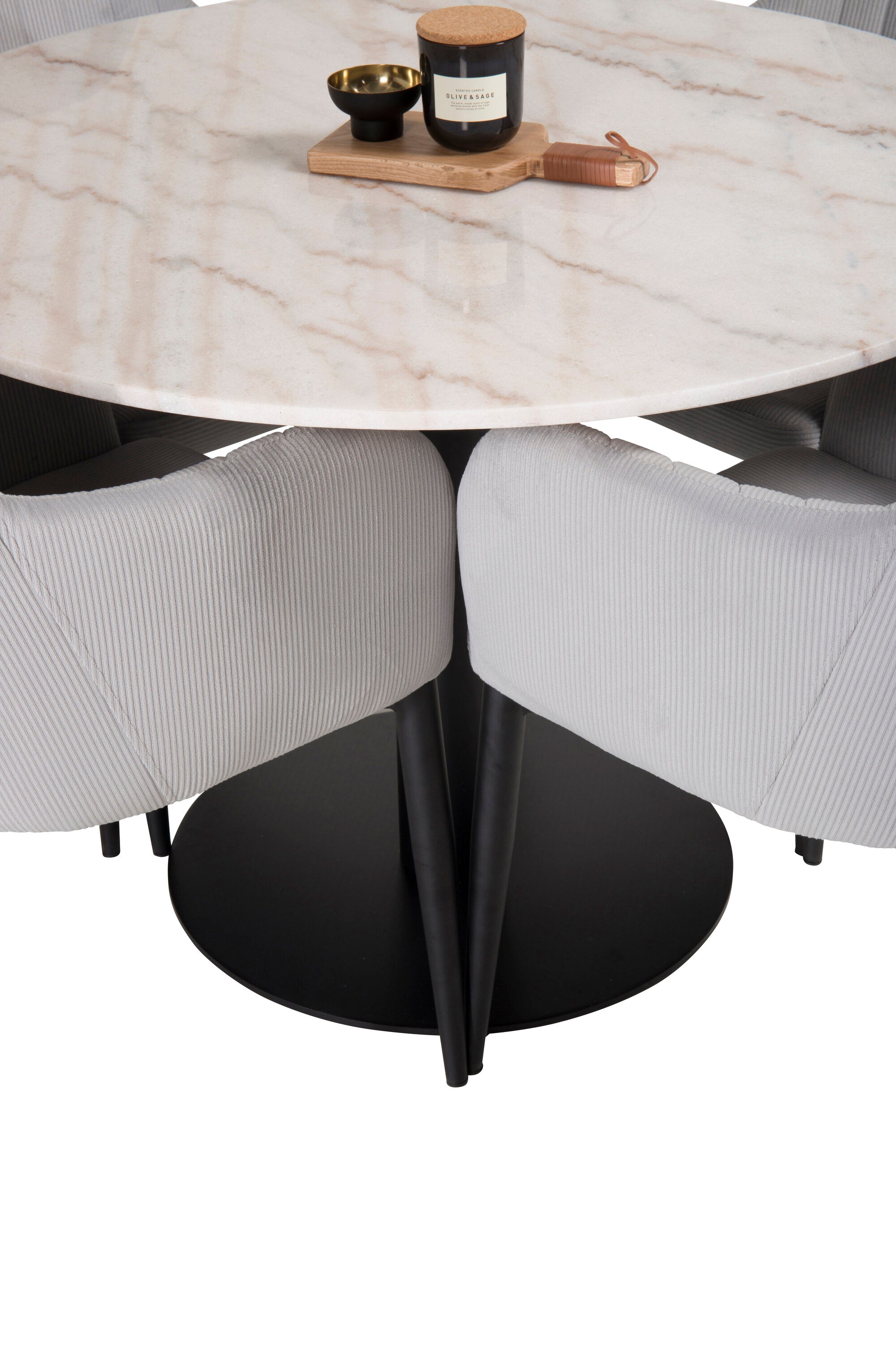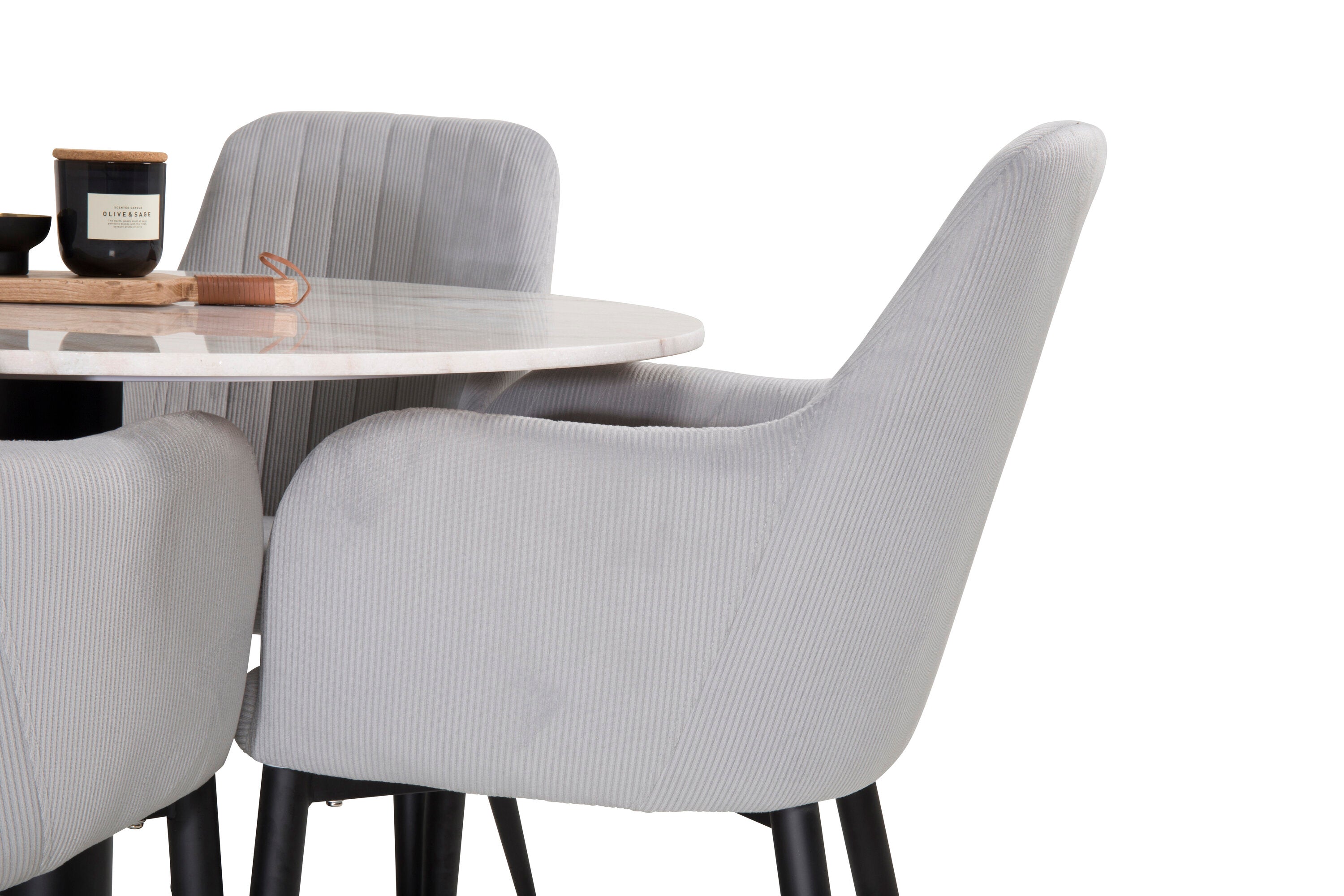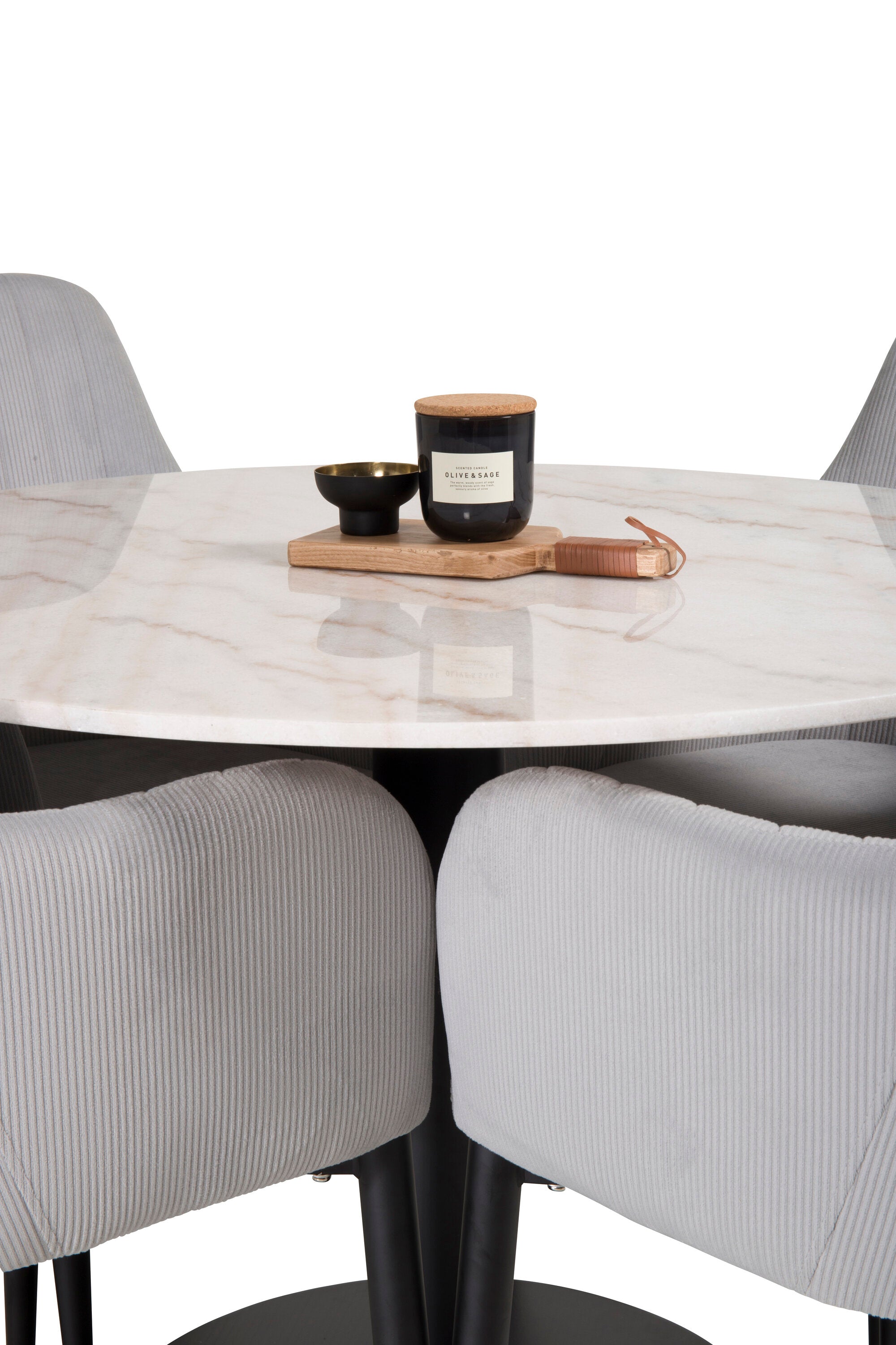 Kulatý jídelní stůl Estelle 106 cm Bílý mramor / černé nohy + komfortní jídelní židle - černé nohy / světle šedý manšestr _4