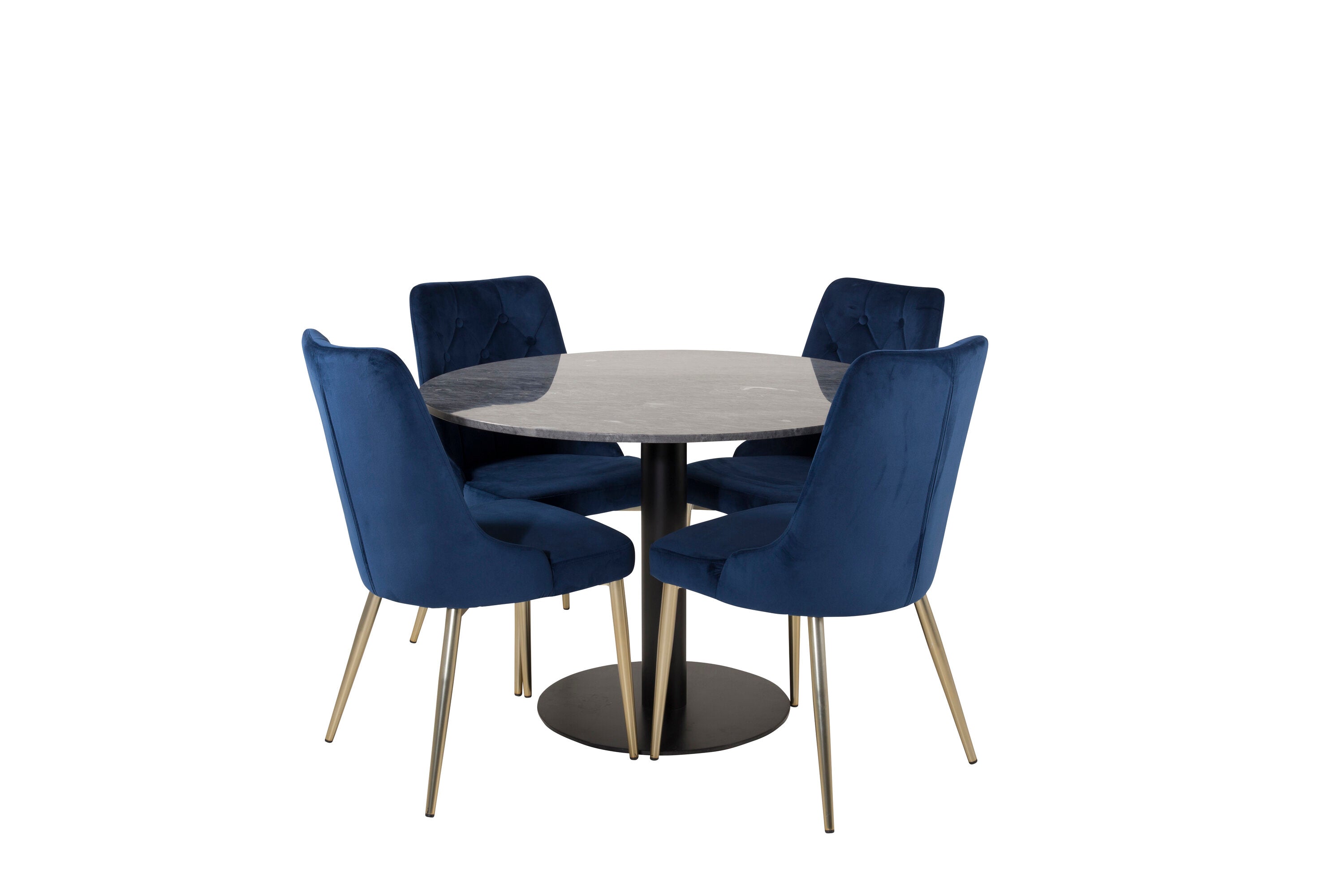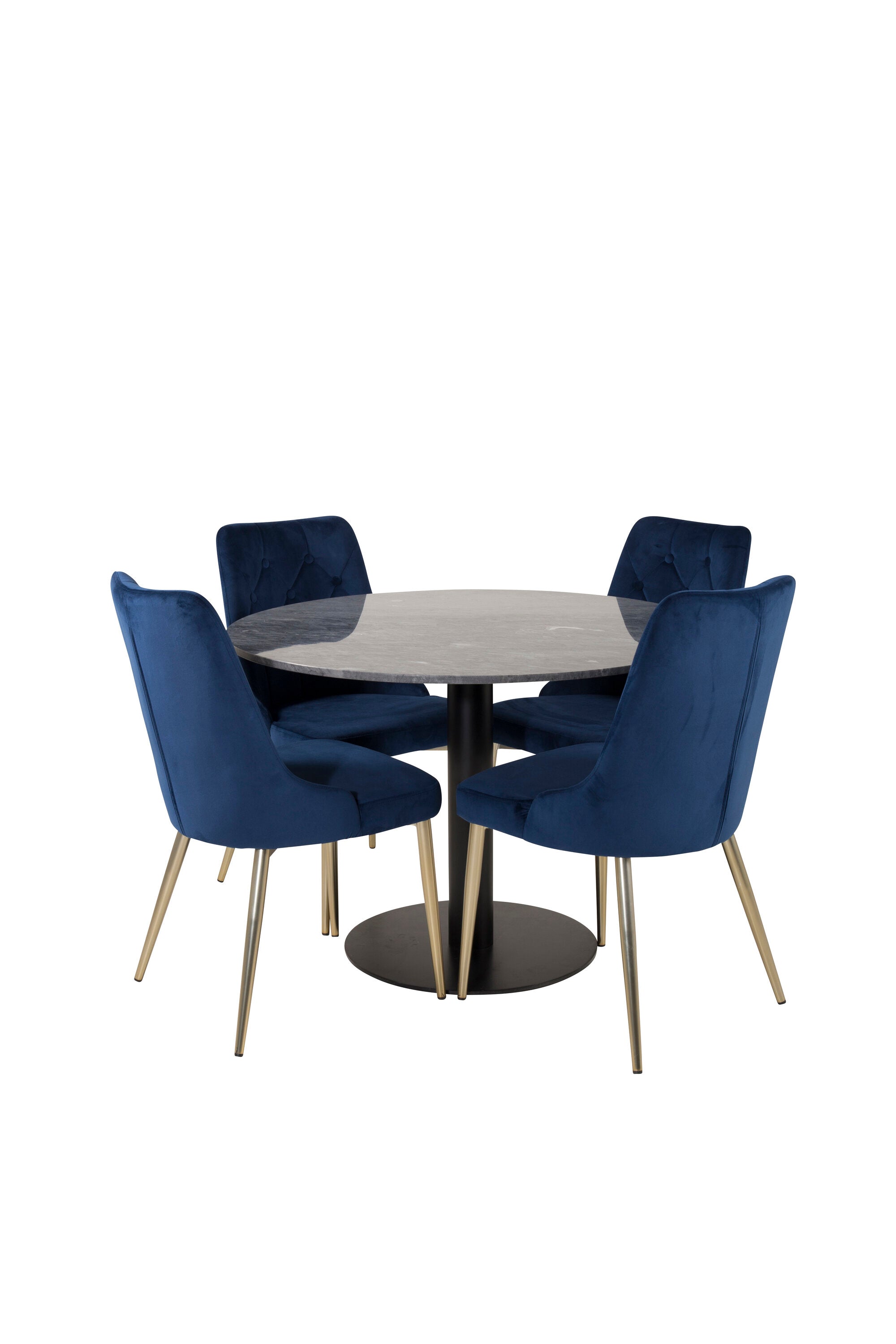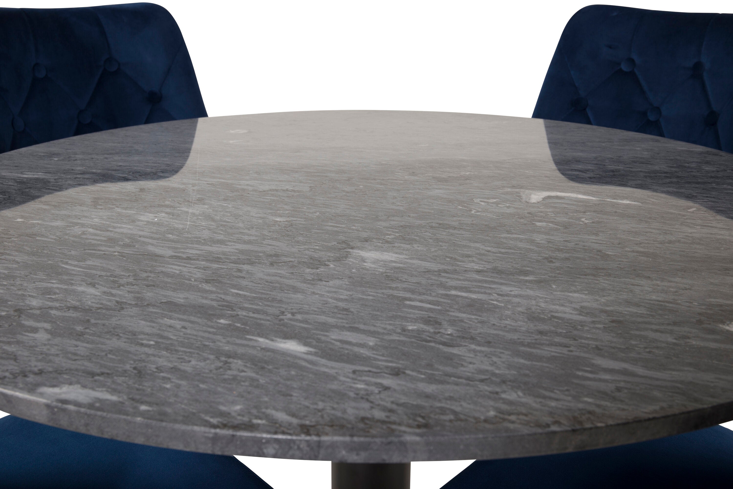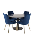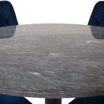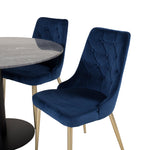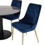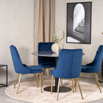 Kulatý jídelní stůl Estelle 106 cm šedý mramor / černé nohy - sametová židle Deluxe - modrá/matná mosaz noha 4