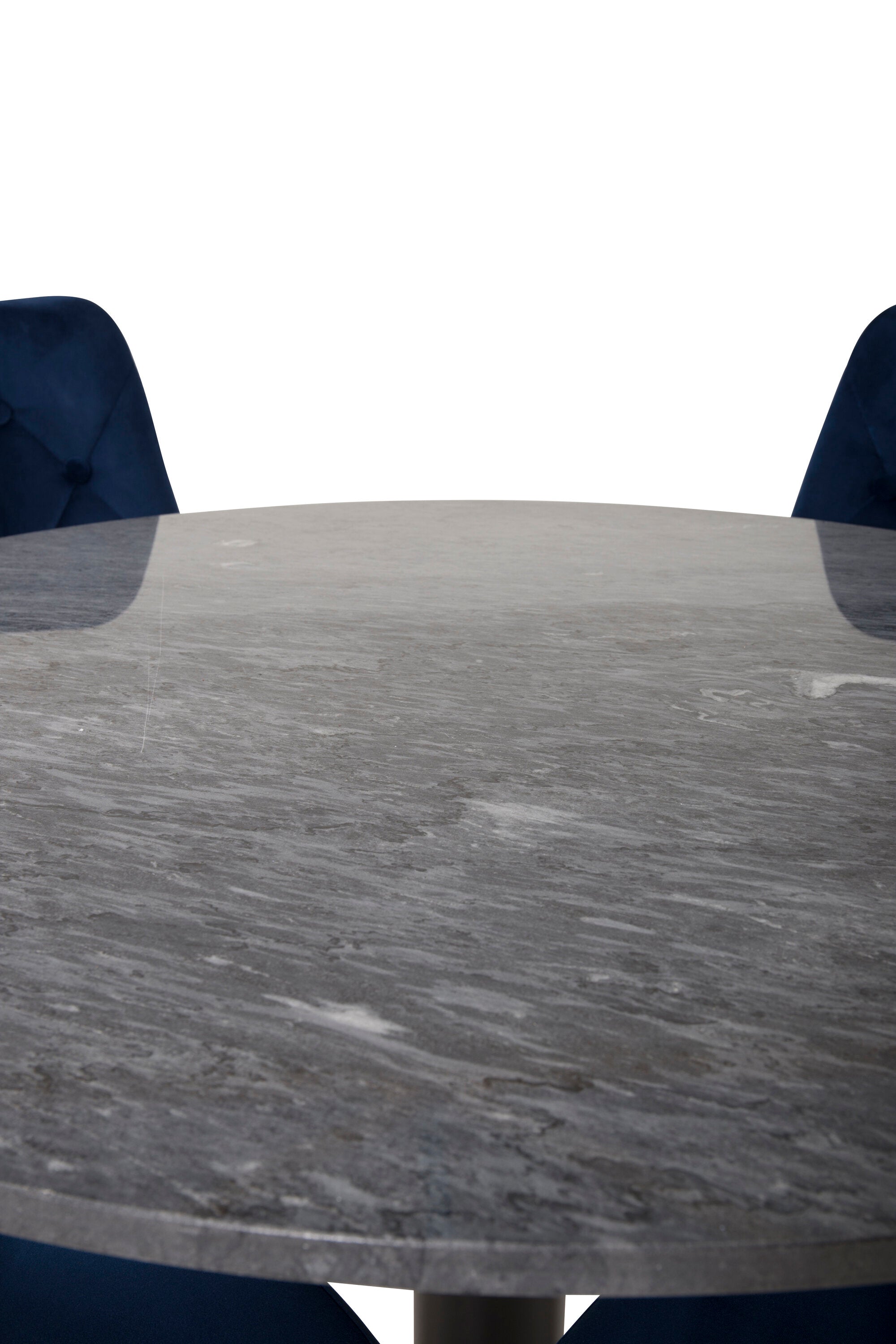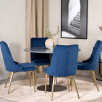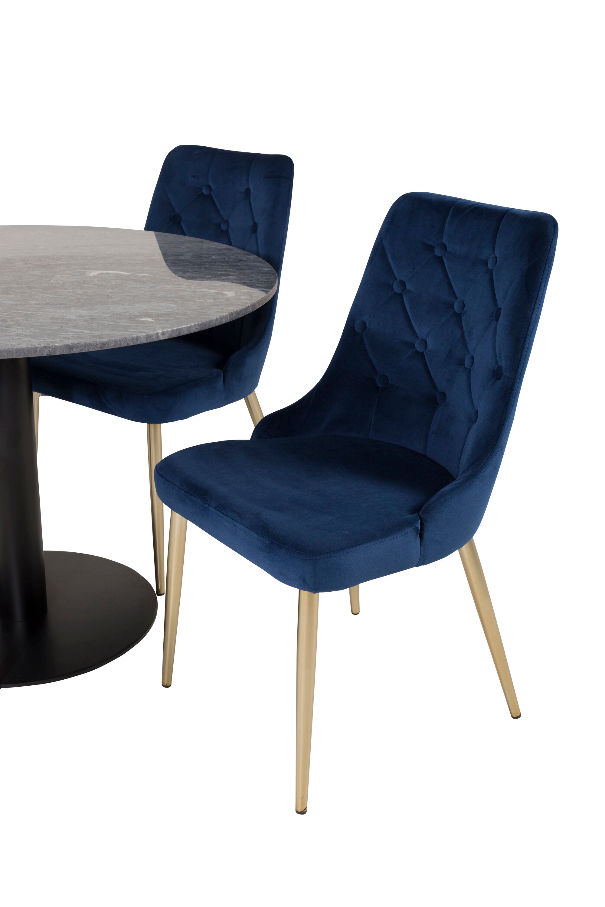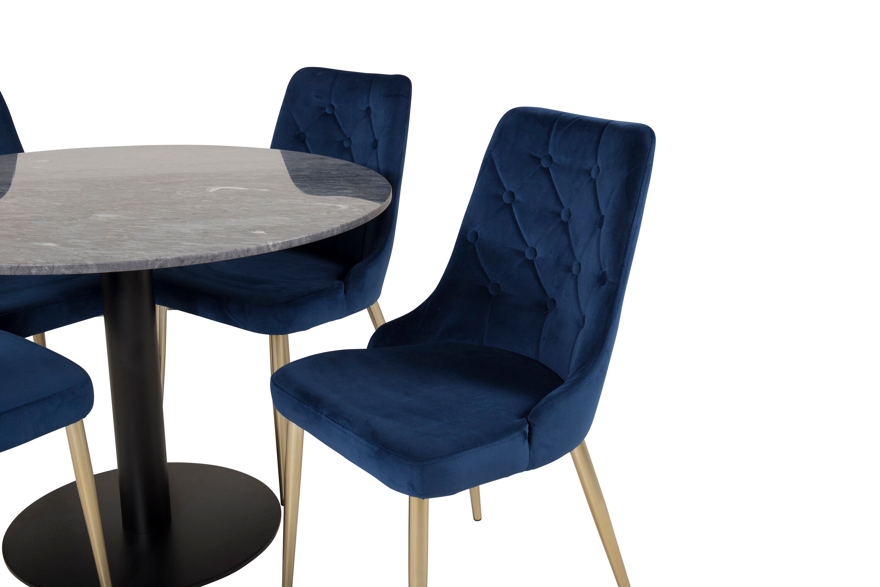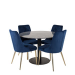 Kulatý jídelní stůl Estelle 106 cm šedý mramor / černé nohy - sametová židle Deluxe - modrá/matná mosaz noha 4