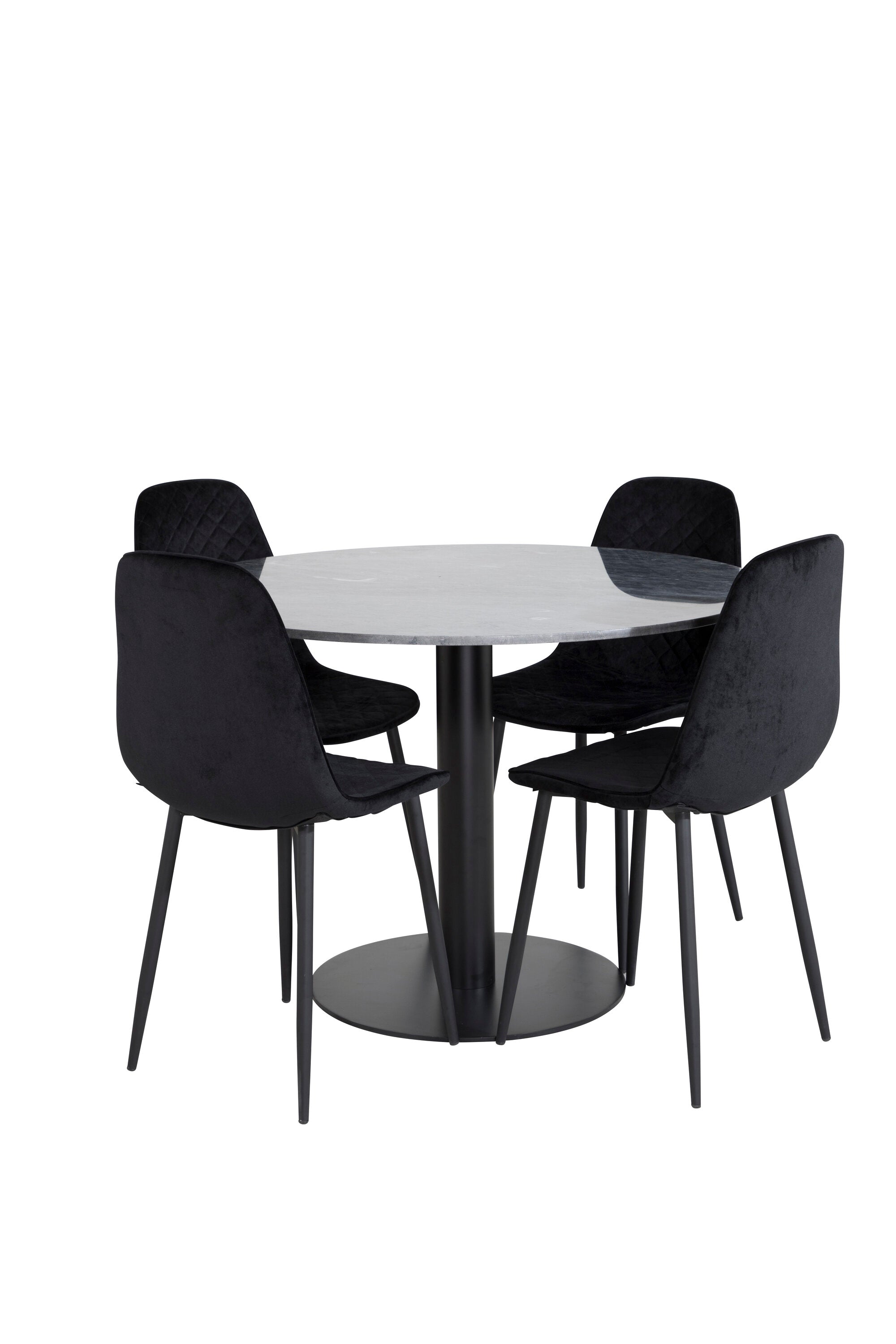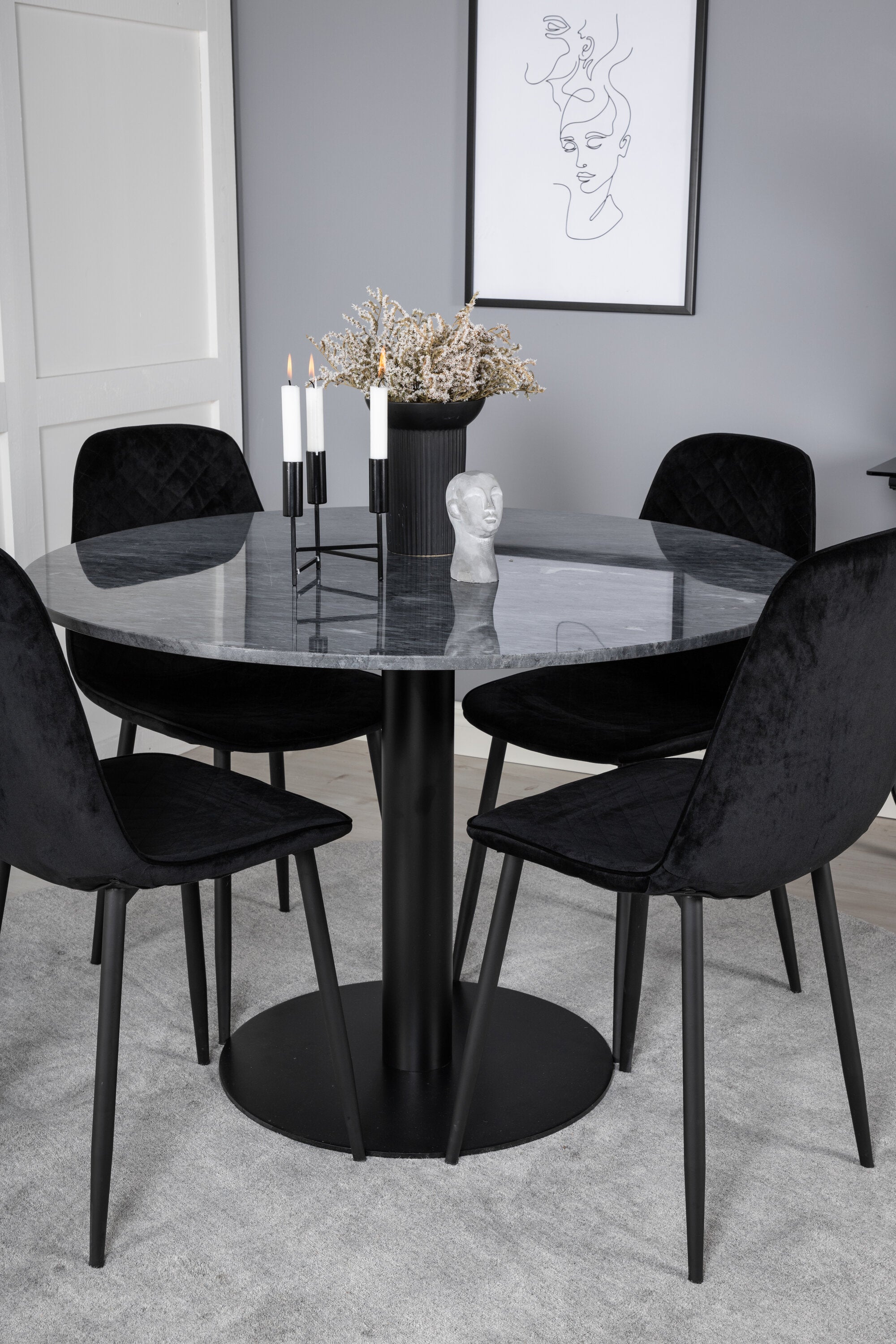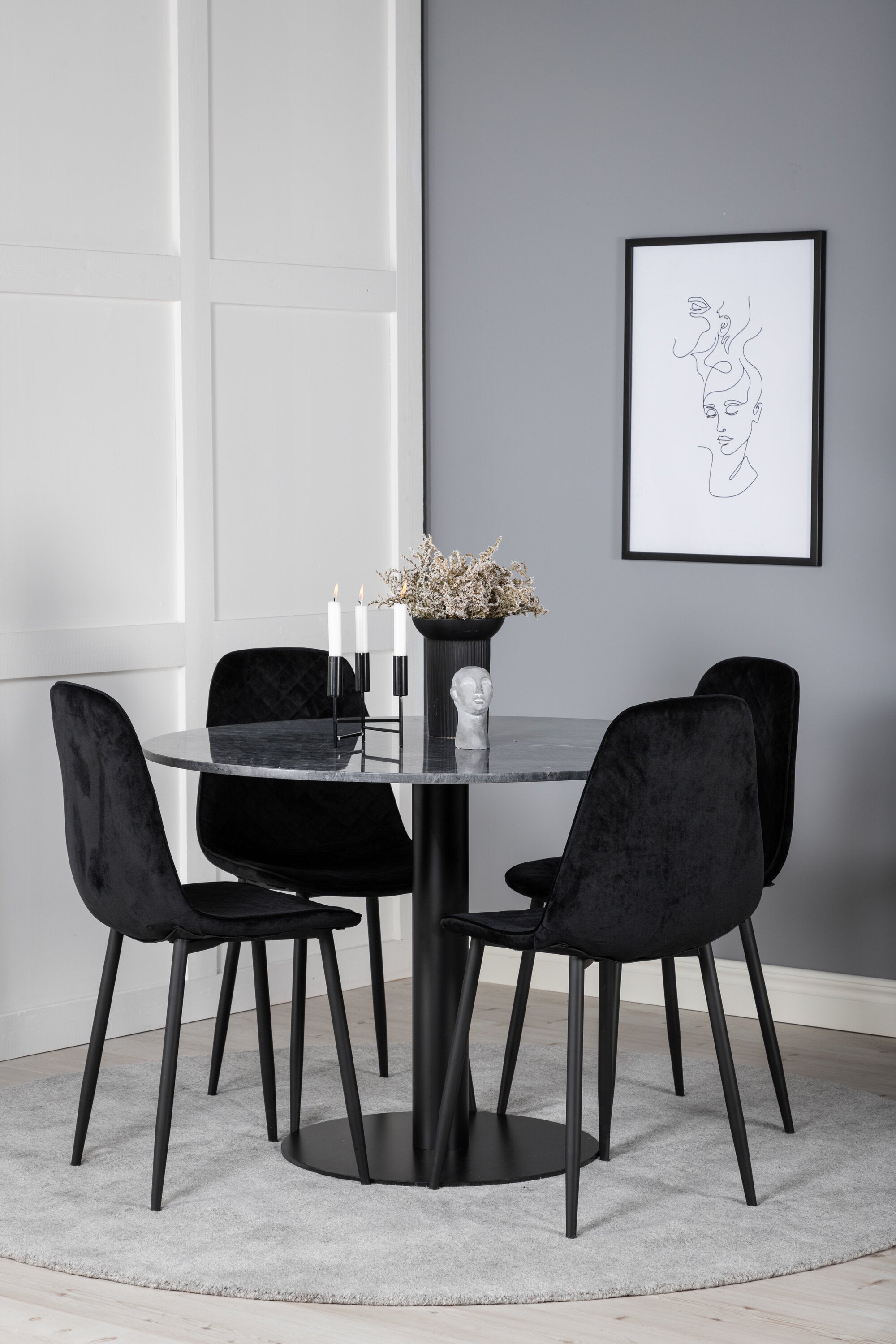 Kulatý jídelní stůl Estelle ø106 H75 - Černá / Černá + Polar Diamond Jídelní židle - Černé nohy - Black Velvet_4