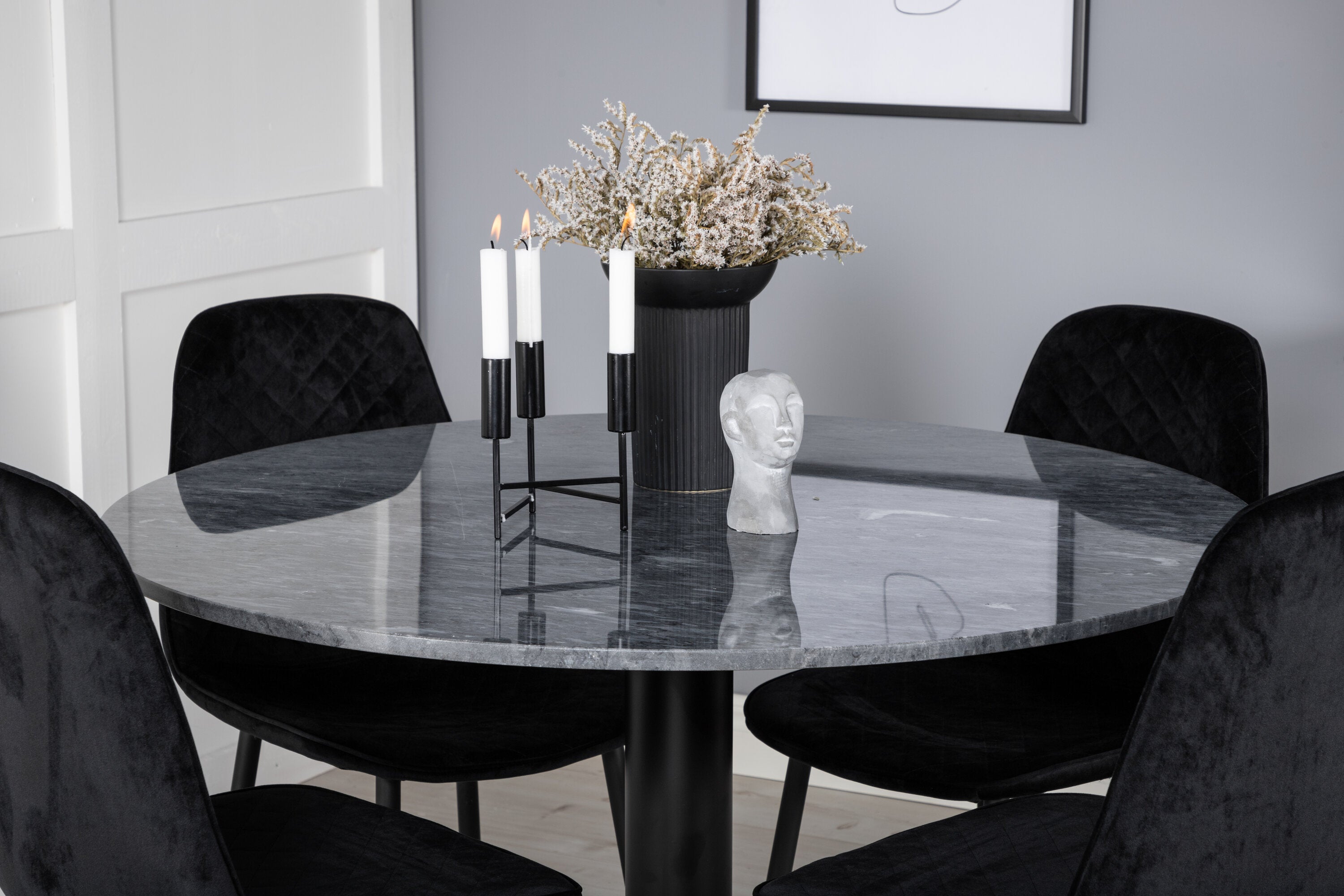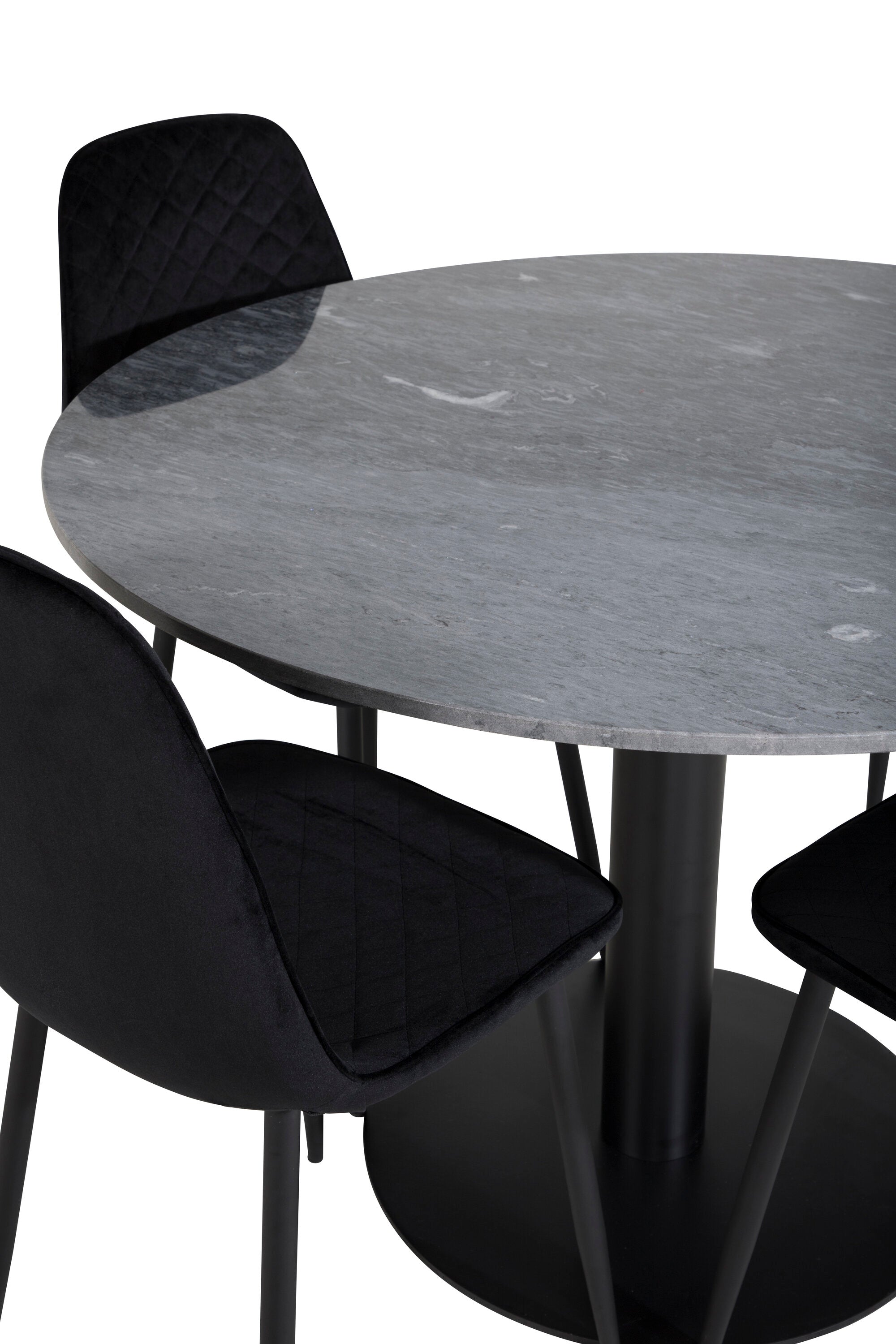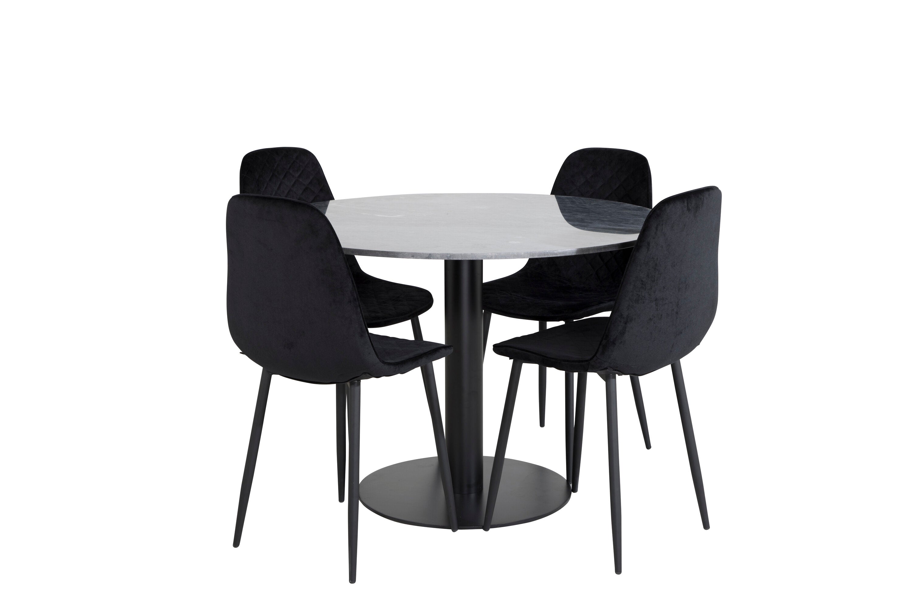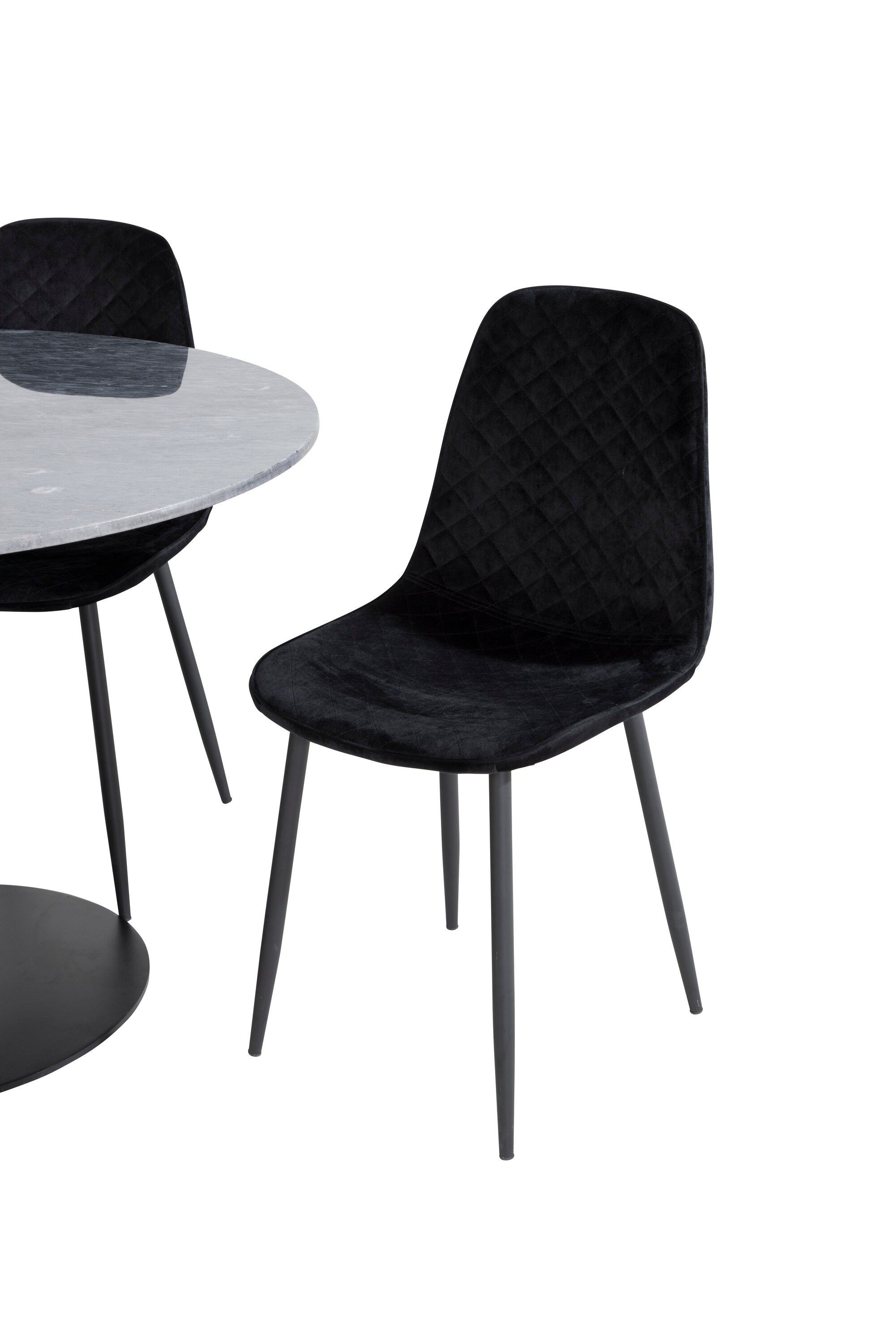 Kulatý jídelní stůl Estelle ø106 H75 - Černá / Černá + Polar Diamond Jídelní židle - Černé nohy - Black Velvet_4