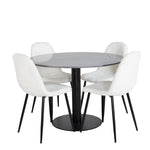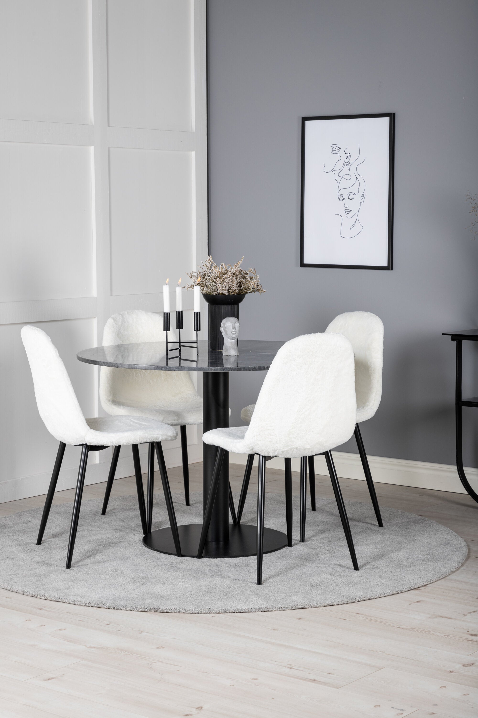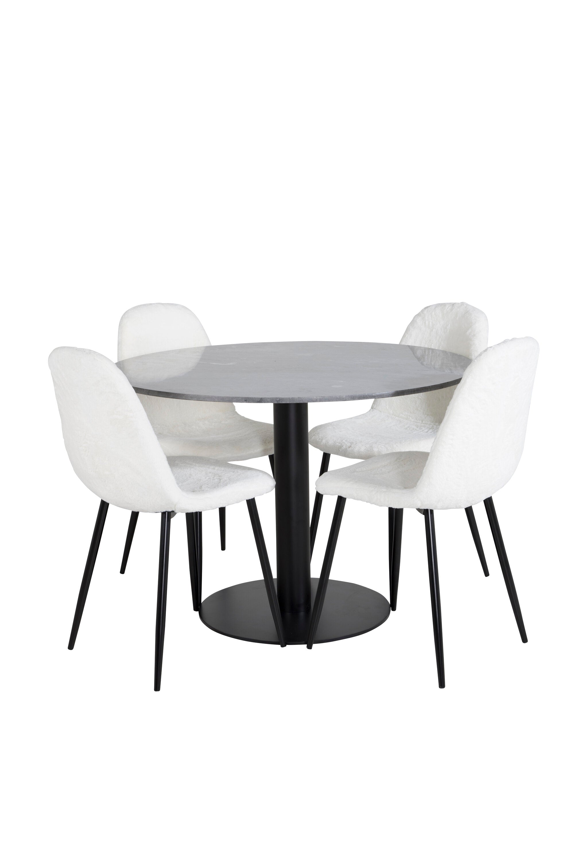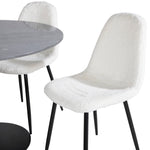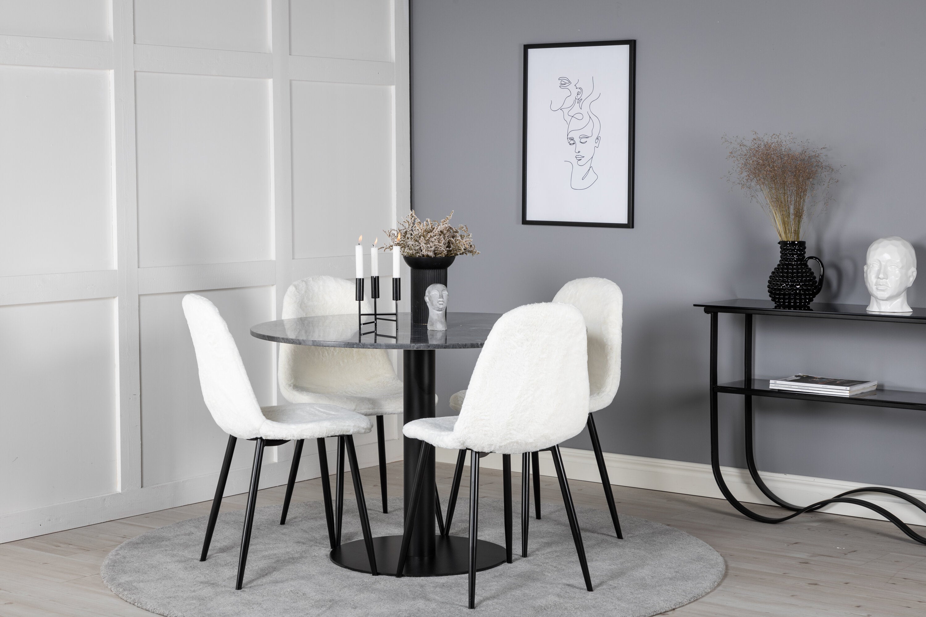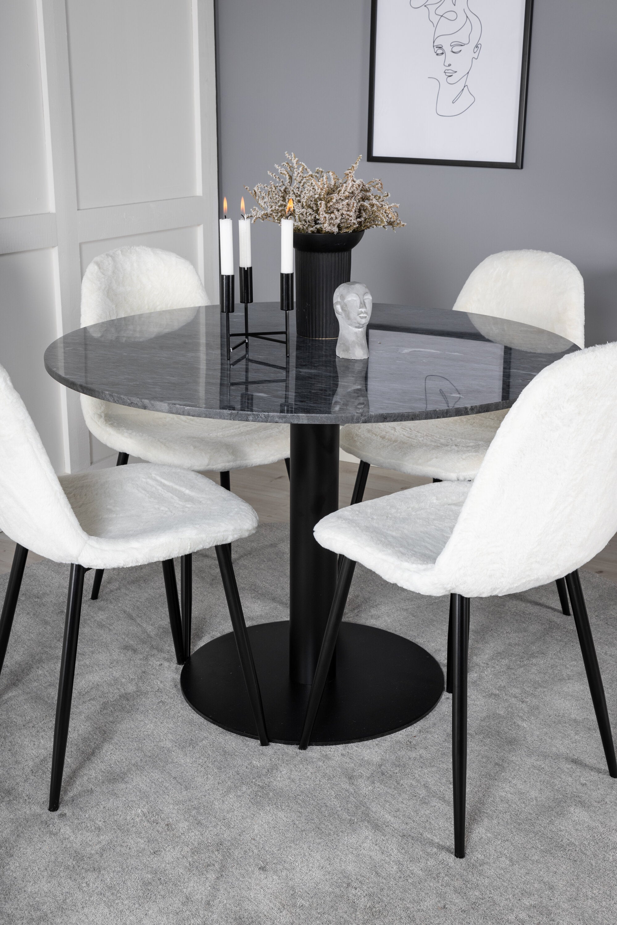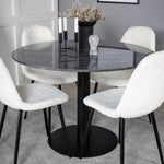 Kulatý jídelní stůl Estelle ø106 H75 - Černá / Černá + Polar Fluff Jídelní židle - Černé nohy - White Teddy _4