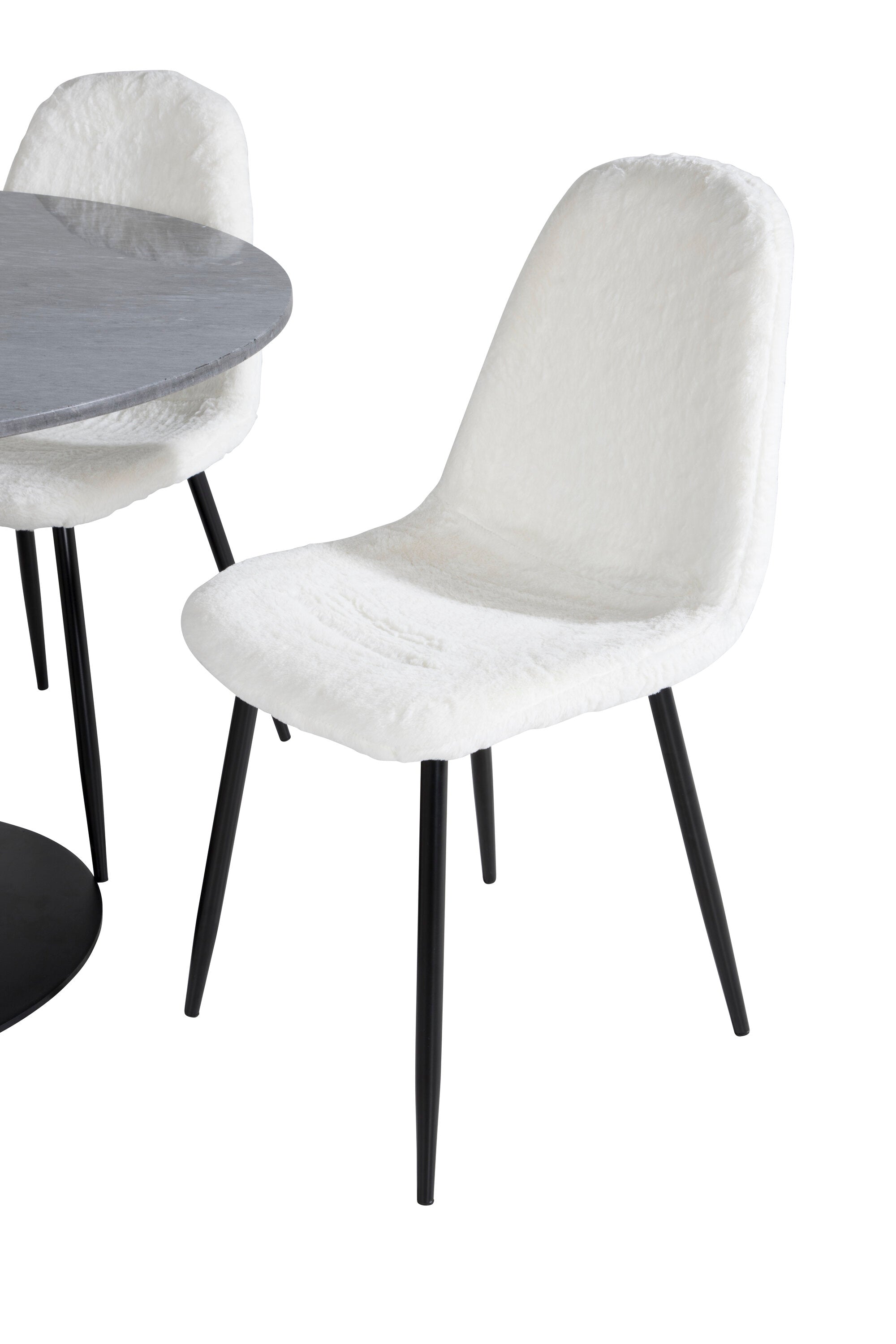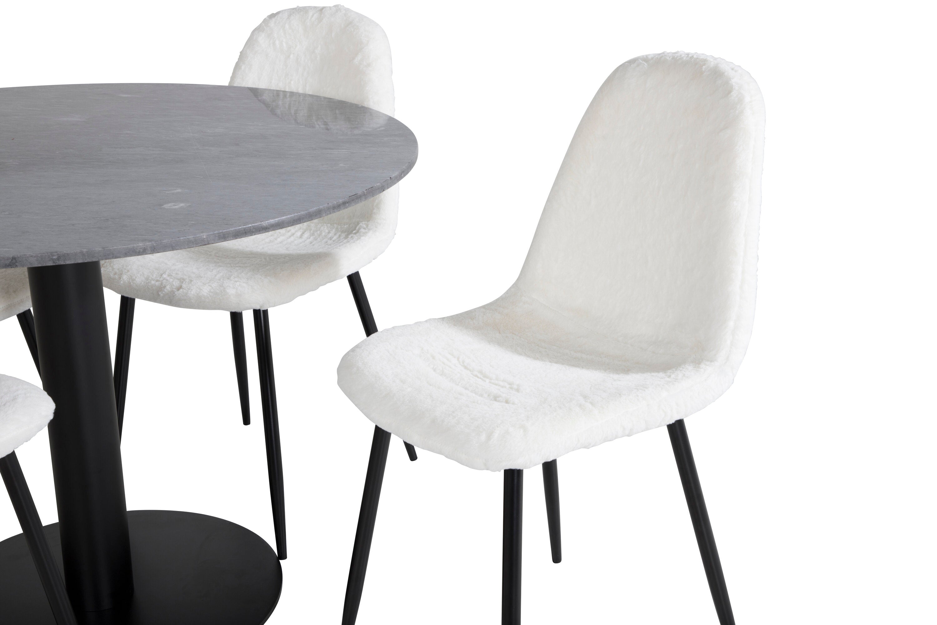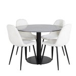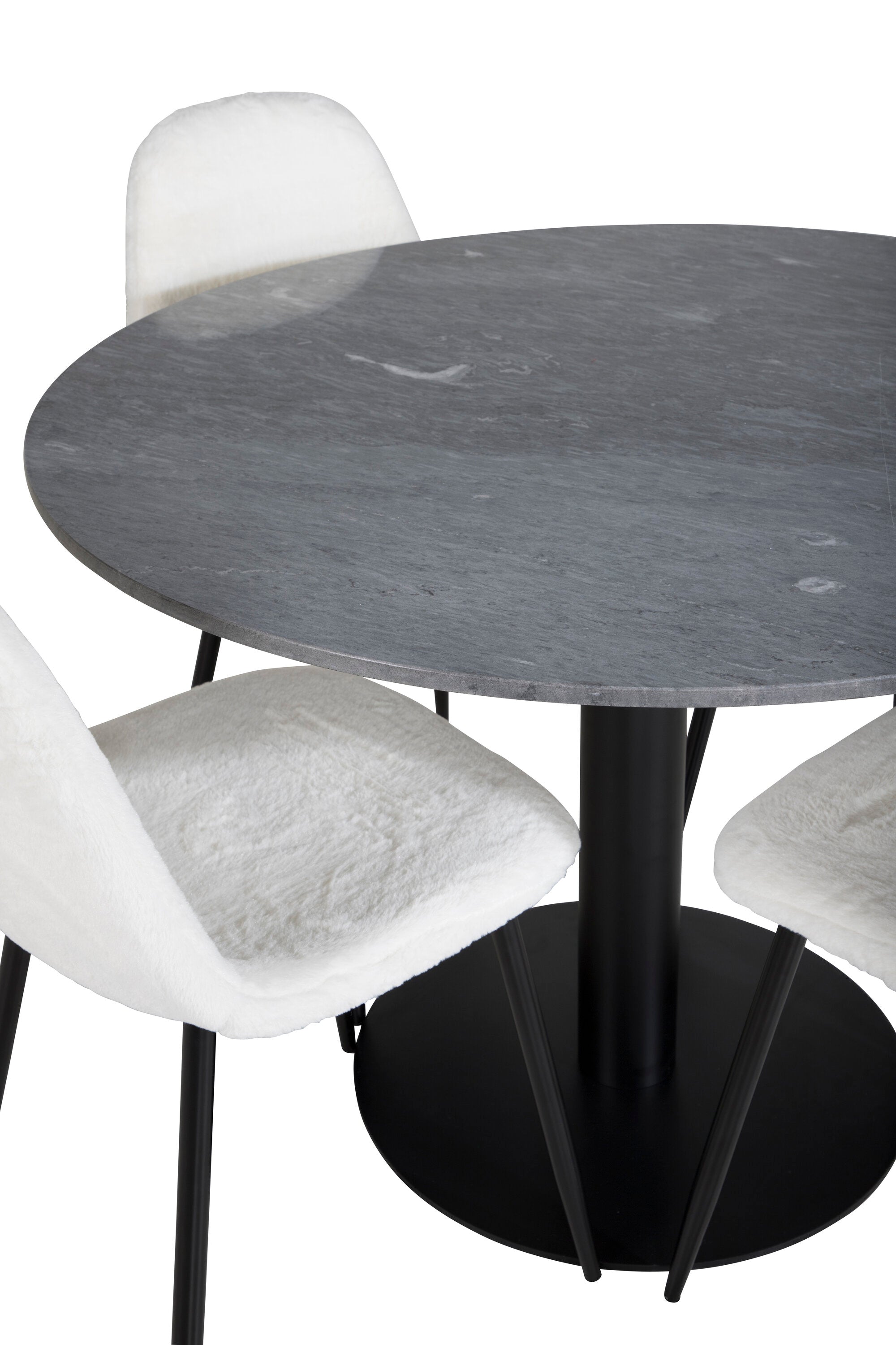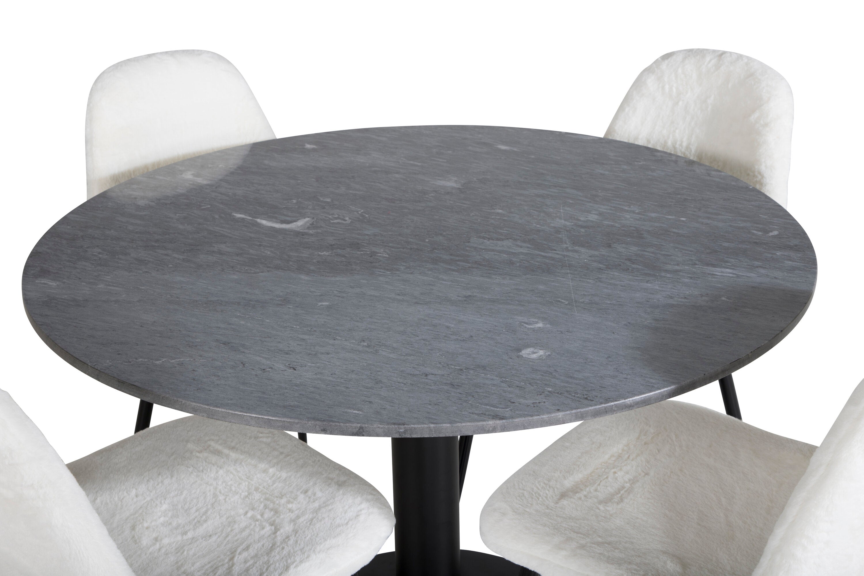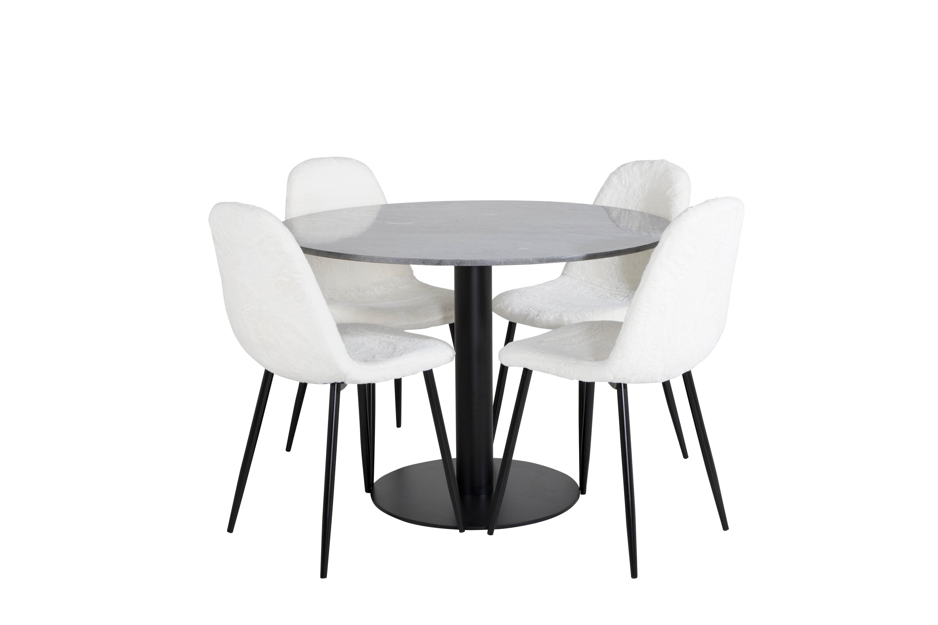 Kulatý jídelní stůl Estelle ø106 H75 - Černá / Černá + Polar Fluff Jídelní židle - Černé nohy - White Teddy _4