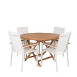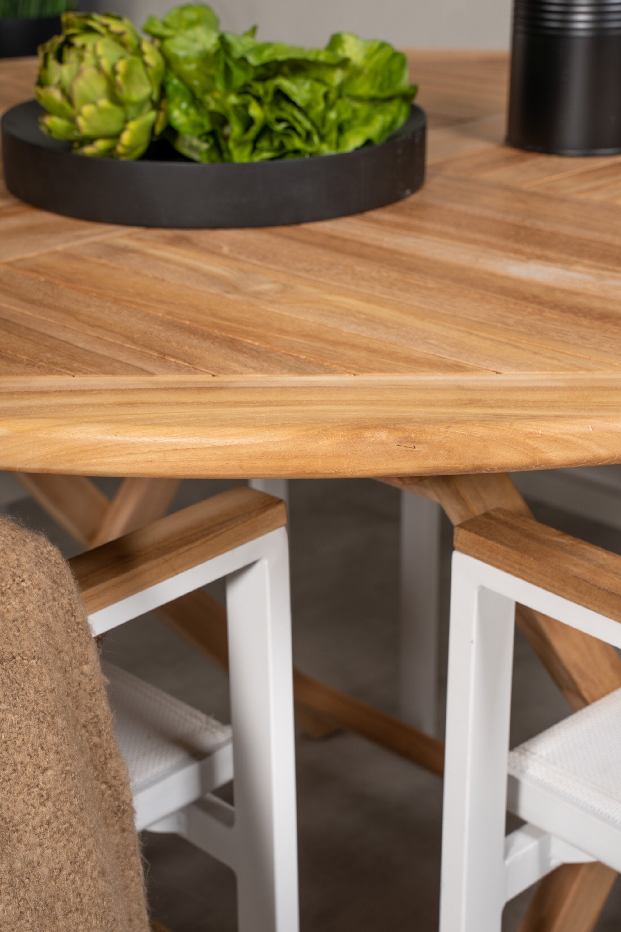 Kulatý jídelní stůl Kenya ø120 cm – Teak+Texas křeslo (stohovatelné) – Bílá / Čaj