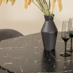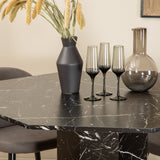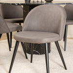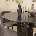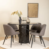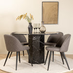 Kulatý jídelní stůl Marbs – černá/černá skleněná židle mramor+sametové stehy – černá/šedá mikrovlákno_4