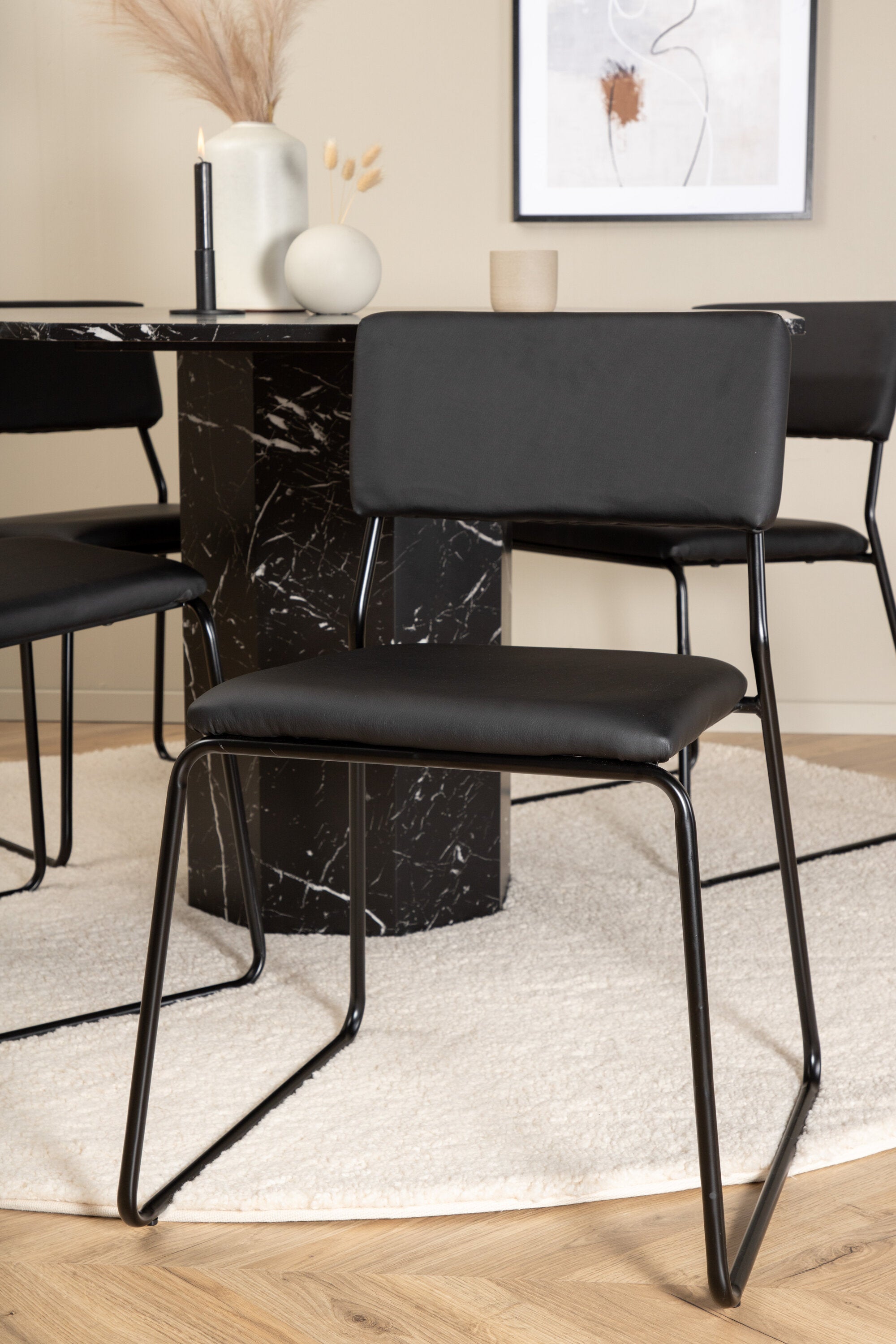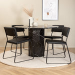 Kulatý jídelní stůl Marbs - Černá / Černá sklo Židle Marble+Kenth - Černá / Černá PU_4