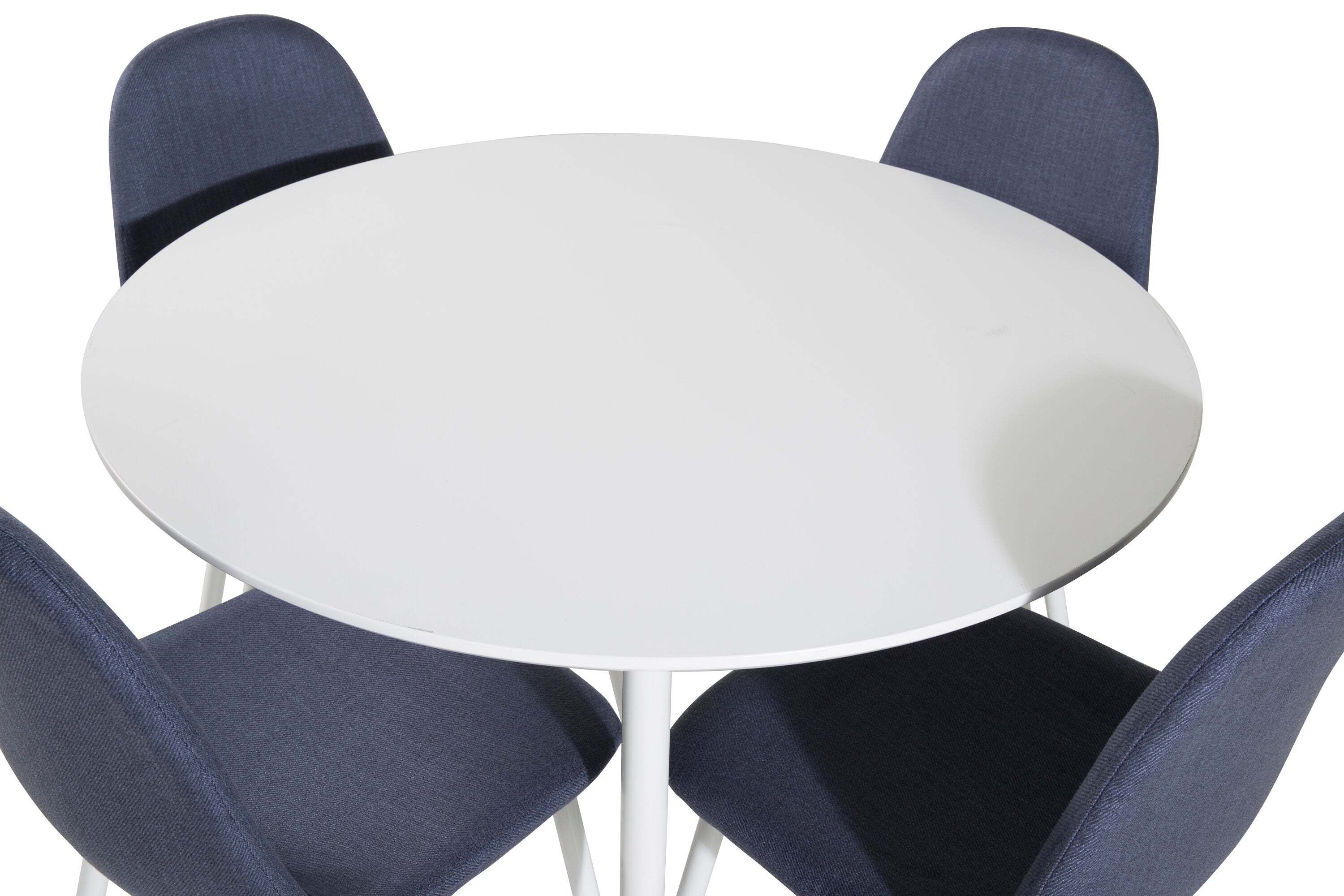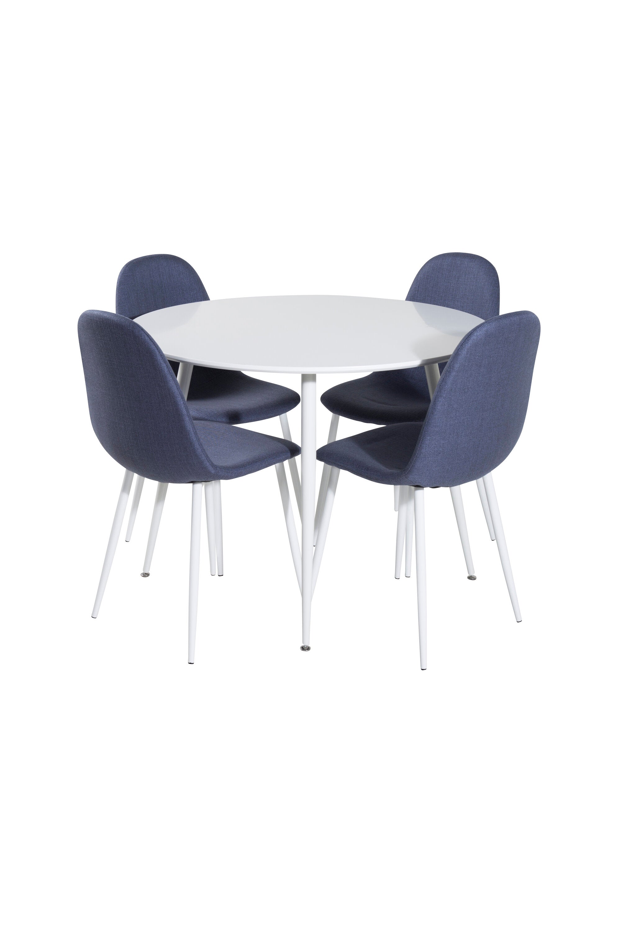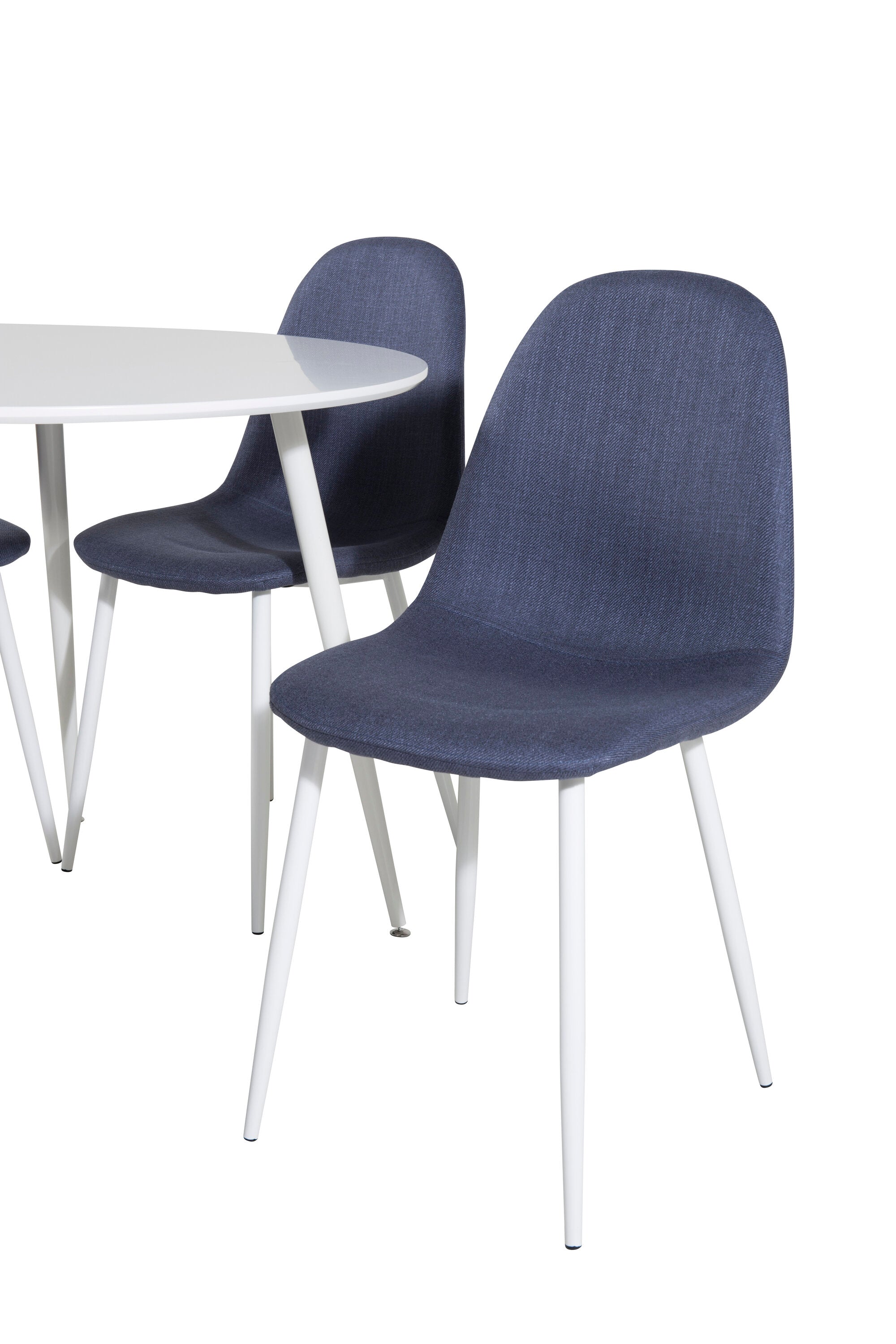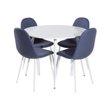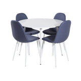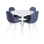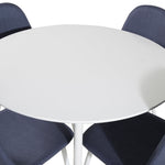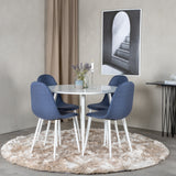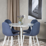 Kulatý stůl Plaza 100 cm - Bílá deska / Bílé nohy + Jídelní židle Polar - Bílé nohy - Modrá látka_4