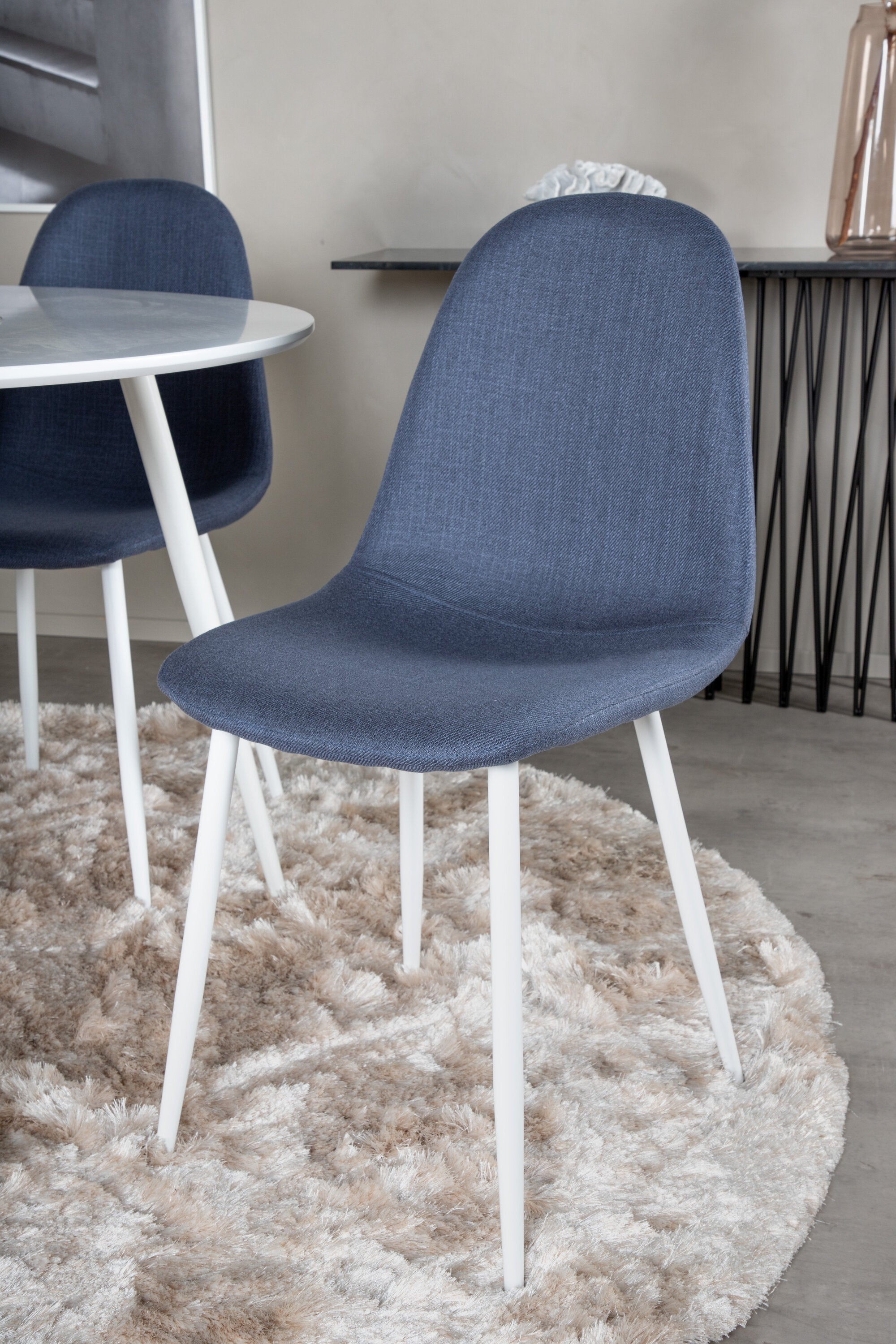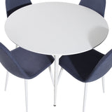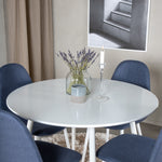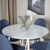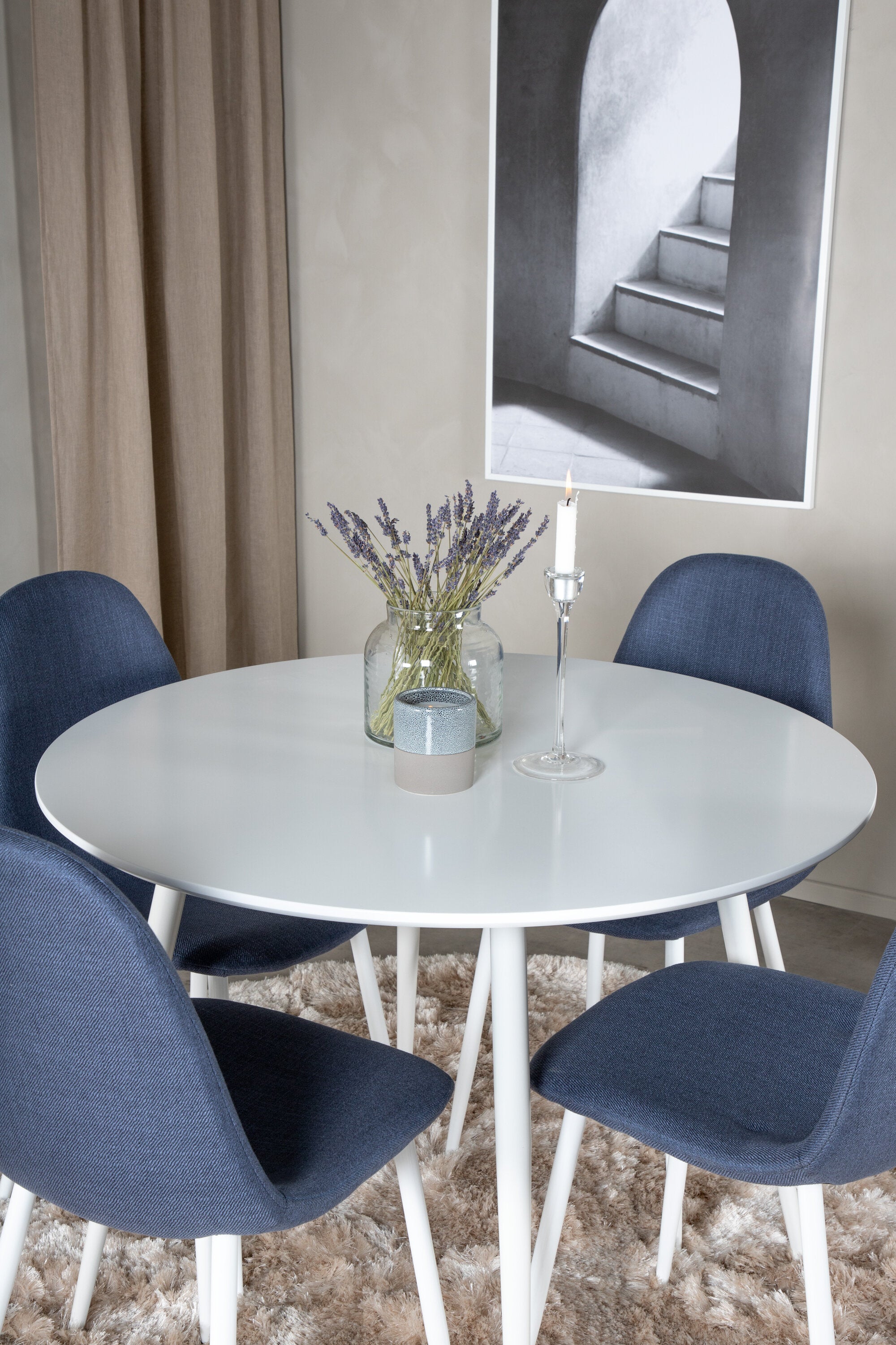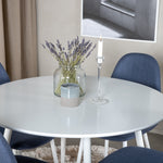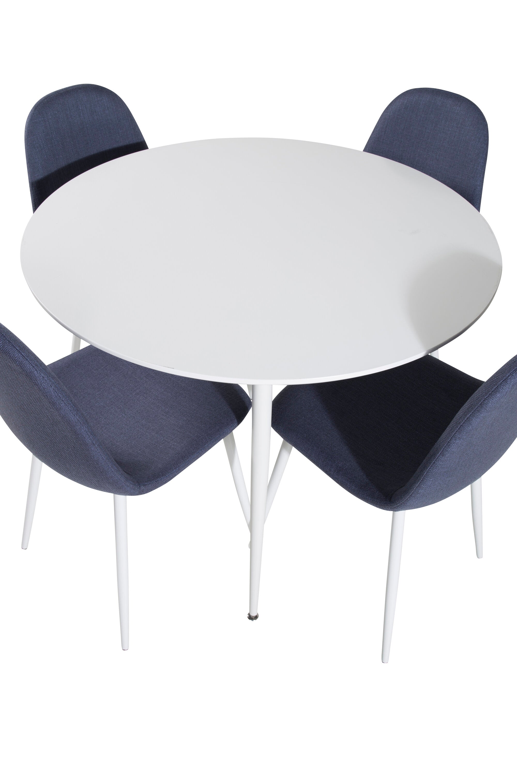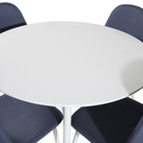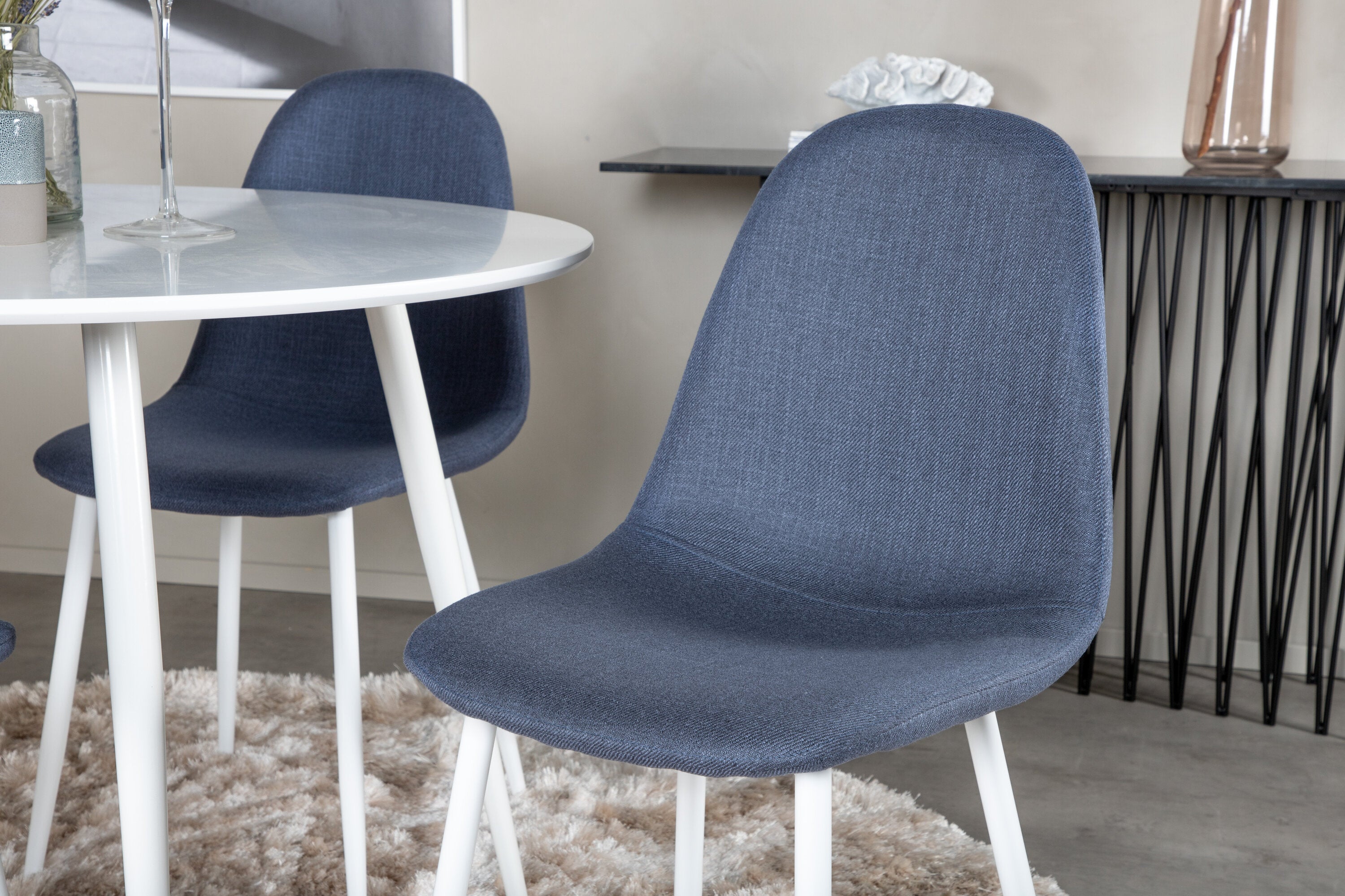 Kulatý stůl Plaza 100 cm - Bílá deska / Bílé nohy + Jídelní židle Polar - Bílé nohy - Modrá látka_4