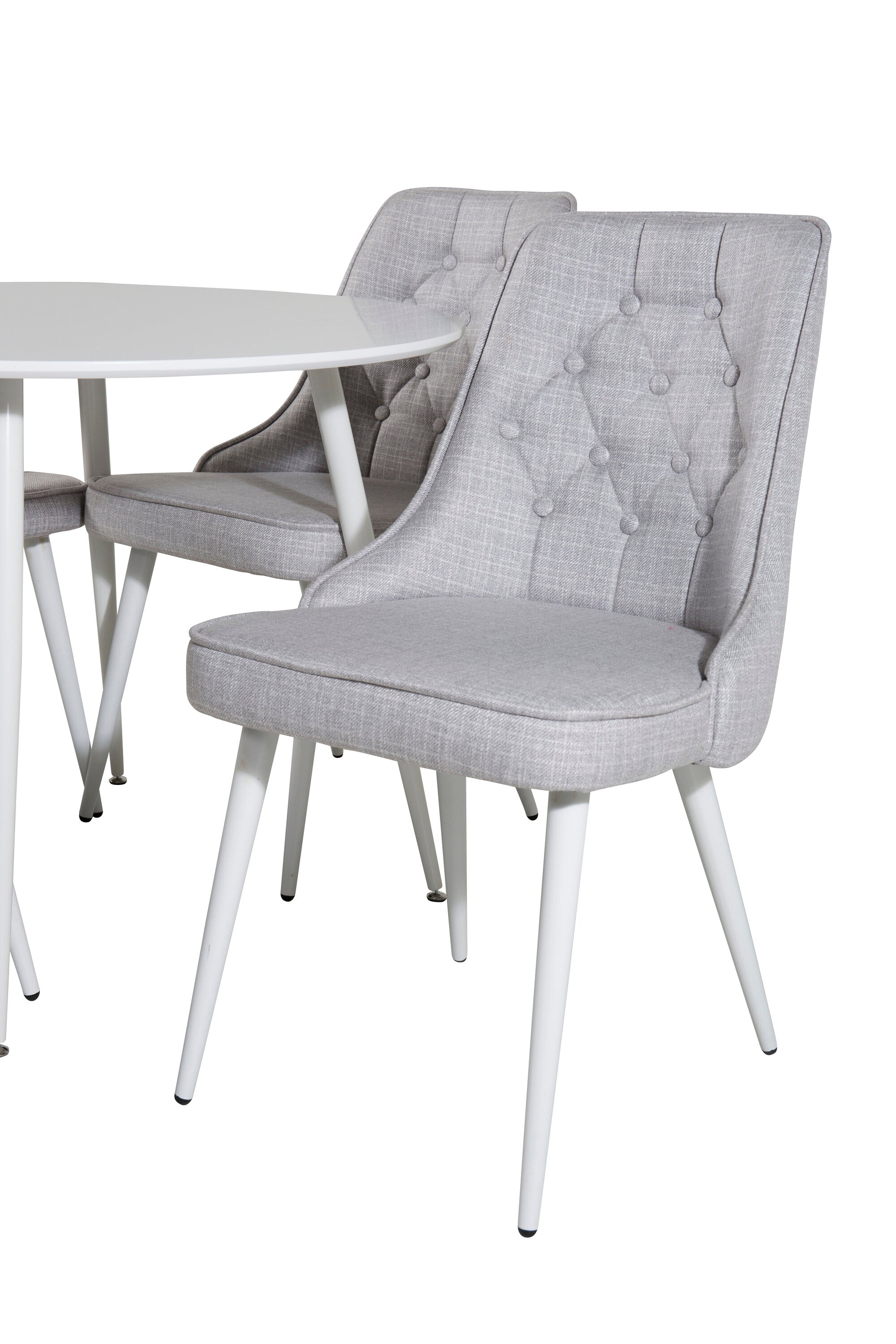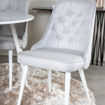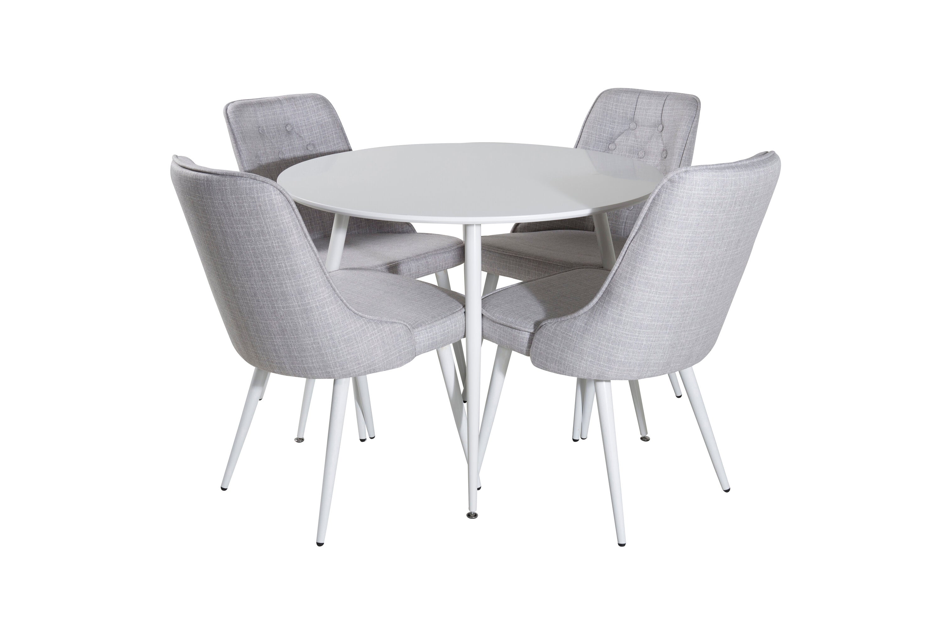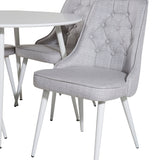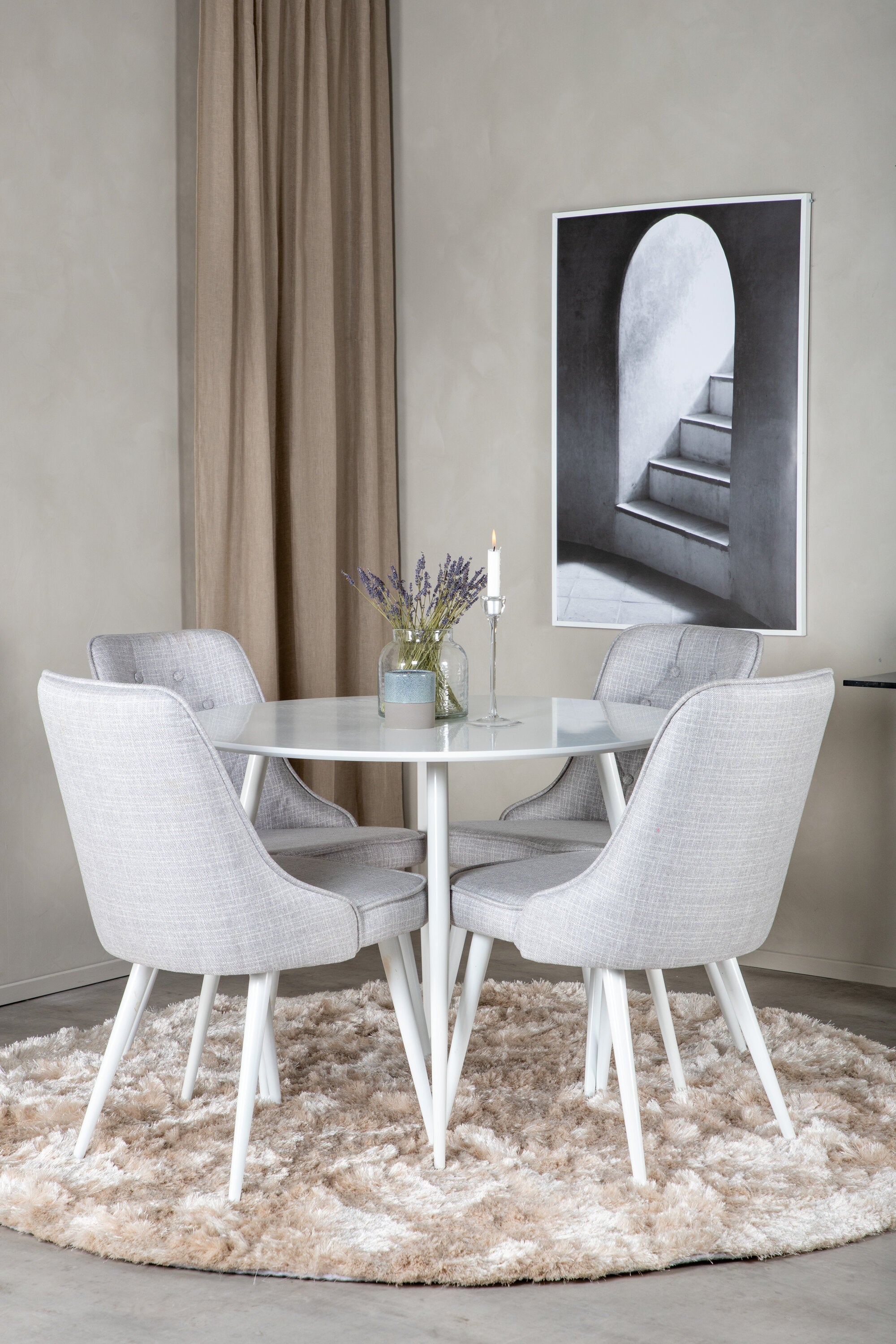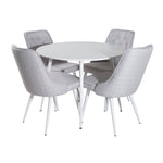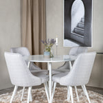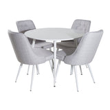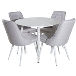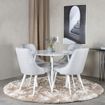 Kulatý stůl Plaza 100 cm - Bílá deska / Bílé nohy + Jídelní židle Velvet Deluxe - Bílé nohy - Světle šedá látka_4