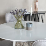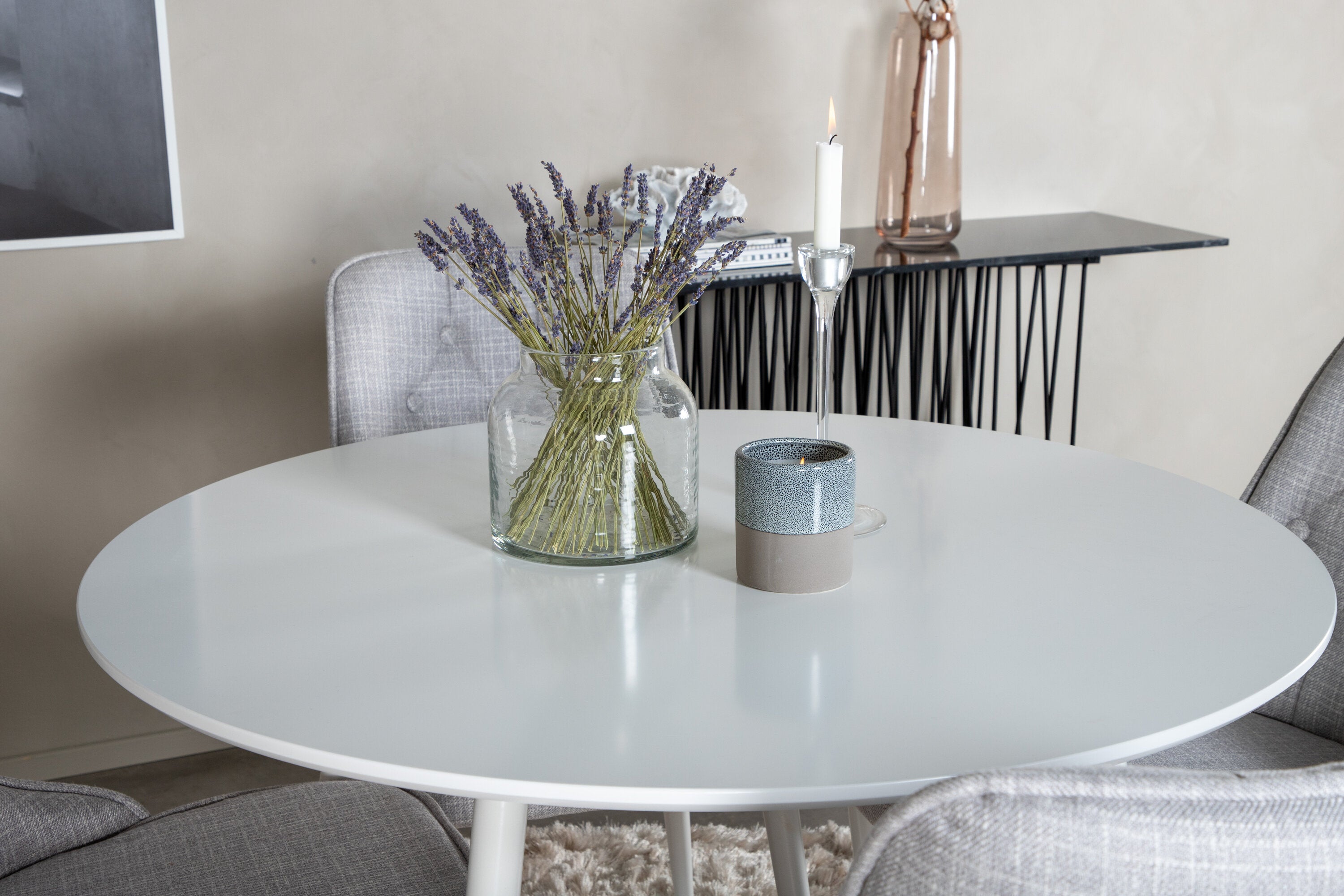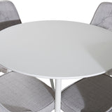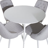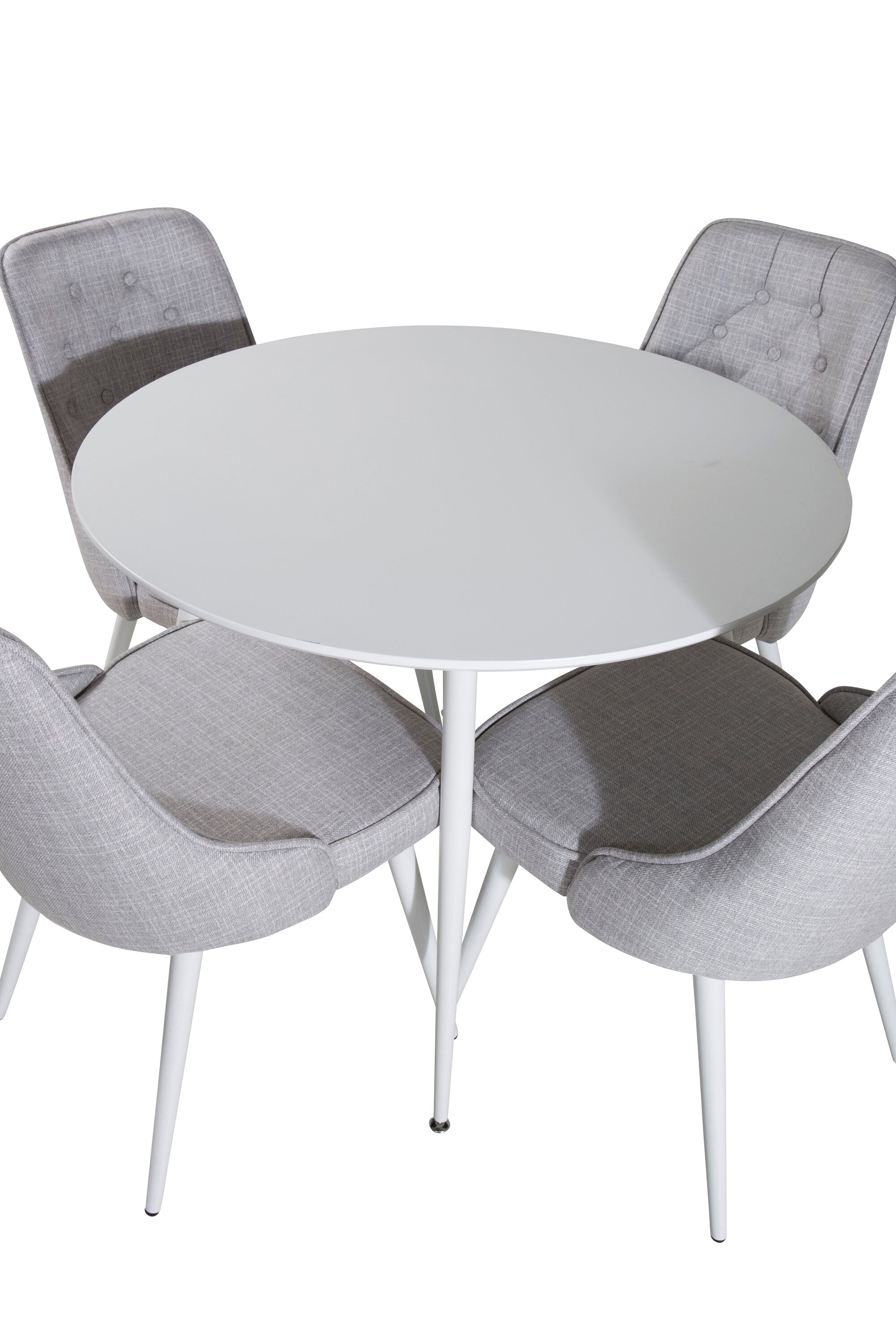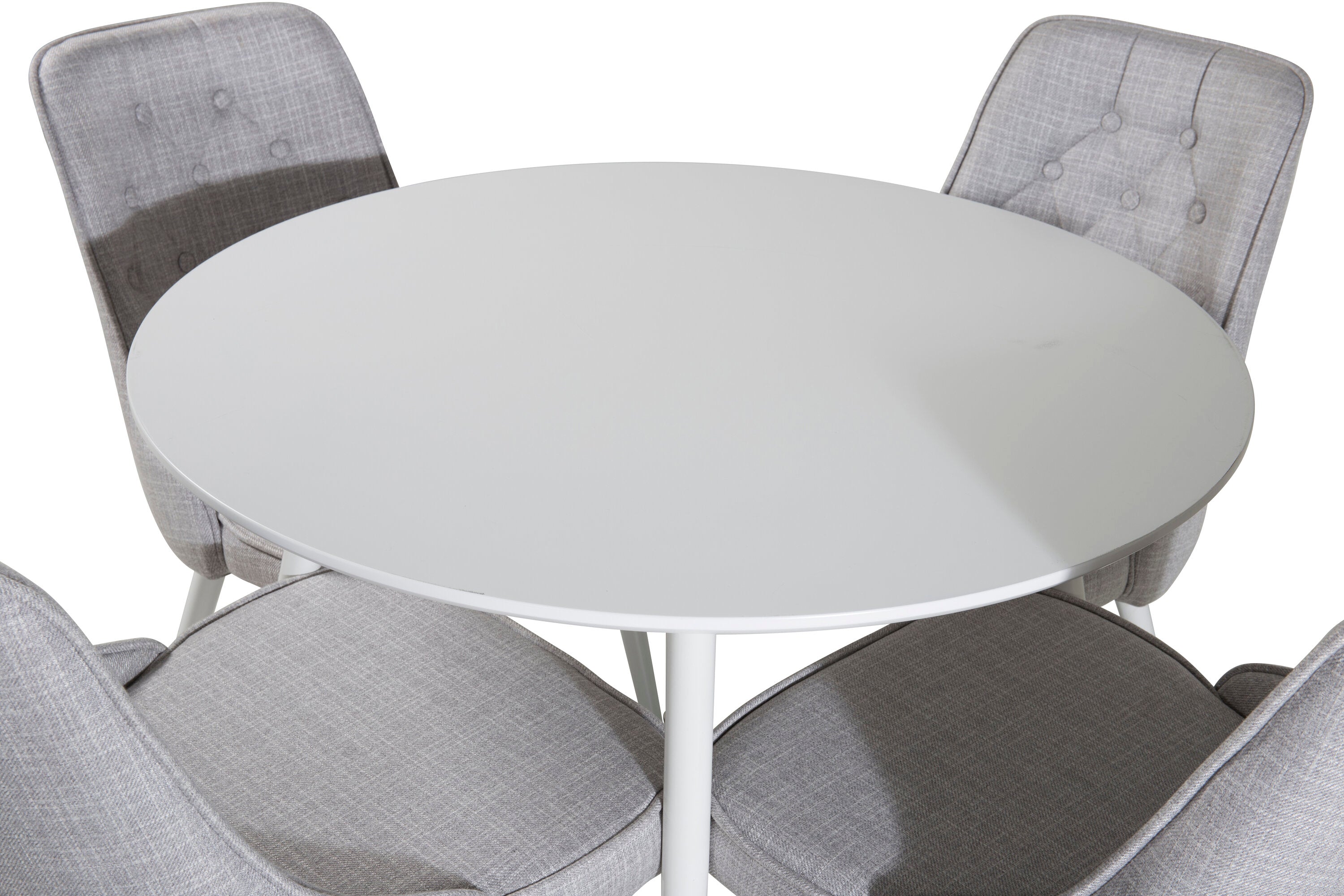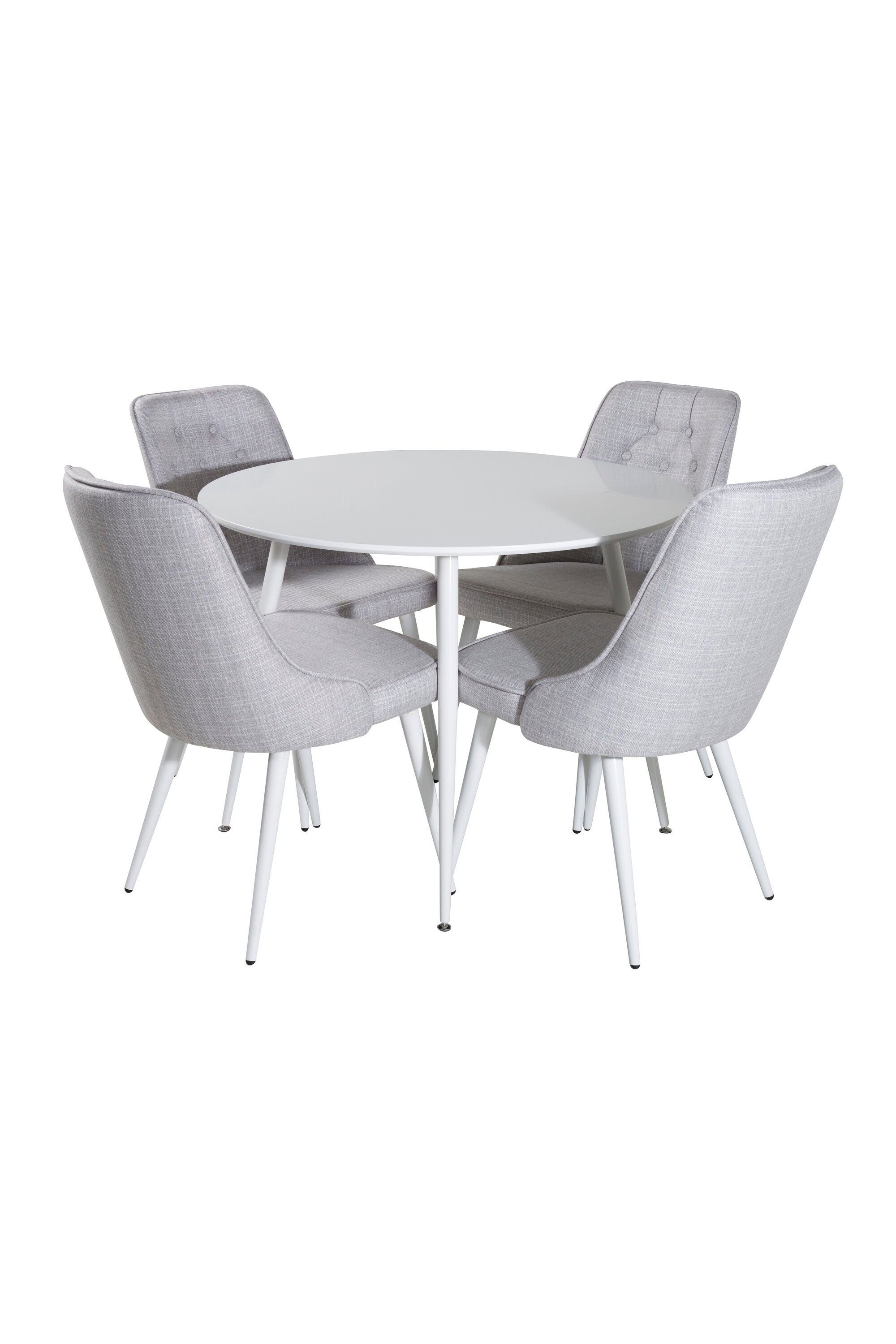 Kulatý stůl Plaza 100 cm - Bílá deska / Bílé nohy + Jídelní židle Velvet Deluxe - Bílé nohy - Světle šedá látka_4