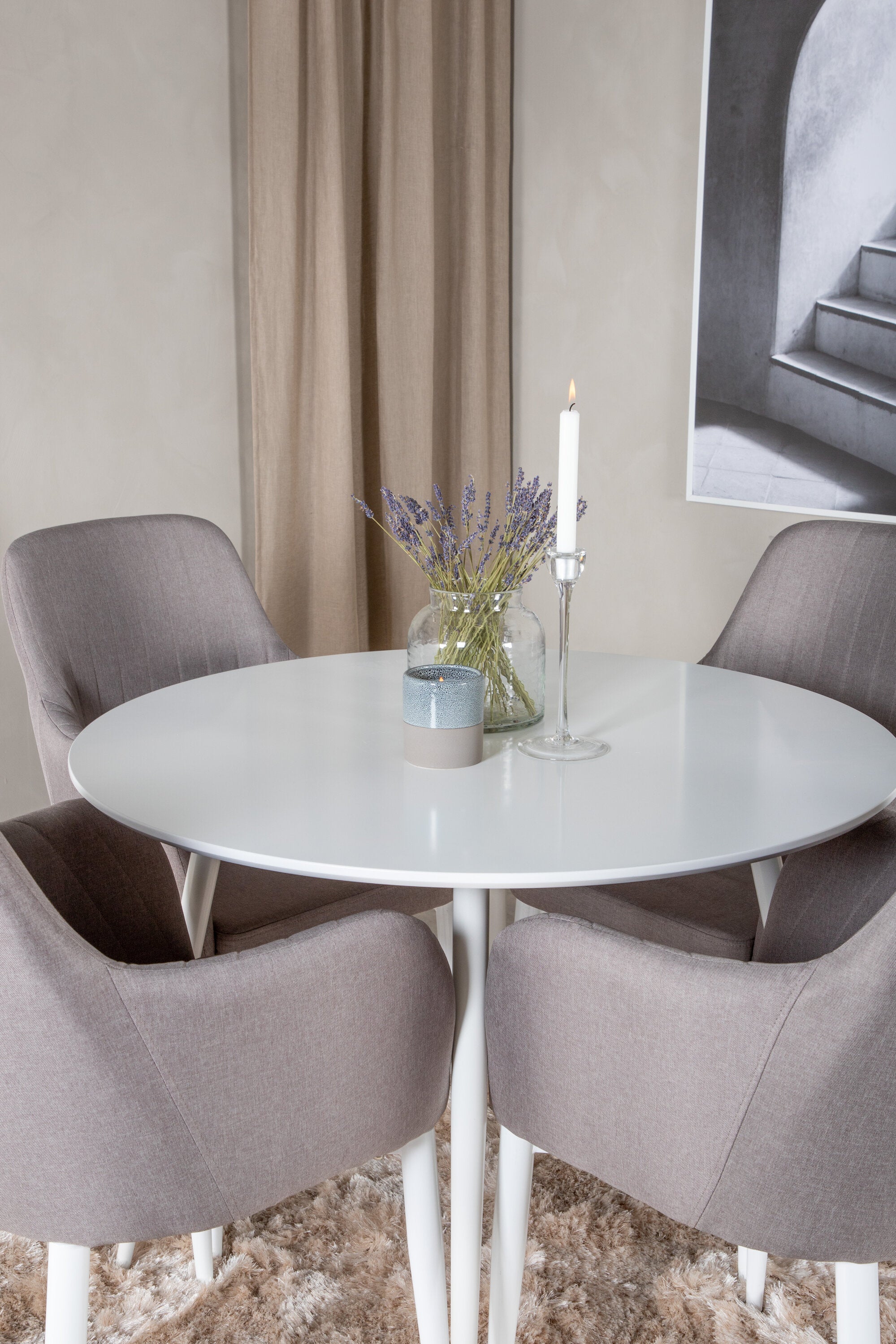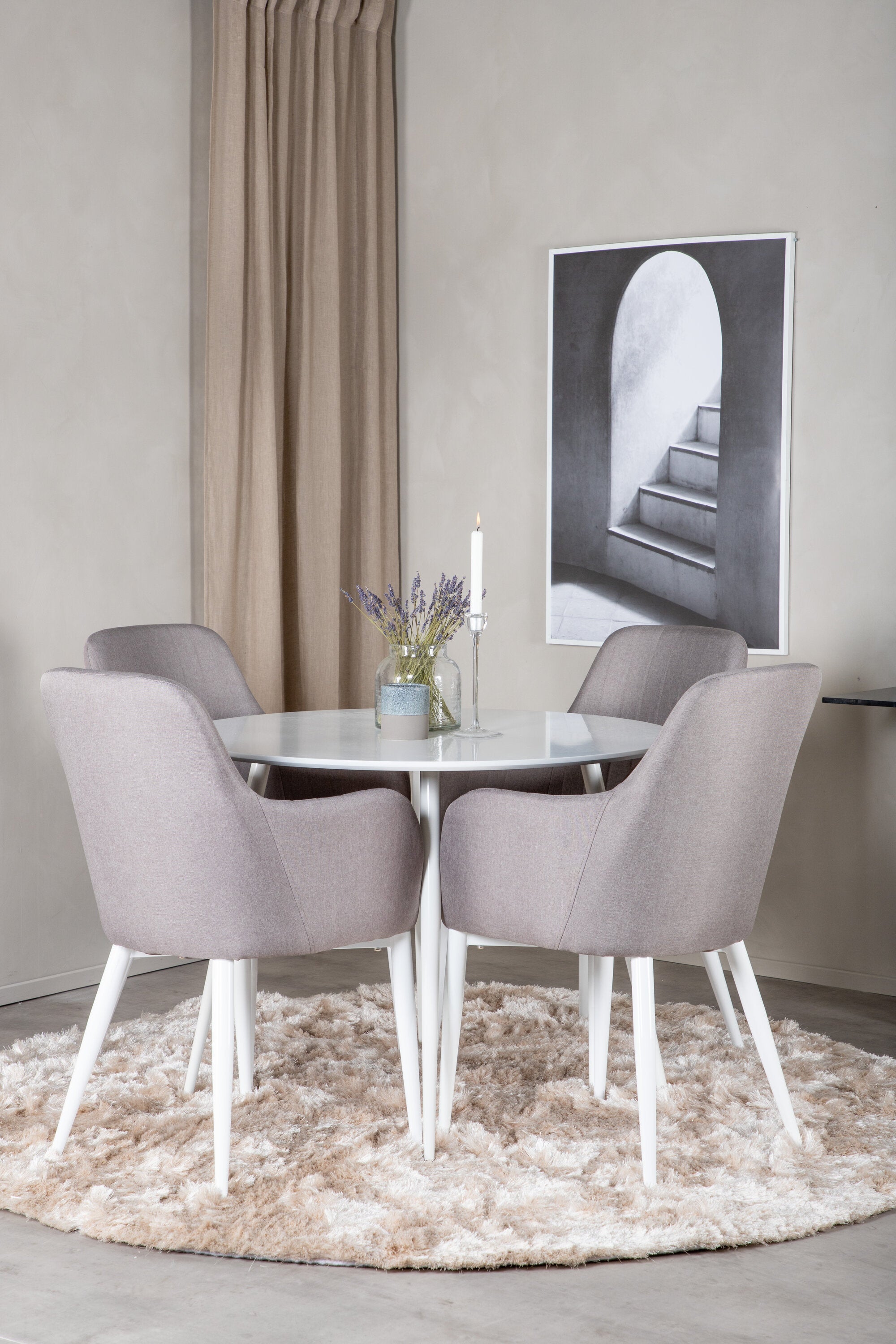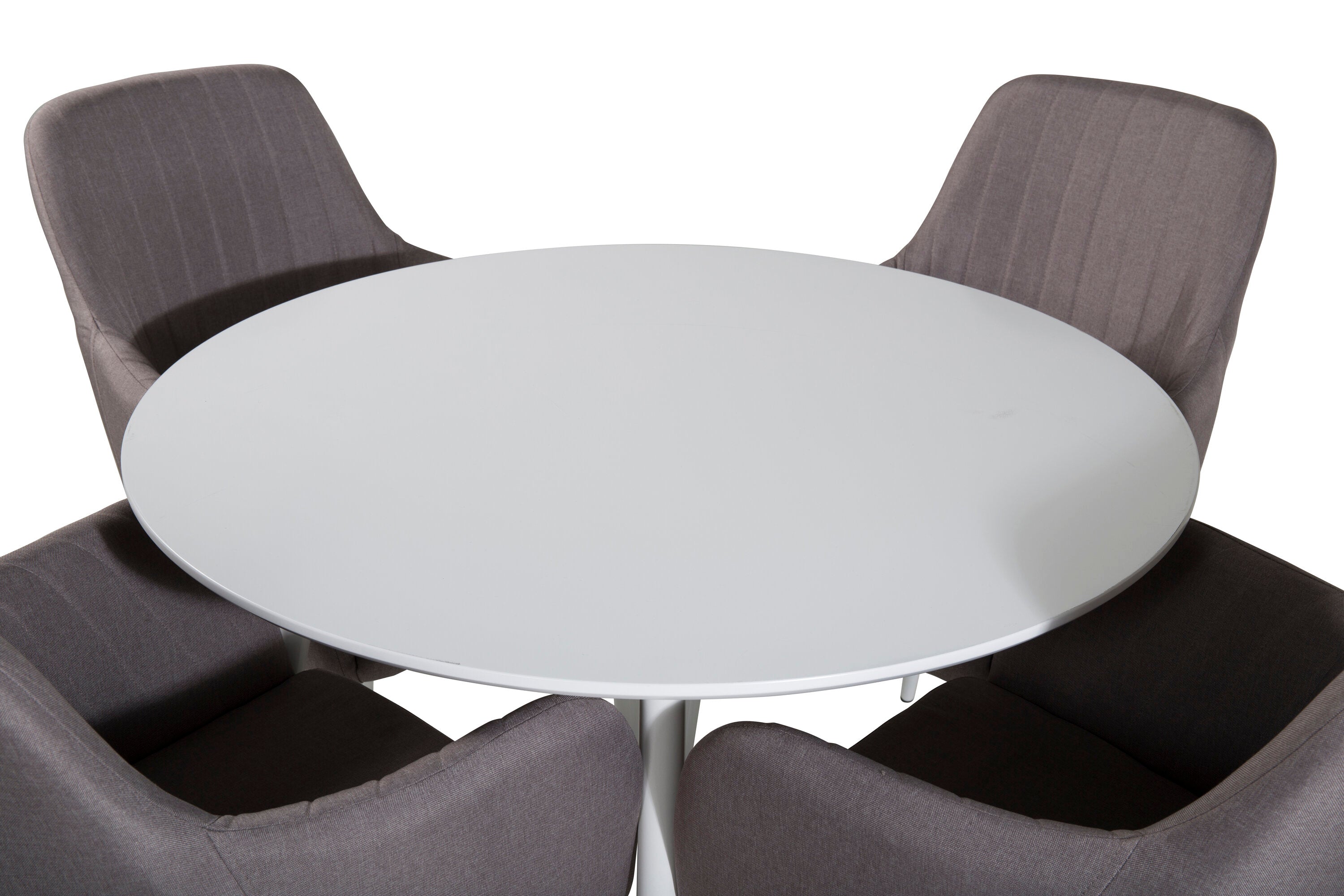 Kulatý stůl Plaza 100 cm - Bílá deska / Bílé nohy + Komfortní židle Polar šedá - Bílé nohy _4