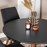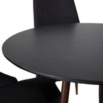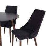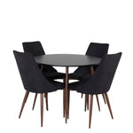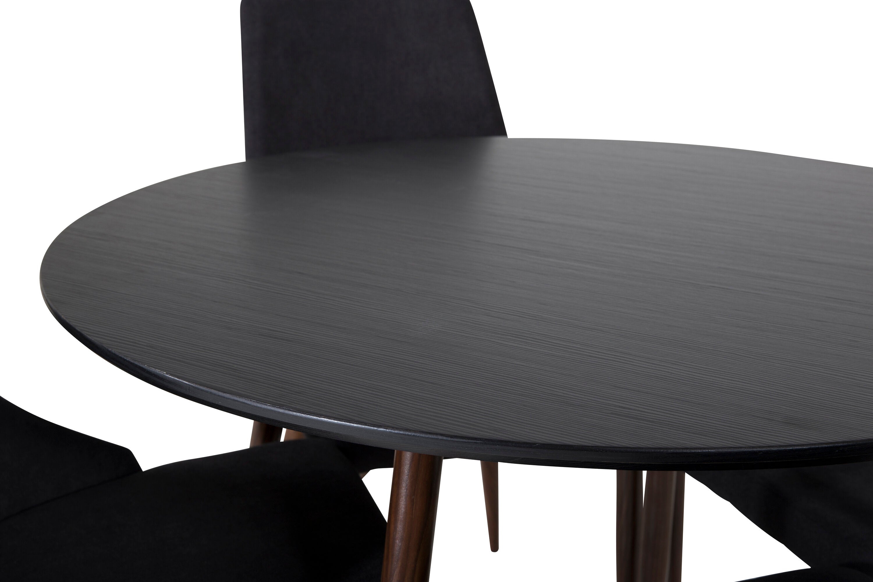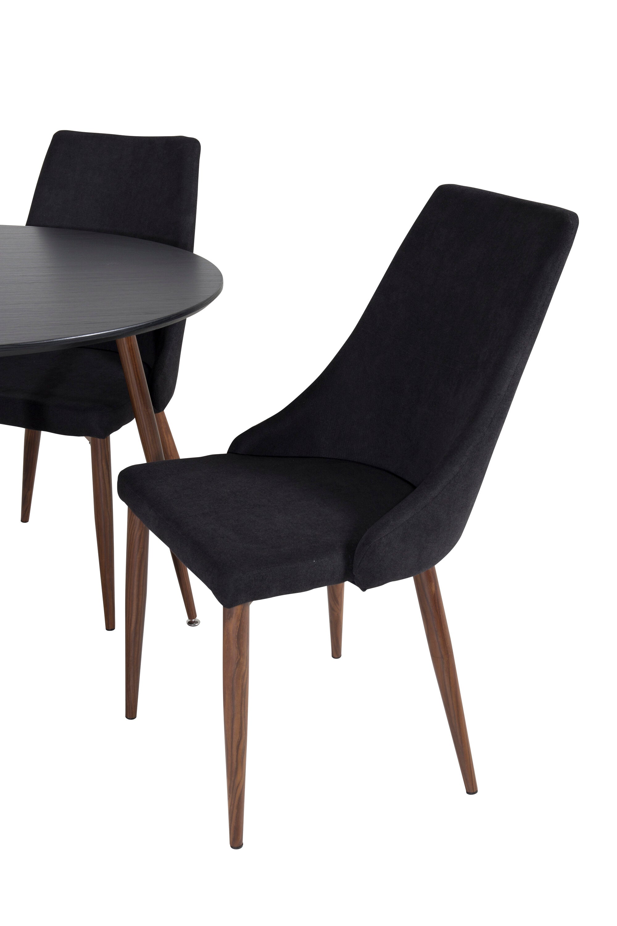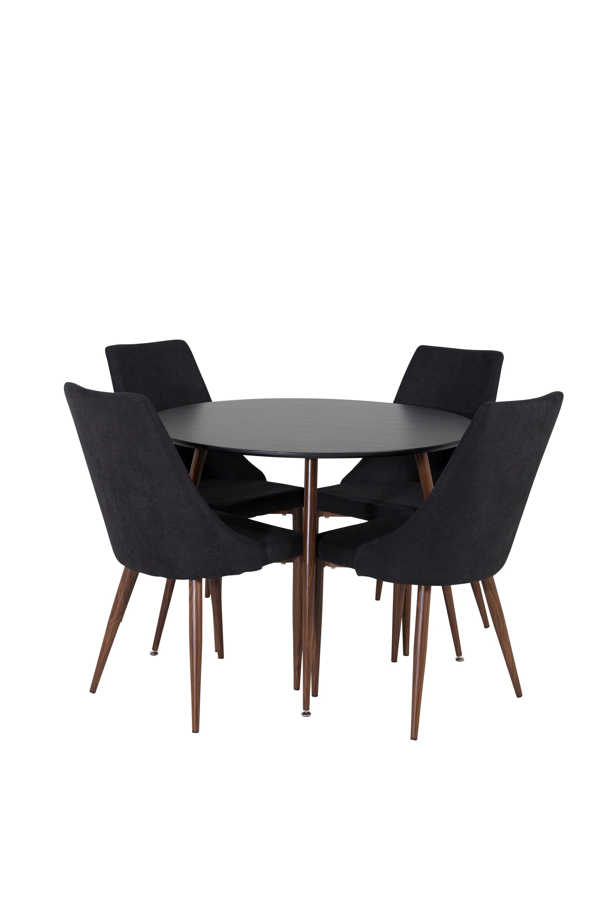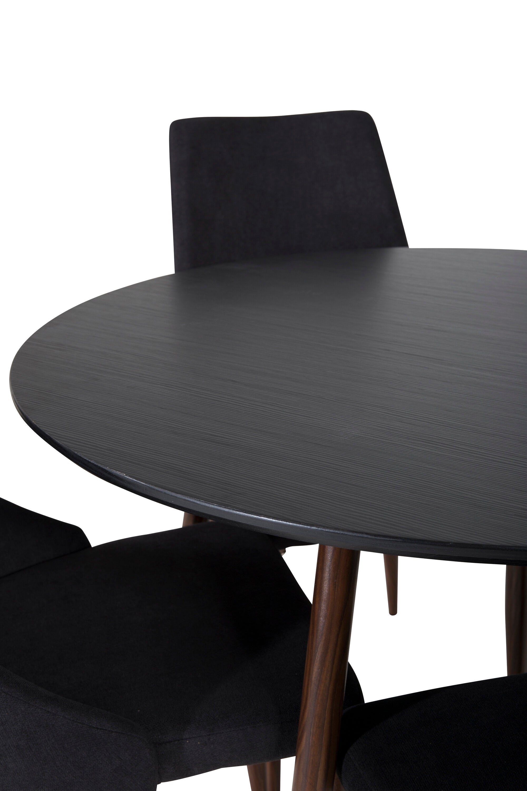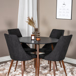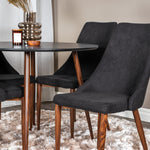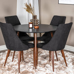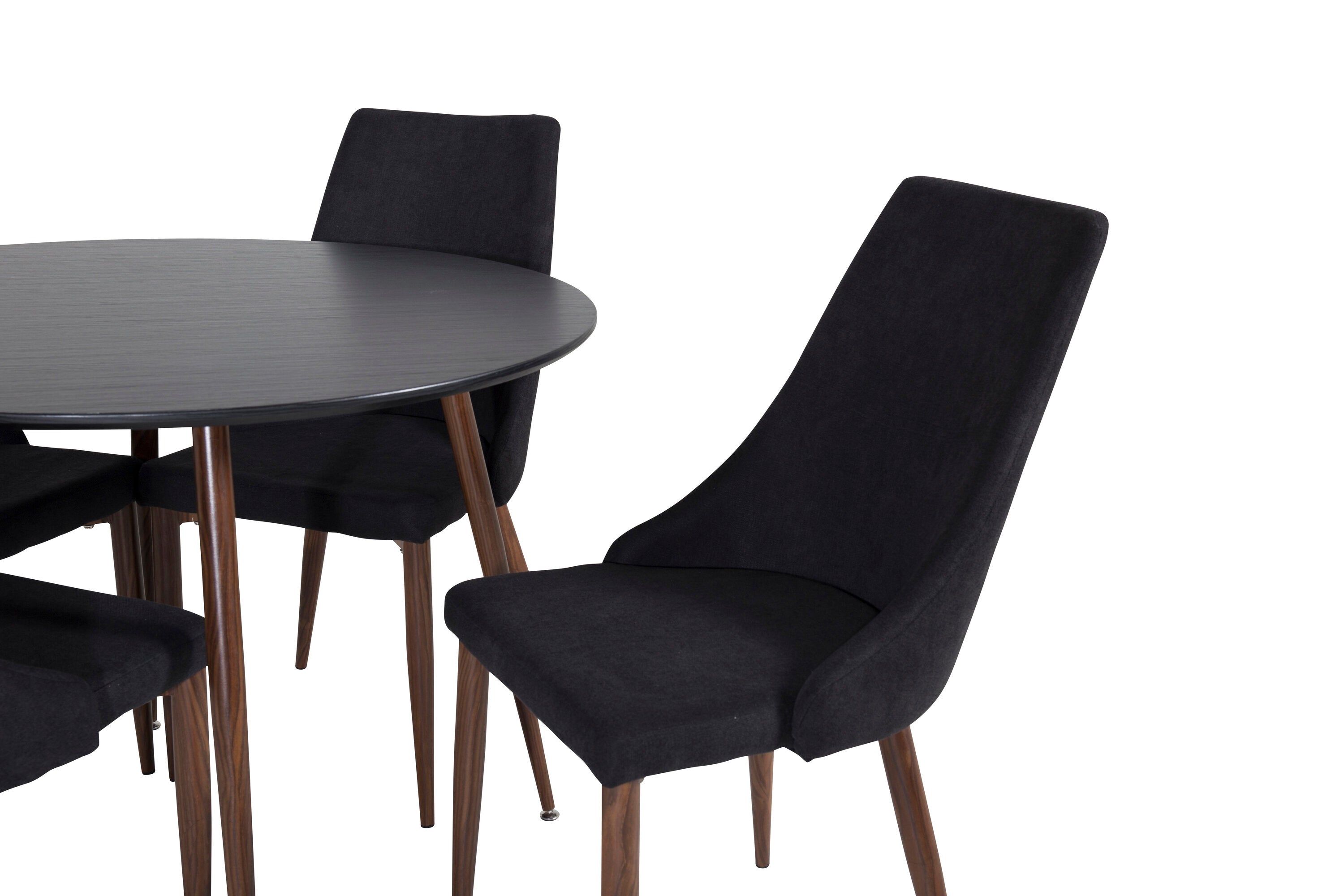Kulatý stůl Plaza 100 cm - Černá deska - Ořechové nohy+Jídelní židle Leone - Ořechové nohy - Černá Fabric_4