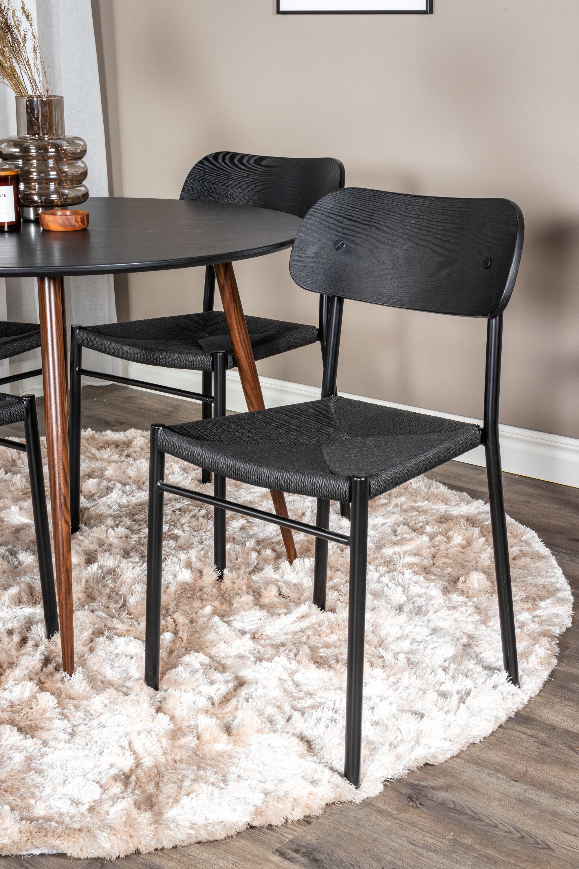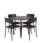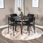 Kulatý stůl Plaza 100 cm - Černá deska - Ořechové nohy + Jídelní židle Polly 2-balení - Černá / Černá _4