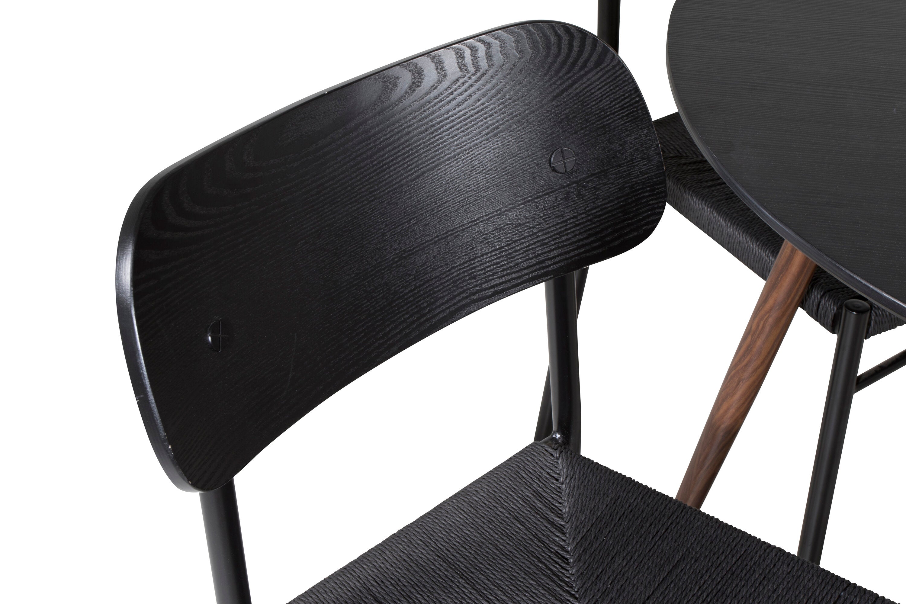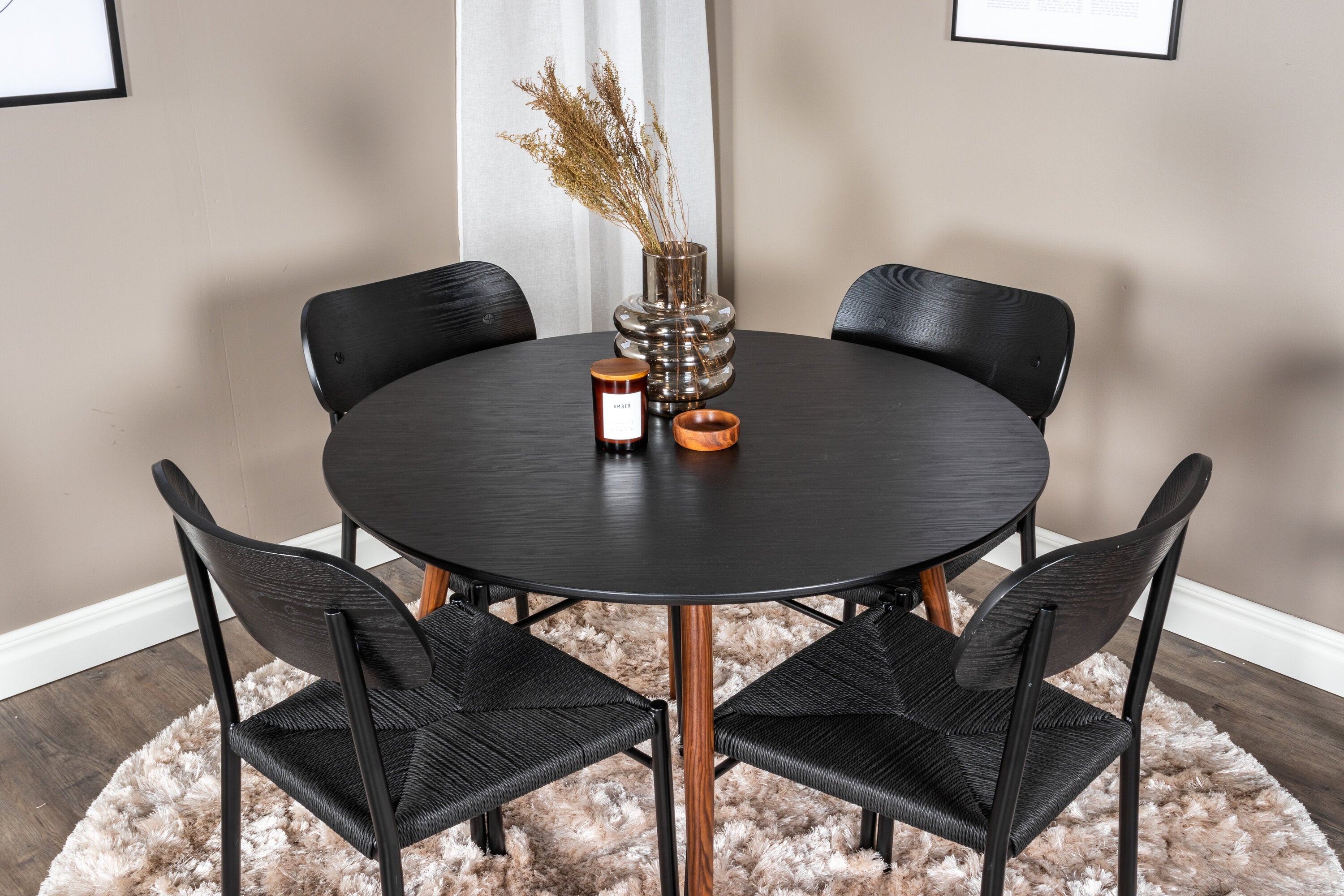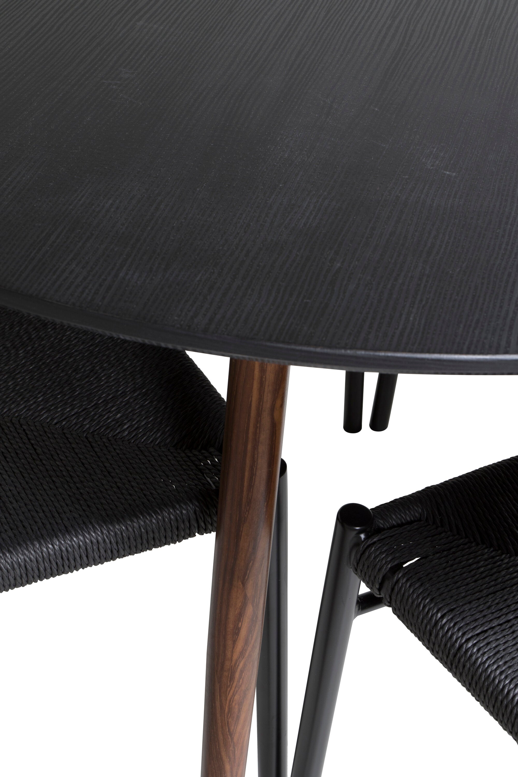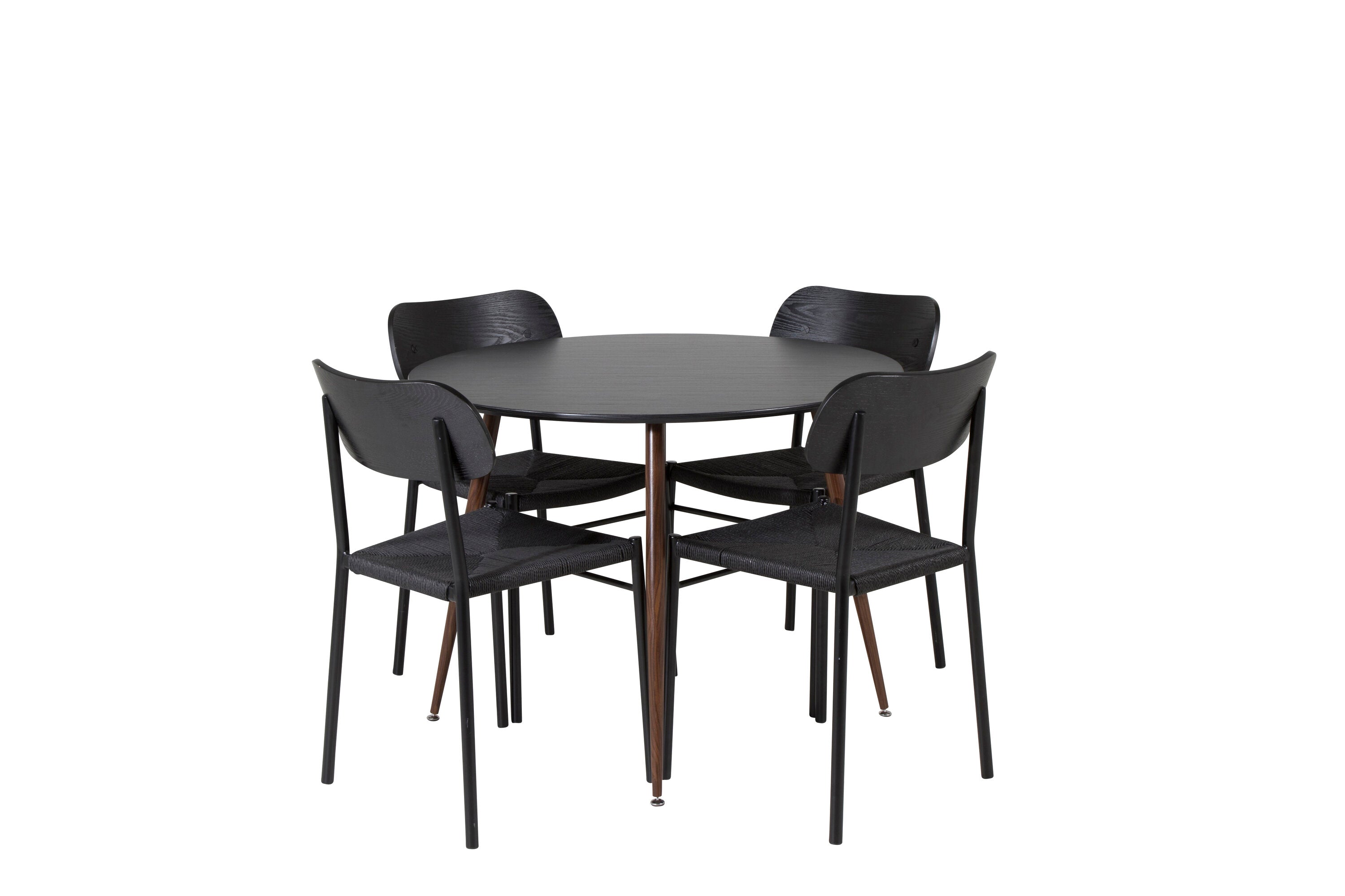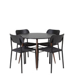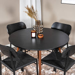 Kulatý stůl Plaza 100 cm - Černá deska - Ořechové nohy + Jídelní židle Polly - Černá / Černá _4