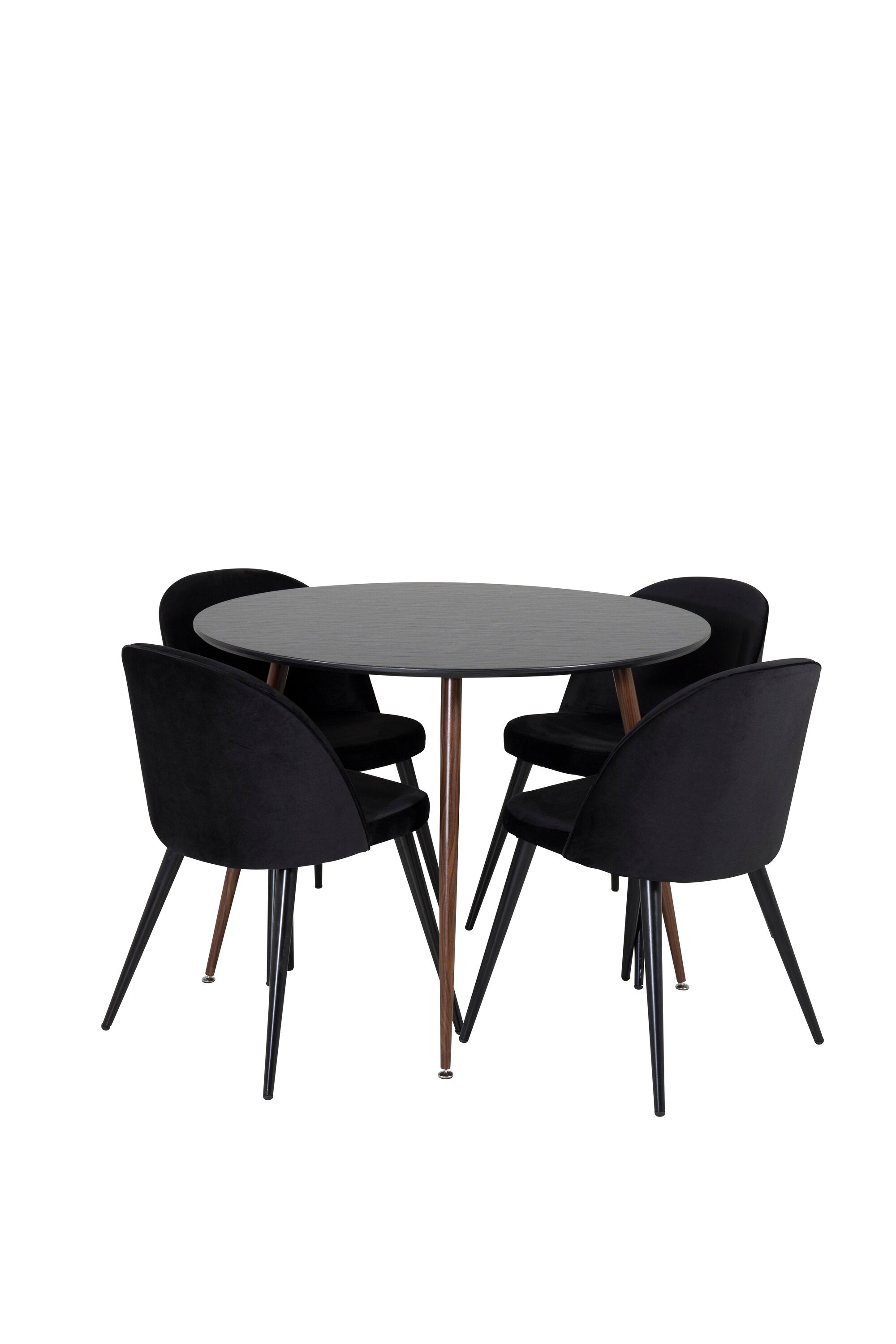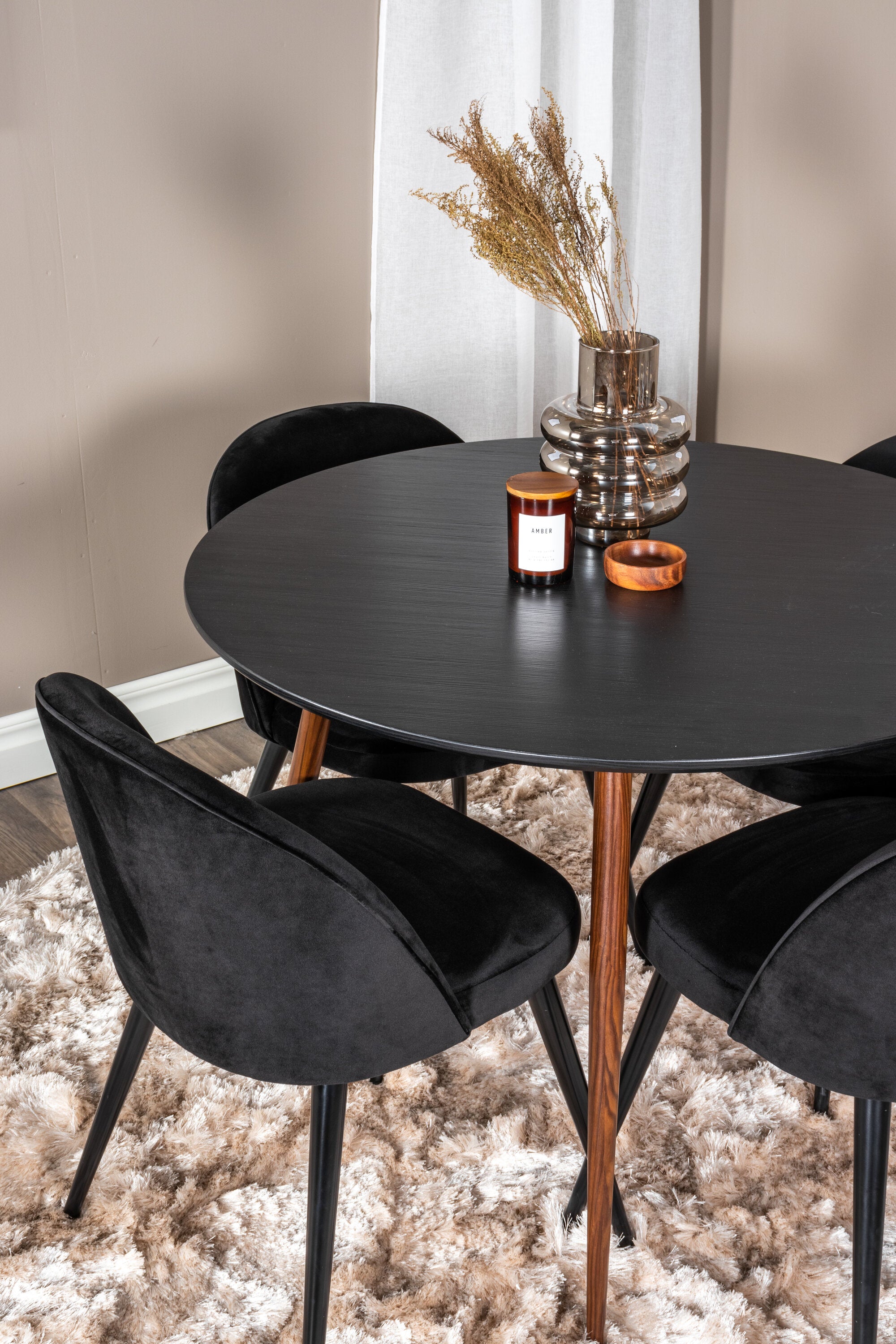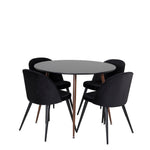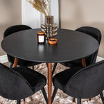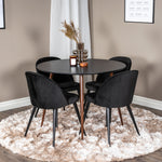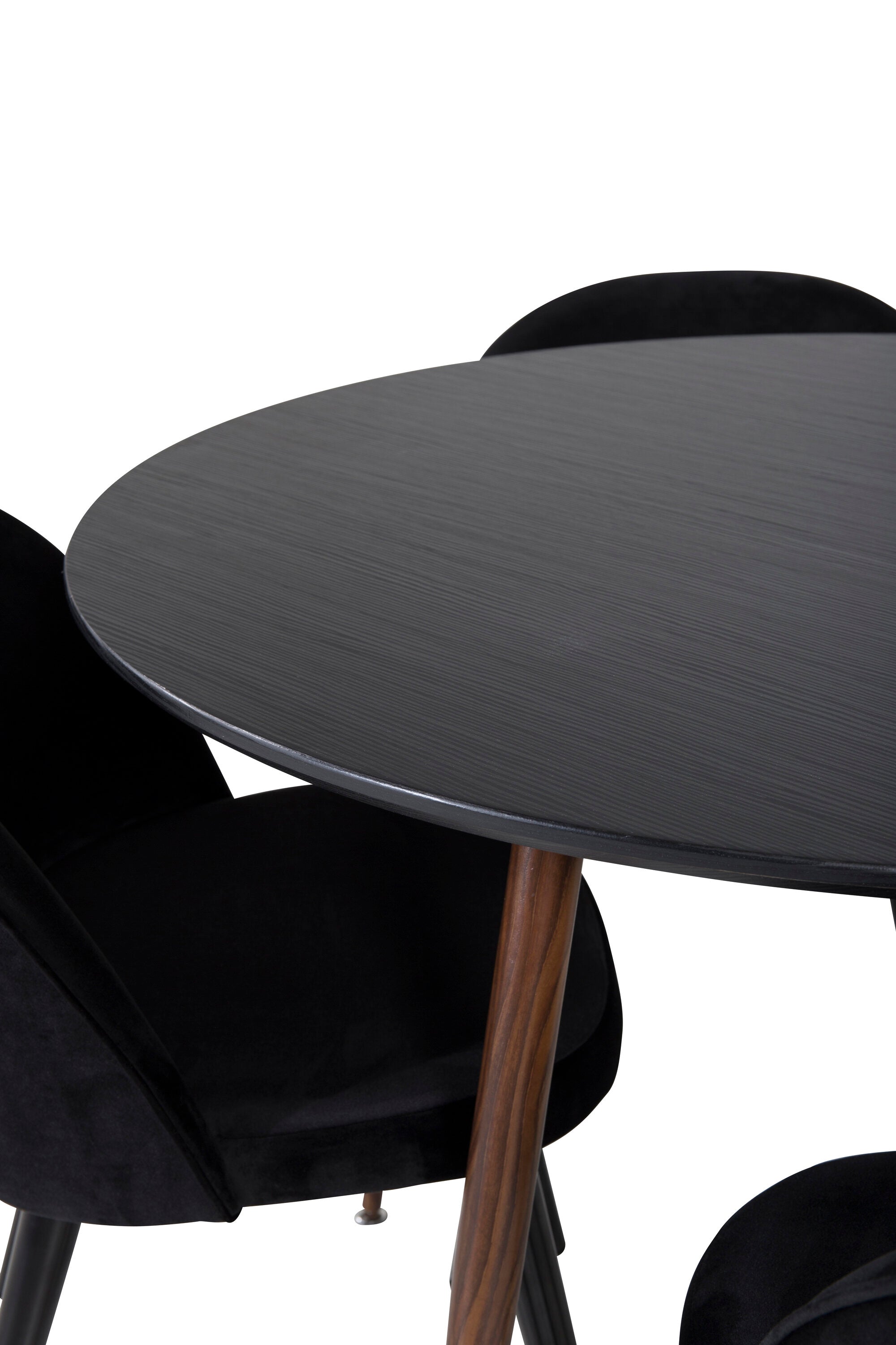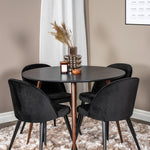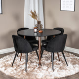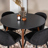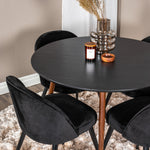 Kulatý stůl Plaza 100 cm - Černá deska - Ořechové nohy+Sametová jídelní židle - Černá / Černá_4