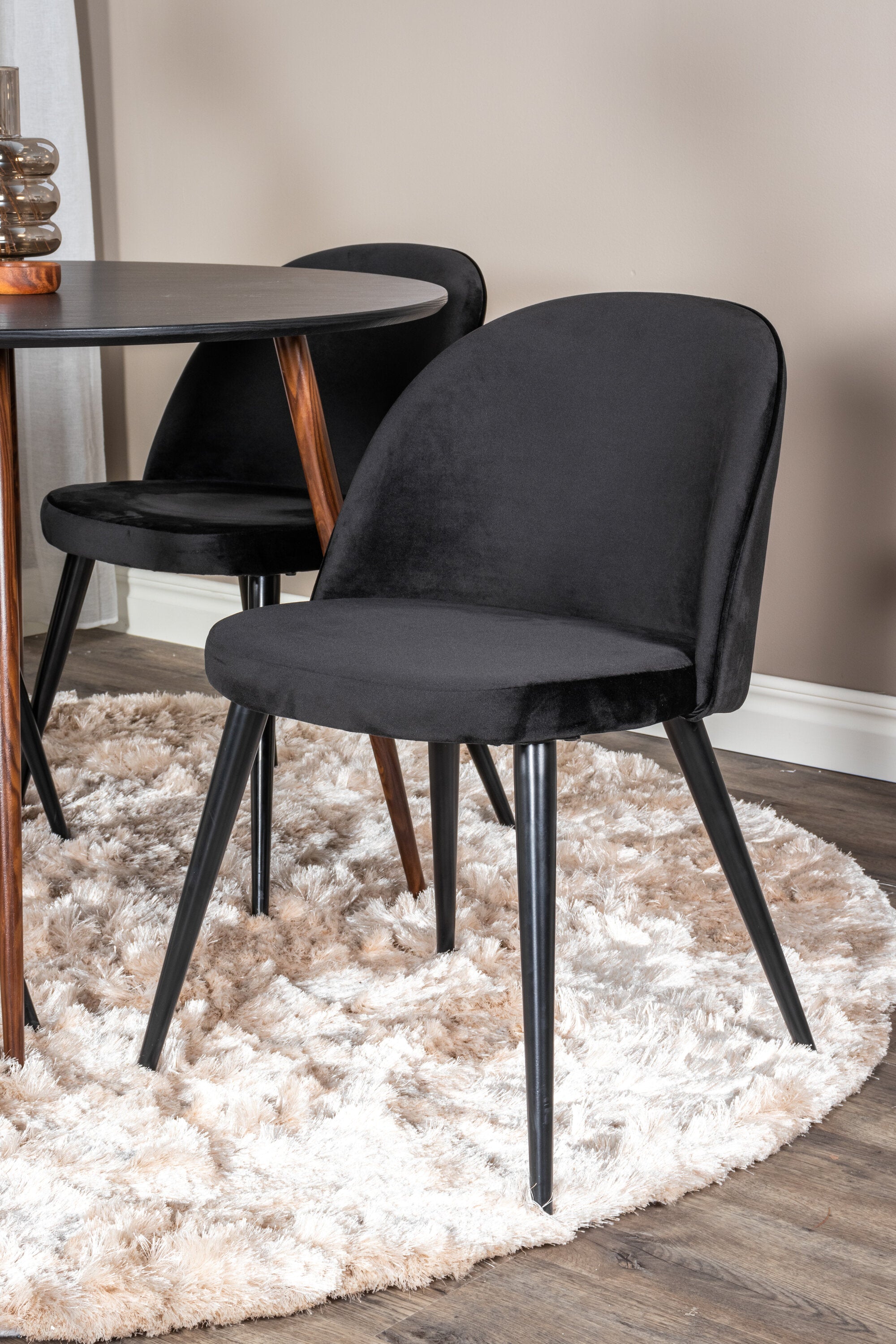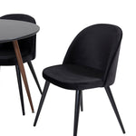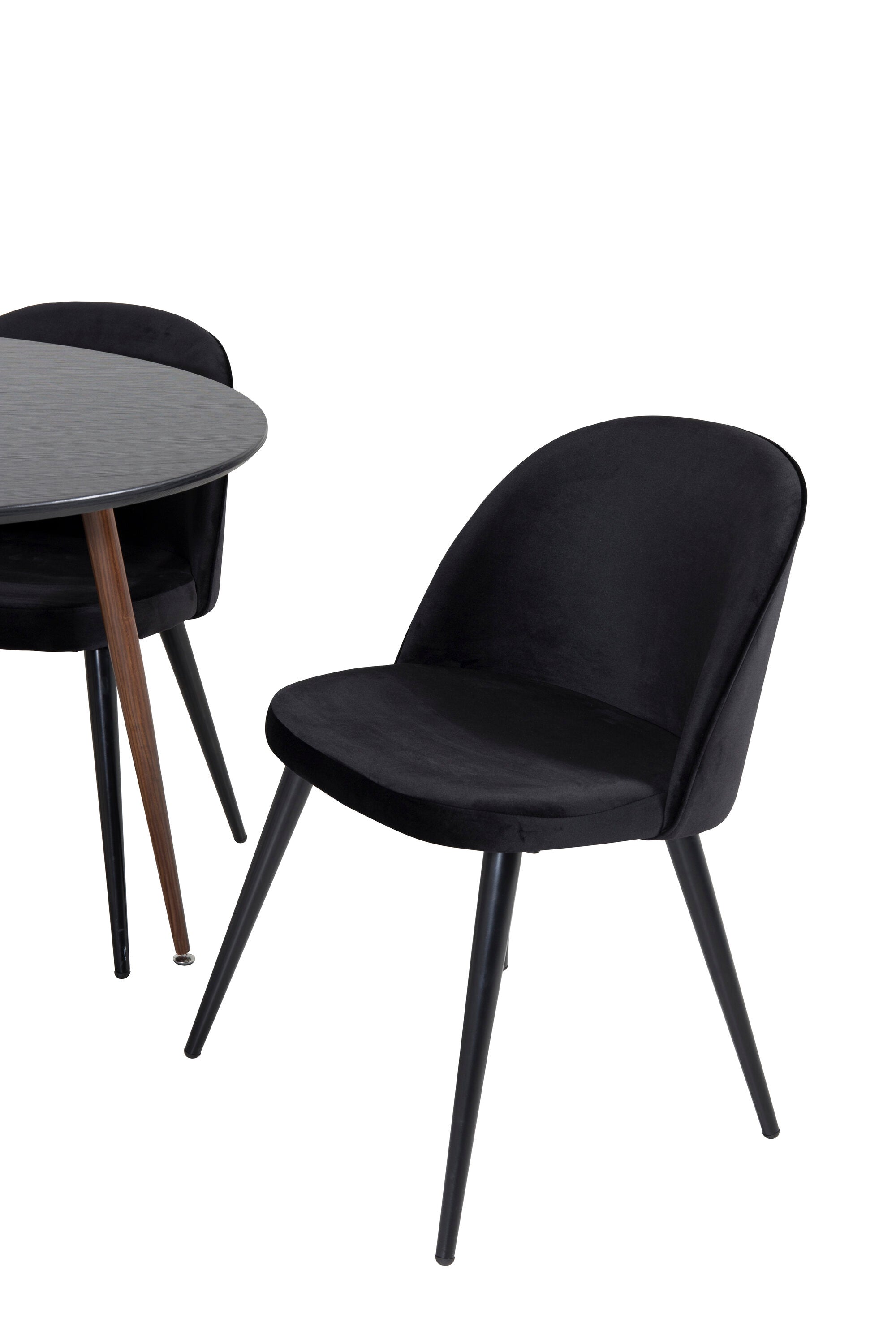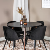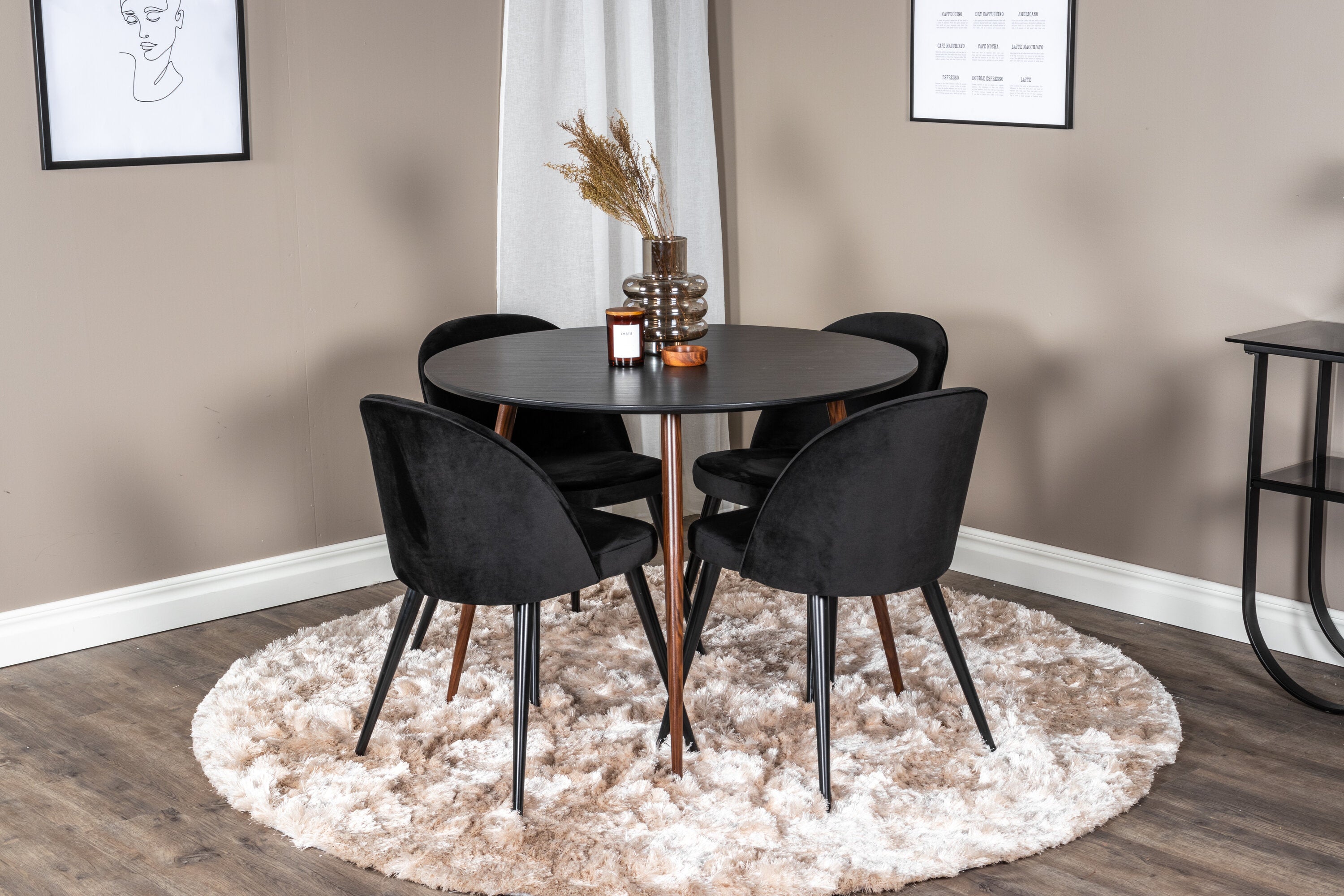 Kulatý stůl Plaza 100 cm - Černá deska - Ořechové nohy+Sametová jídelní židle - Černá / Černá_4