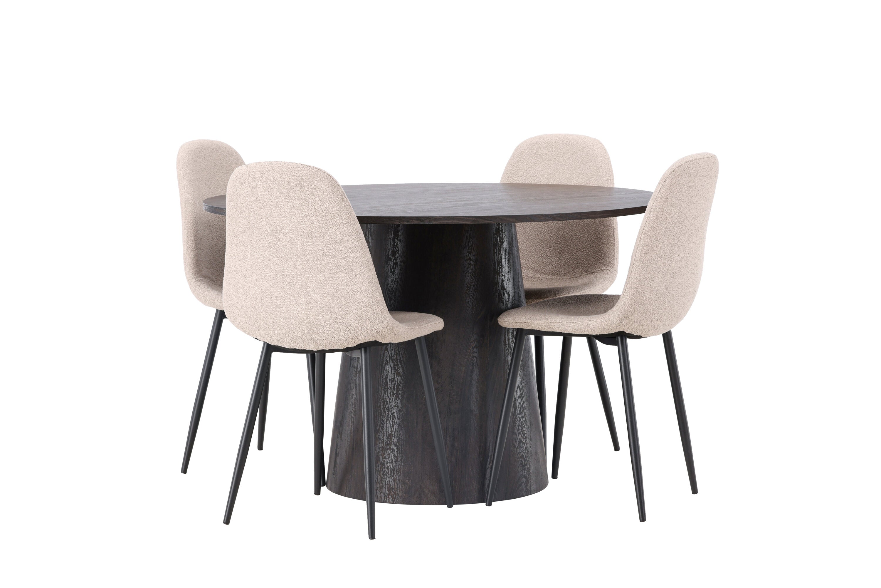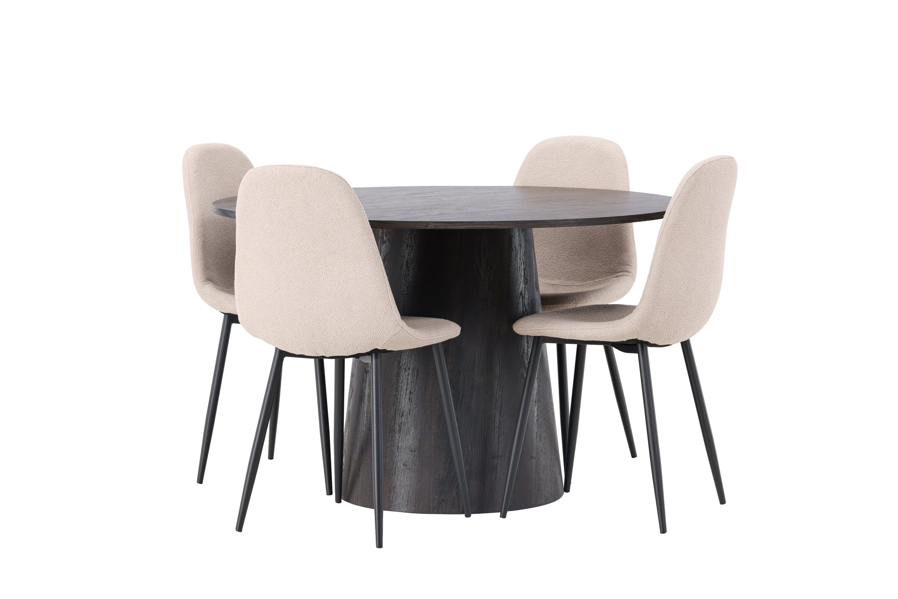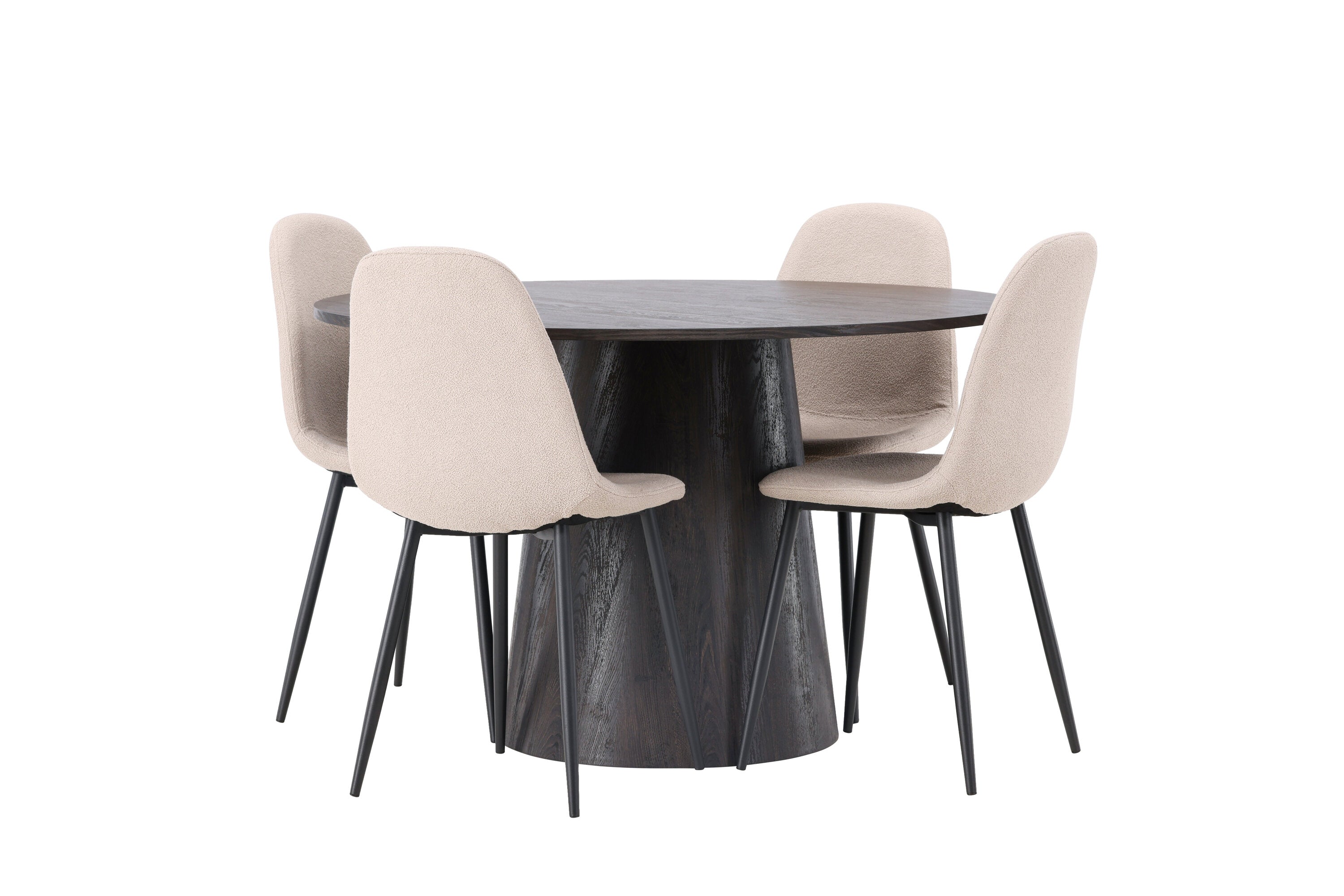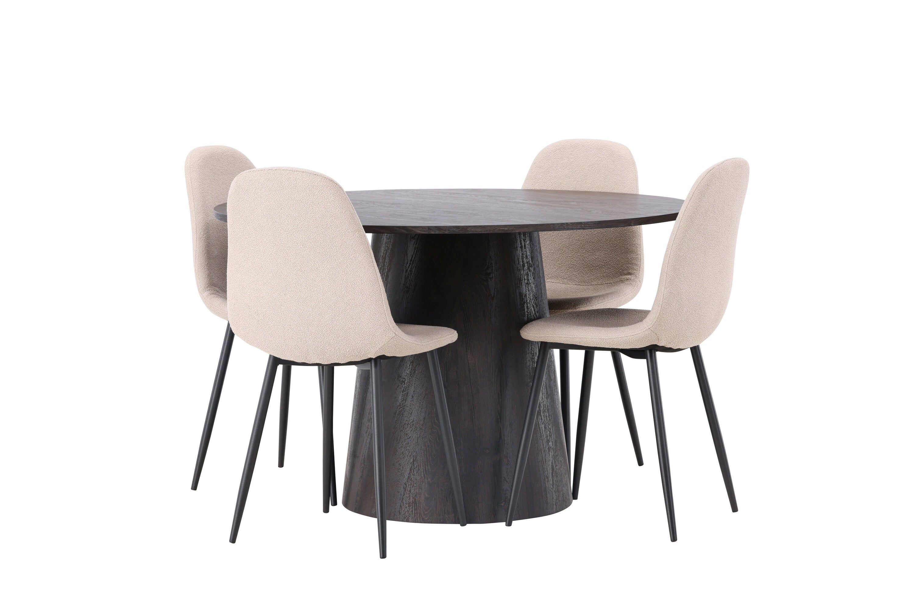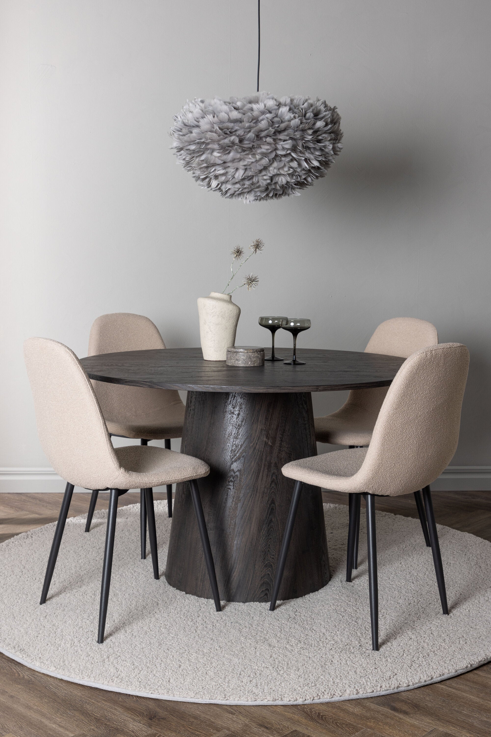 Lanzo jídelní stůl φ120 - Mocca/Mocca + Jídelní židle Polar - Černá / Béžová Boucle _4