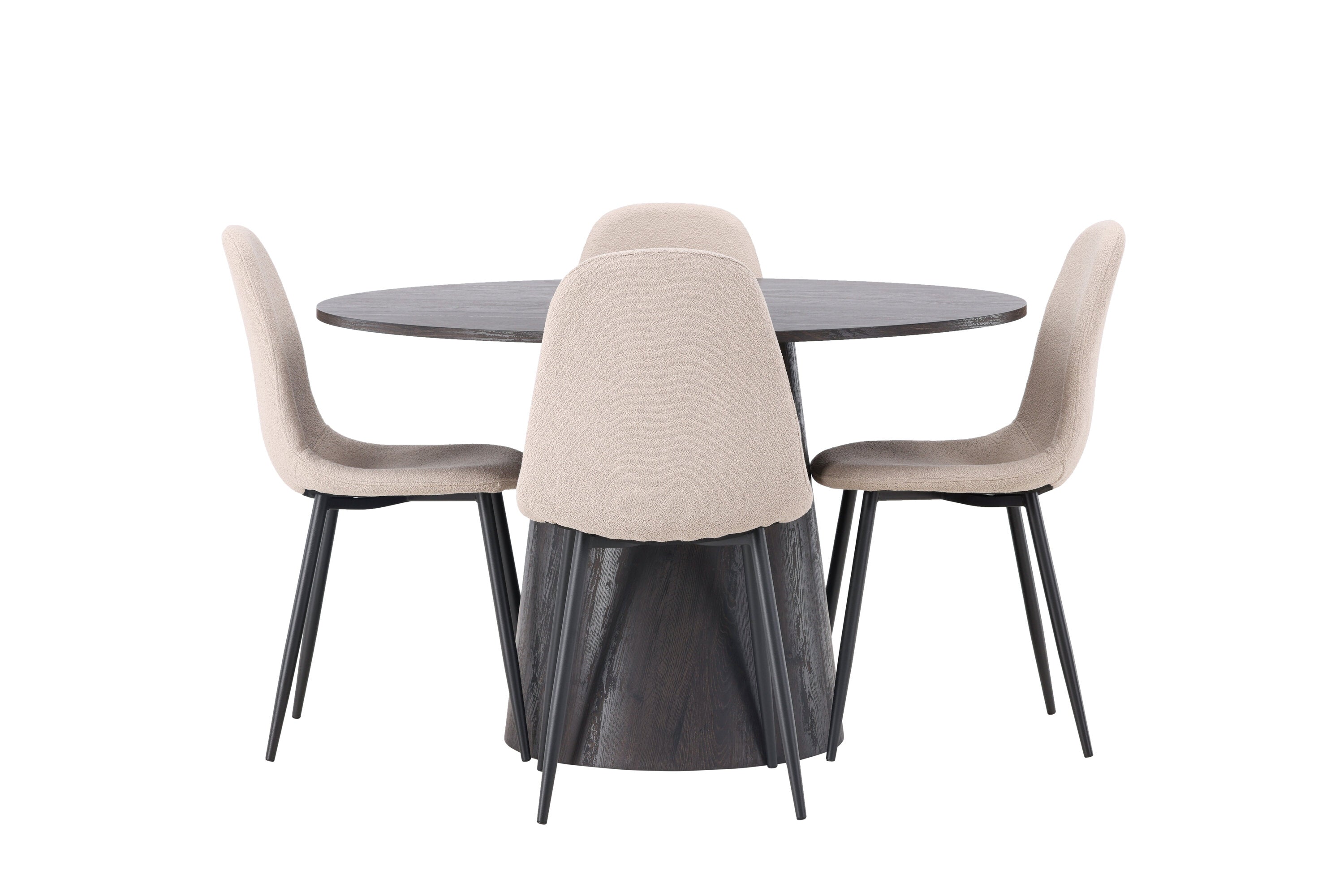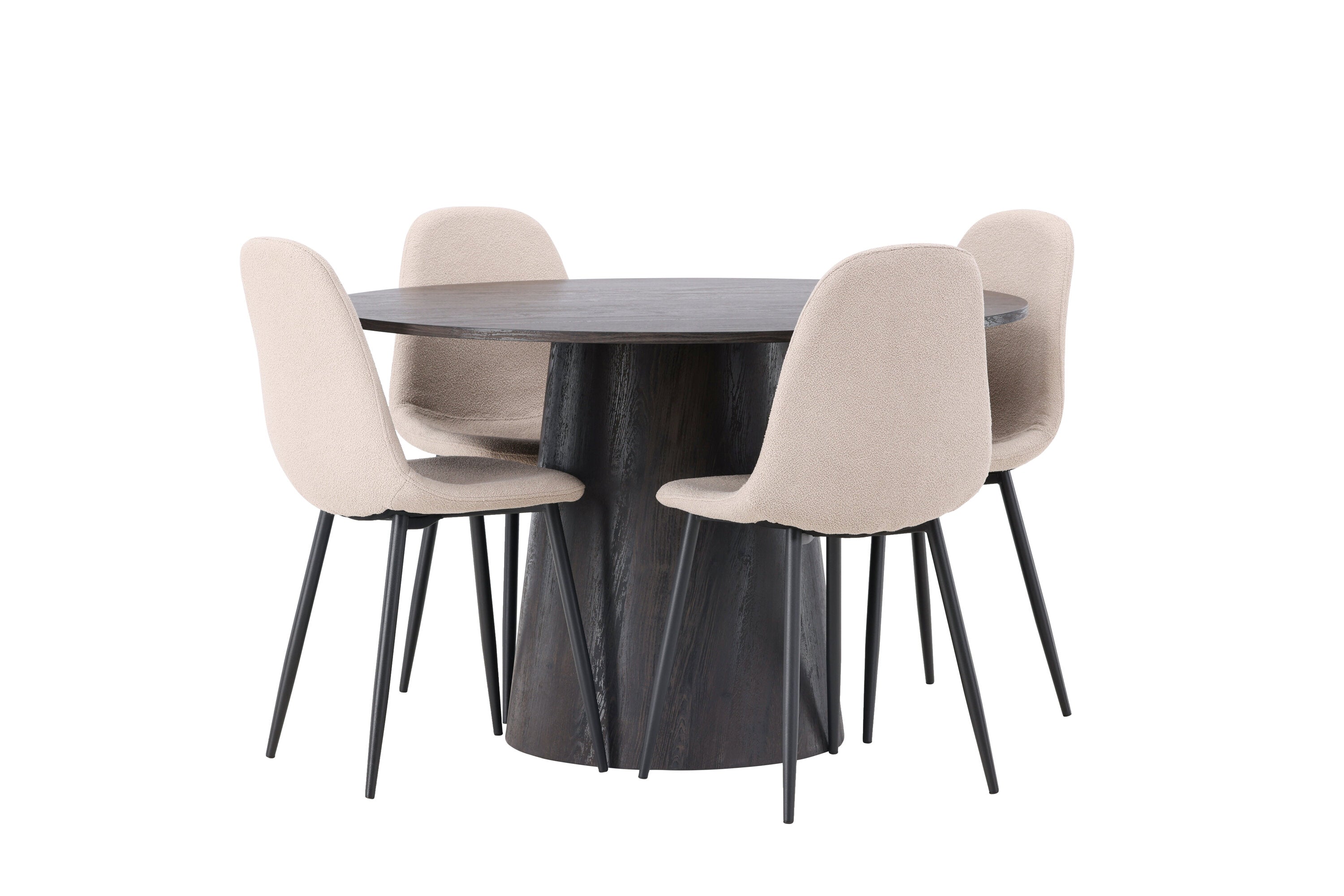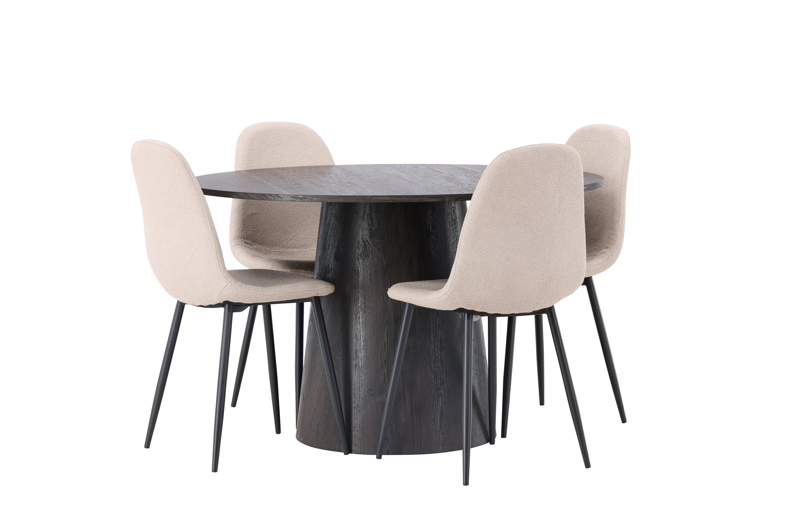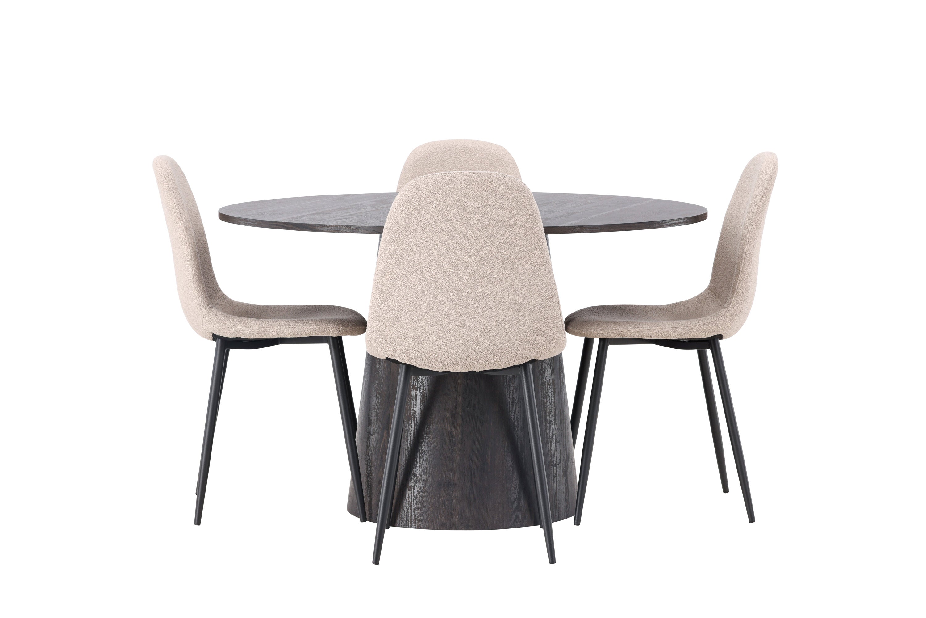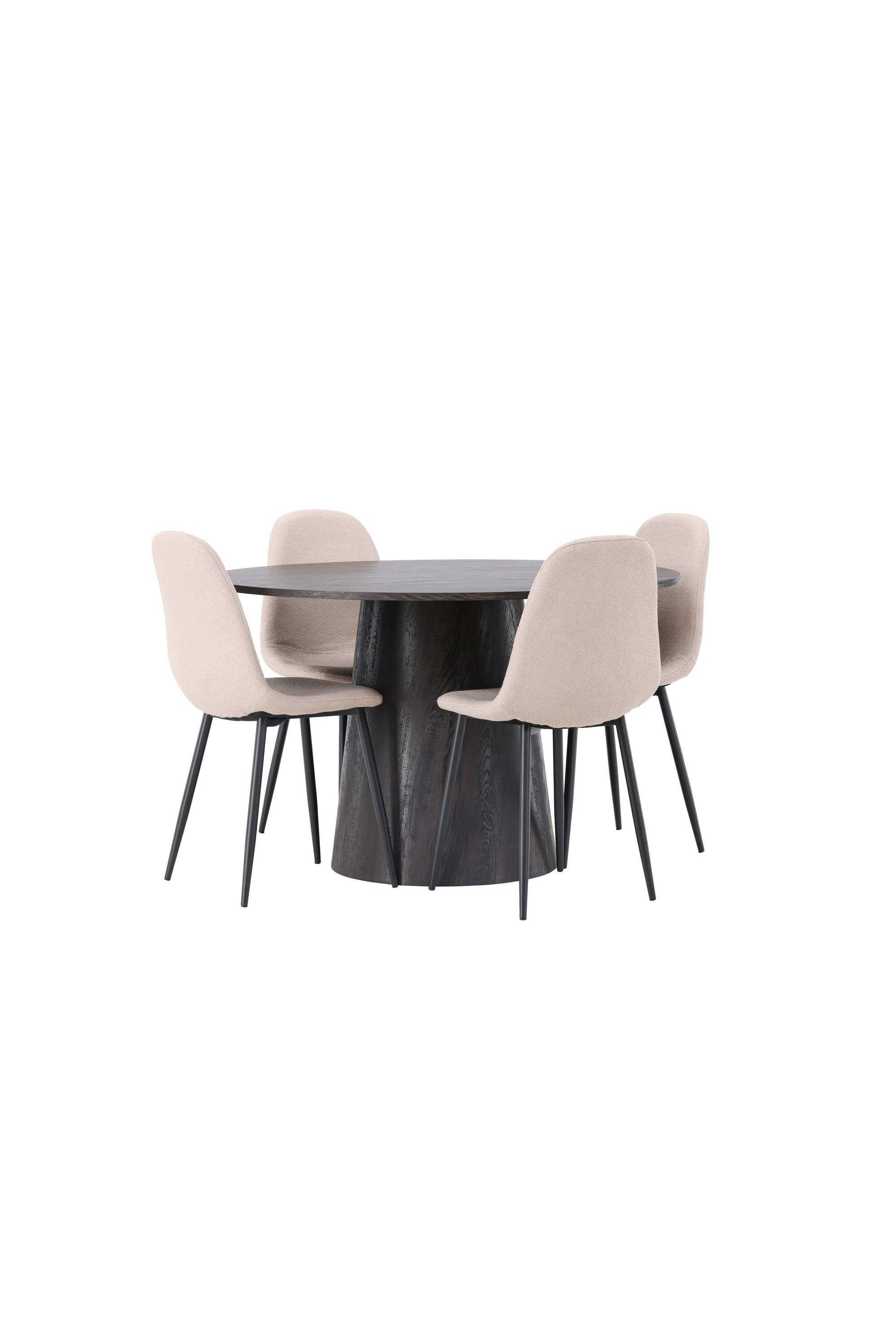 Lanzo jídelní stůl φ120 - Mocca/Mocca + Jídelní židle Polar - Černá / Béžová Boucle _4