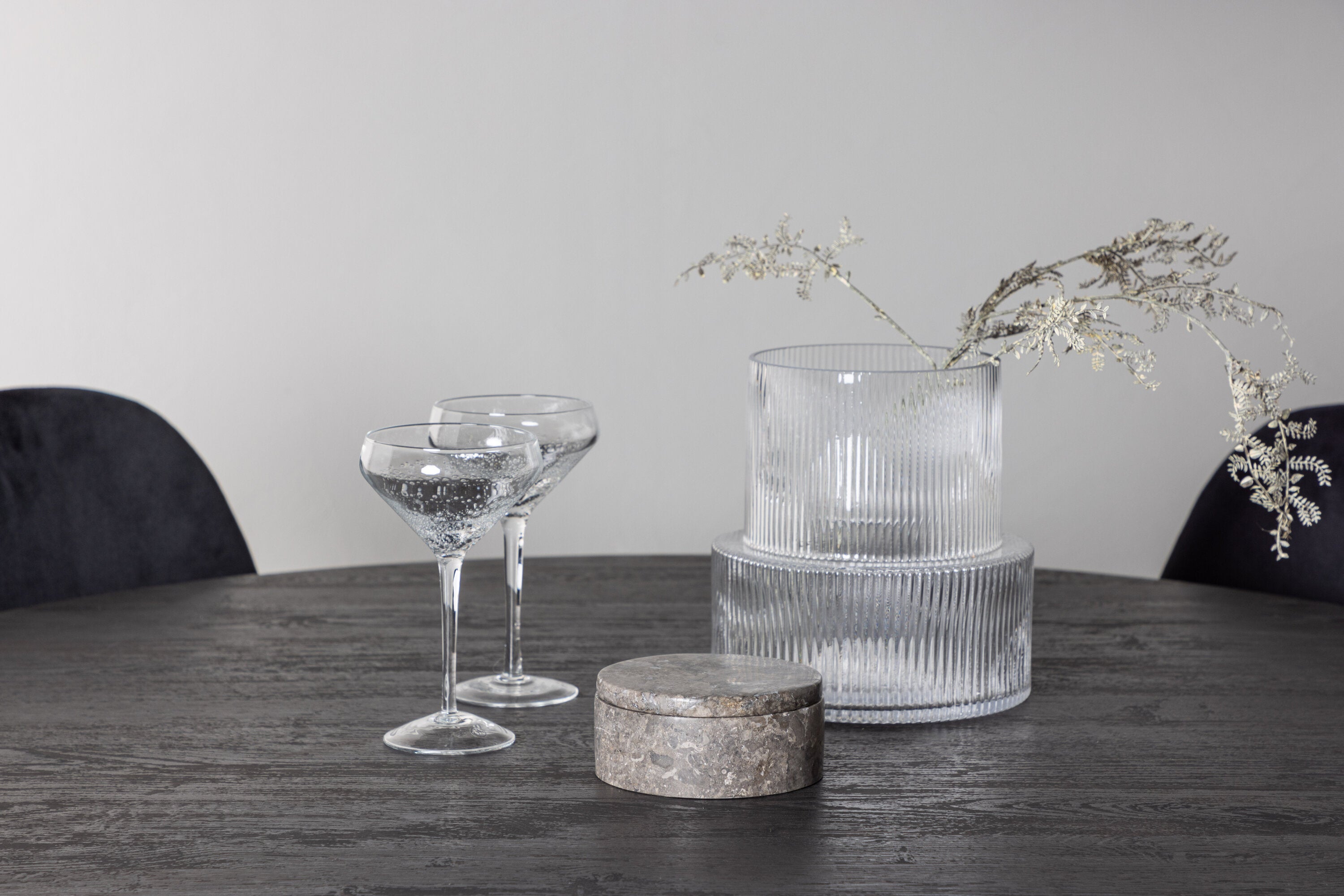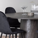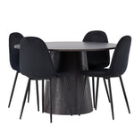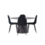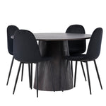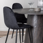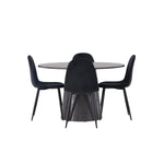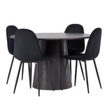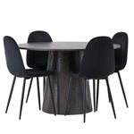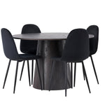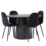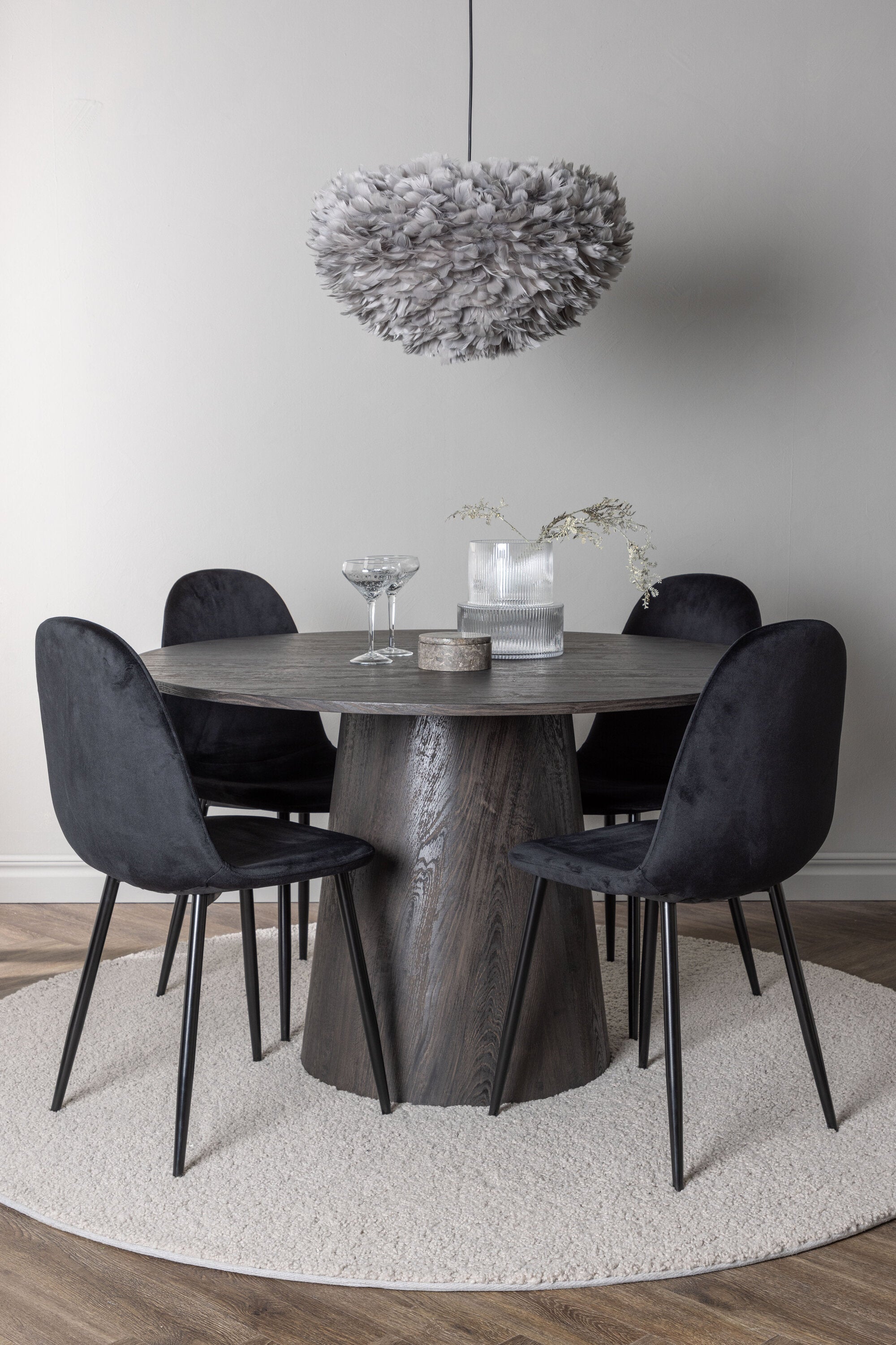 Tady nikdo nekončí na hraně! Náš nádherný kulatý jídelní stůl Lanzo má celkový design z hnědé MDF s tenkou deskou a krouceným válcovým rámem, který je vycentrován pod stolem. Zde ve stylové kombinaci s černými jídelními židlemi ze série Polar. Židle má celočalouněný design, nohy z kovu s černým práškovým nástřikem a zaoblené opěradlo a sedák z černé sametové látky s měkkým polstrováním. Shromážděte své blízké k příjemnému jídlu! Průměr stolu: 120 cm.