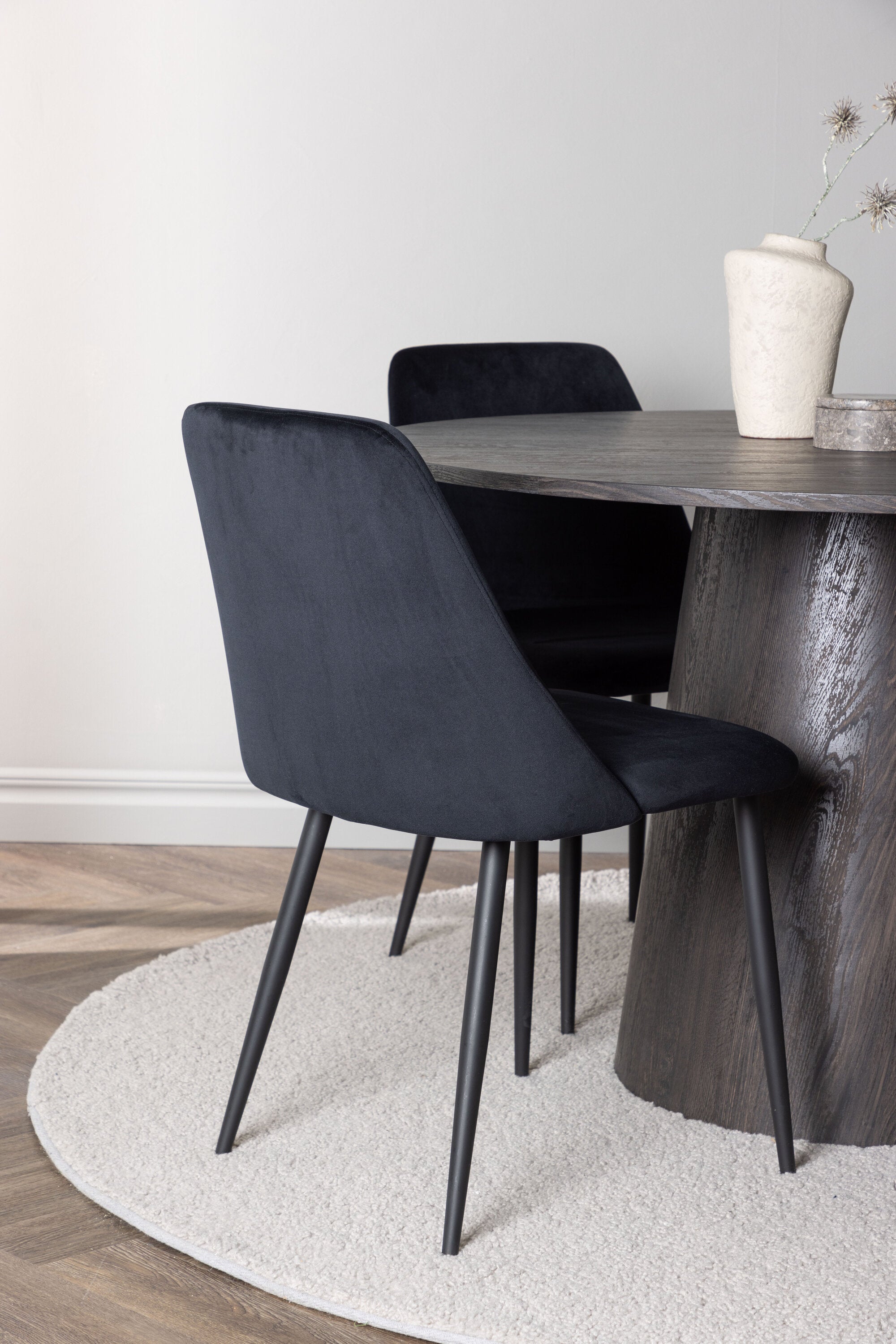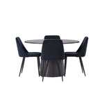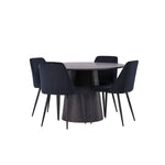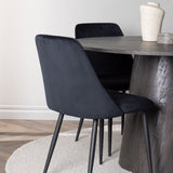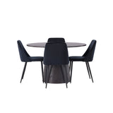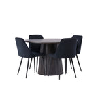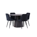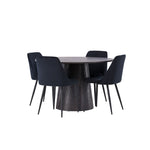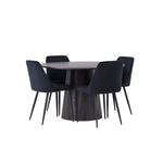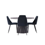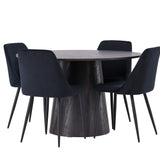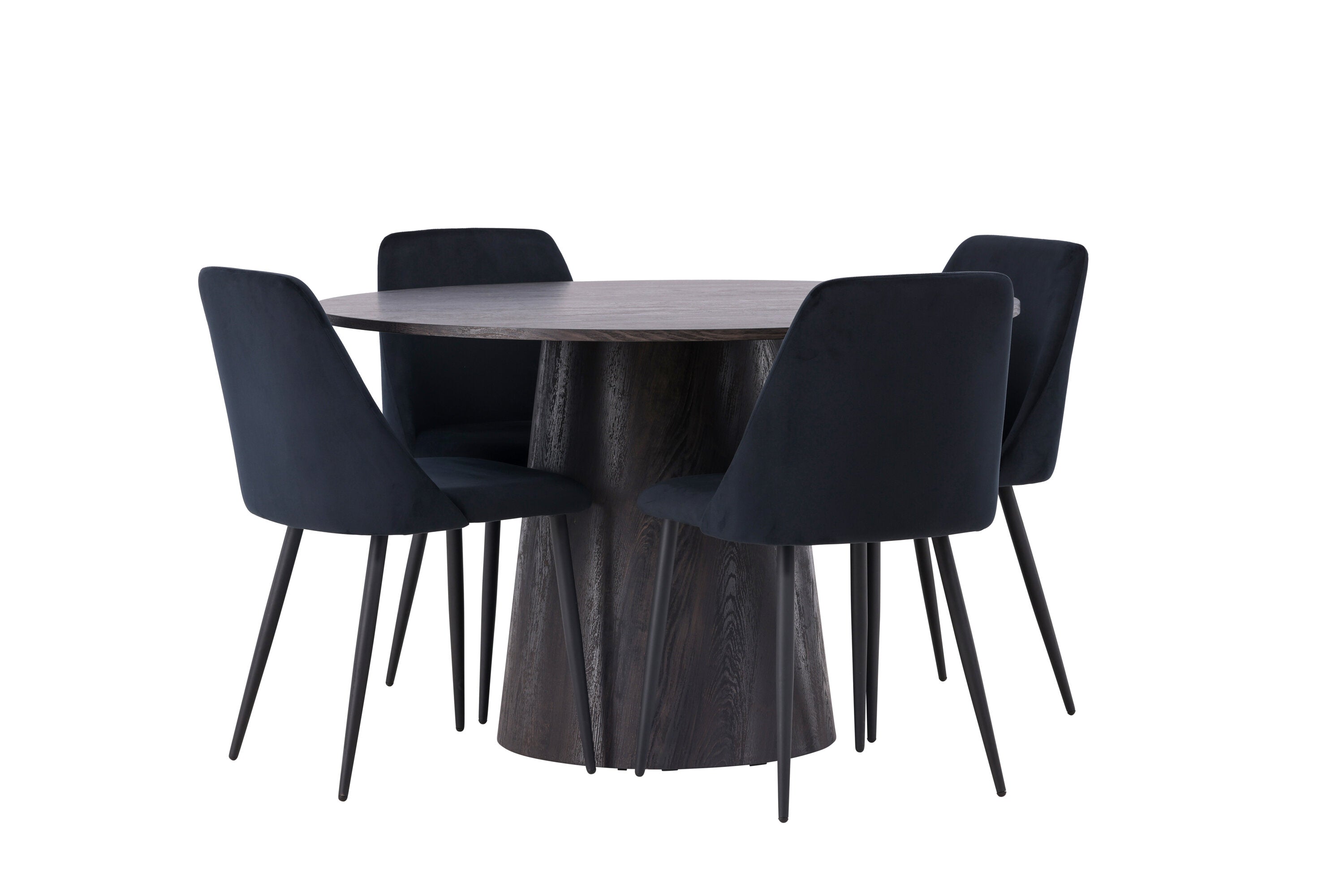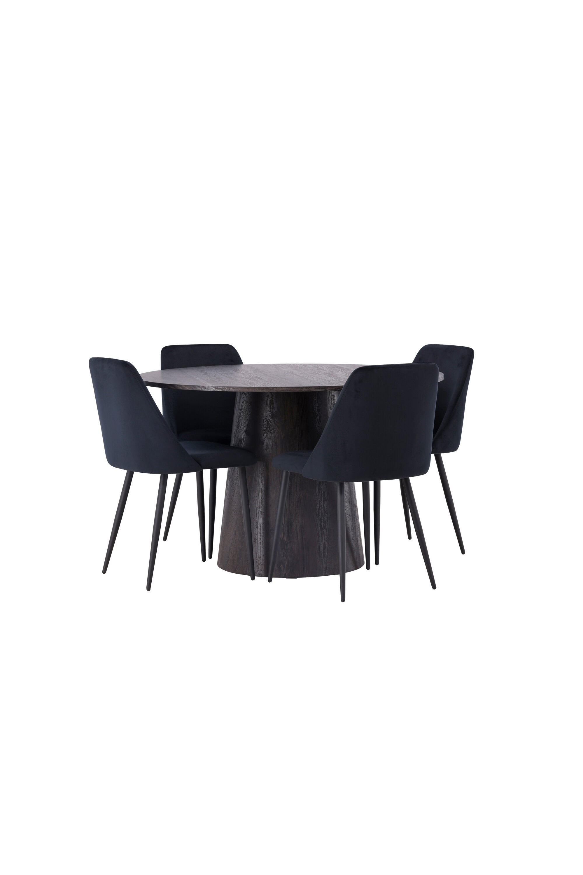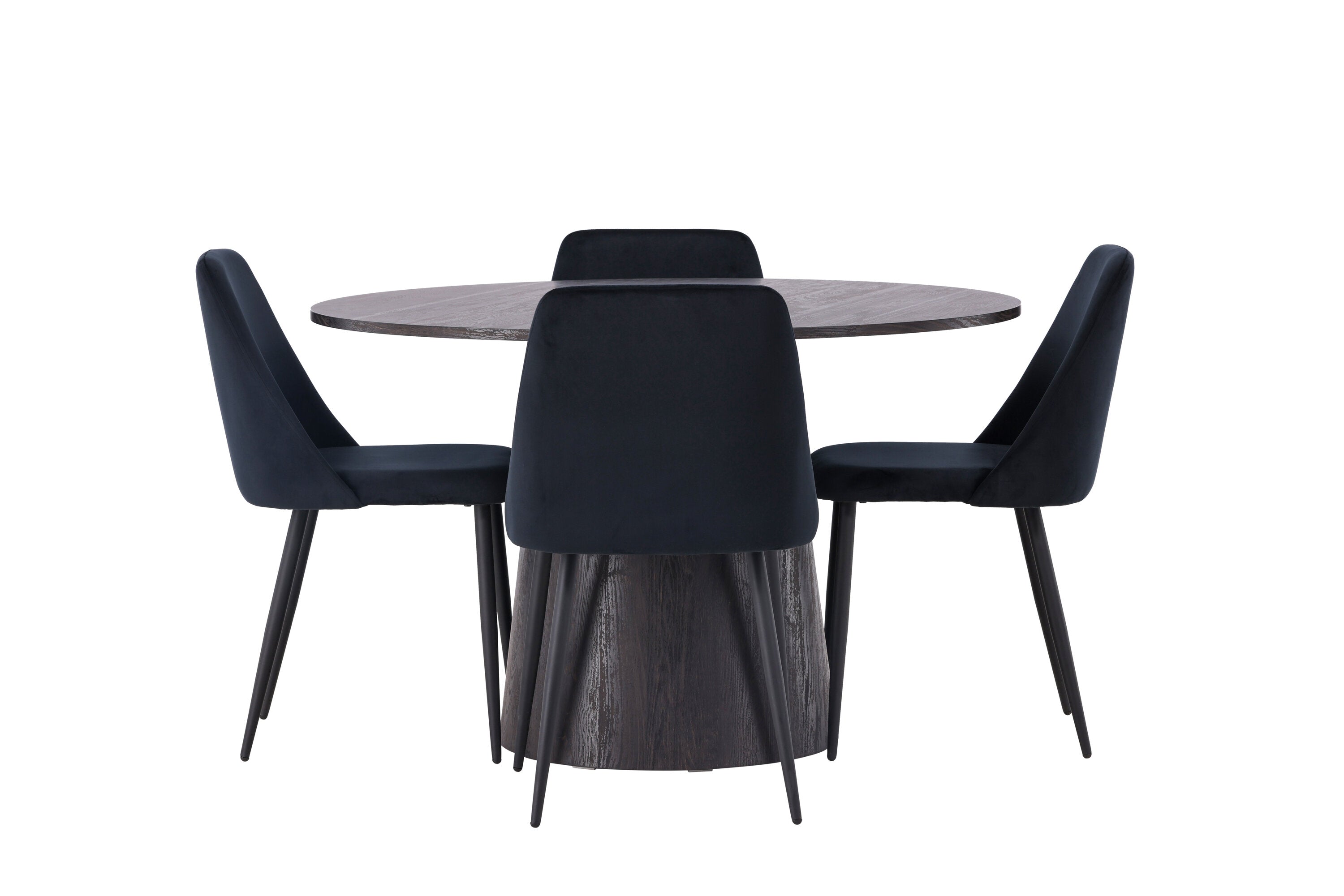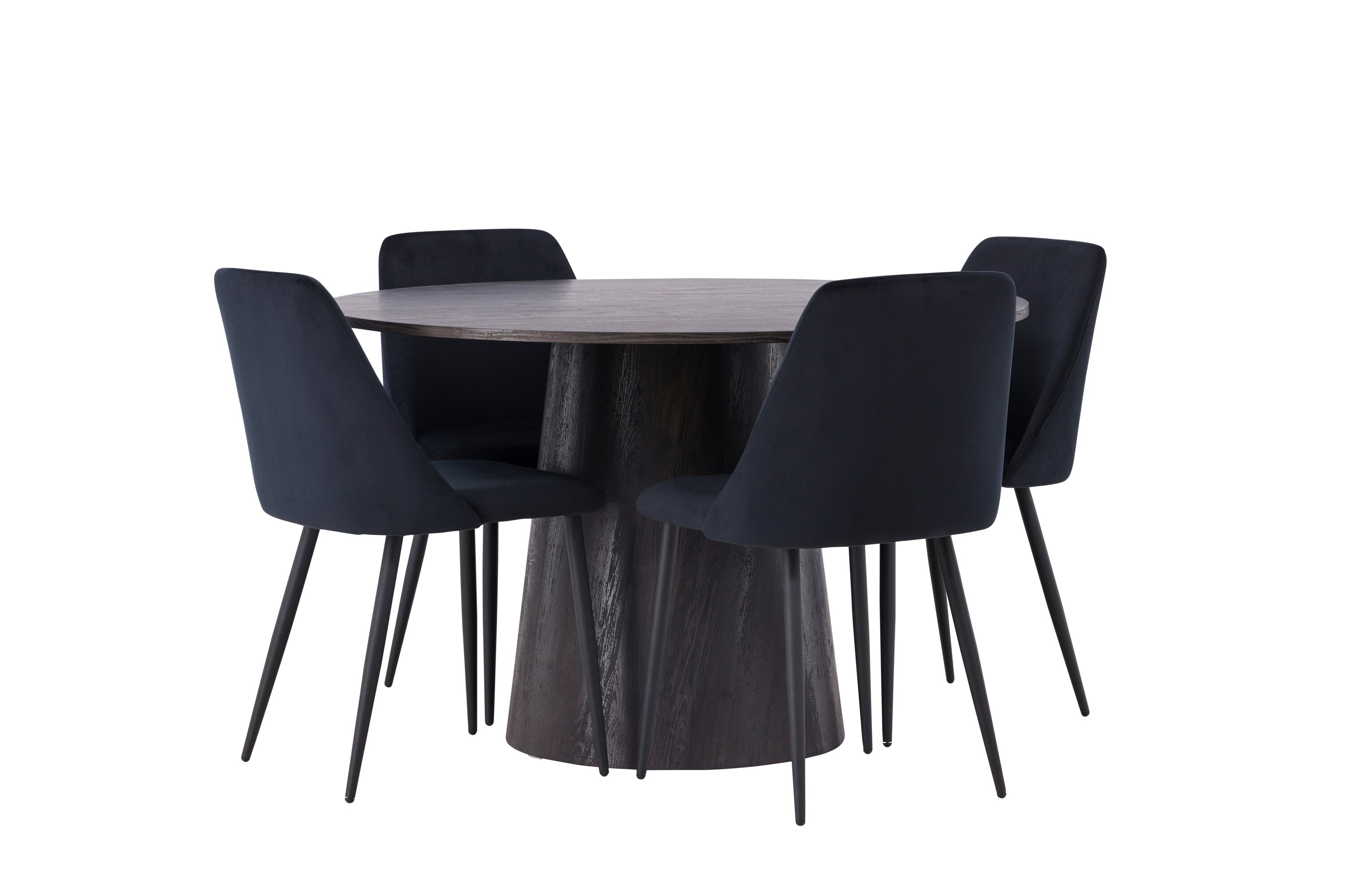 Vytvořte příjemnou atmosféru! Náš nádherný kulatý jídelní stůl Lanzo má celkový design z hnědé MDF s tenkou deskou a zkrouceným válcovým rámem, který je vycentrován pod středem stolu. Zde v dokonalé kombinaci s černými jídelními židlemi ze série Night. Židle má celočalouněný sedák v černé sametové látce a nohy v odpovídající černé barvě. Tady se sedí pohodlně jako moderní! Průměr stolu: 120 cm.