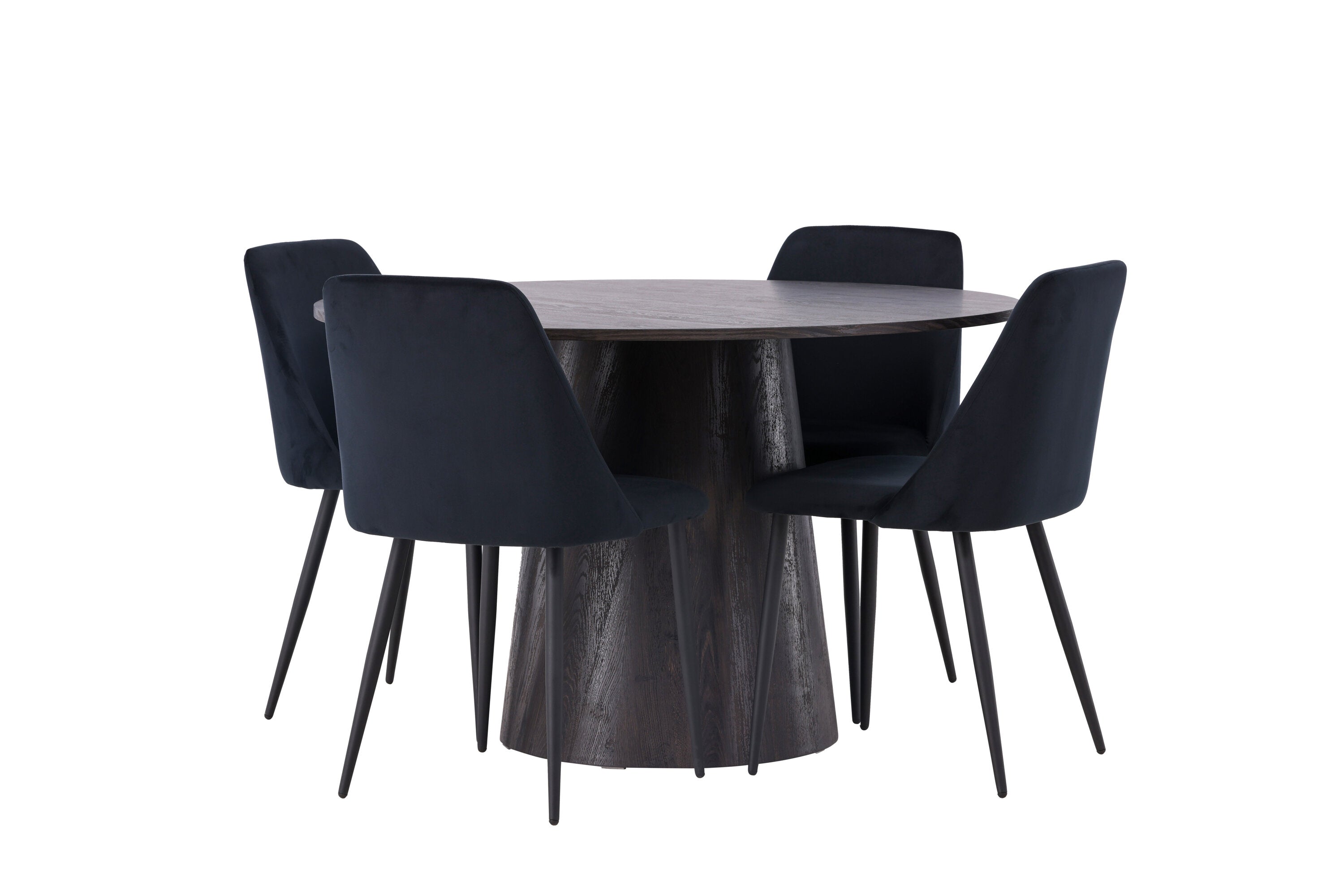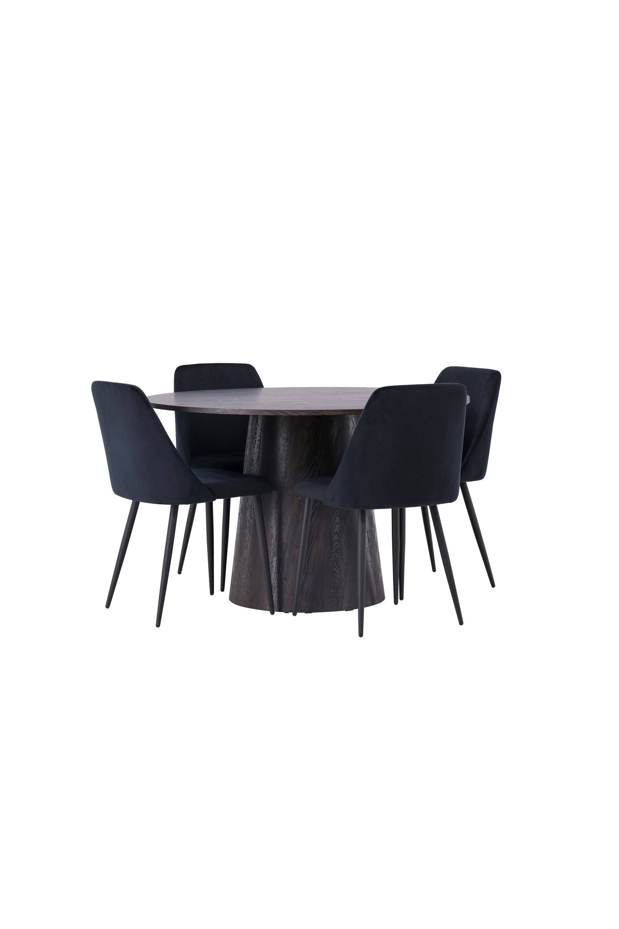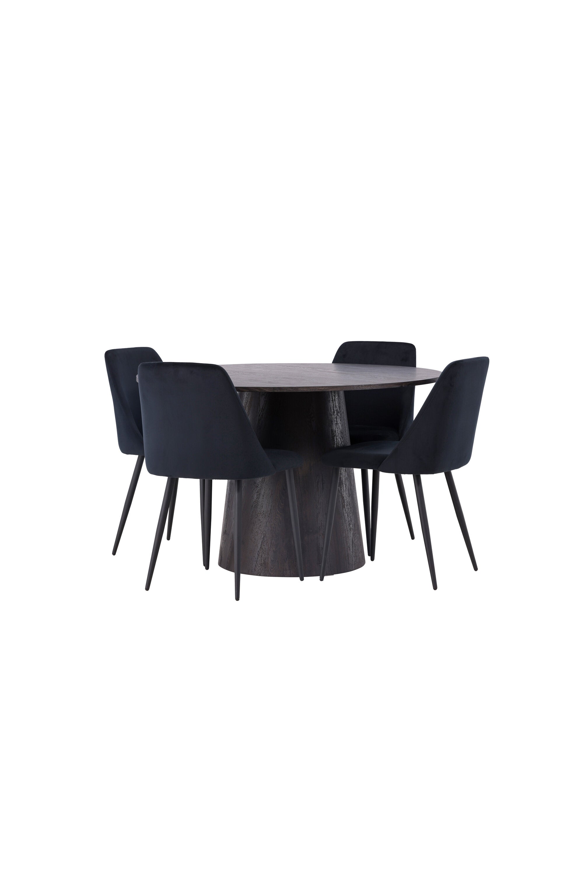 Lanzo jídelní stůl φ120 - Mocca/Mocca + noční jídelní židle - černá / černá sametová _4