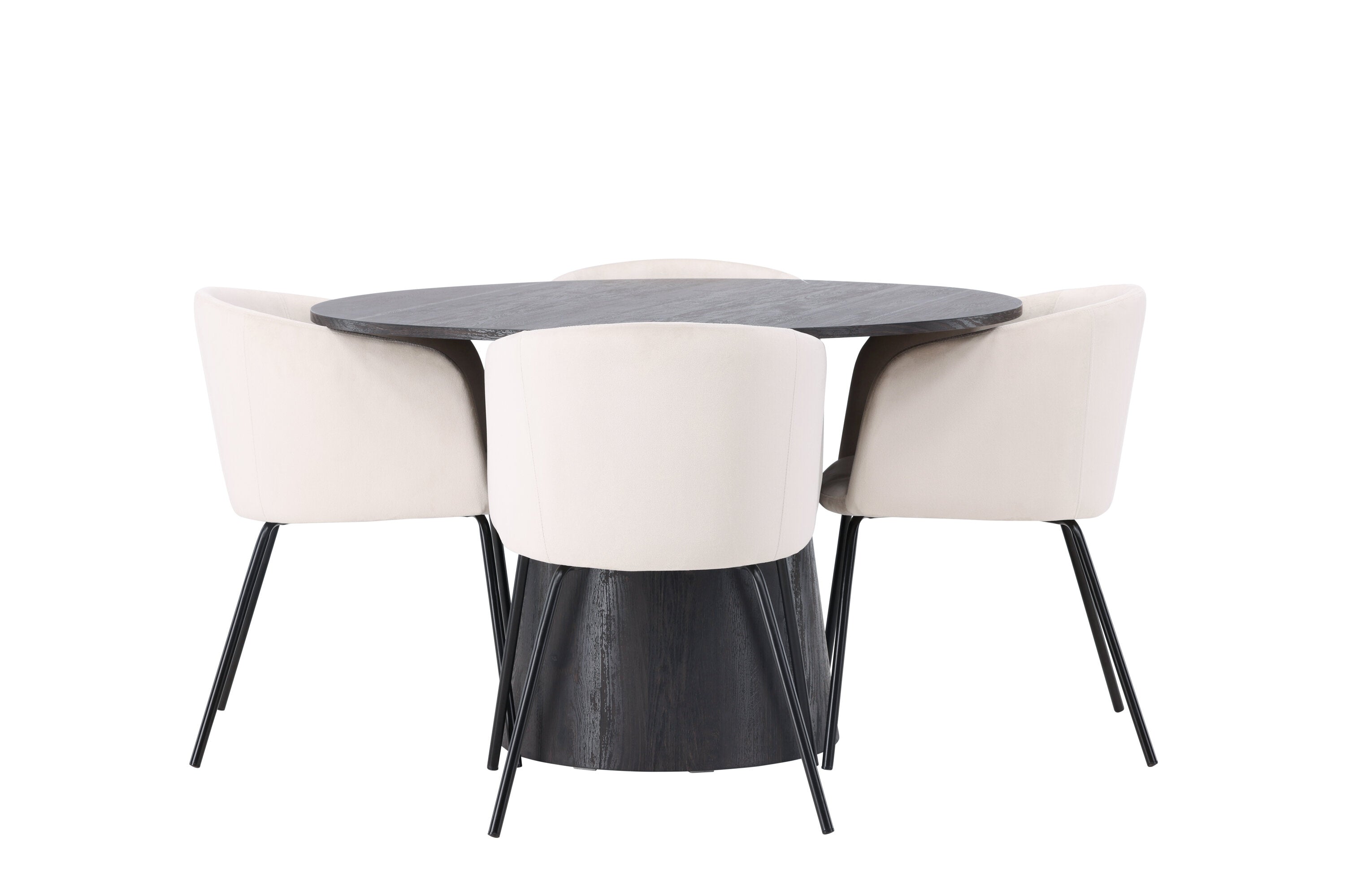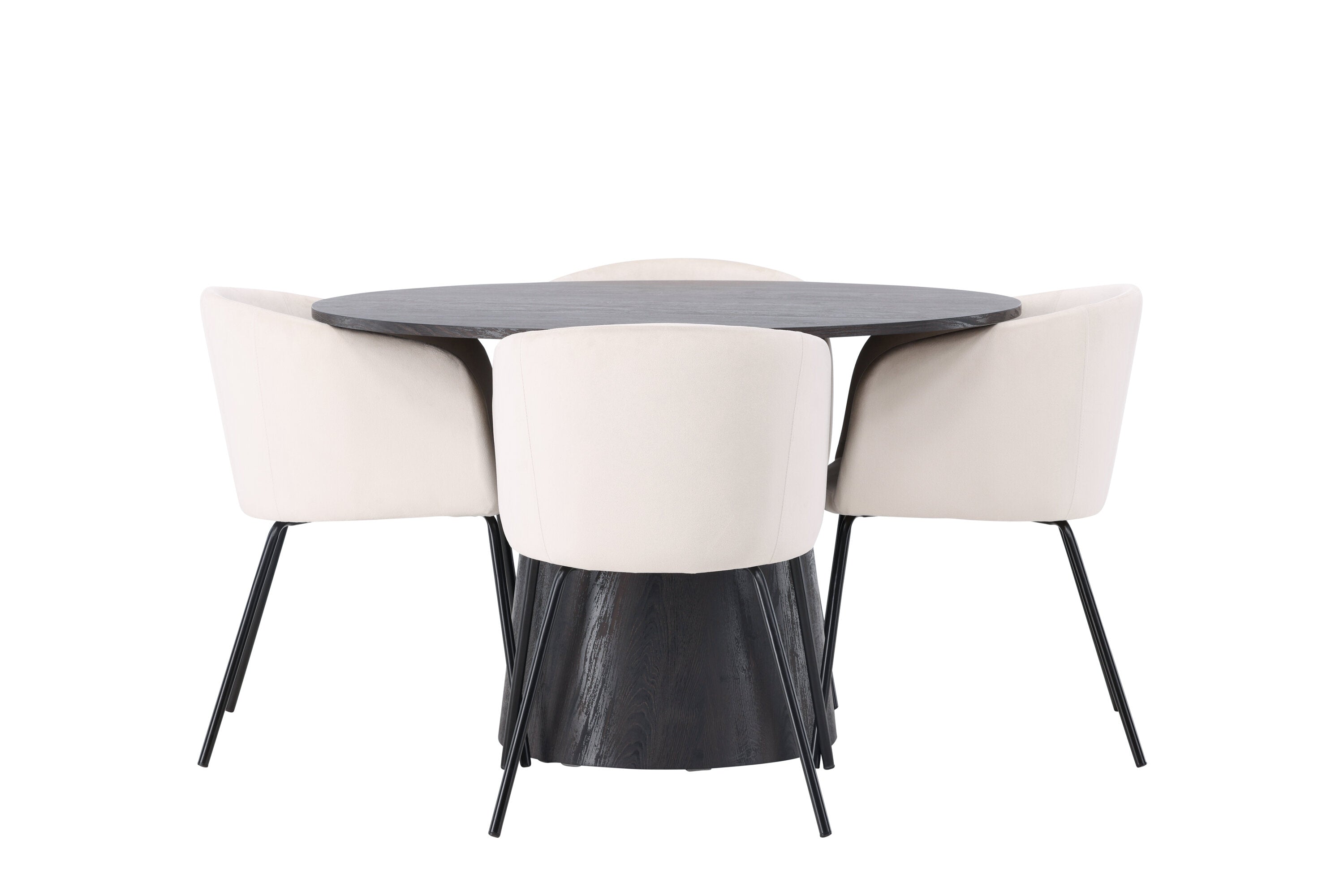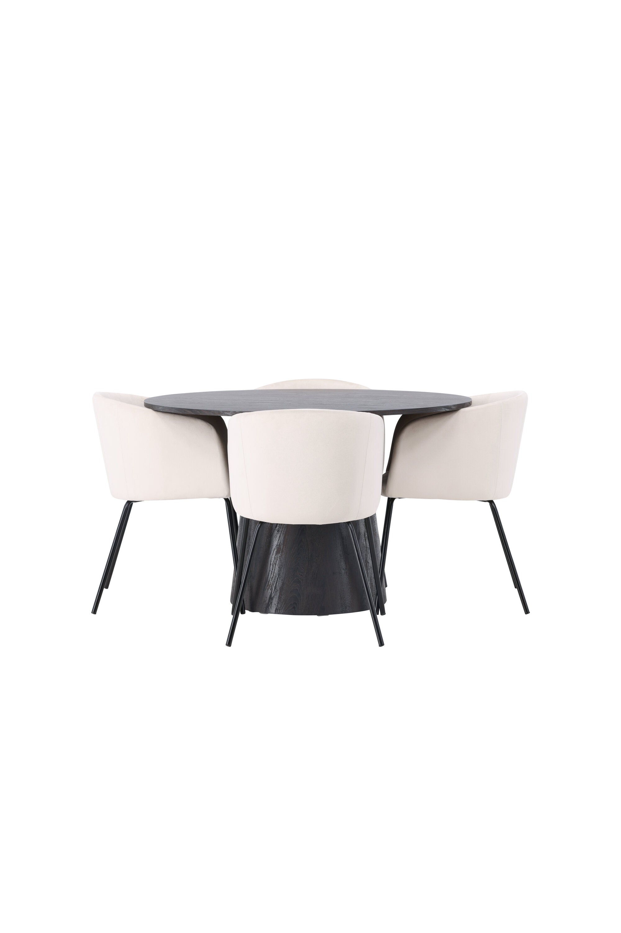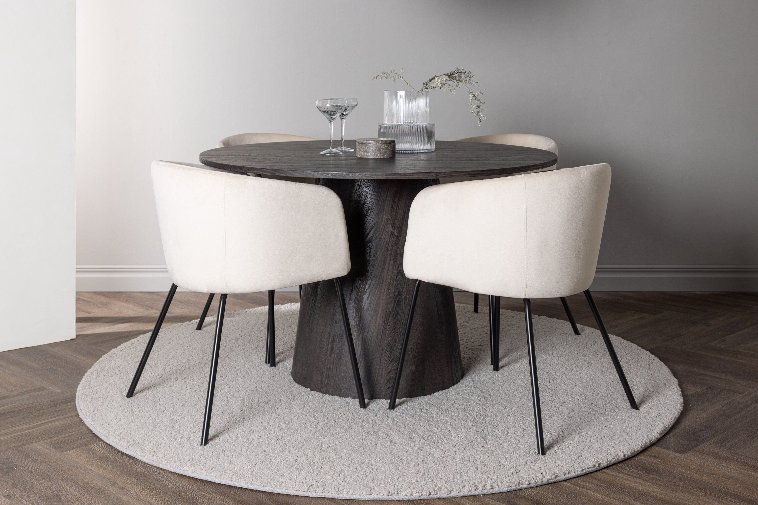 Lanzo jídelní stůl φ120 - Mocca/Mocca + Židle Berit - Černá / Béžová Velvet _4
