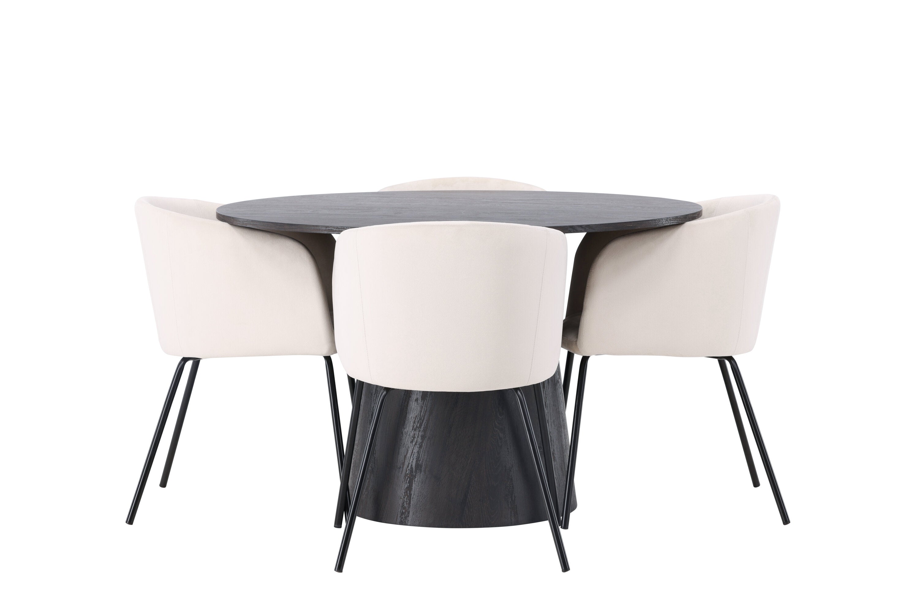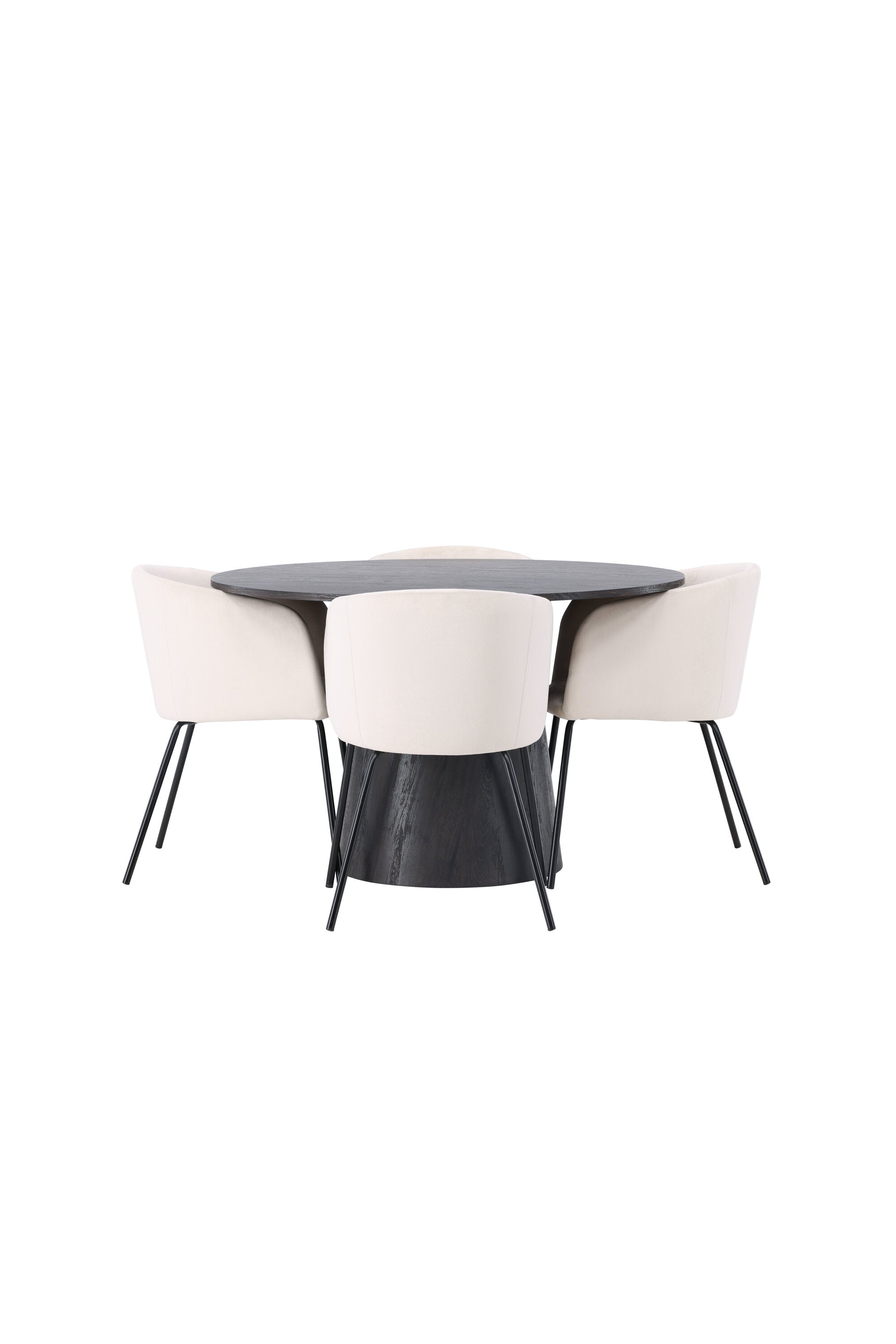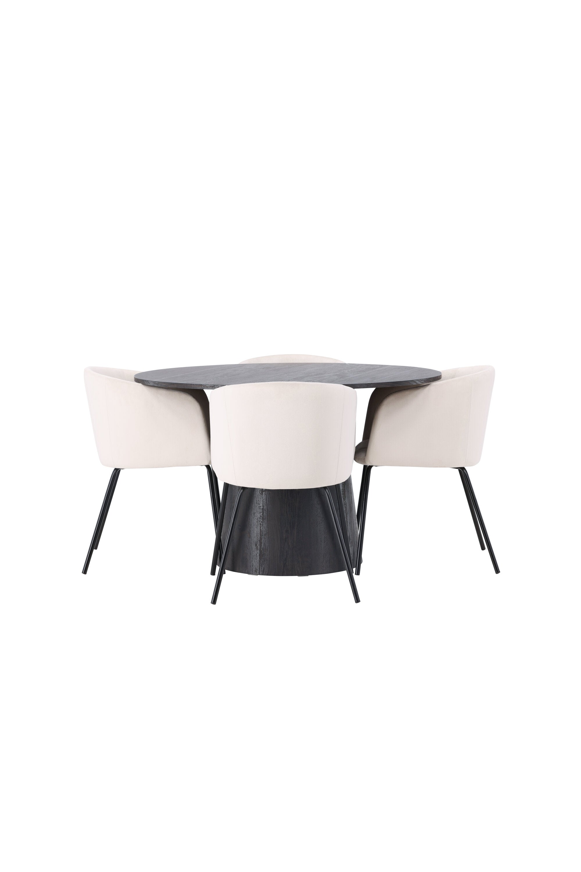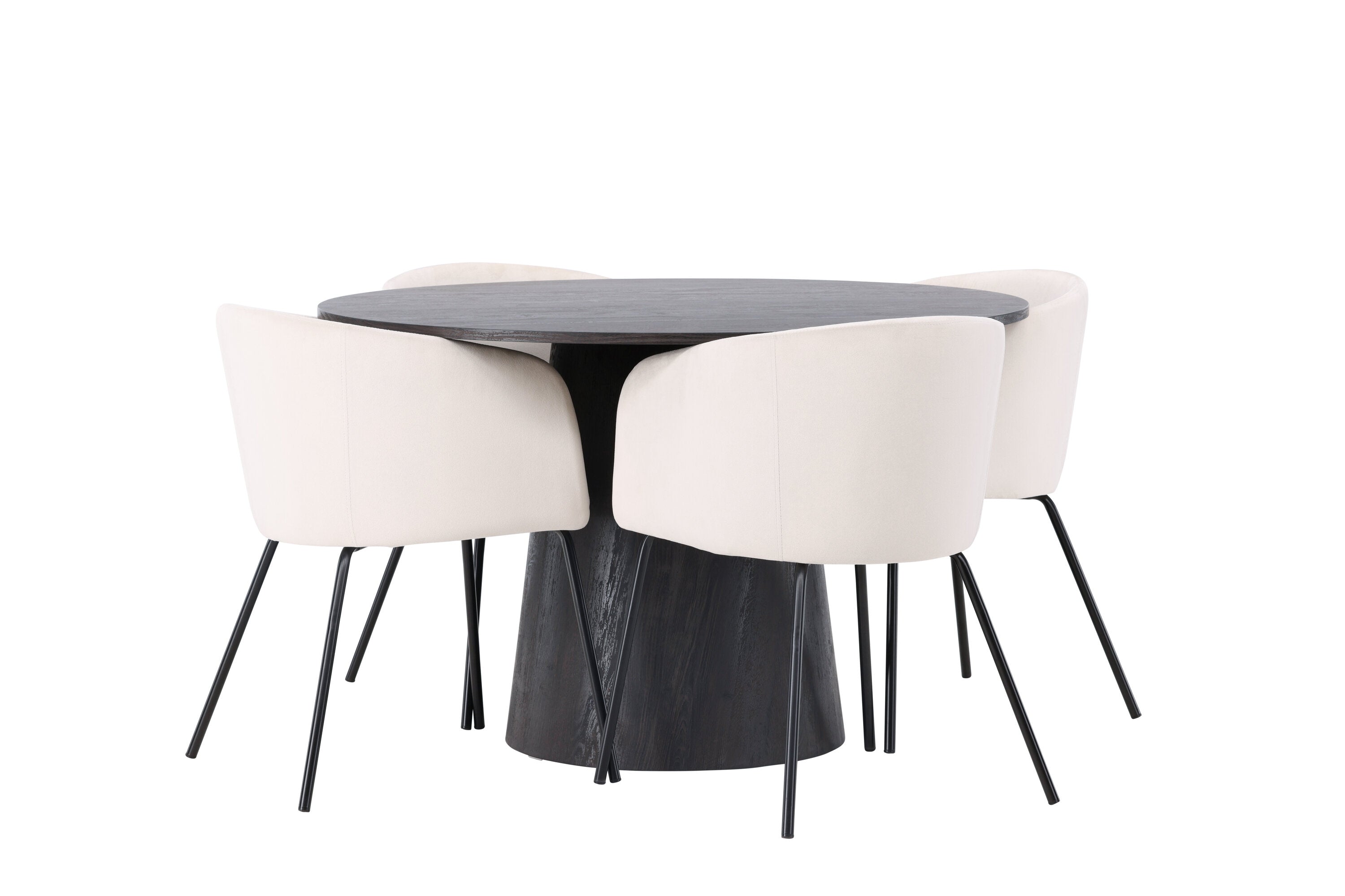 Lanzo jídelní stůl φ120 - Mocca/Mocca + Židle Berit - Černá / Béžová Velvet _4