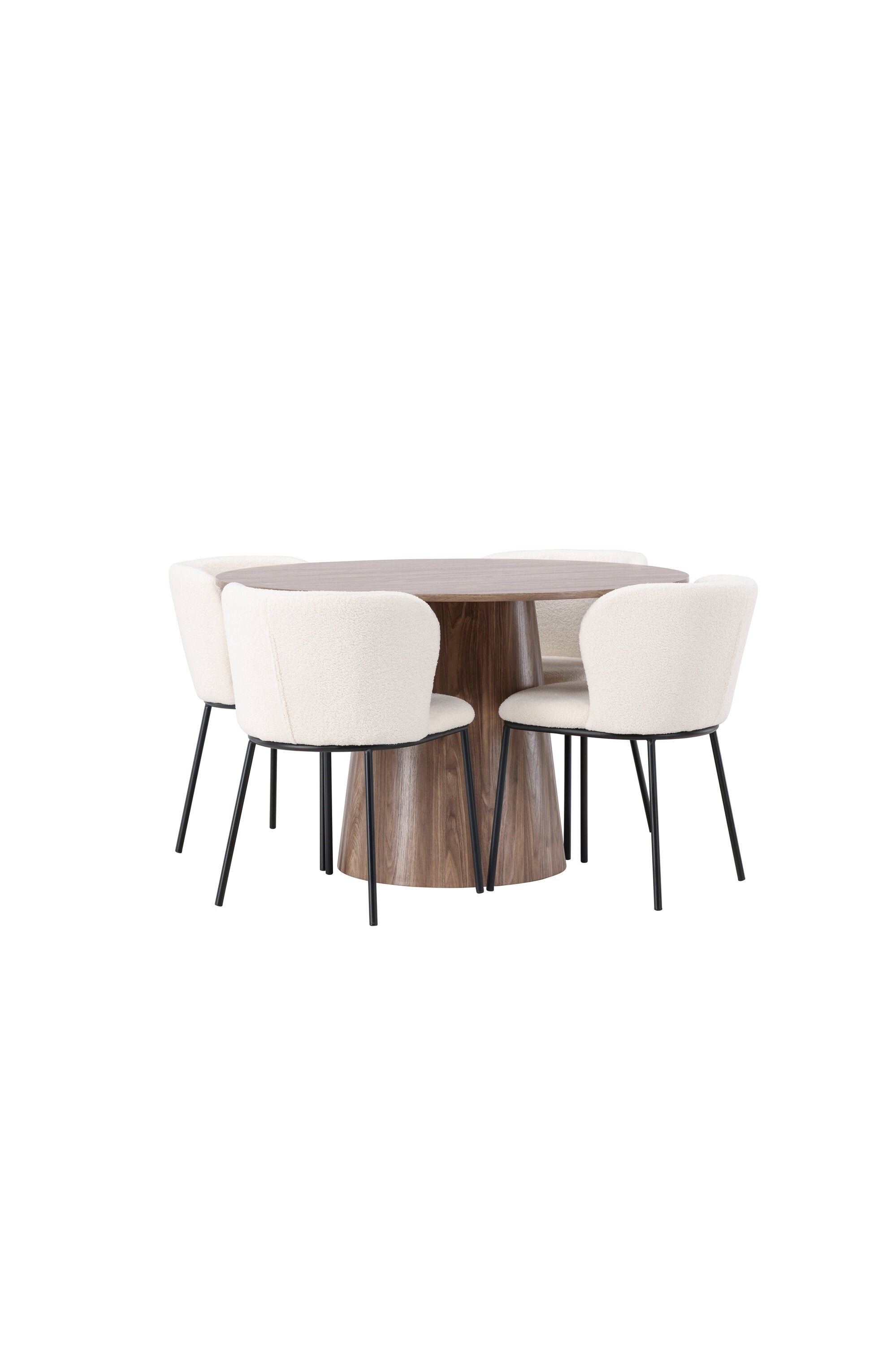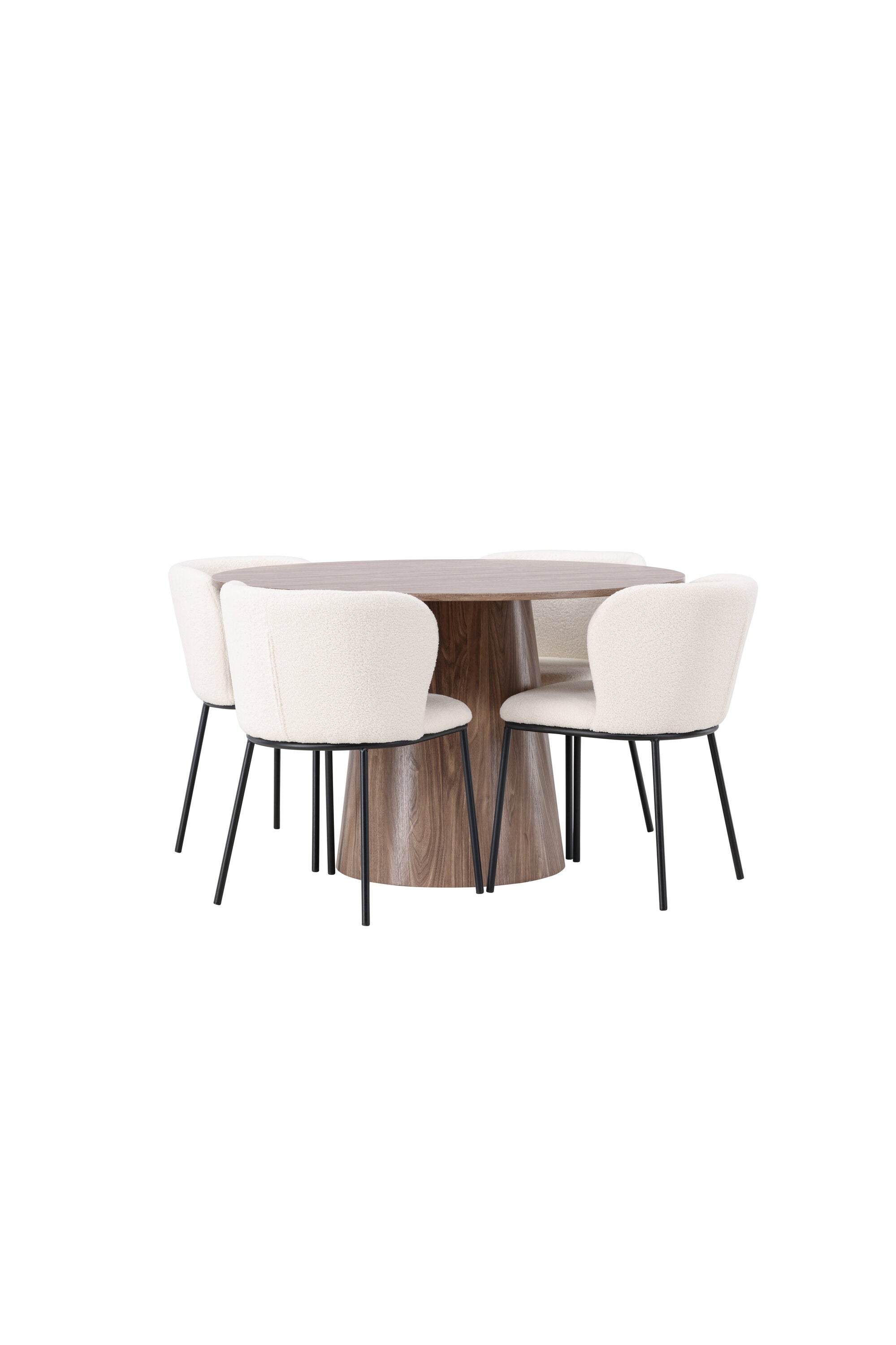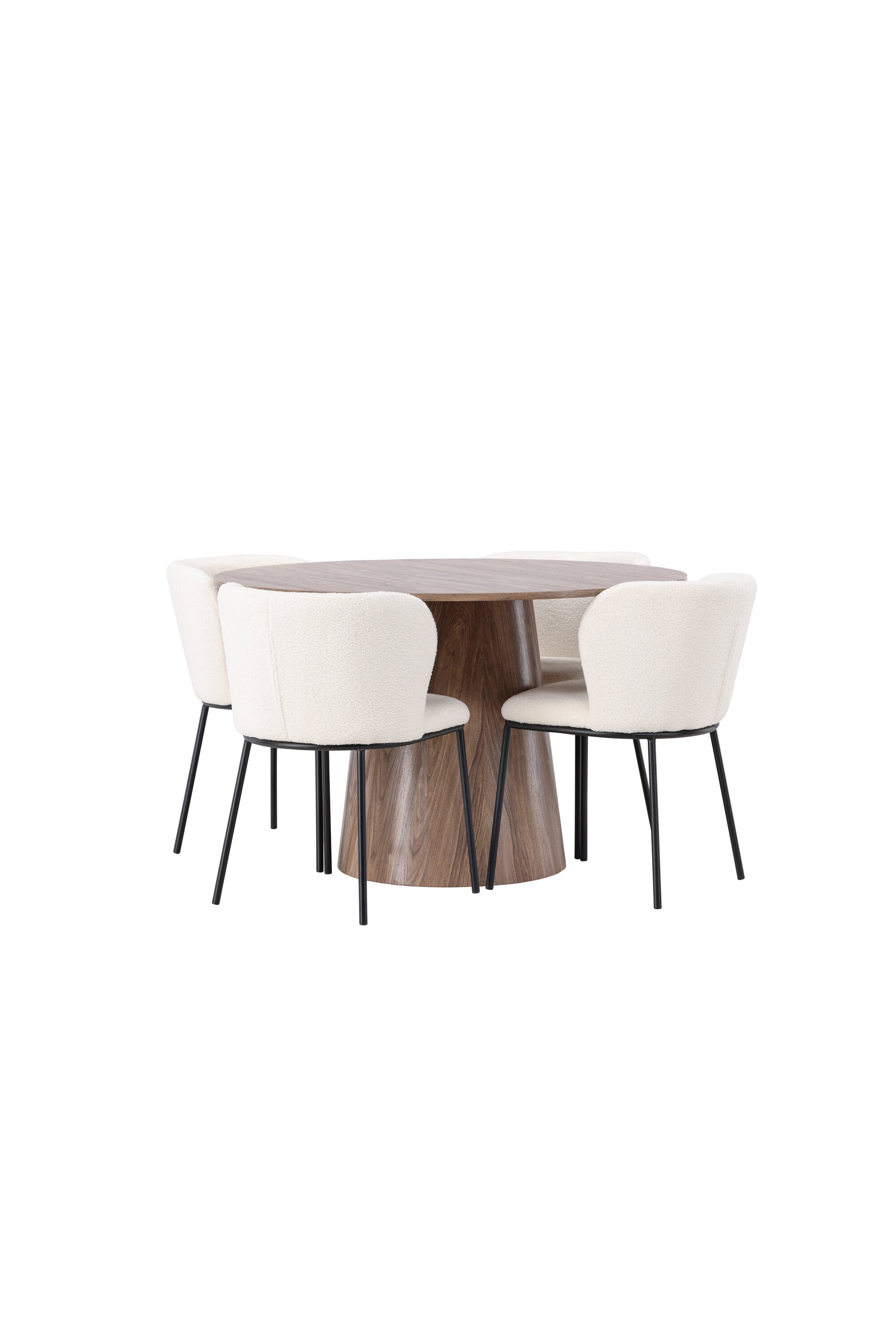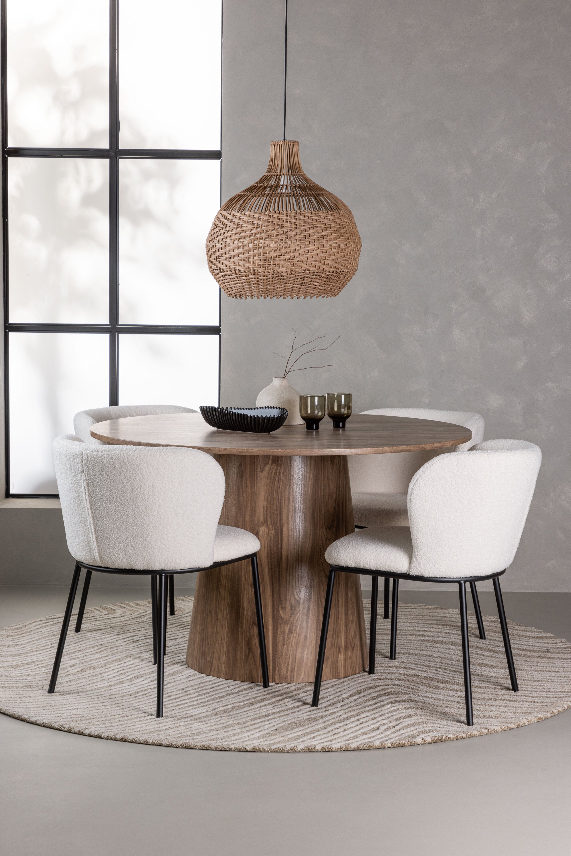 Lanzo jídelní stůl φ120 - přírodní / přírodní MDF + jídelní židle Edina - černá / bílá Boucle _4