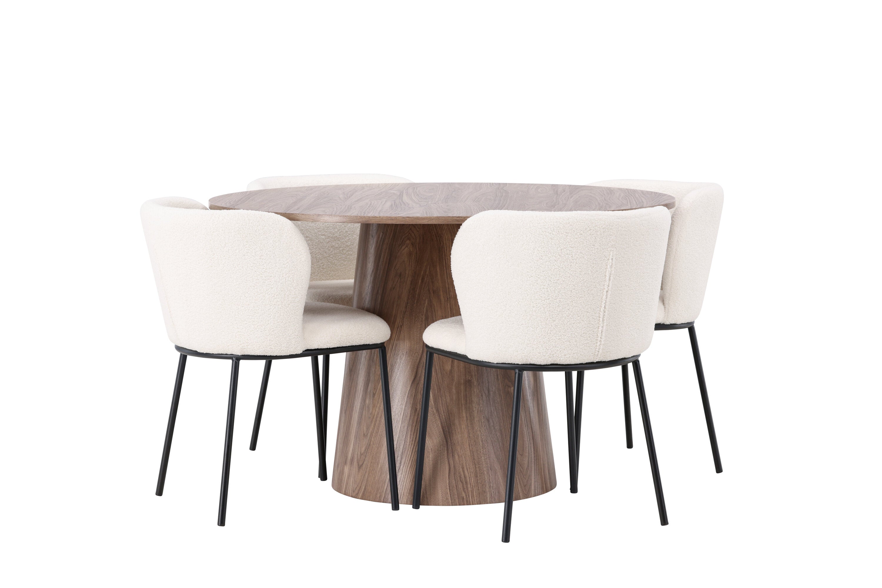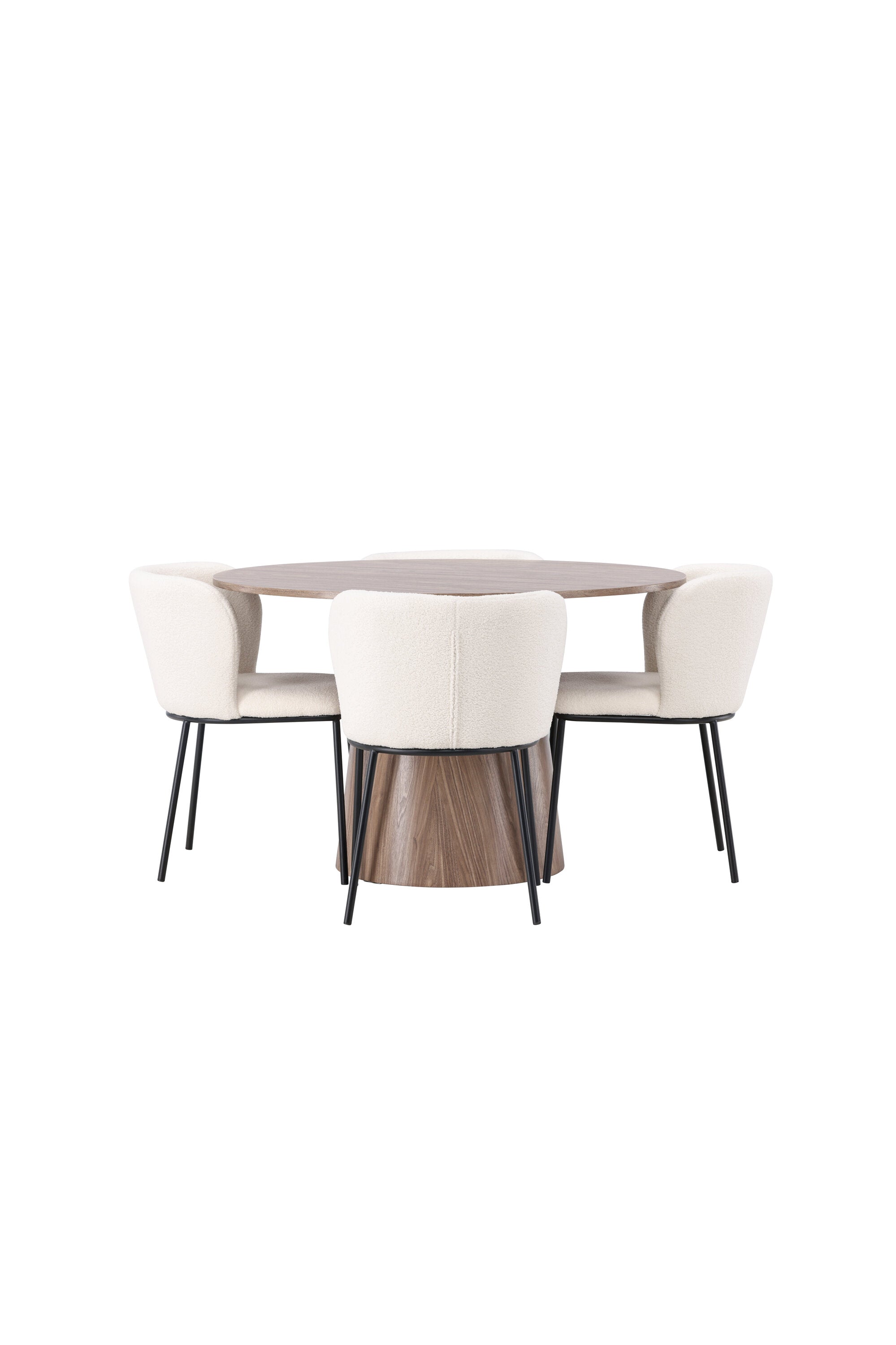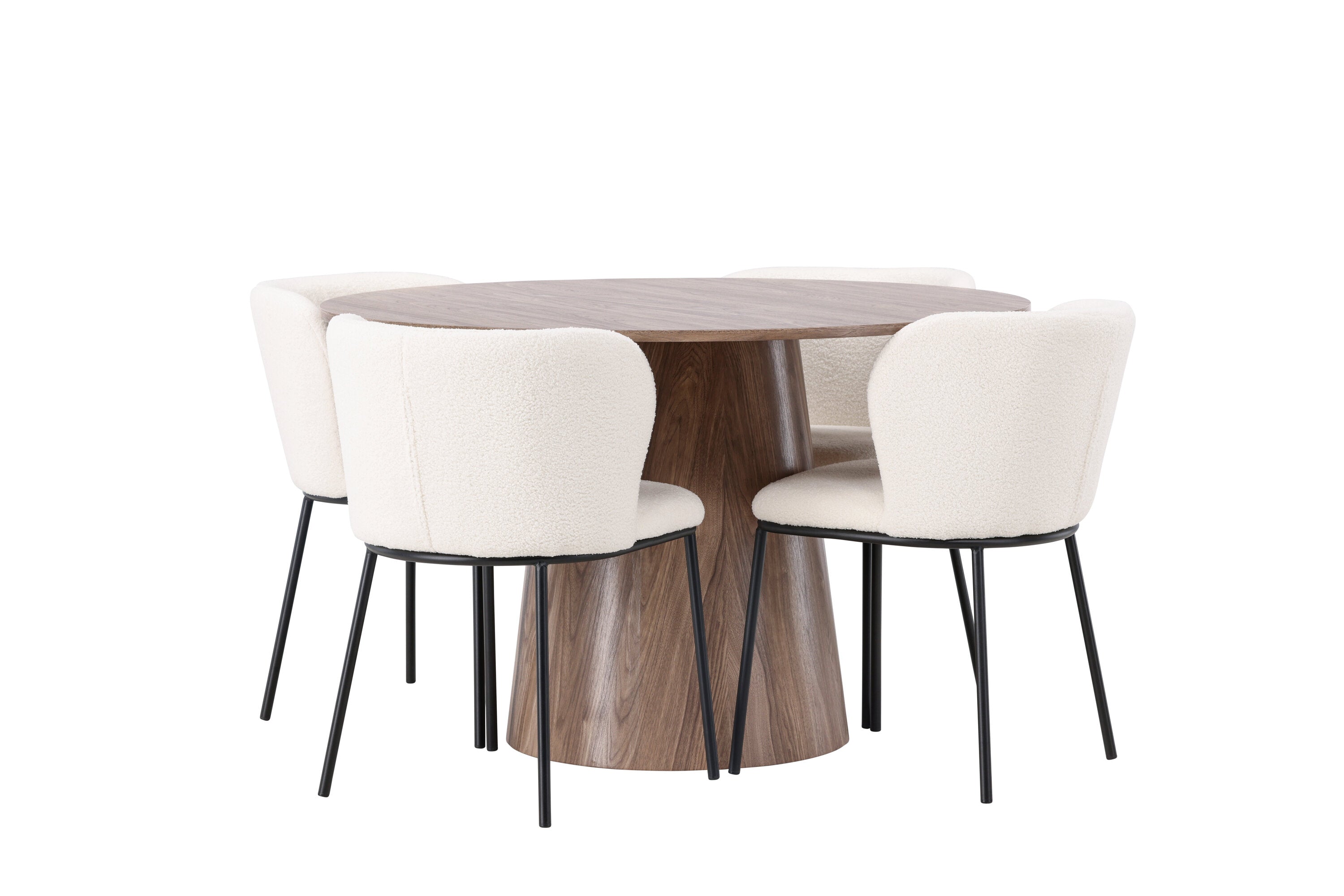 Lanzo jídelní stůl φ120 - přírodní / přírodní MDF + jídelní židle Edina - černá / bílá Boucle _4