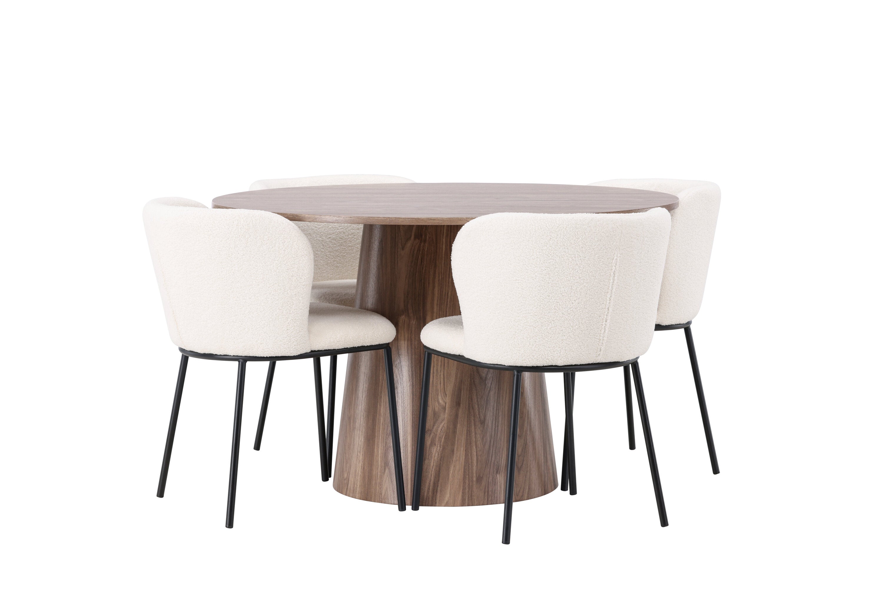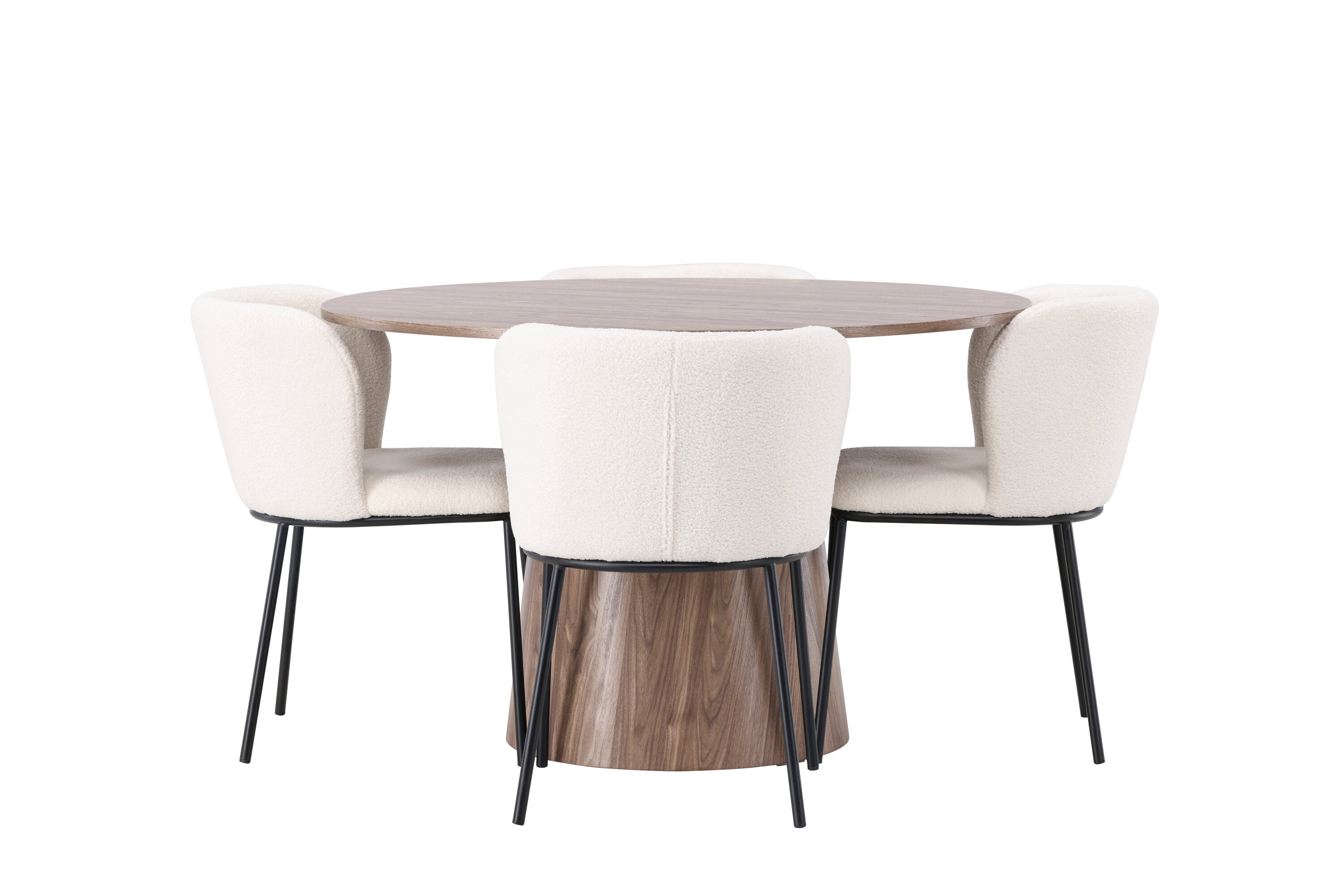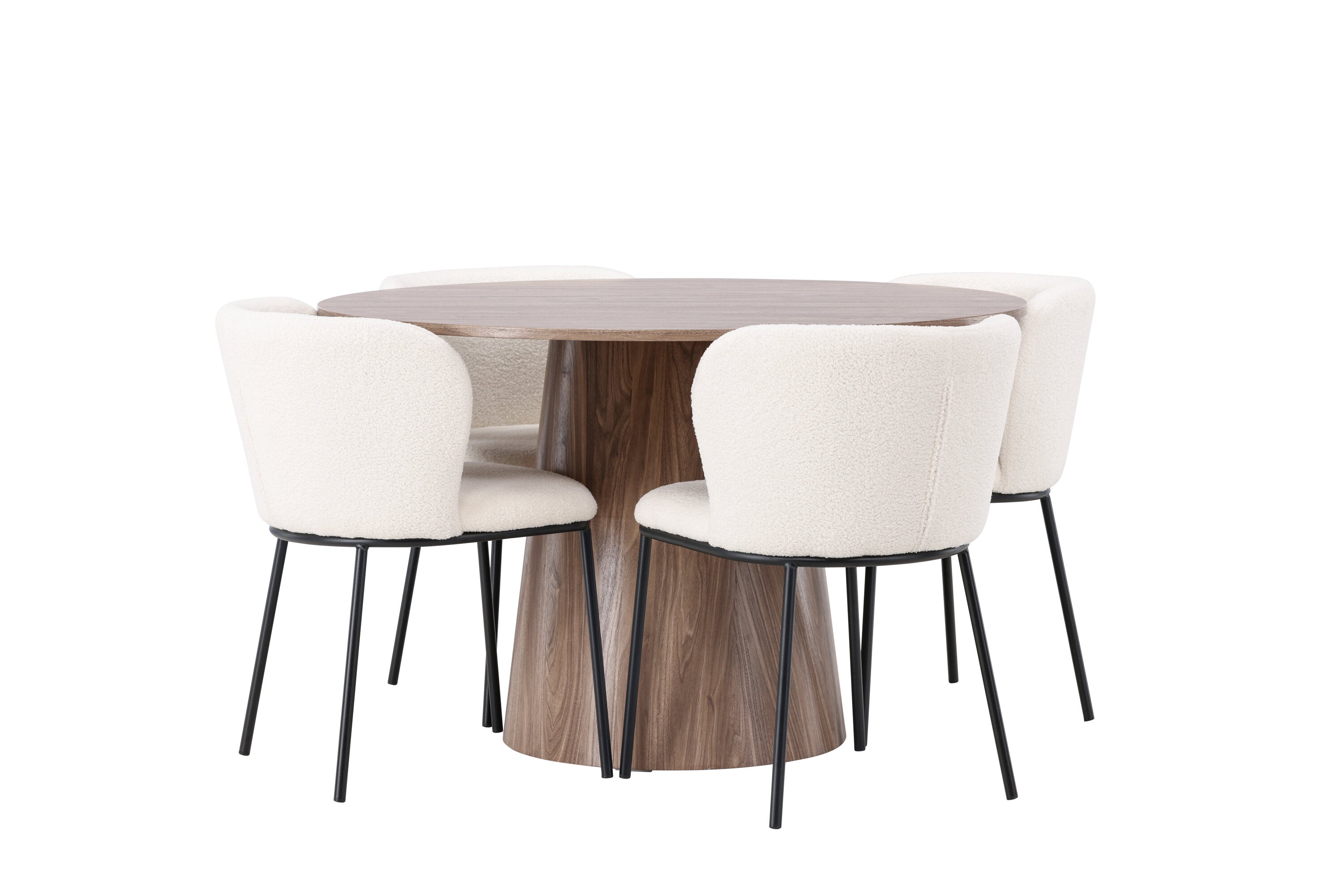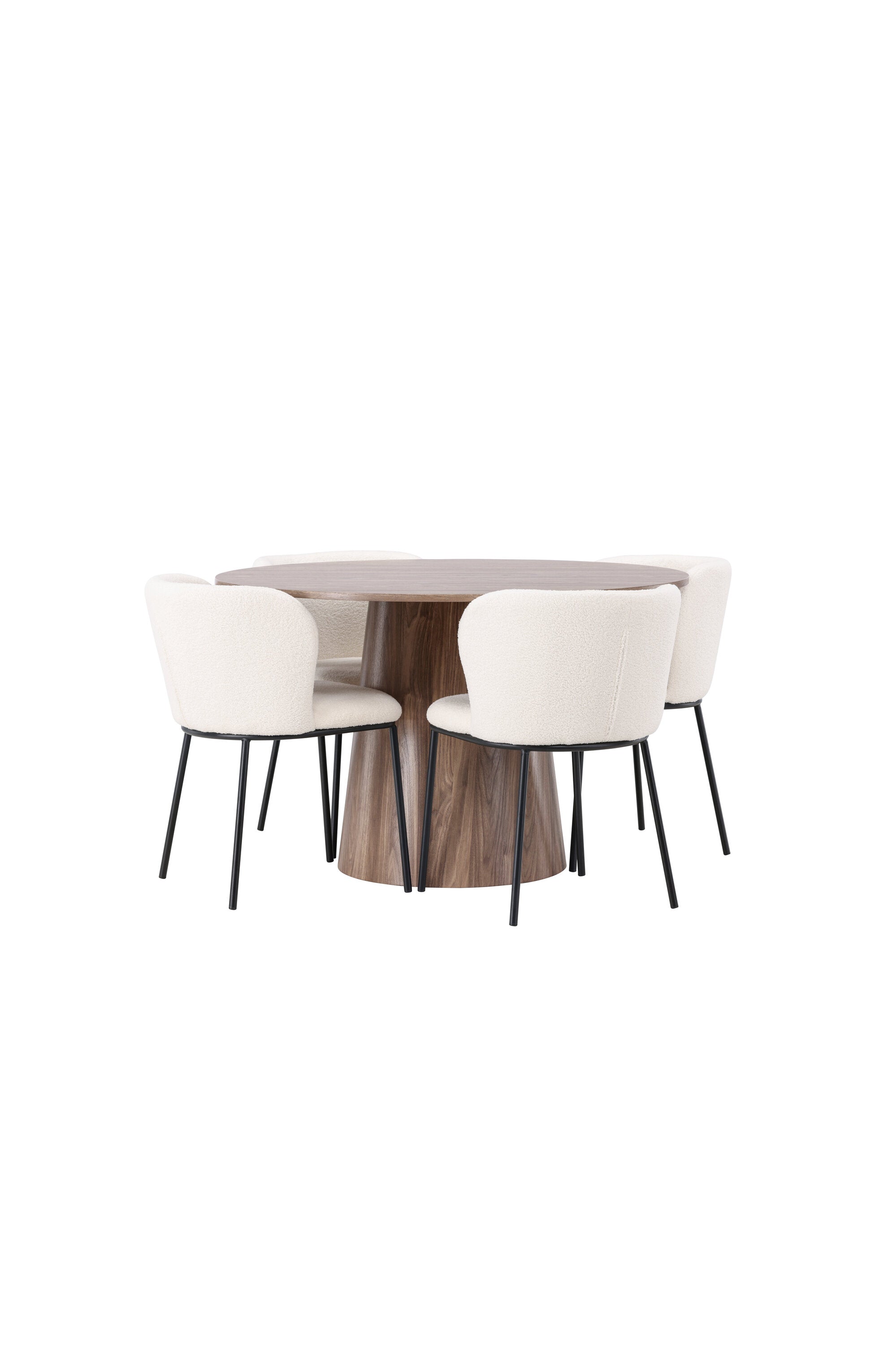 Lanzo jídelní stůl φ120 - přírodní / přírodní MDF + jídelní židle Edina - černá / bílá Boucle _4