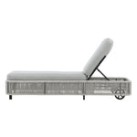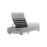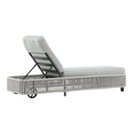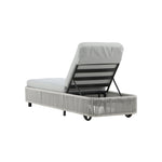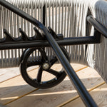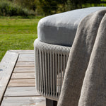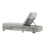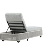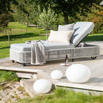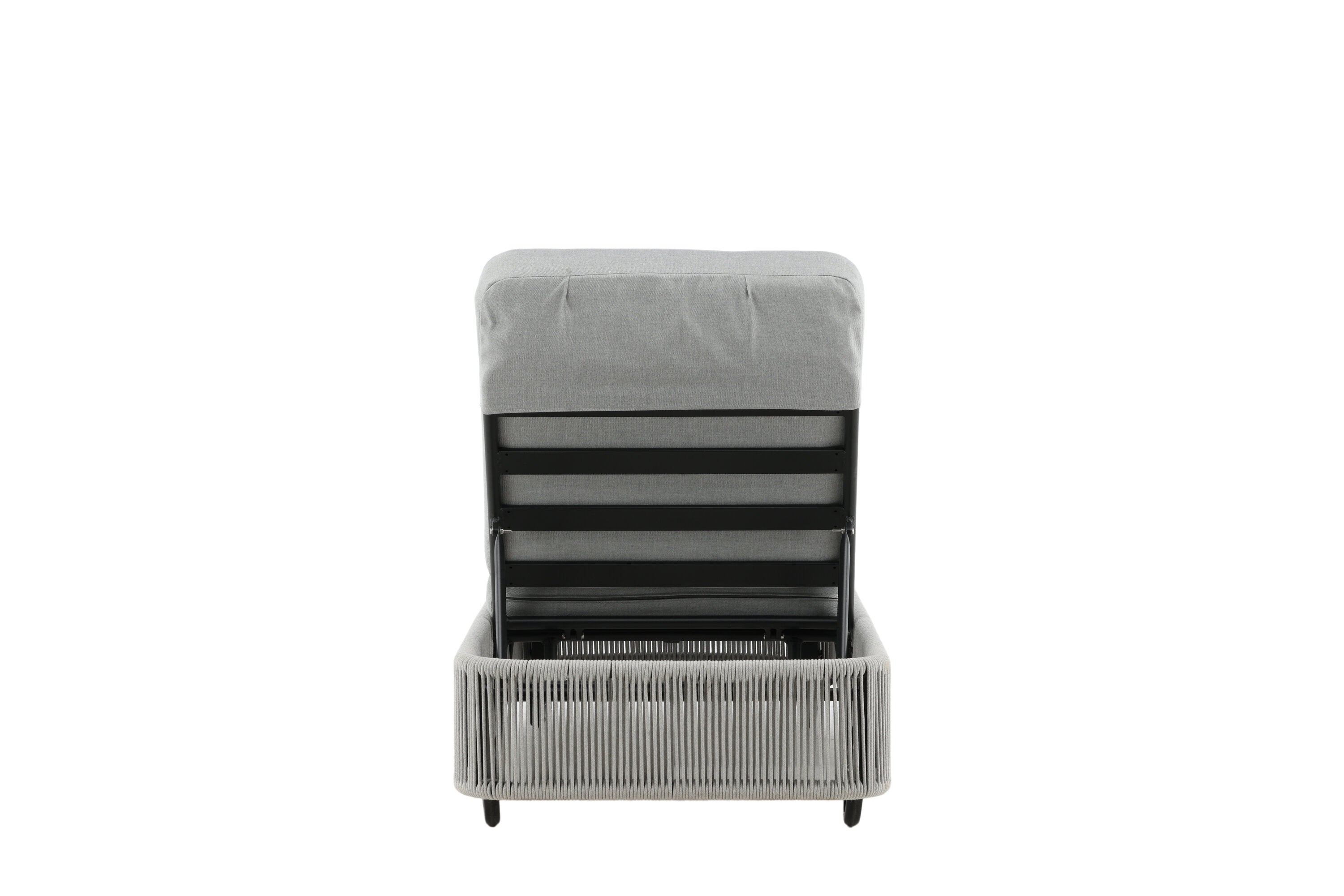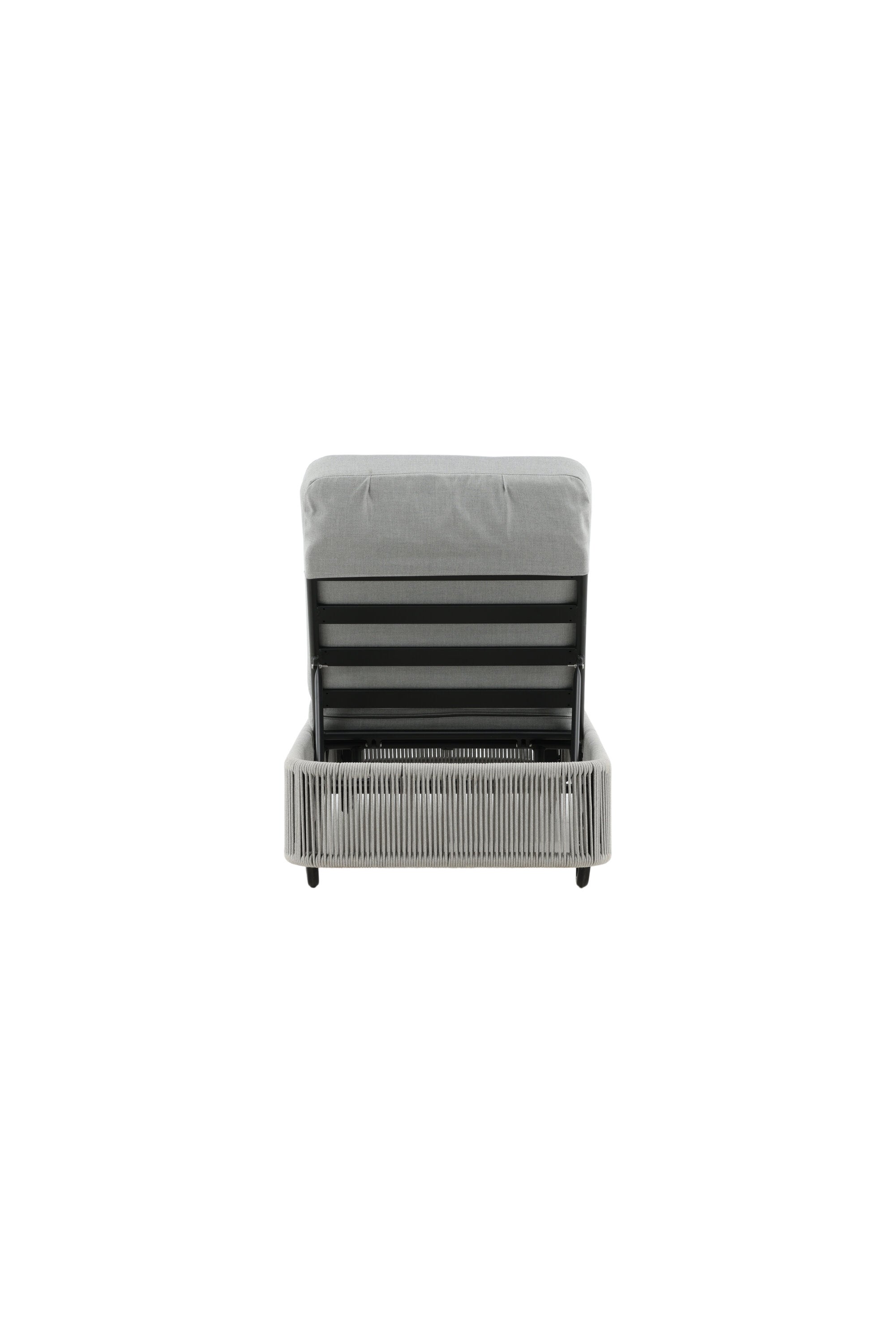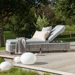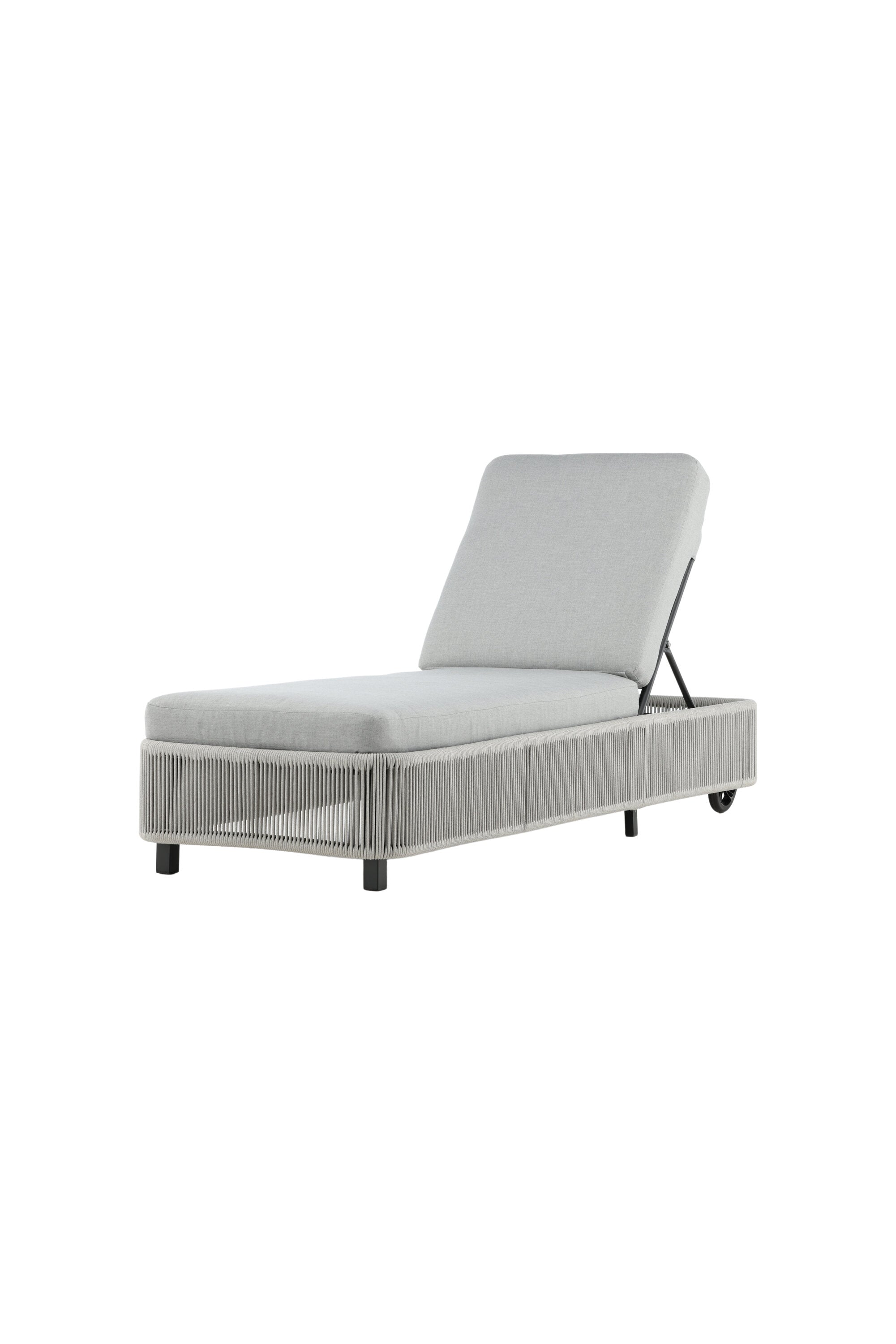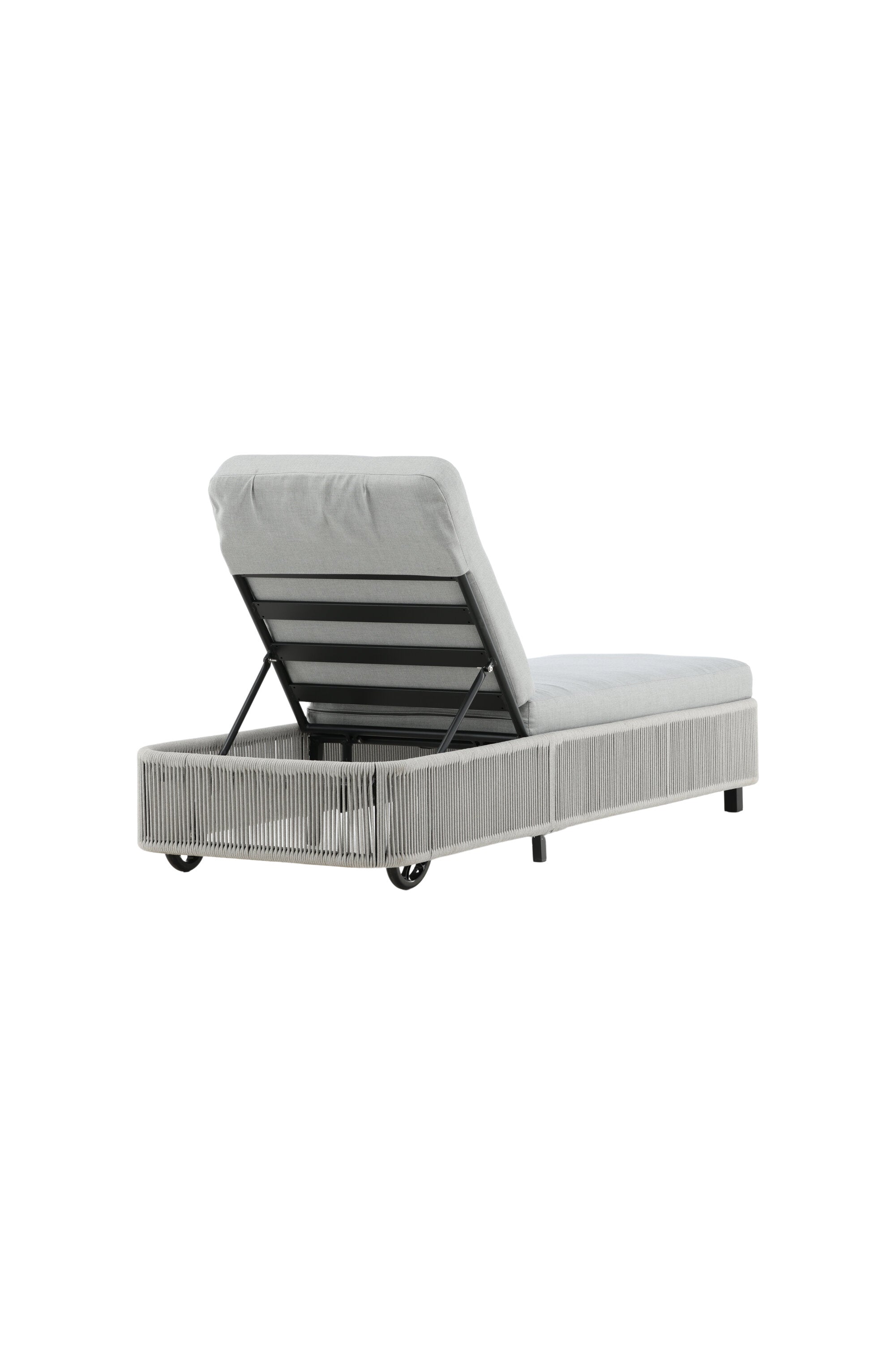 Klasické solárium vyrobené z šedých lan s přidruženými polštáři. Umístěte přesně tam, kde chcete být snadno přemístěni pomocí kolečka. Užijte si zde horký letní den na slunci!