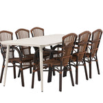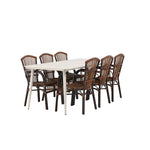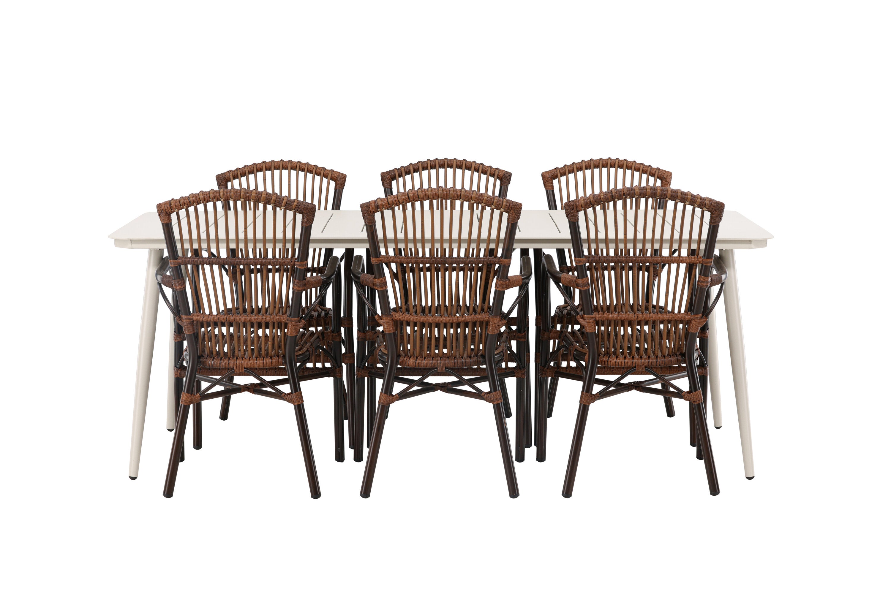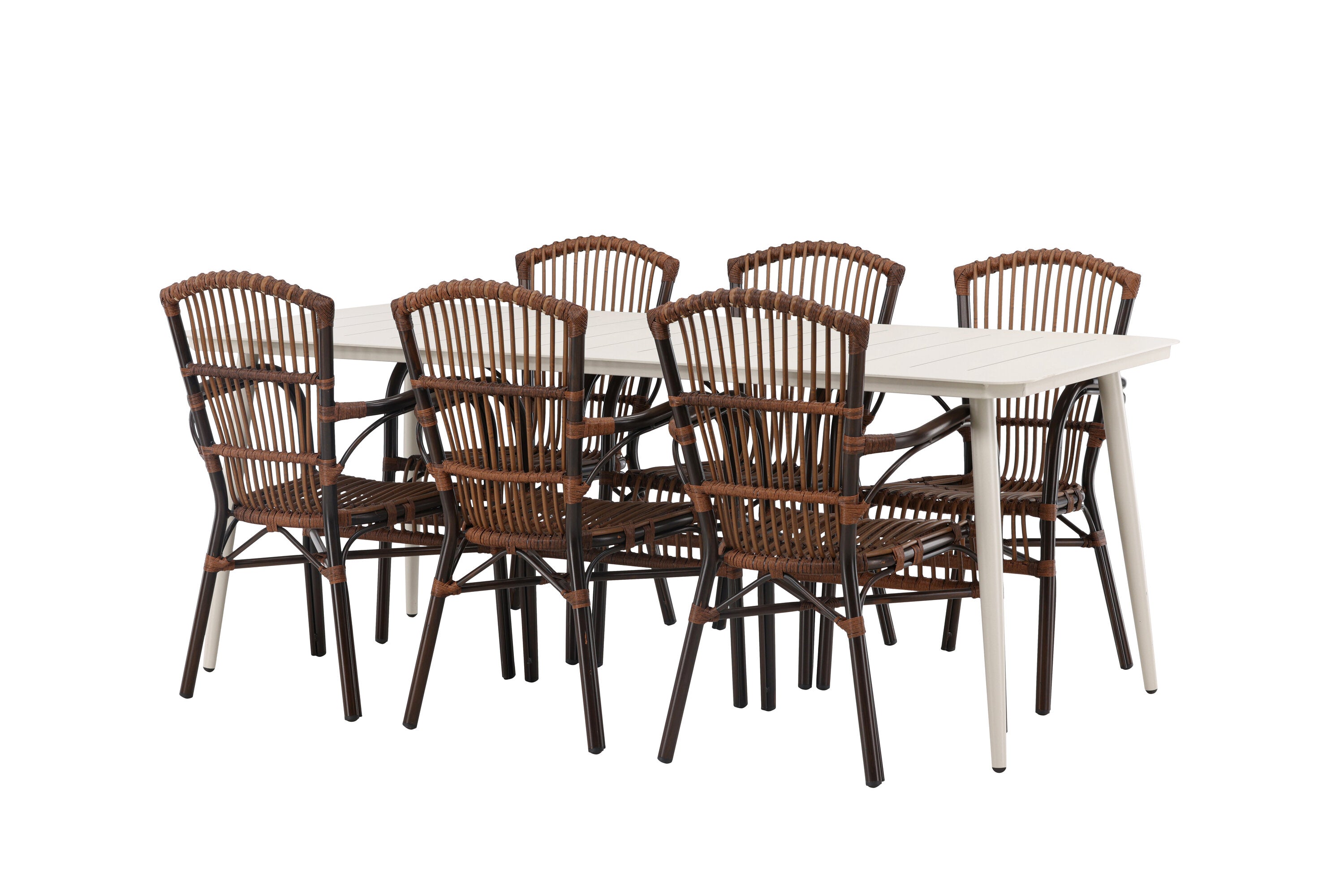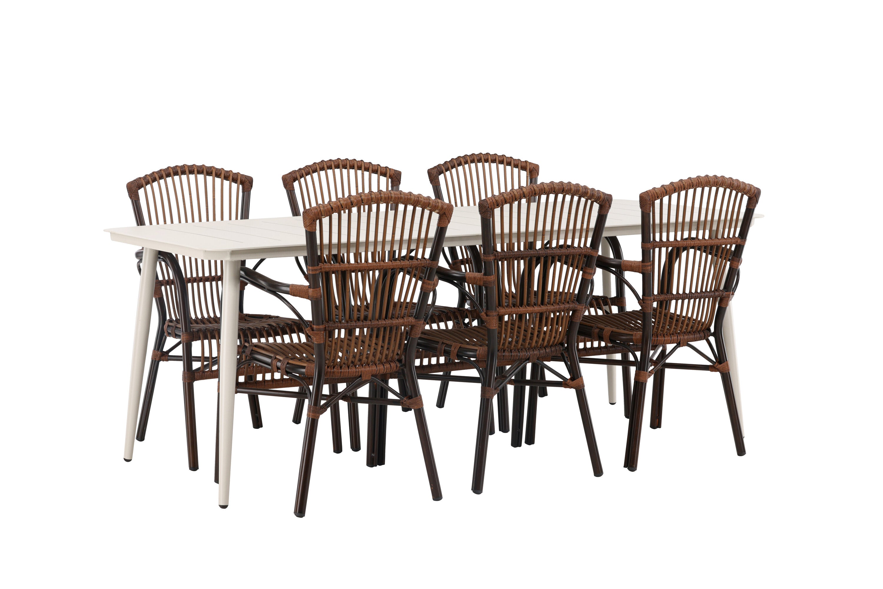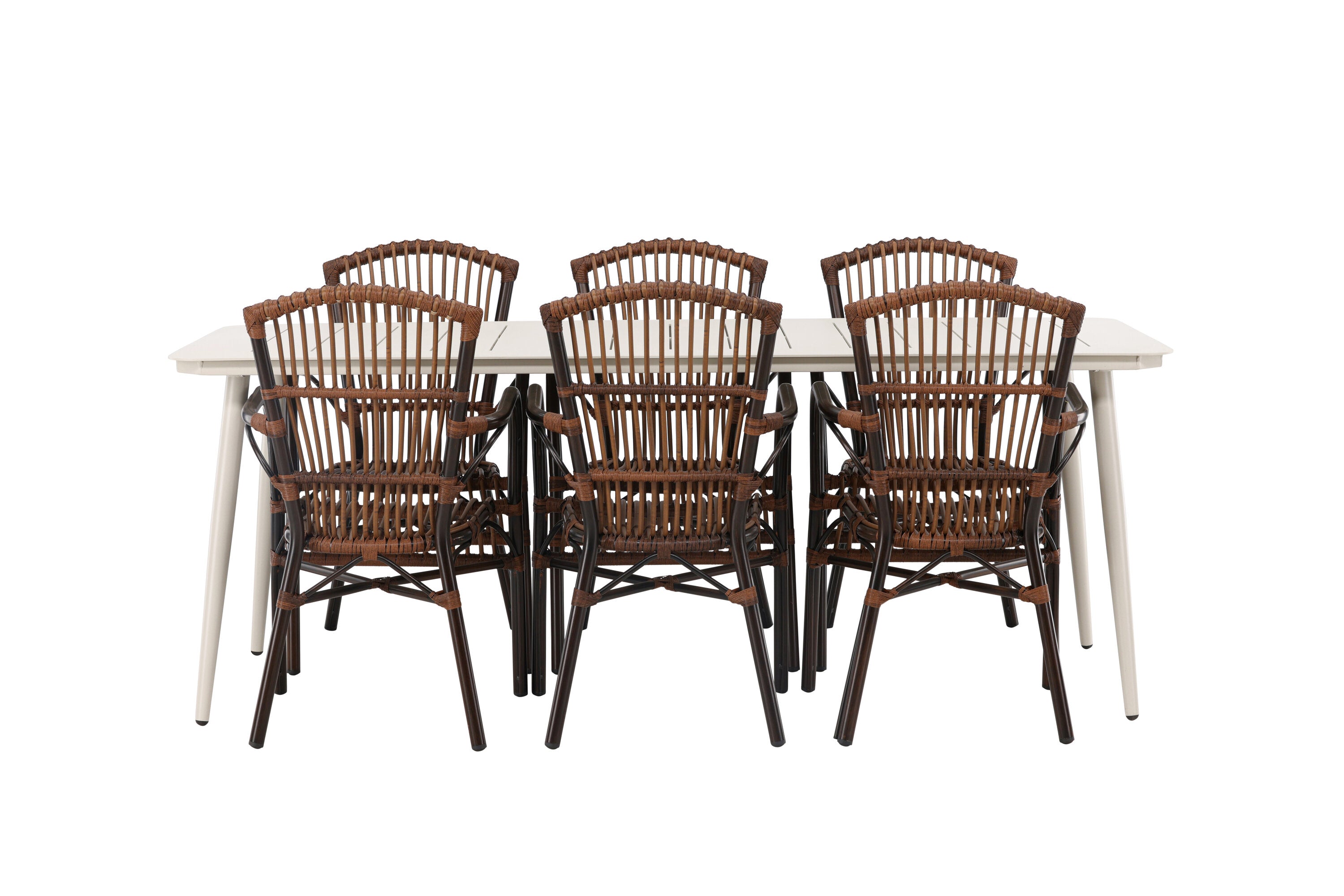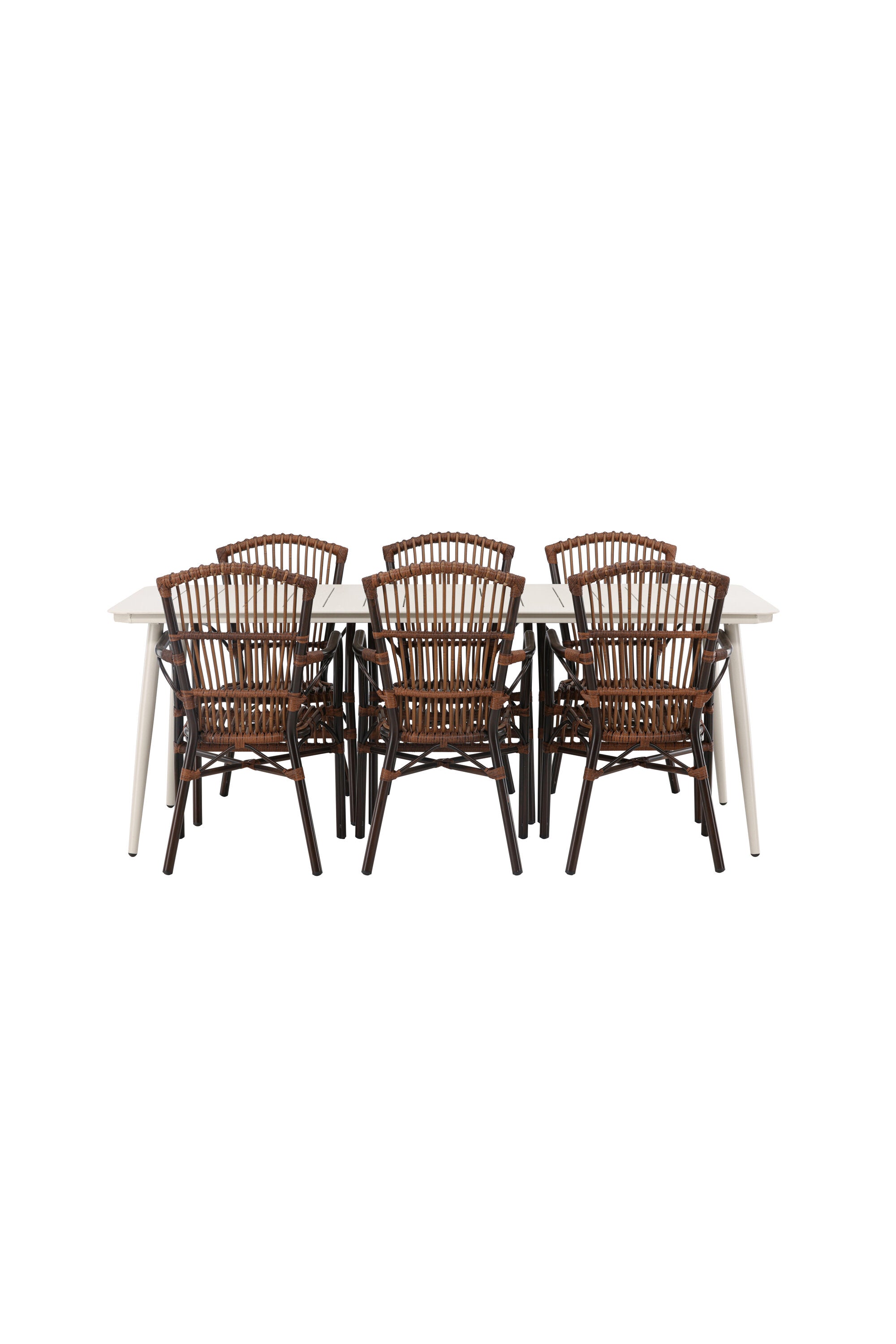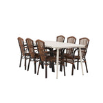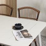 Lina Jídelní stůl - Béžová - 200*90 +Galera Jídelní židle Hliník - Hnědá / Proutí _6