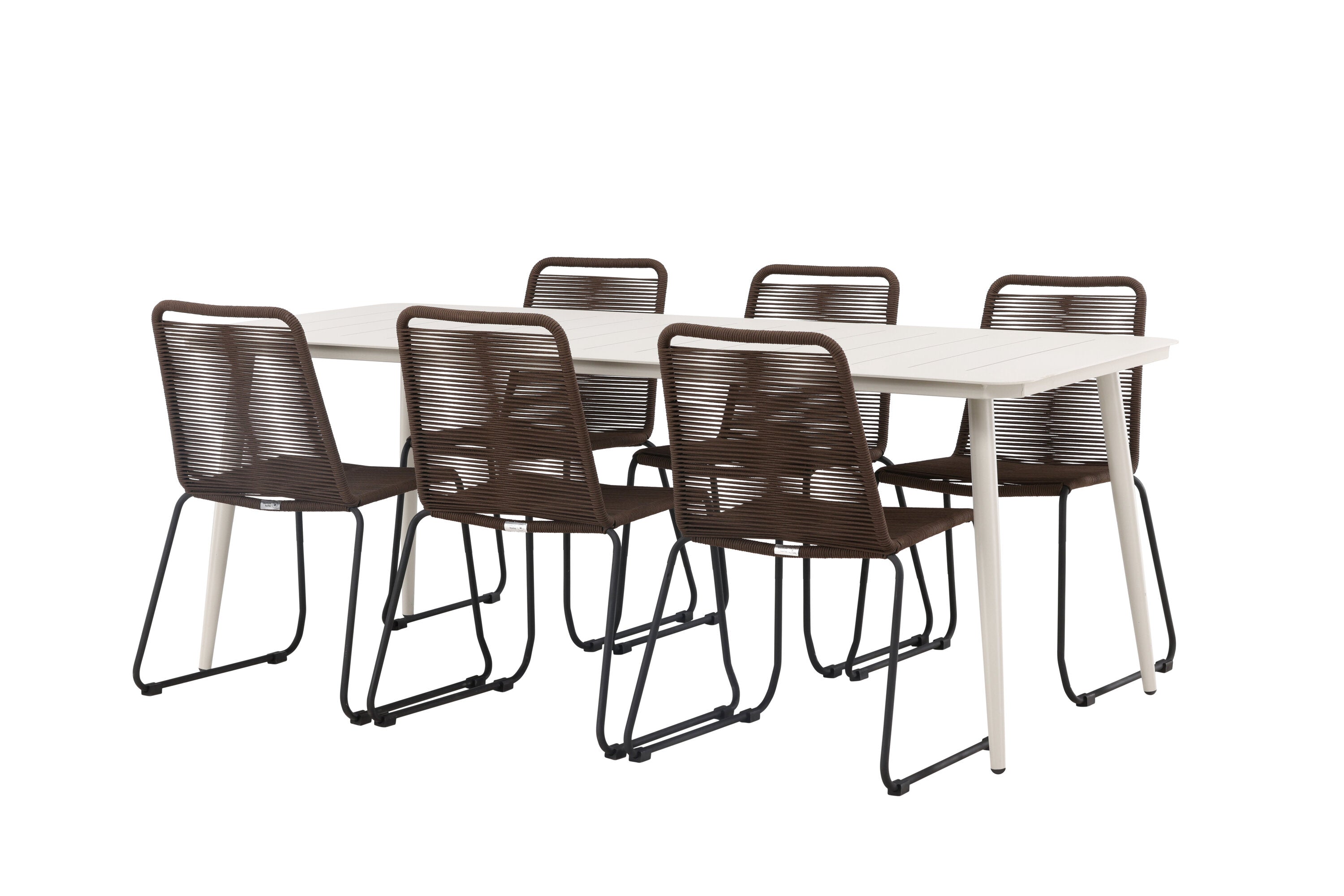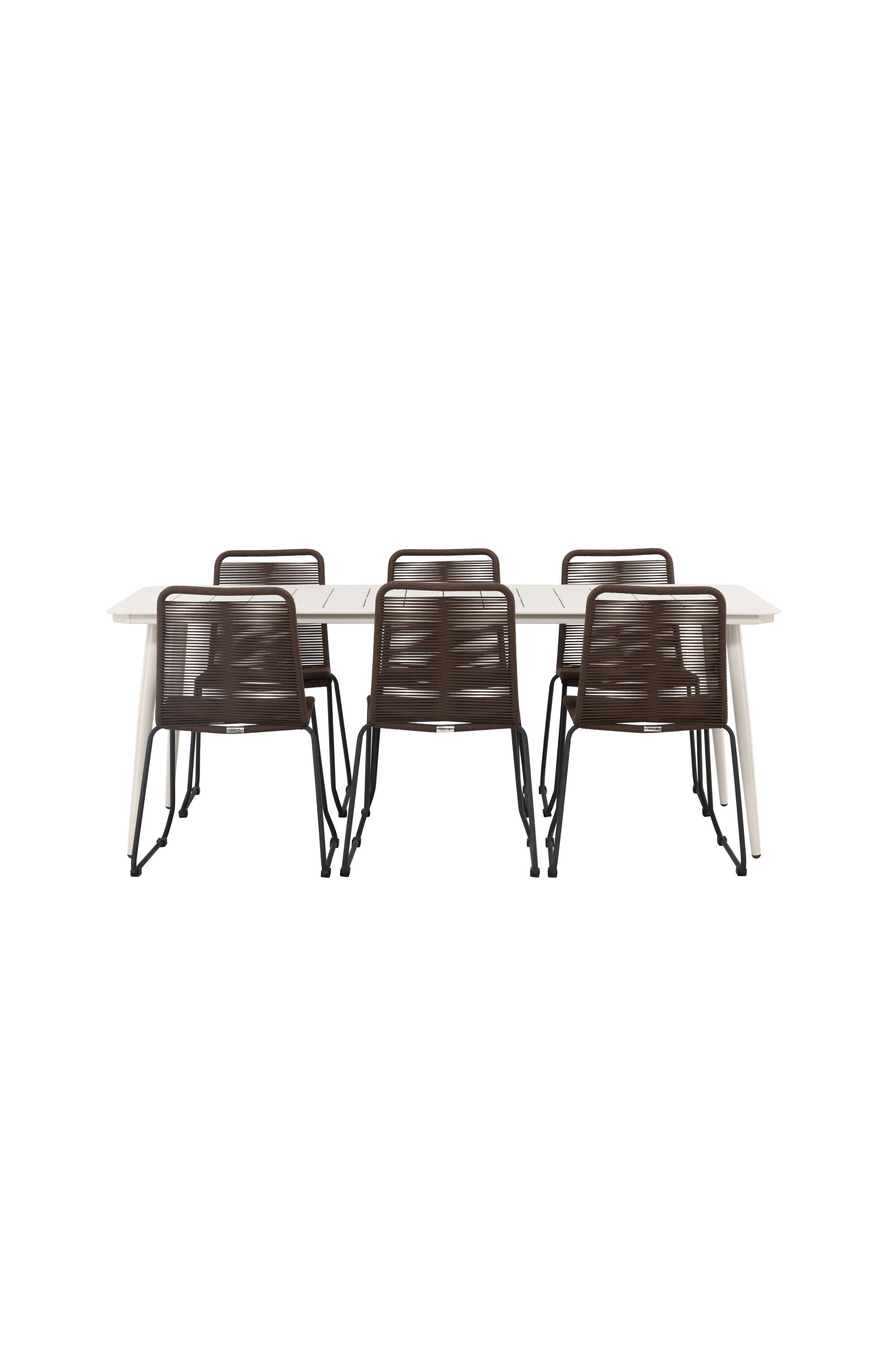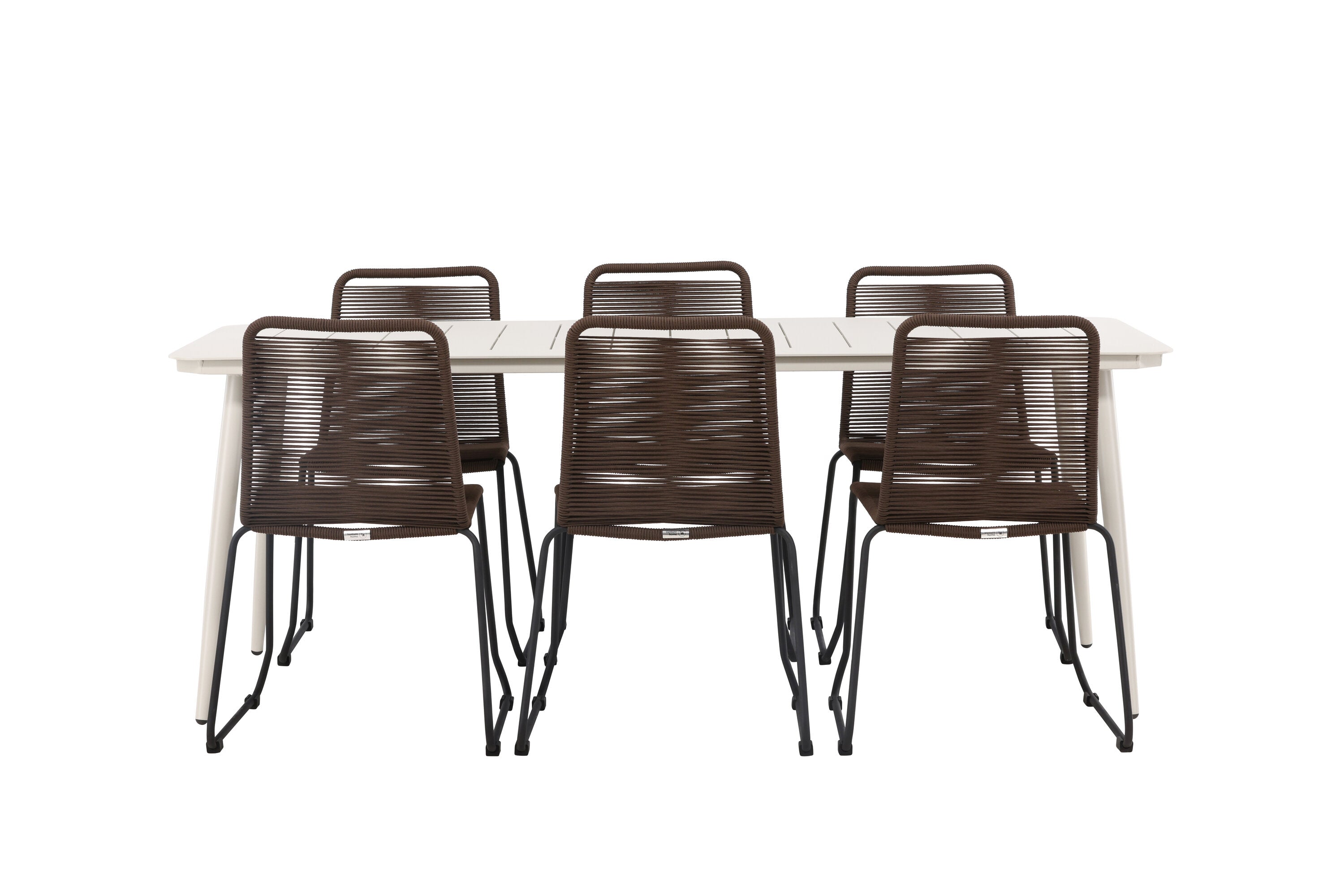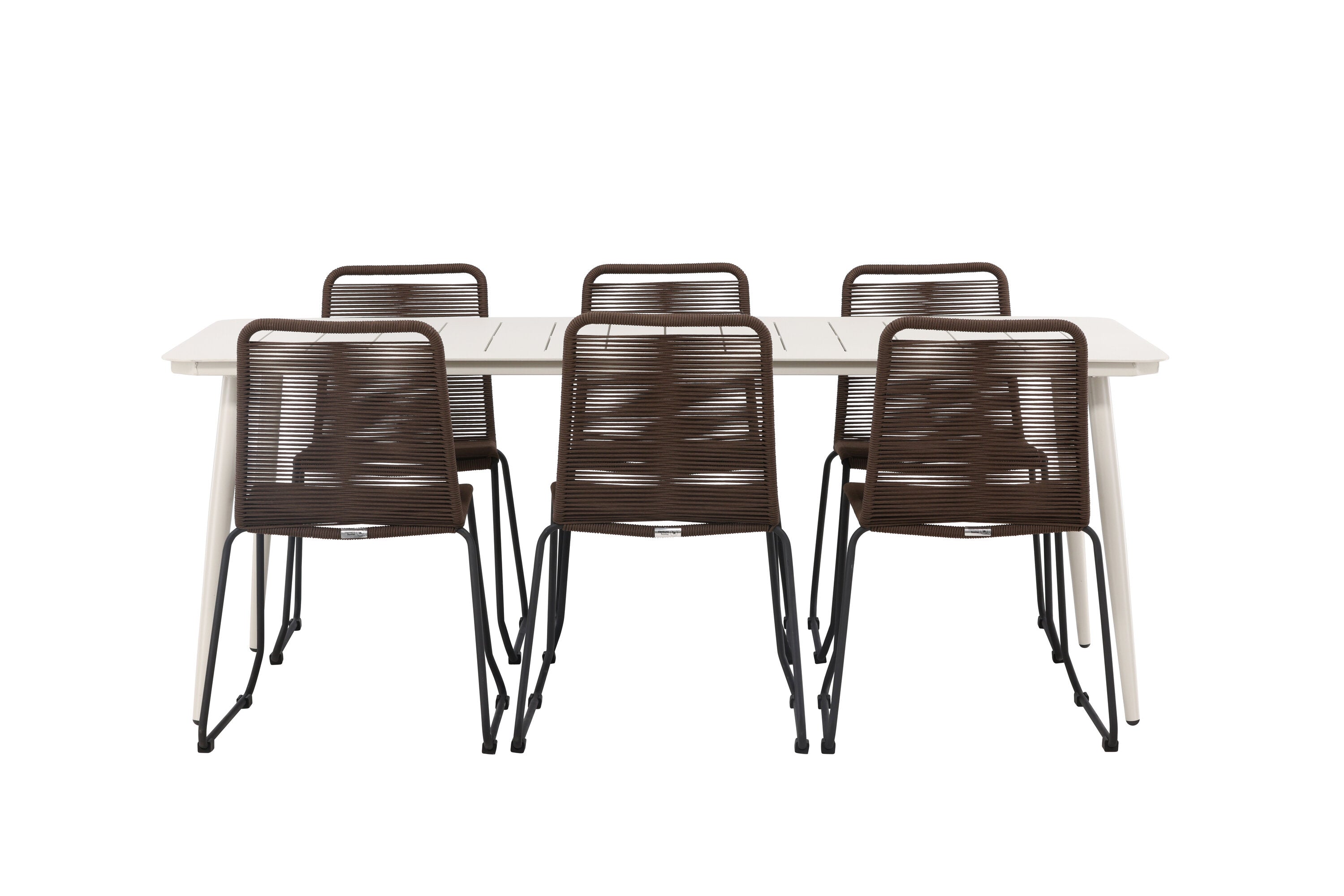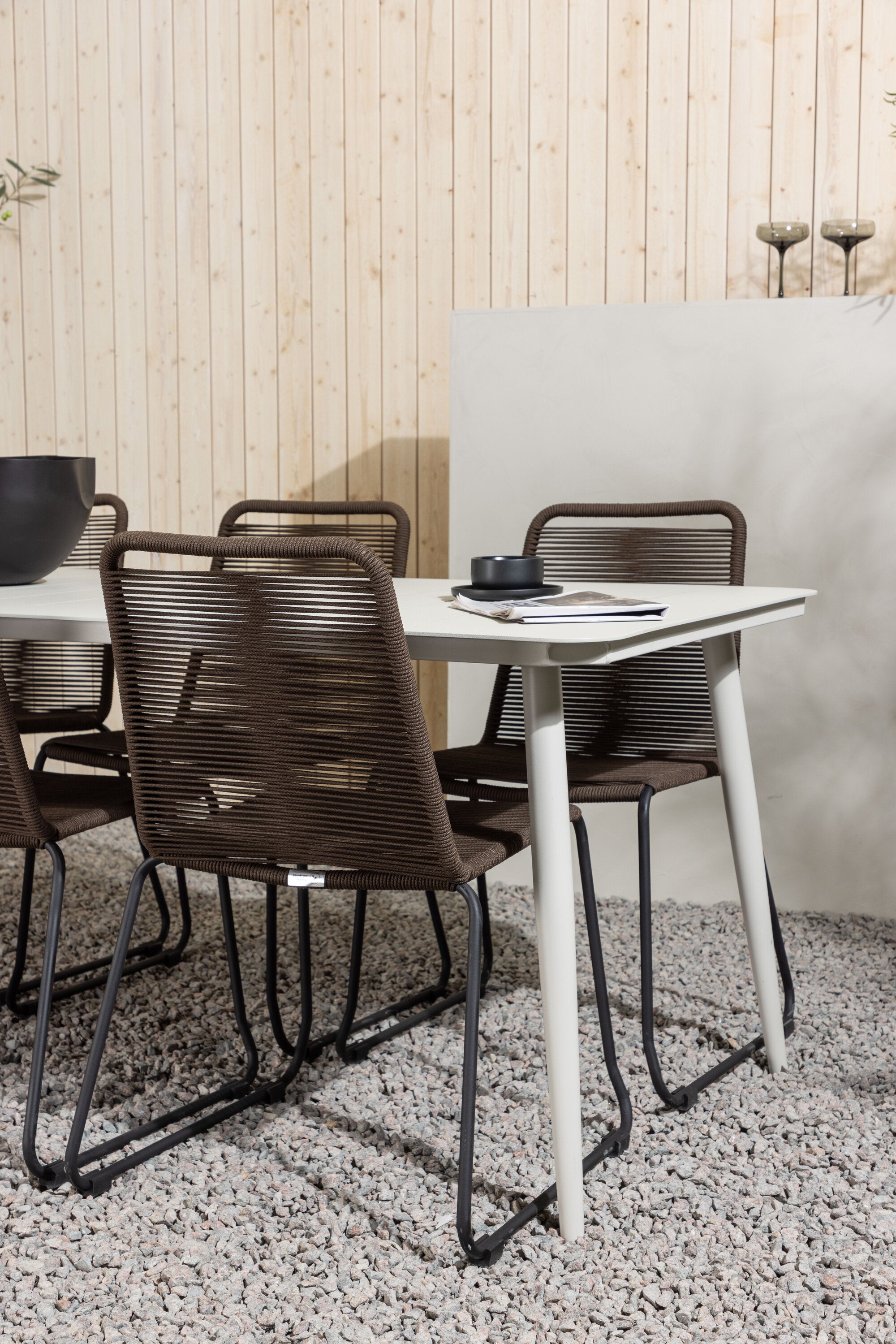 Lina Jídelní stůl - Béžová - 200*90 +Lindos Jídelní židle Hliník - Černá / _6