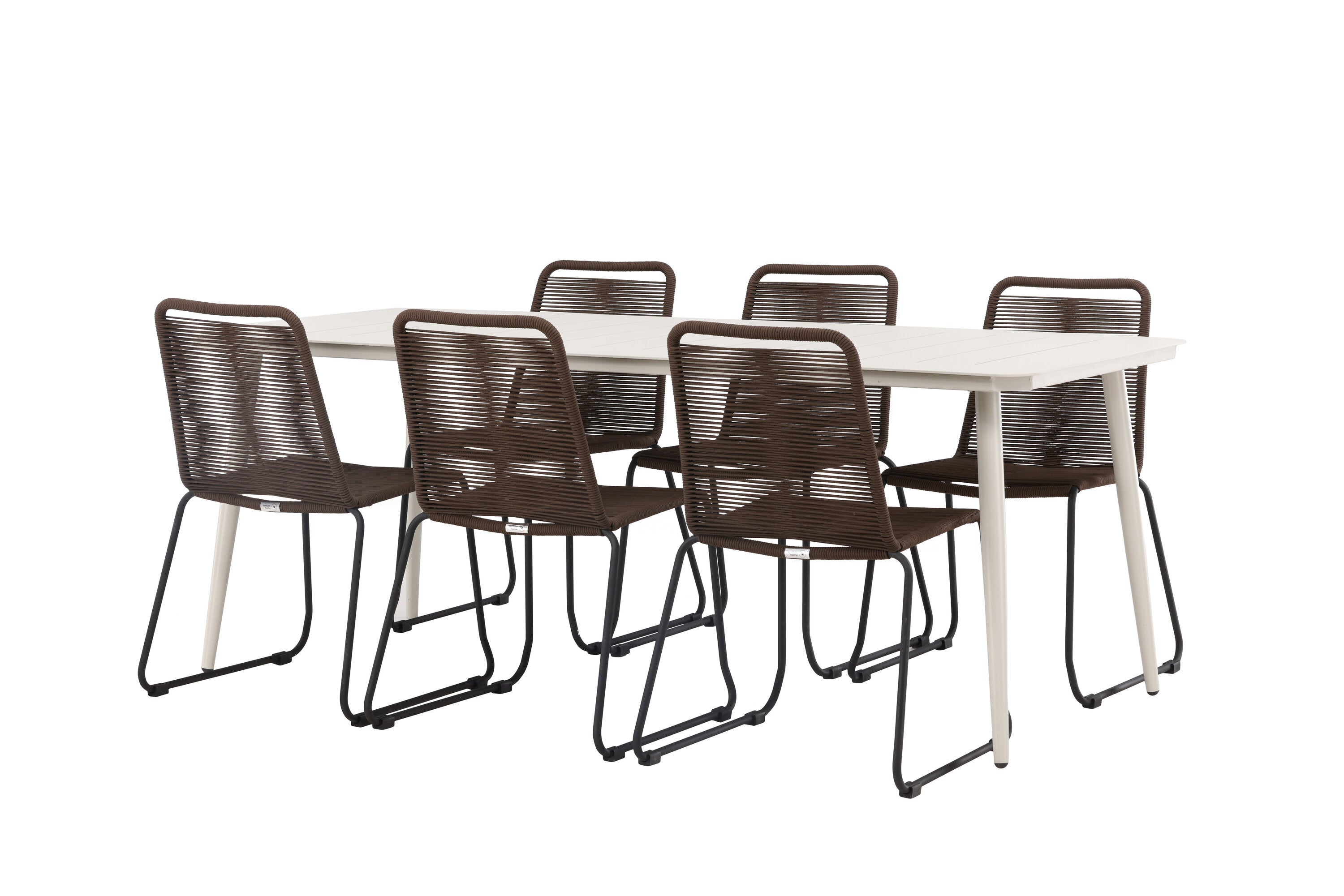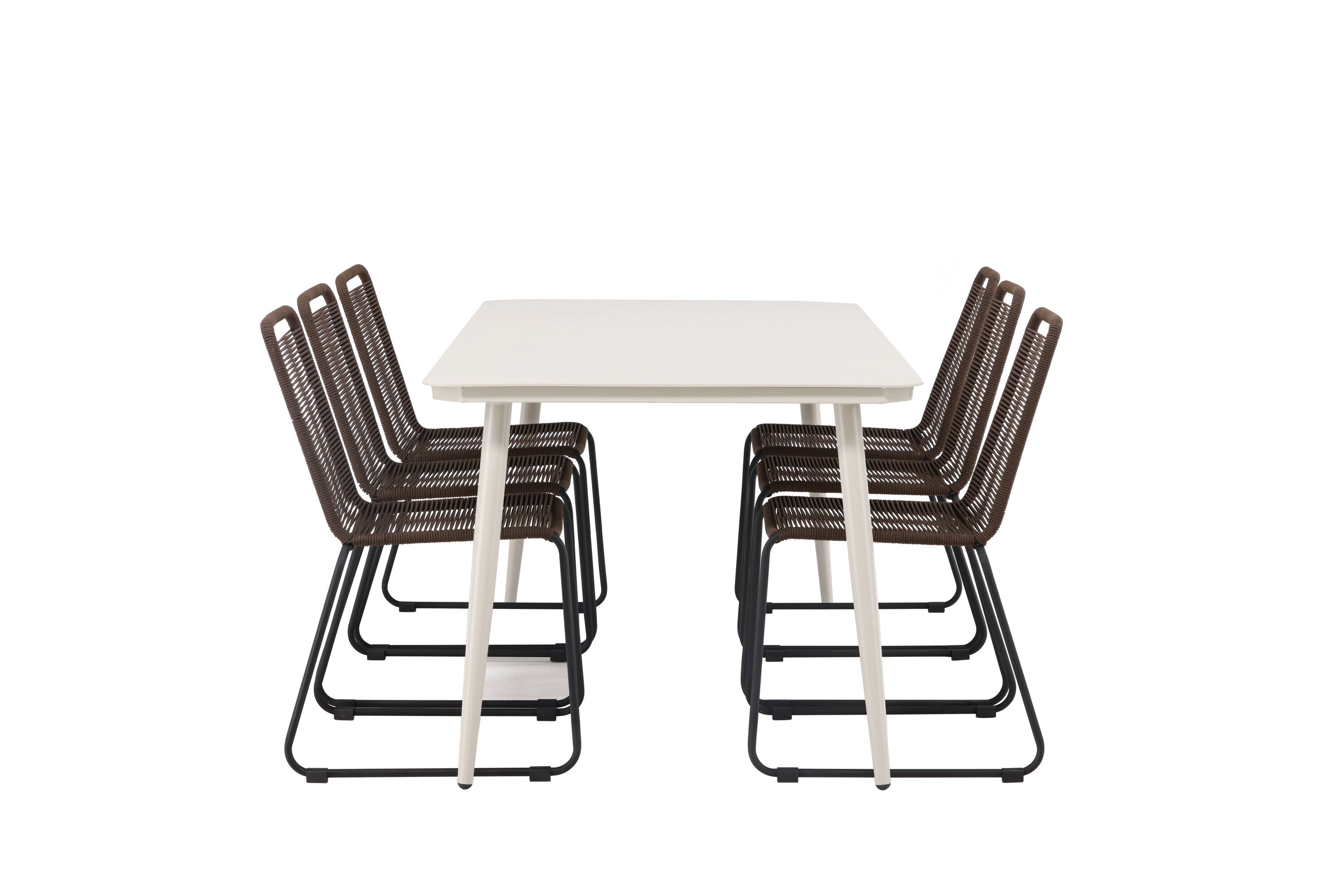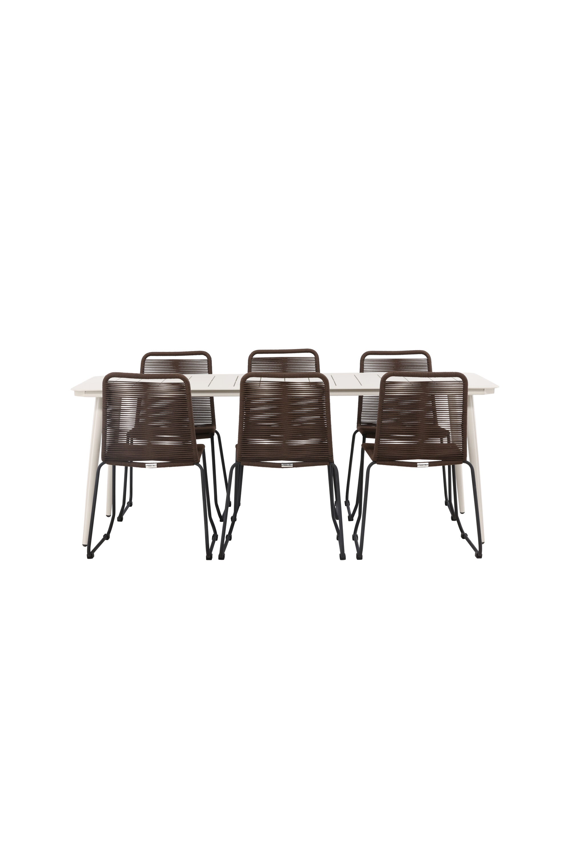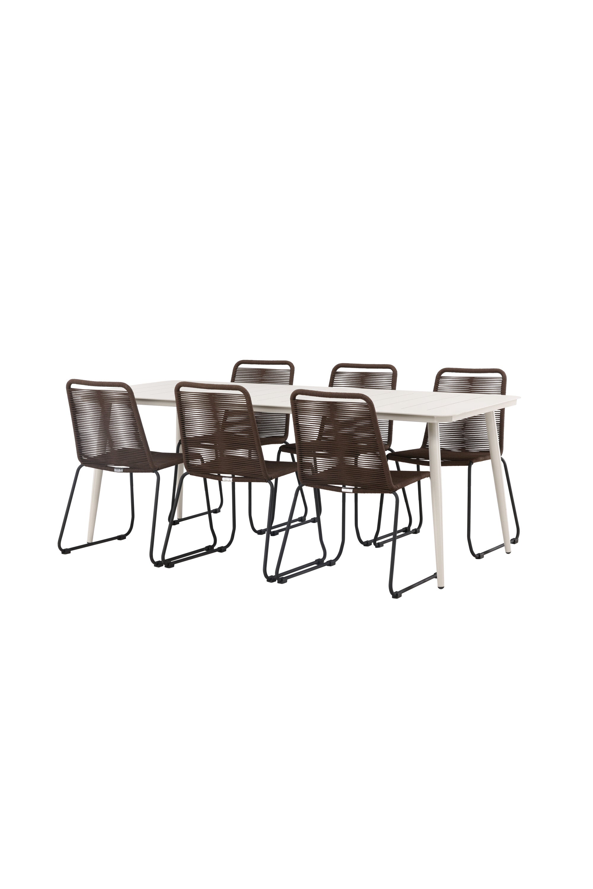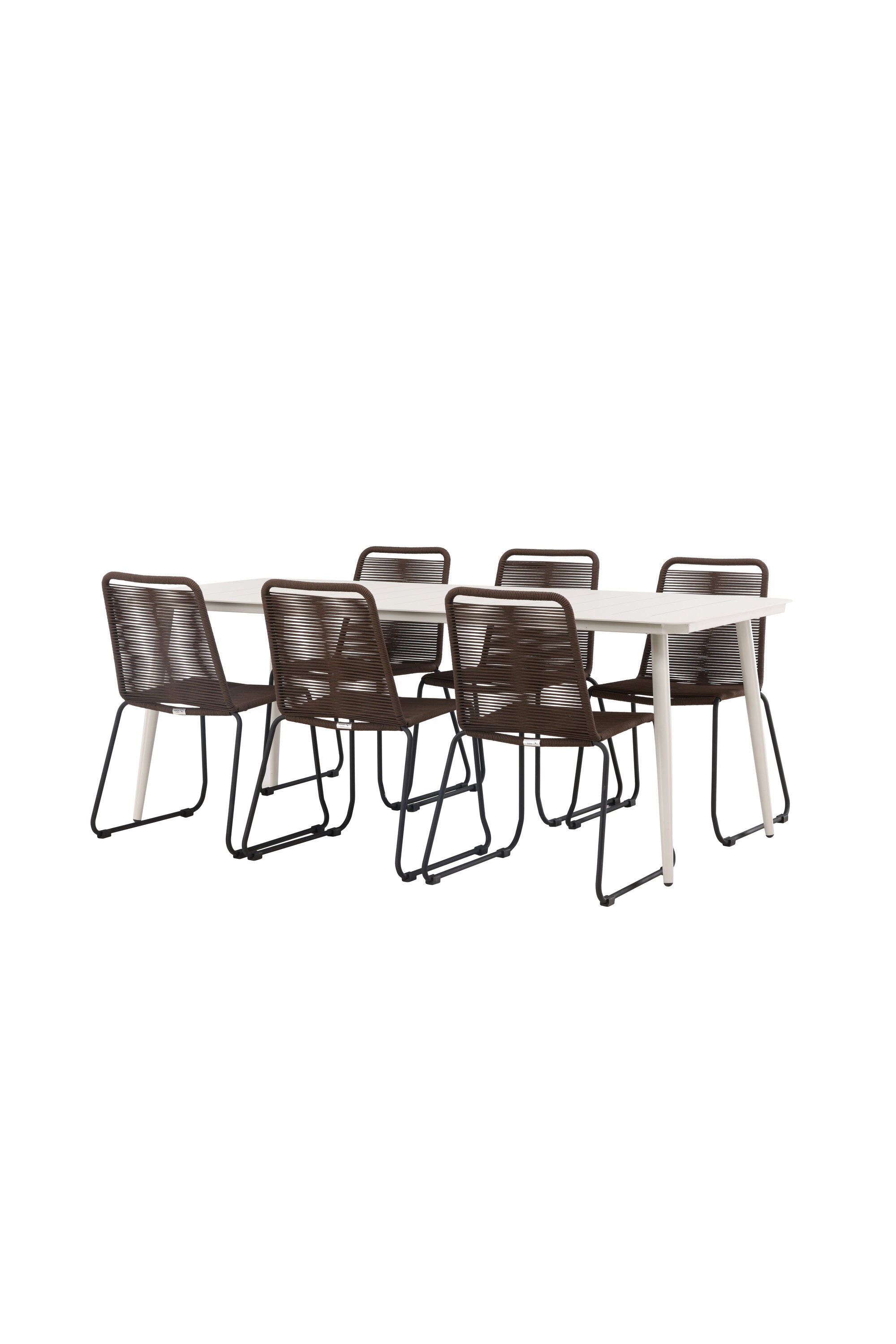 Lina Jídelní stůl - Béžová - 200*90 +Lindos Jídelní židle Hliník - Černá / _6